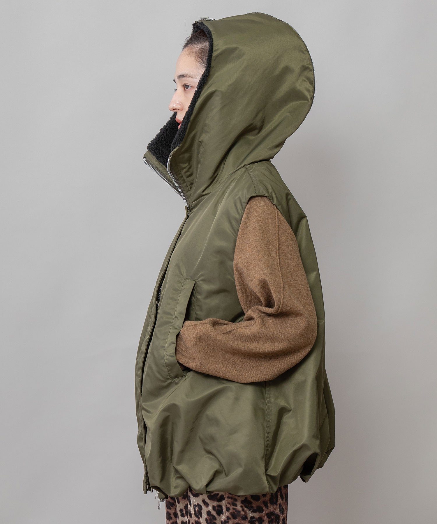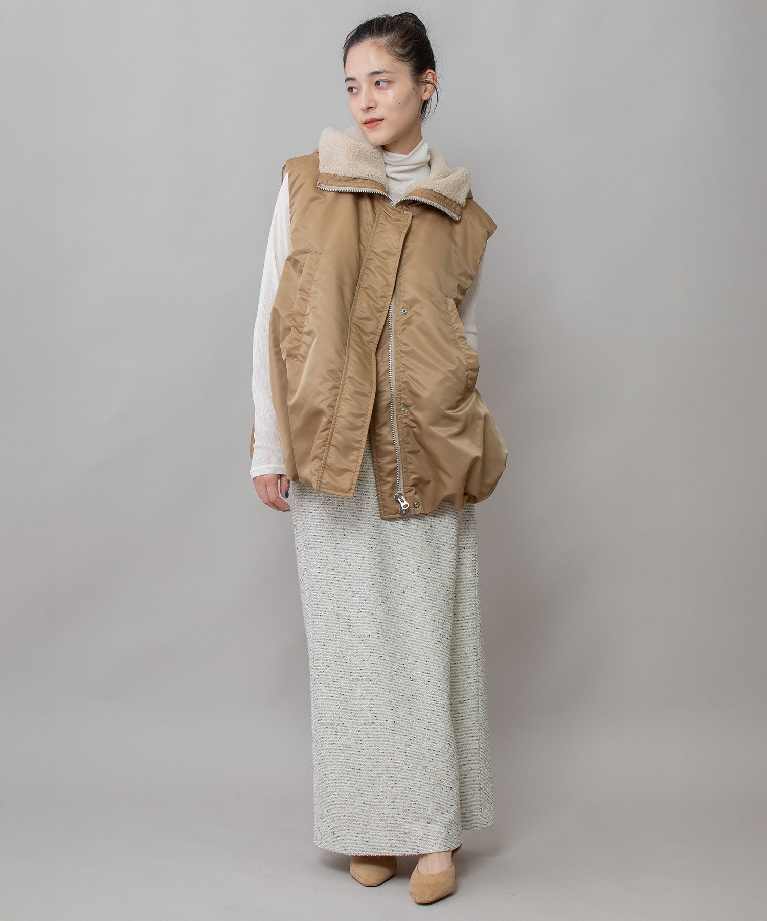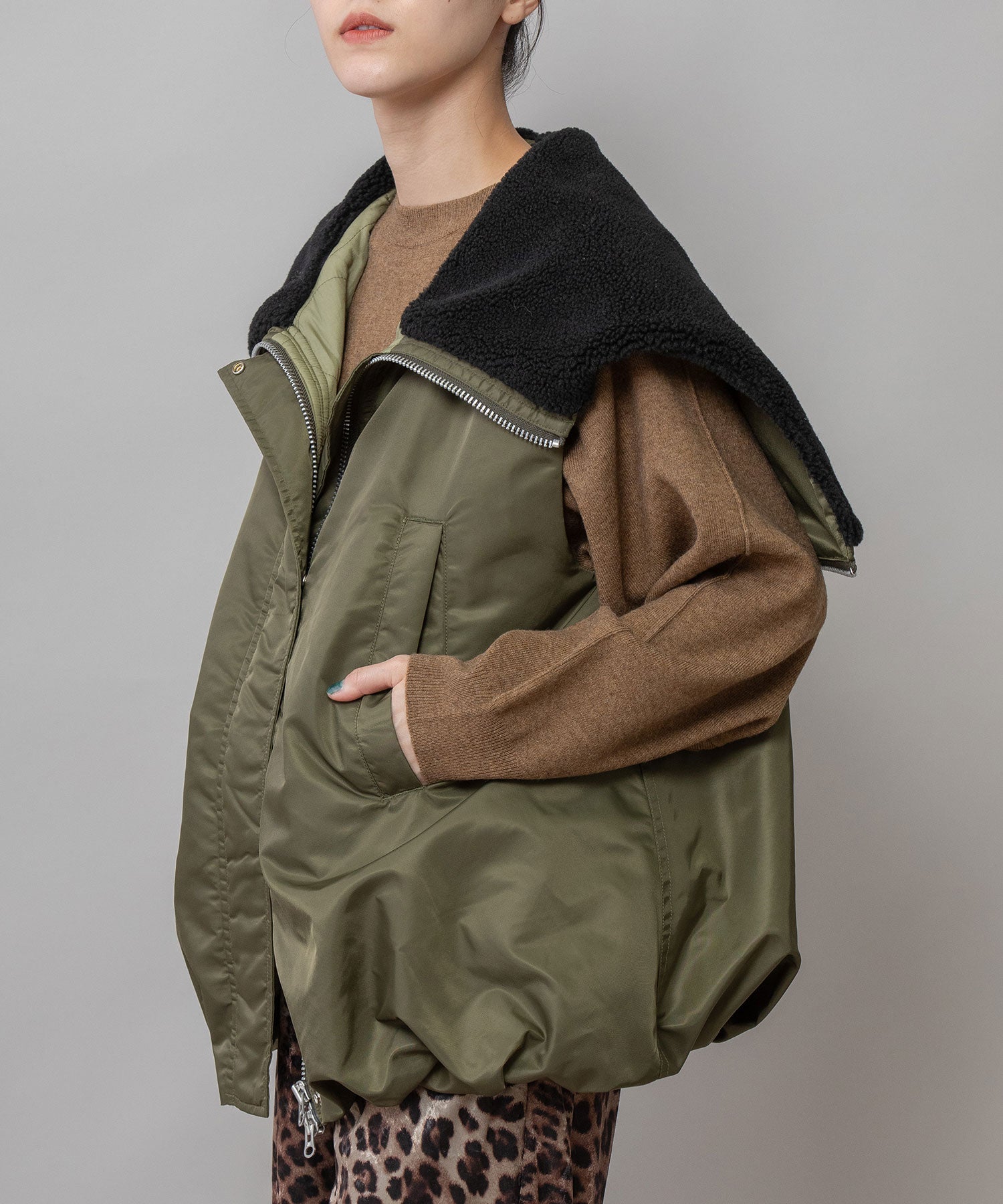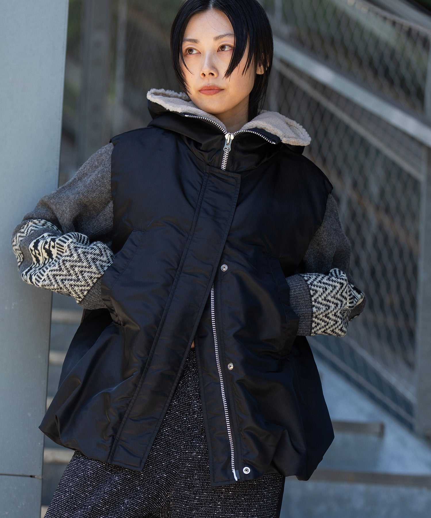 ◆ミリタリーなデザインを施したナイロン×ボア×中綿のコンビで丸みあるフォルムで女性らしさを感じられるベスト◆