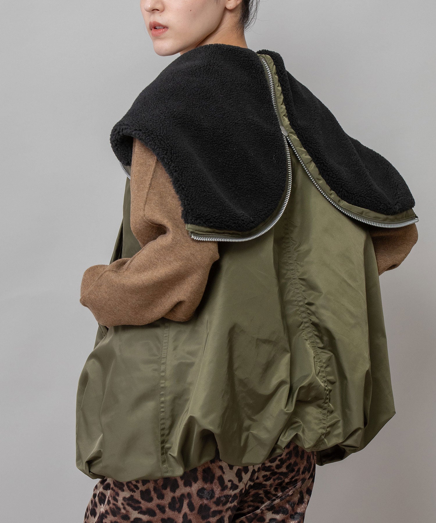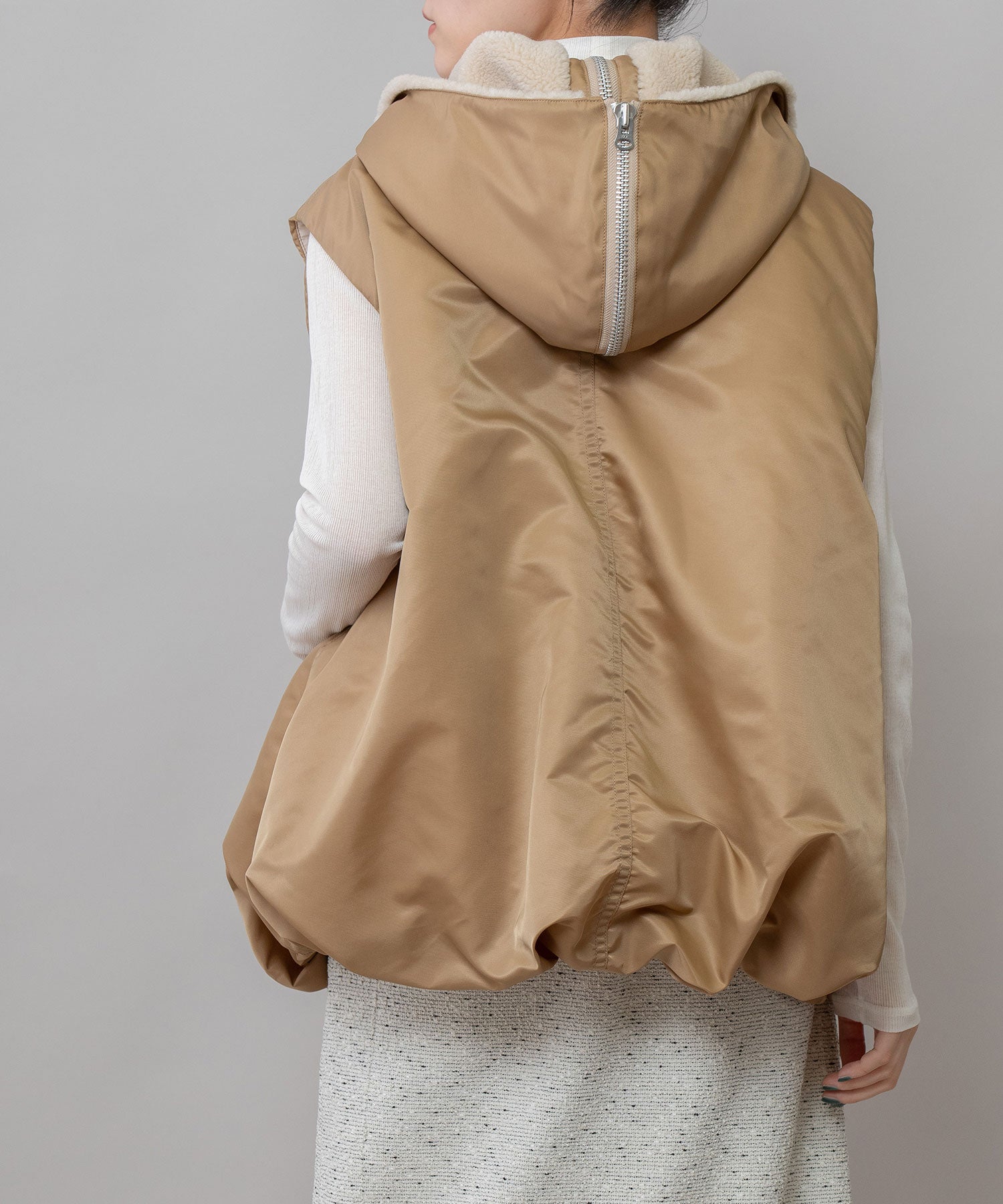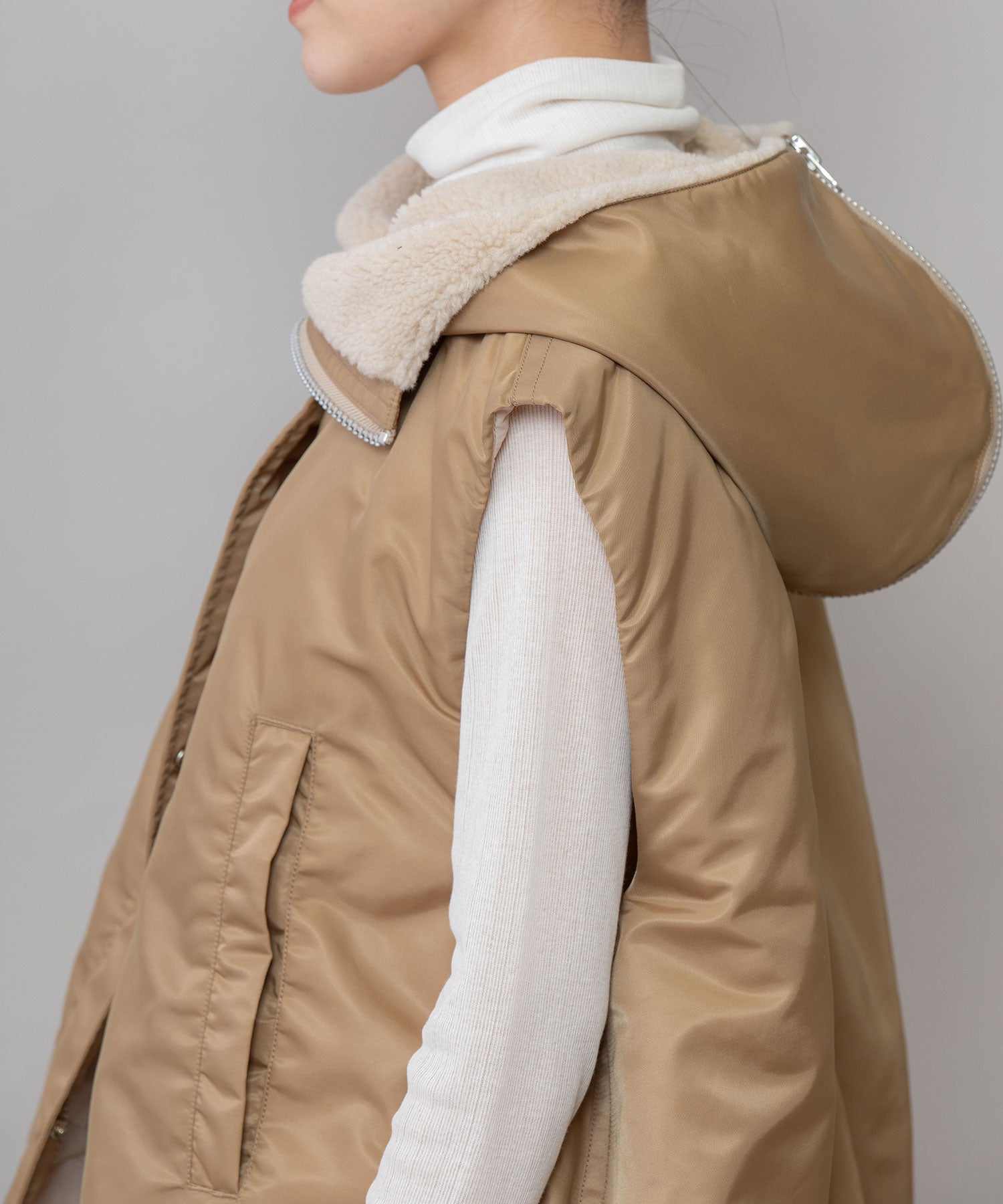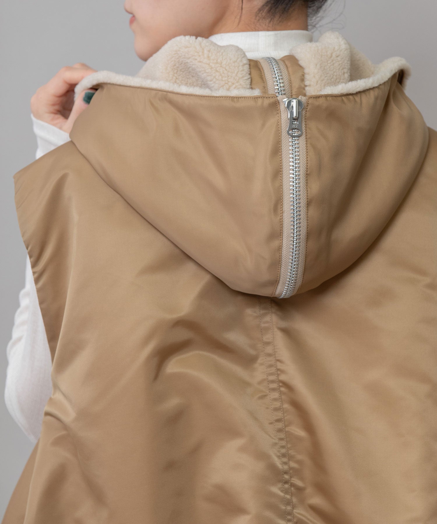 ◆ミリタリーなデザインを施したナイロン×ボア×中綿のコンビで丸みあるフォルムで女性らしさを感じられるベスト◆