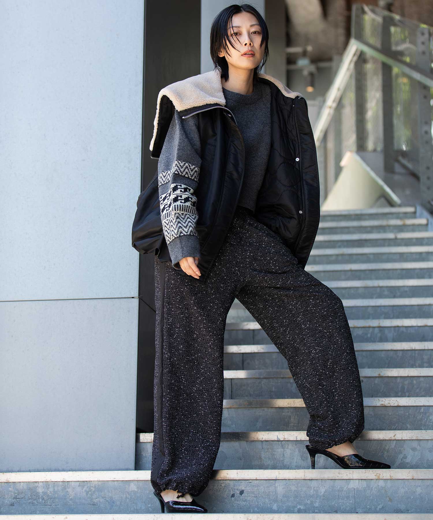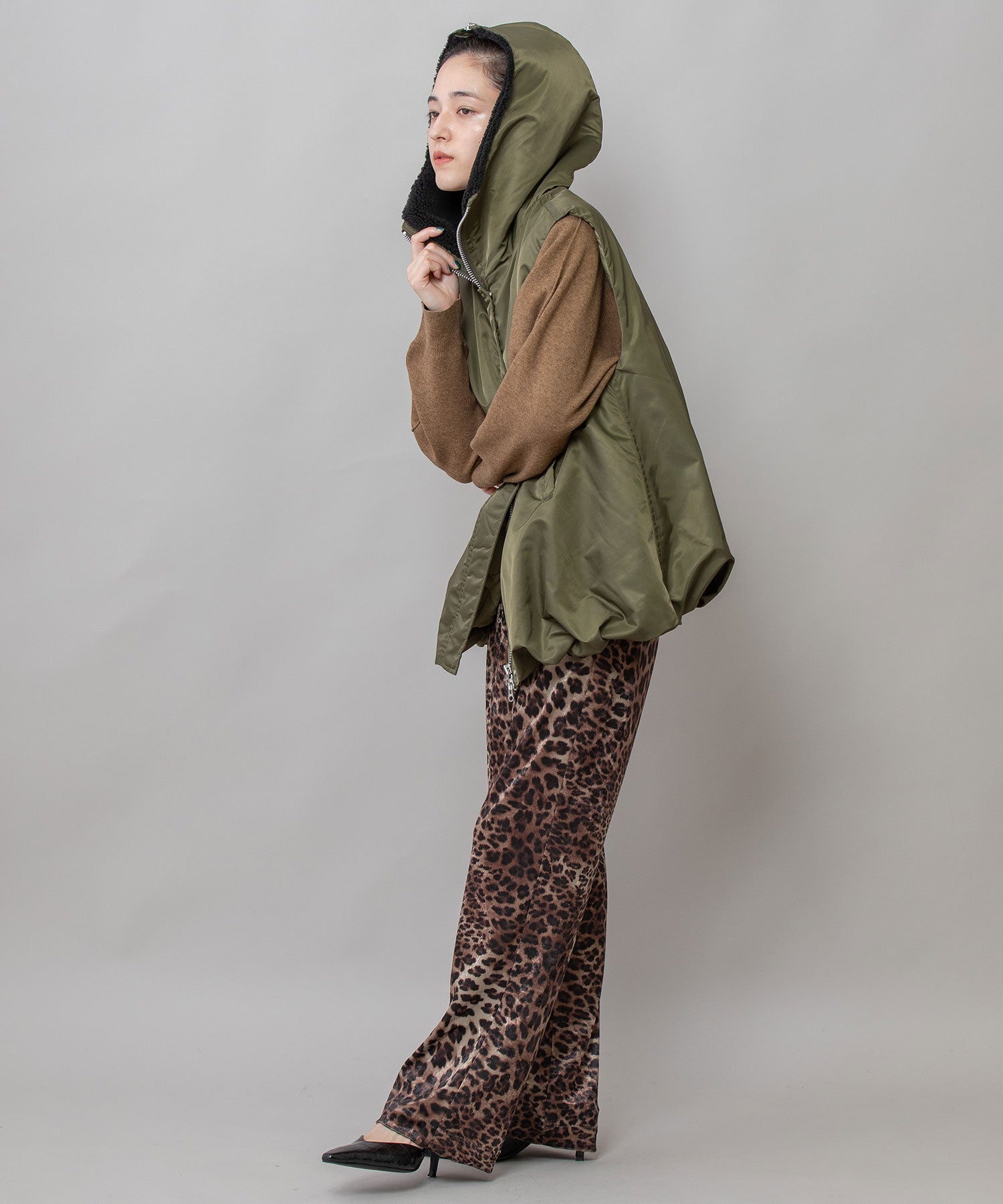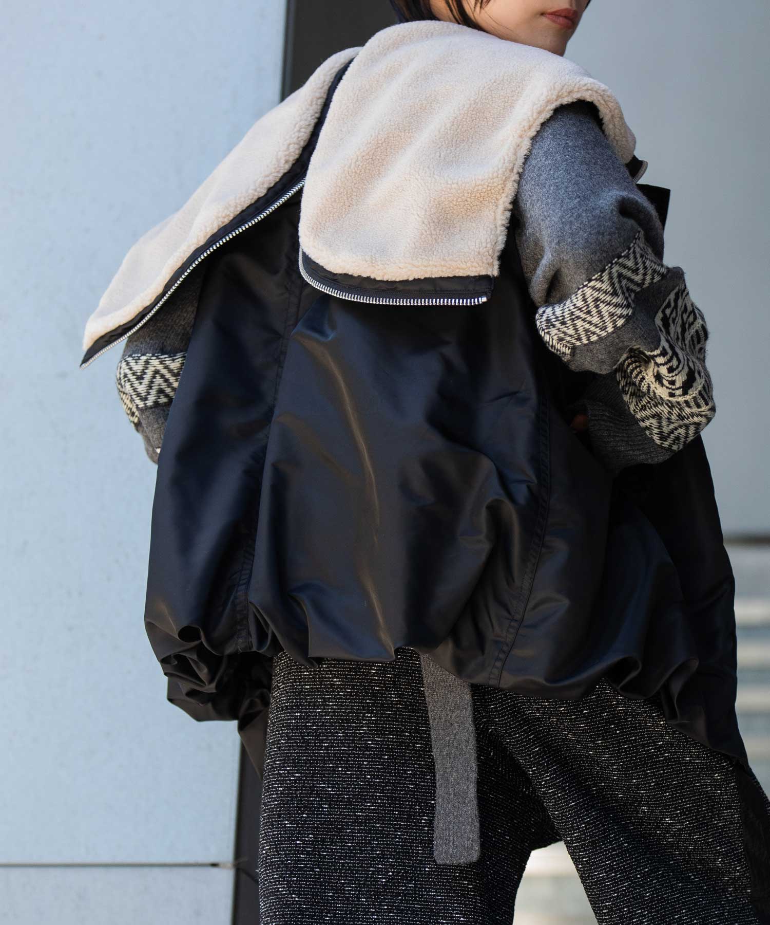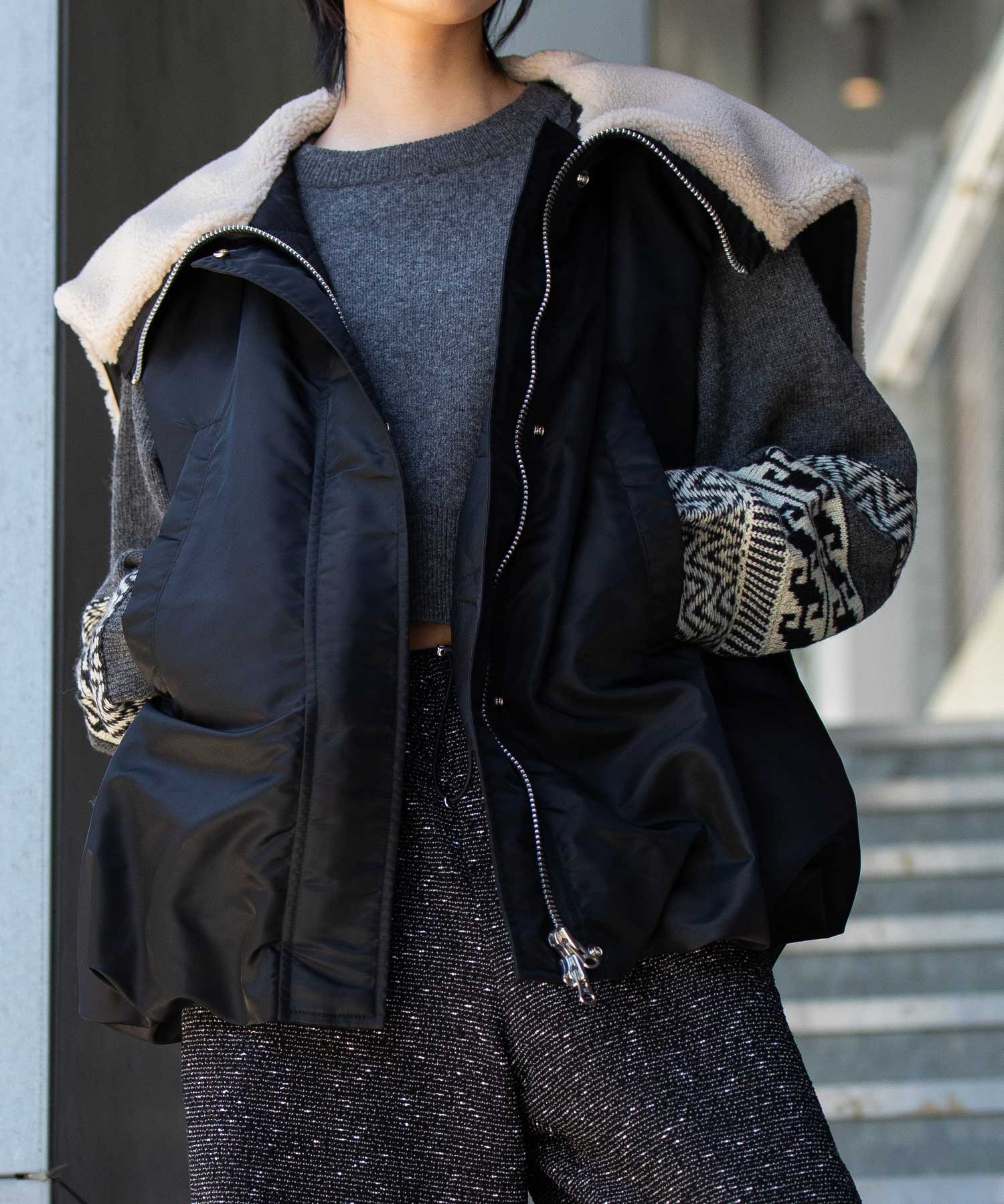 ◆ミリタリーなデザインを施したナイロン×ボア×中綿のコンビで丸みあるフォルムで女性らしさを感じられるベスト◆