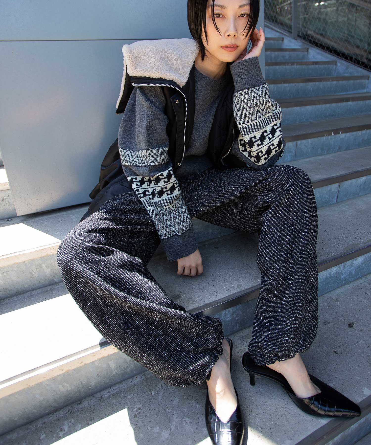 別布には定番使いしているウール混ボアの短毛バージョンを配してウォーミーな雰囲気にまとめました。