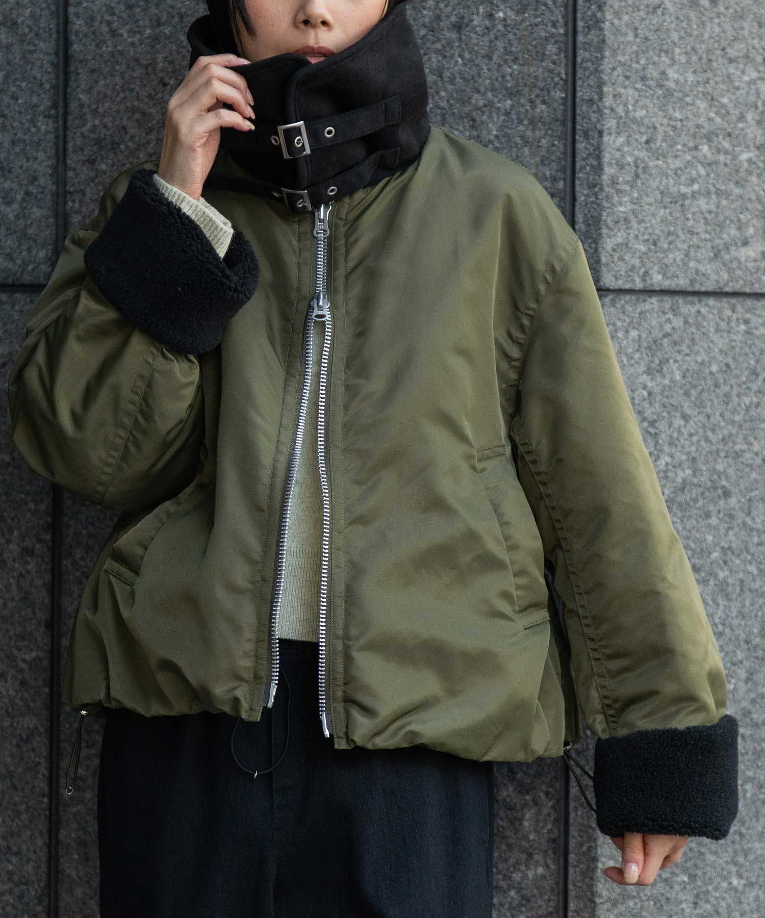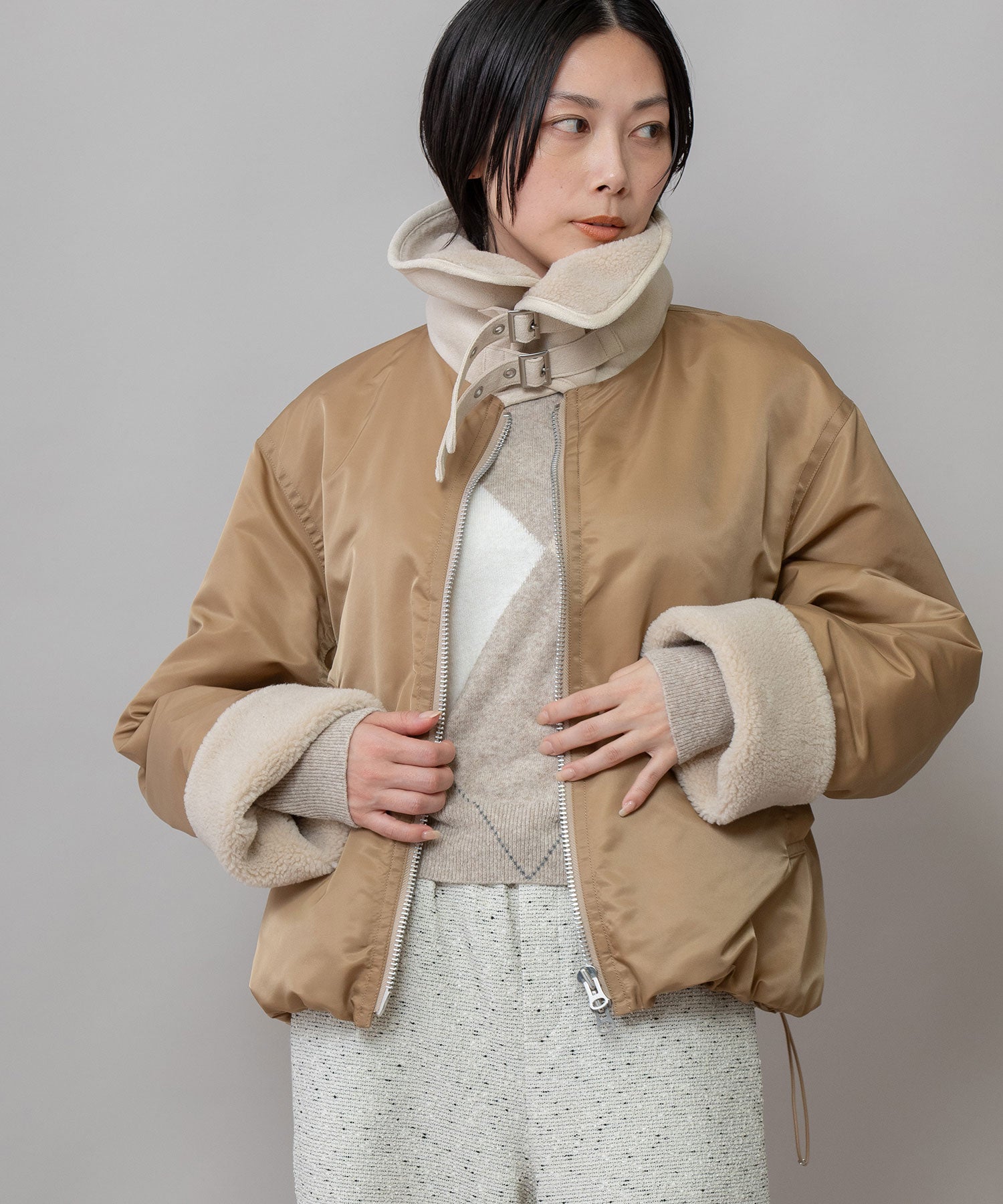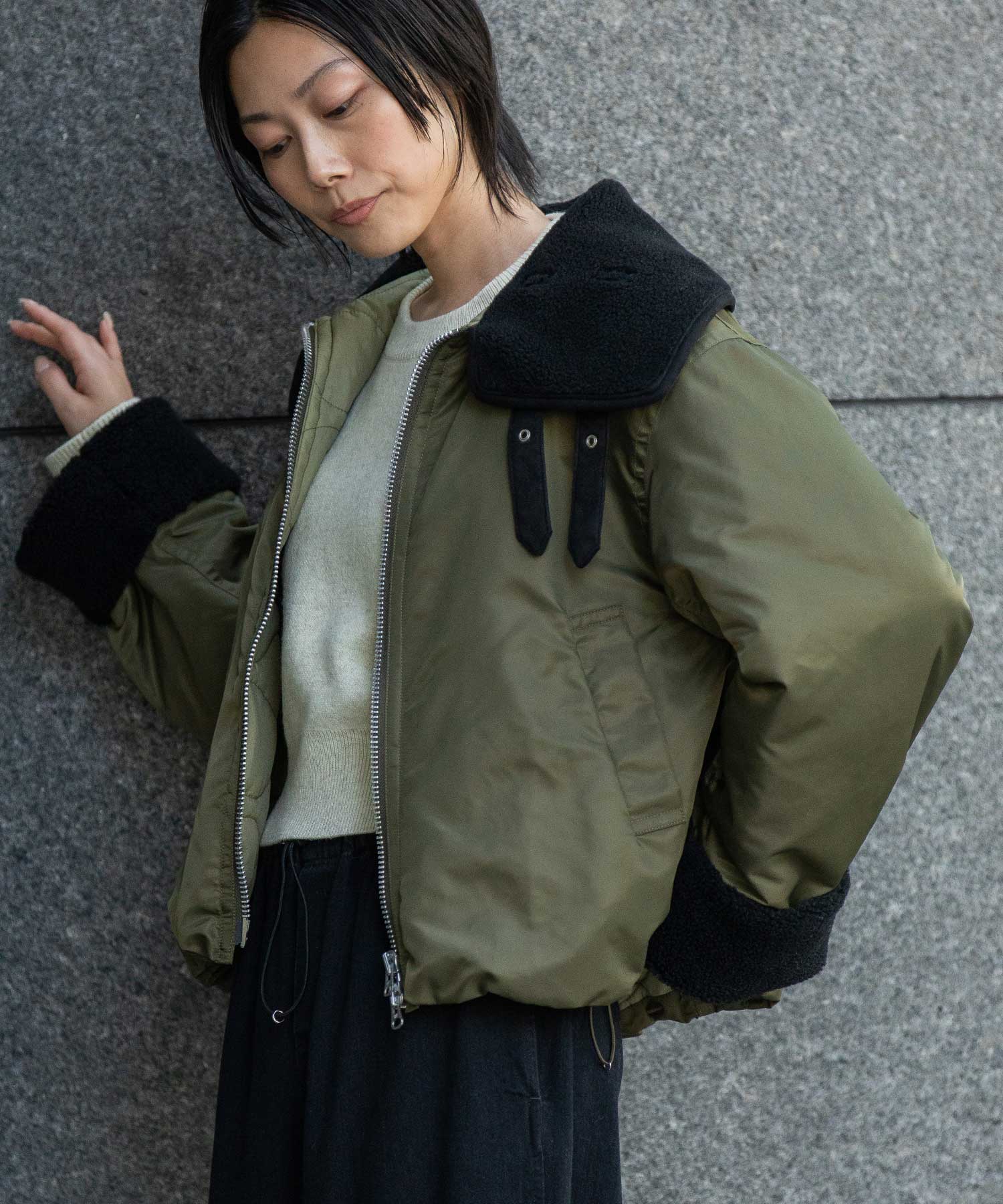 ナイロンツイル×シープボアフライトブルゾン
