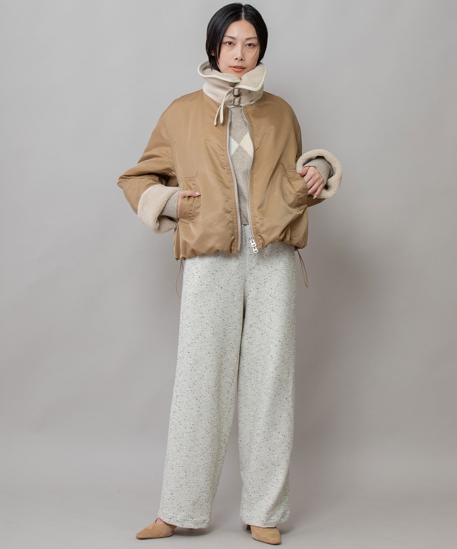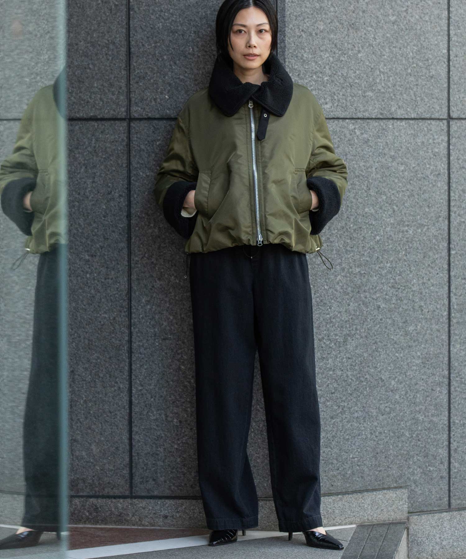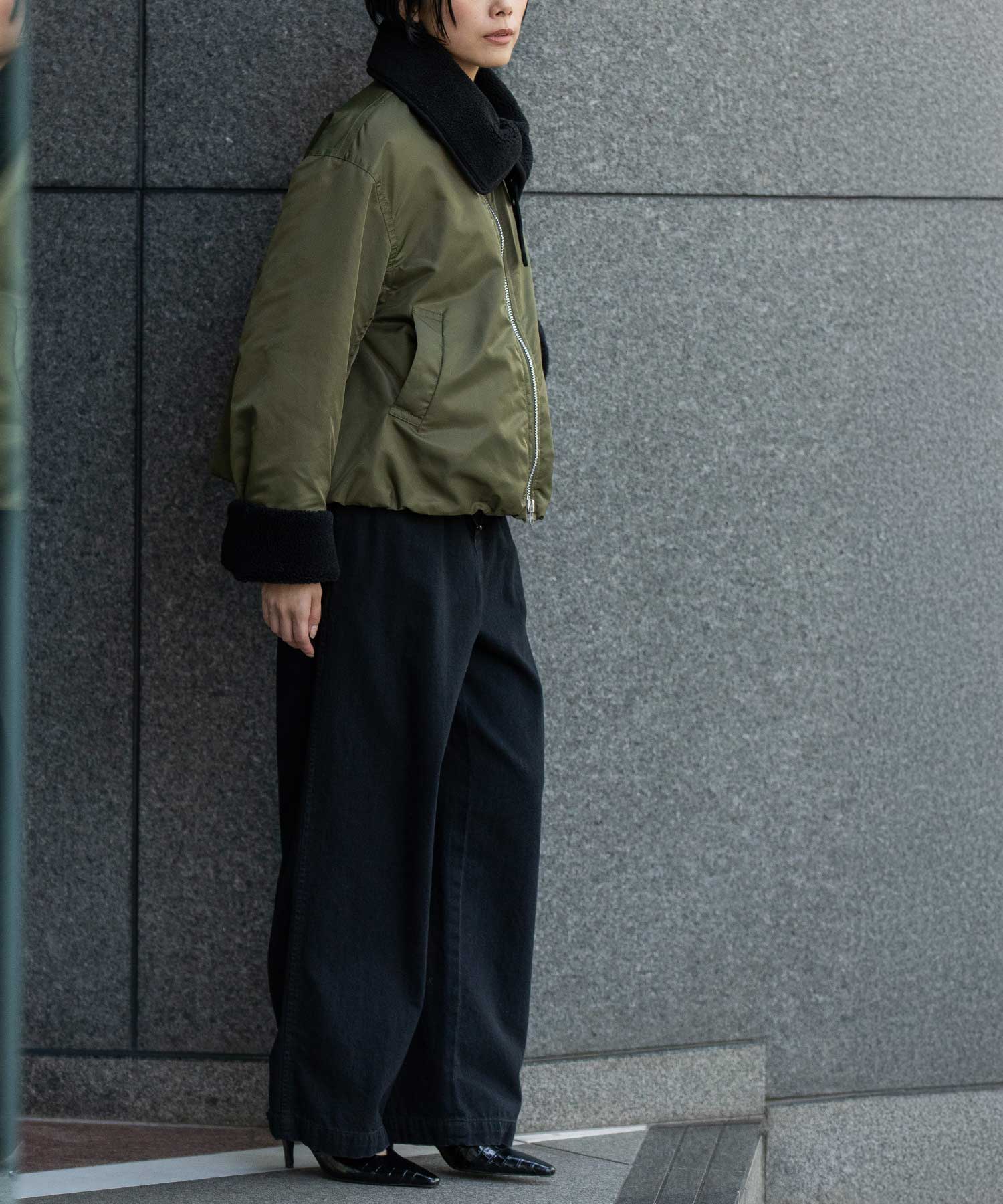 ナイロンツイル×シープボアフライトブルゾン