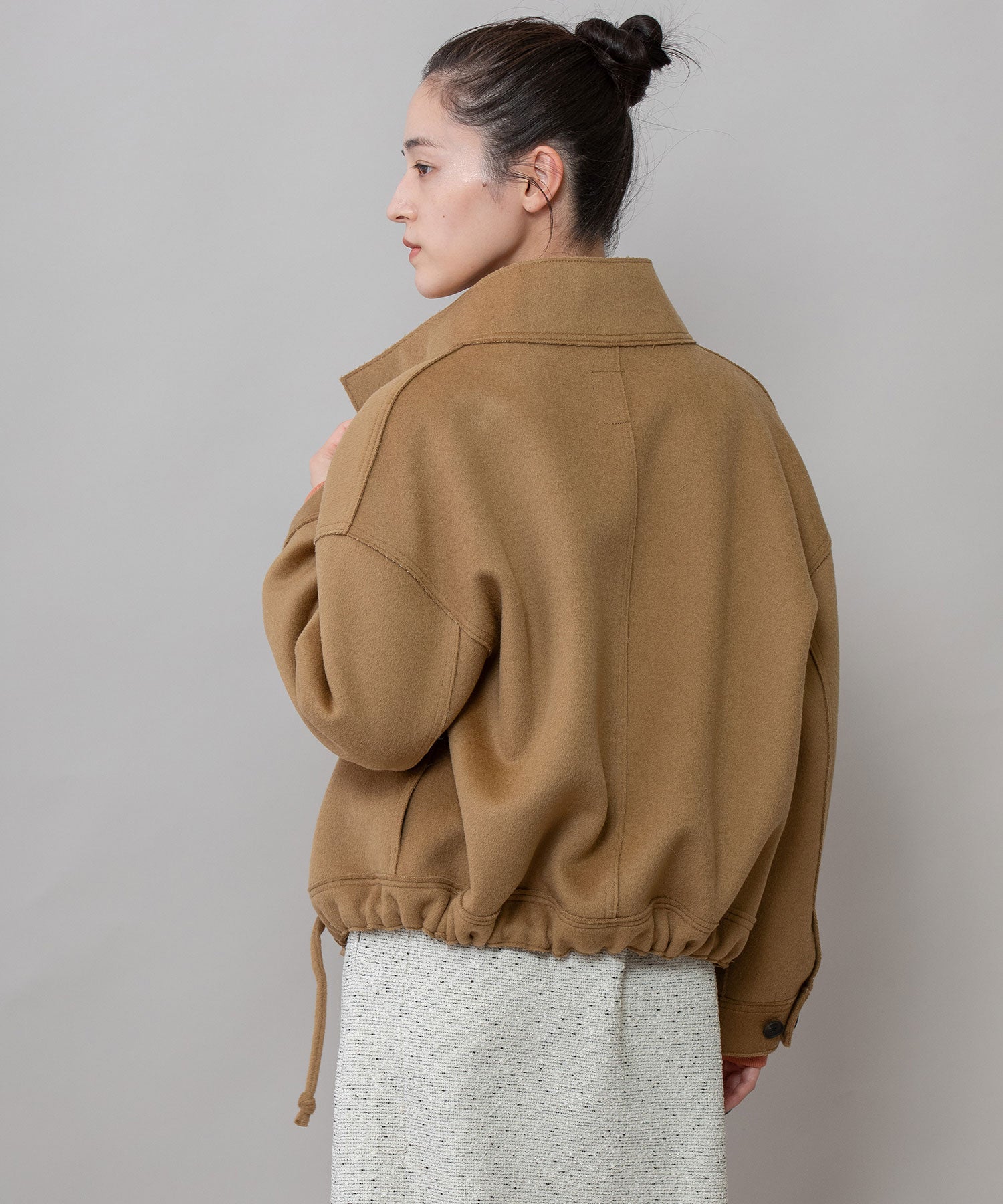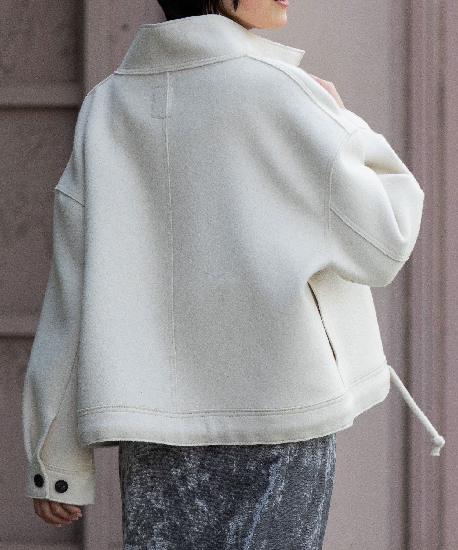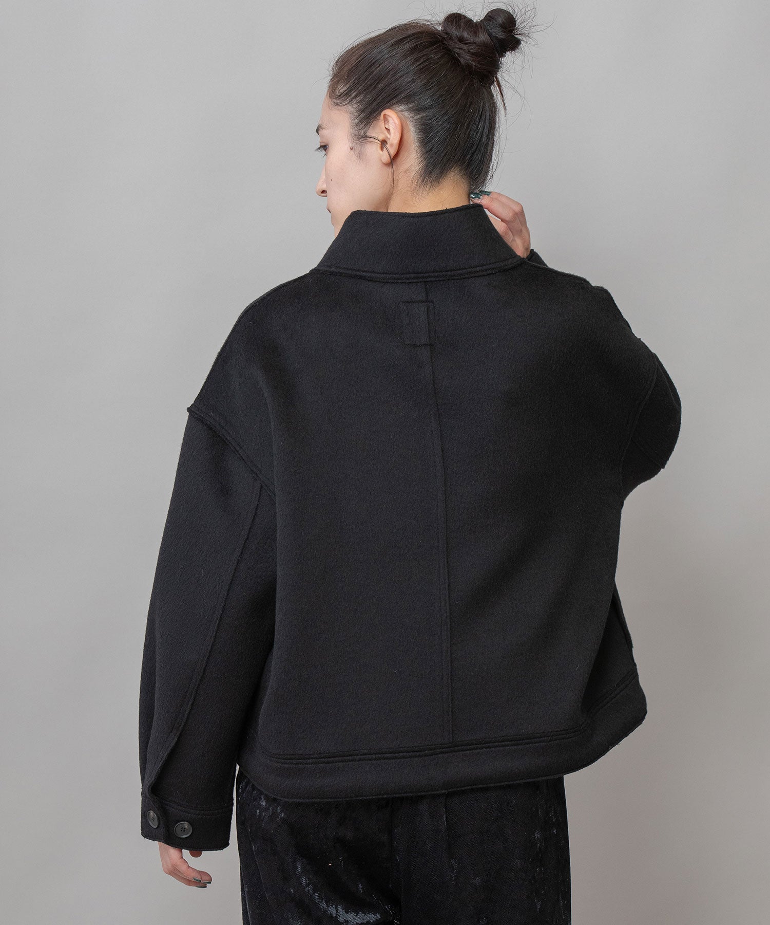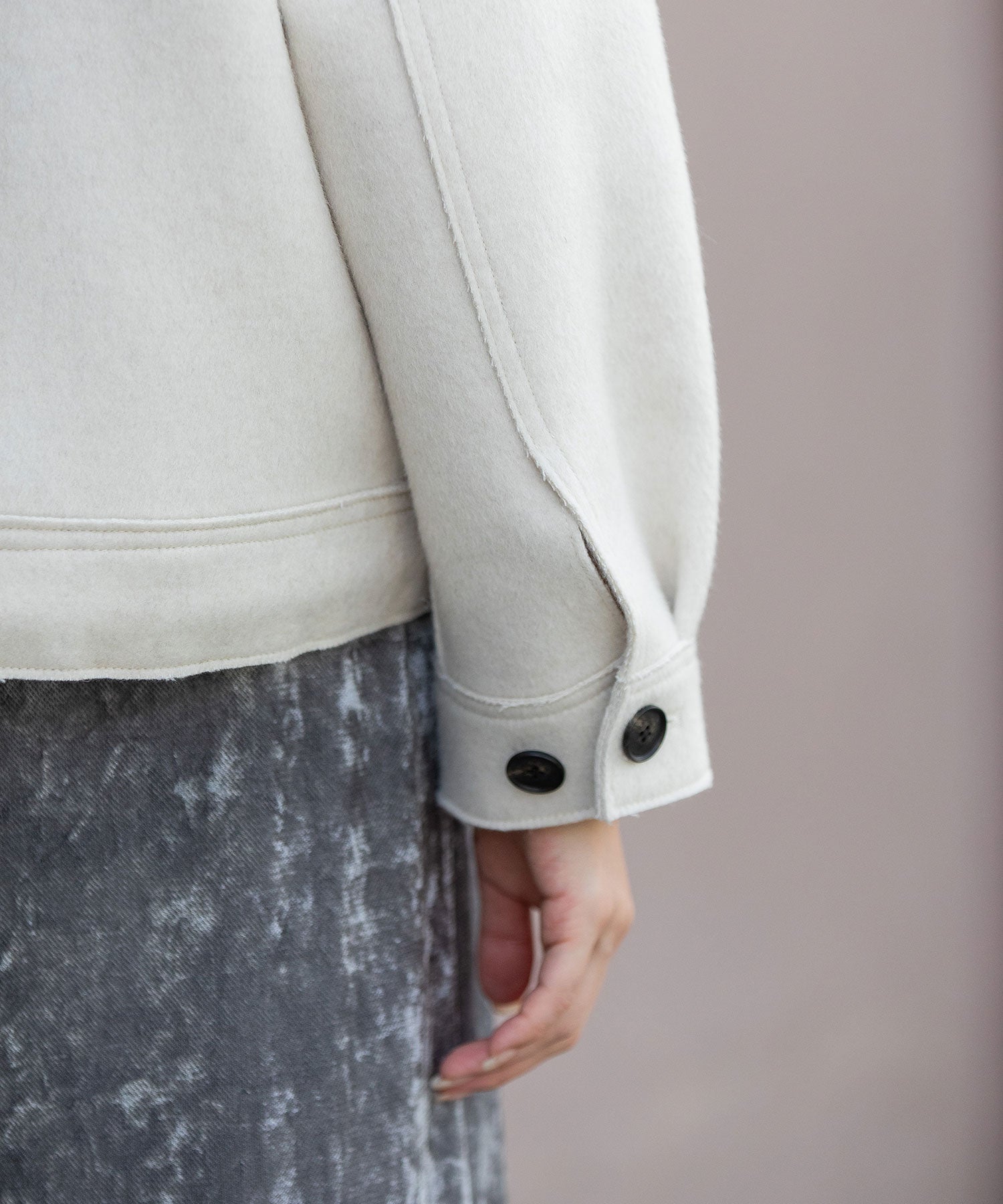 重厚だけど非常にソフトな素材をいかした芯地を使わない仕様にすることで、カッチリしすぎない印象のアイテムになってます。