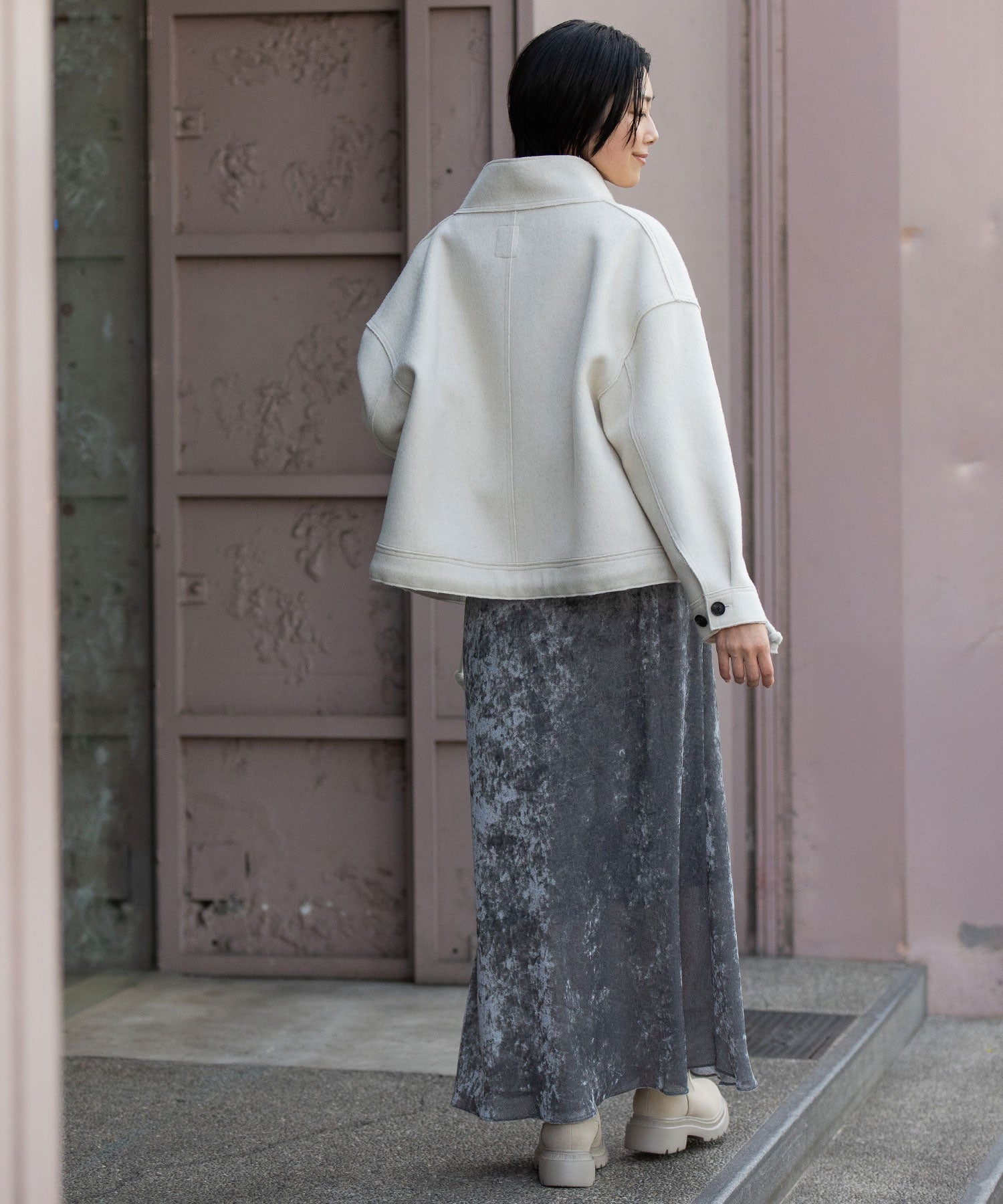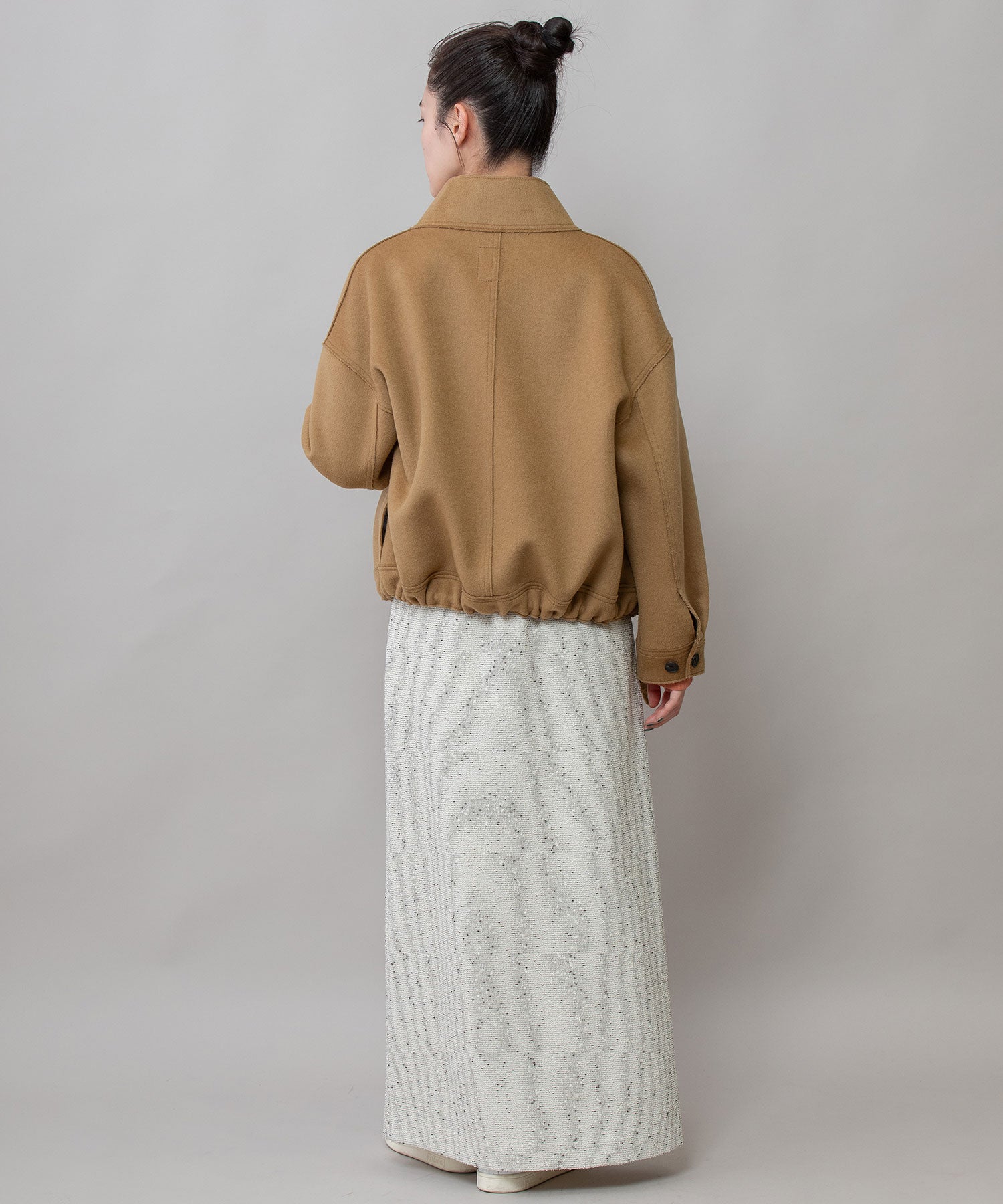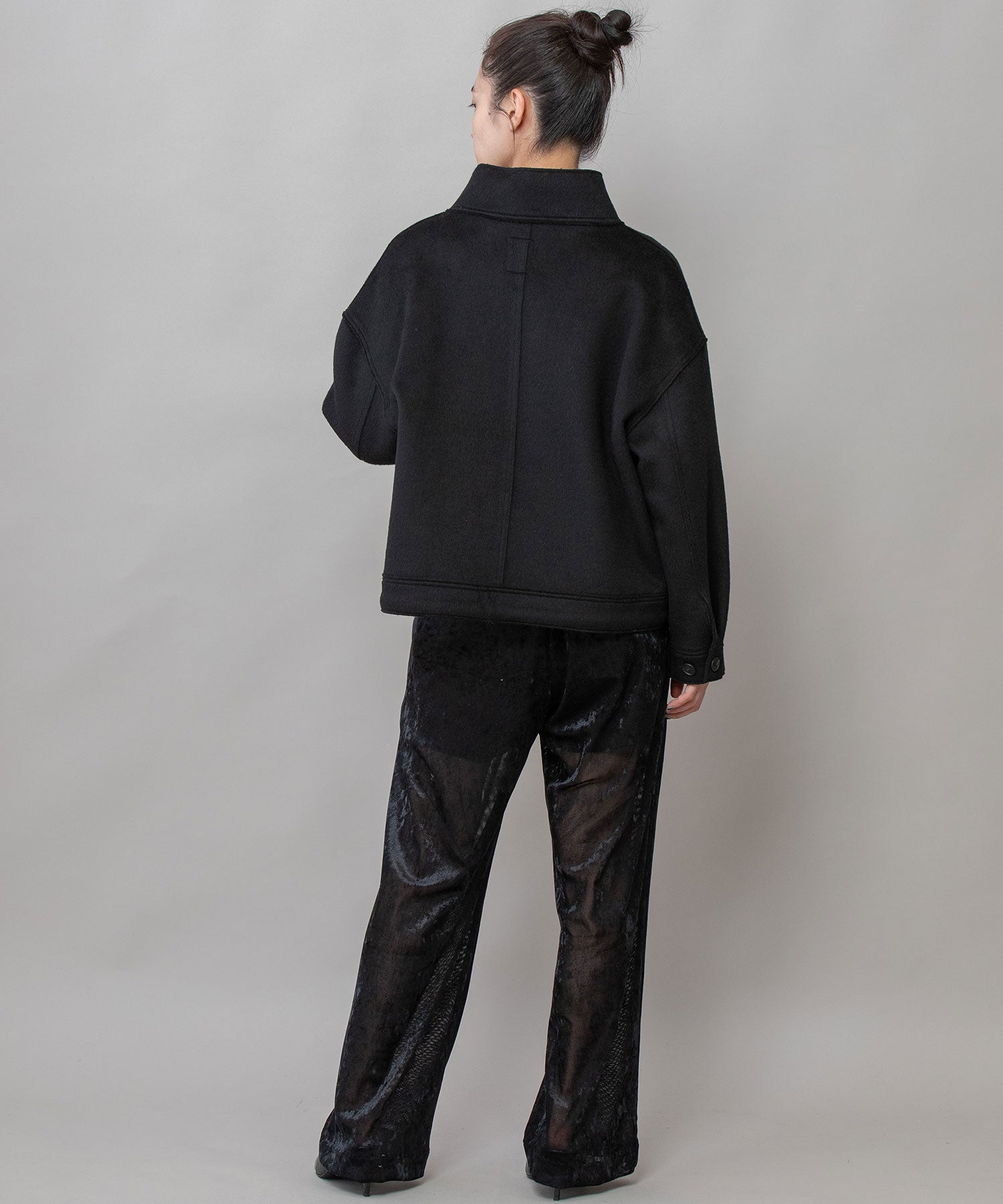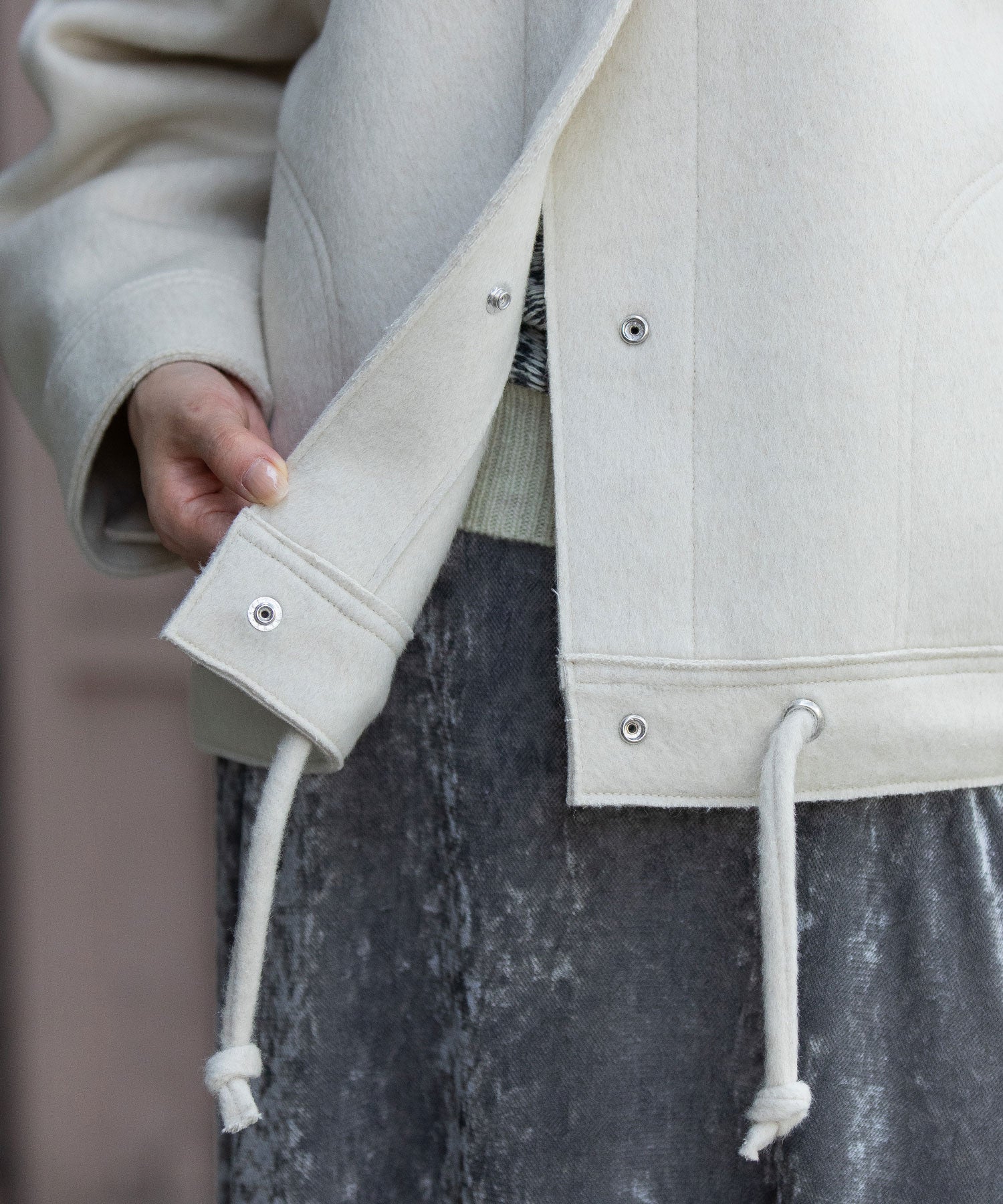 重厚だけど非常にソフトな素材をいかした芯地を使わない仕様にすることで、カッチリしすぎない印象のアイテムになってます。