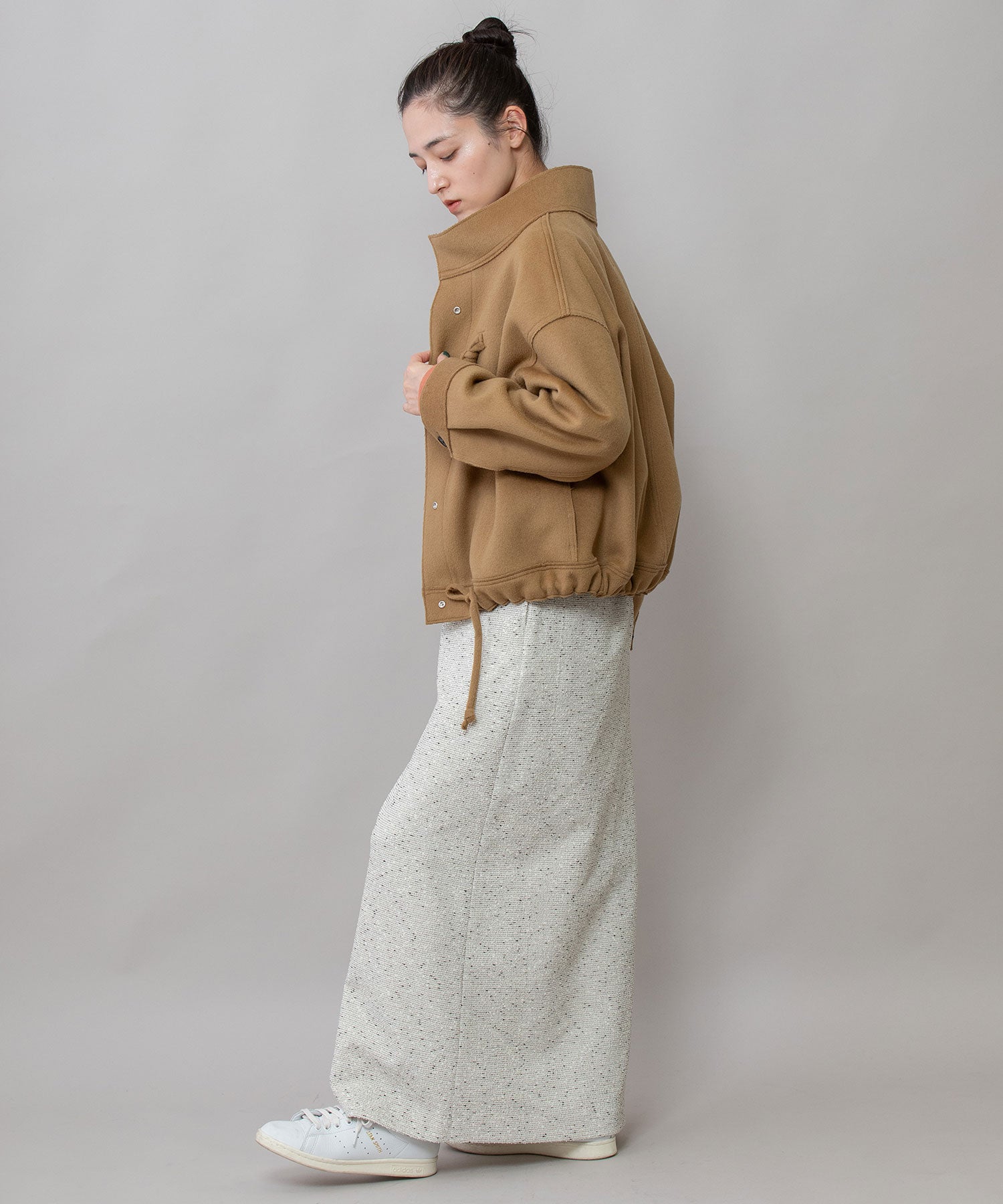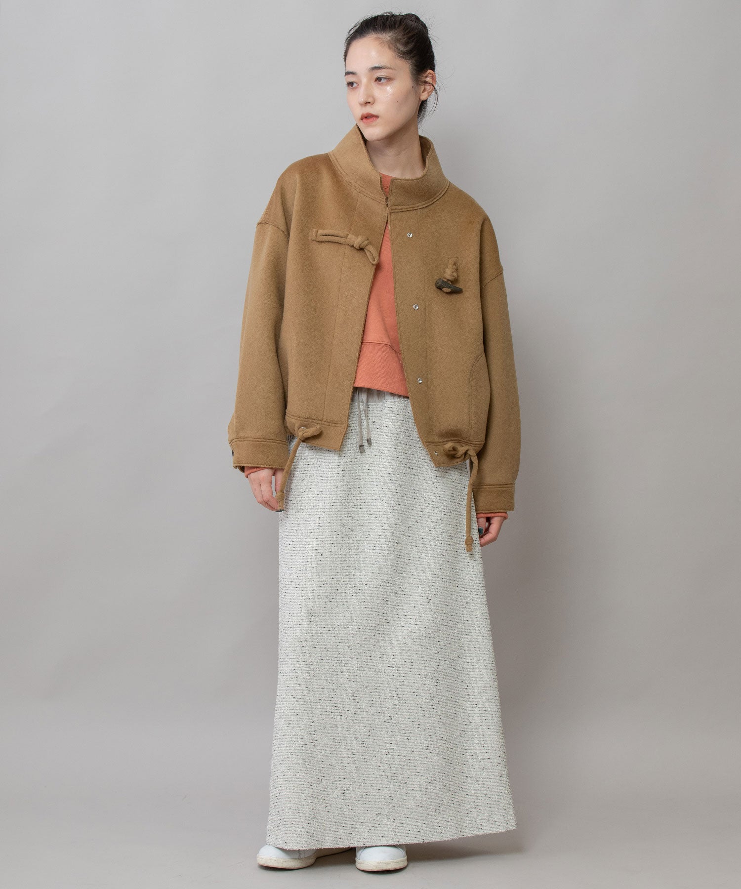 裾は画像のキャメルのように少しブラウジングさせて着ることもでき、胸元のトグル以外に裾までかくしドットがあるのでショート丈でもしっかり防寒アイテムとして使えます。