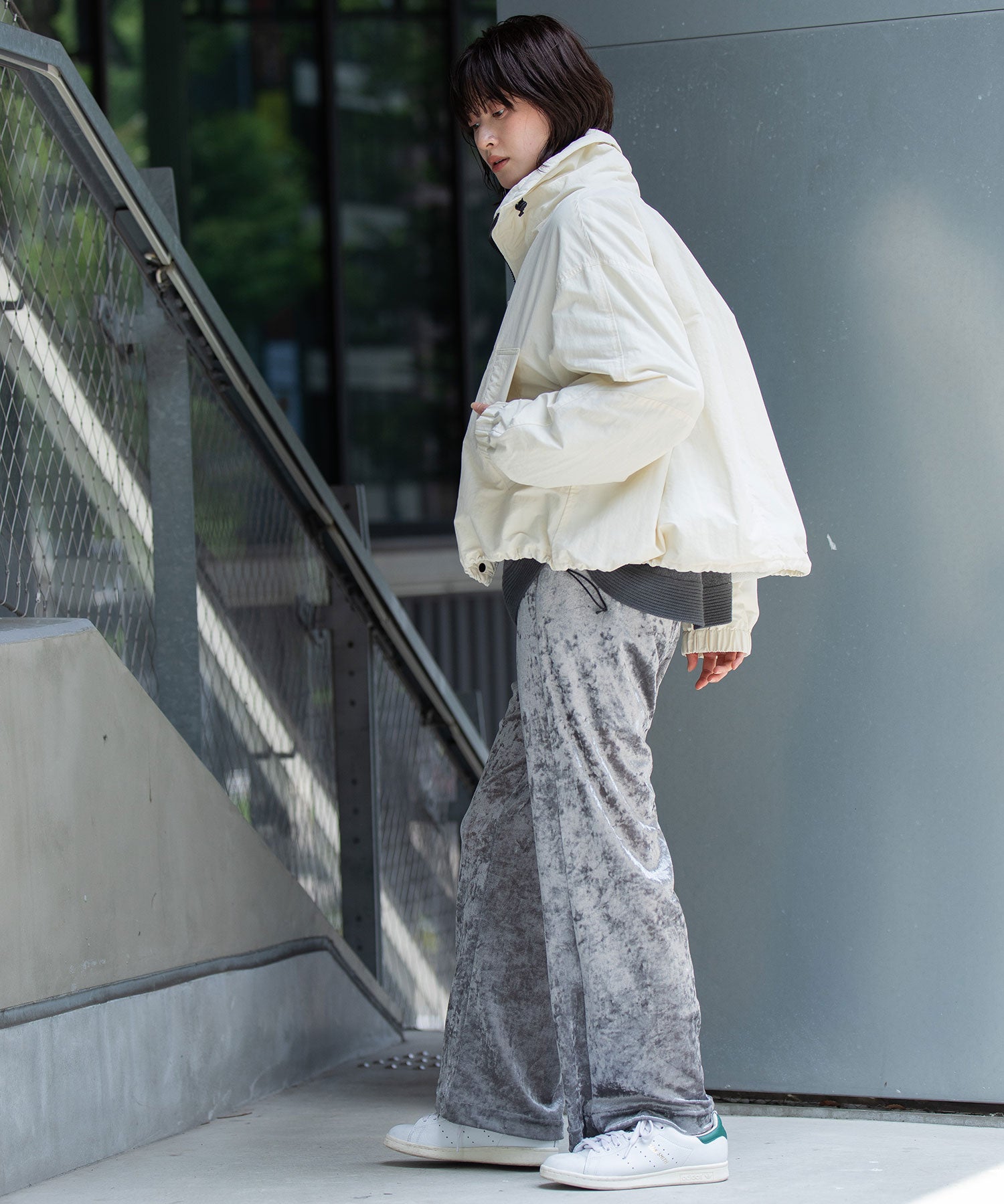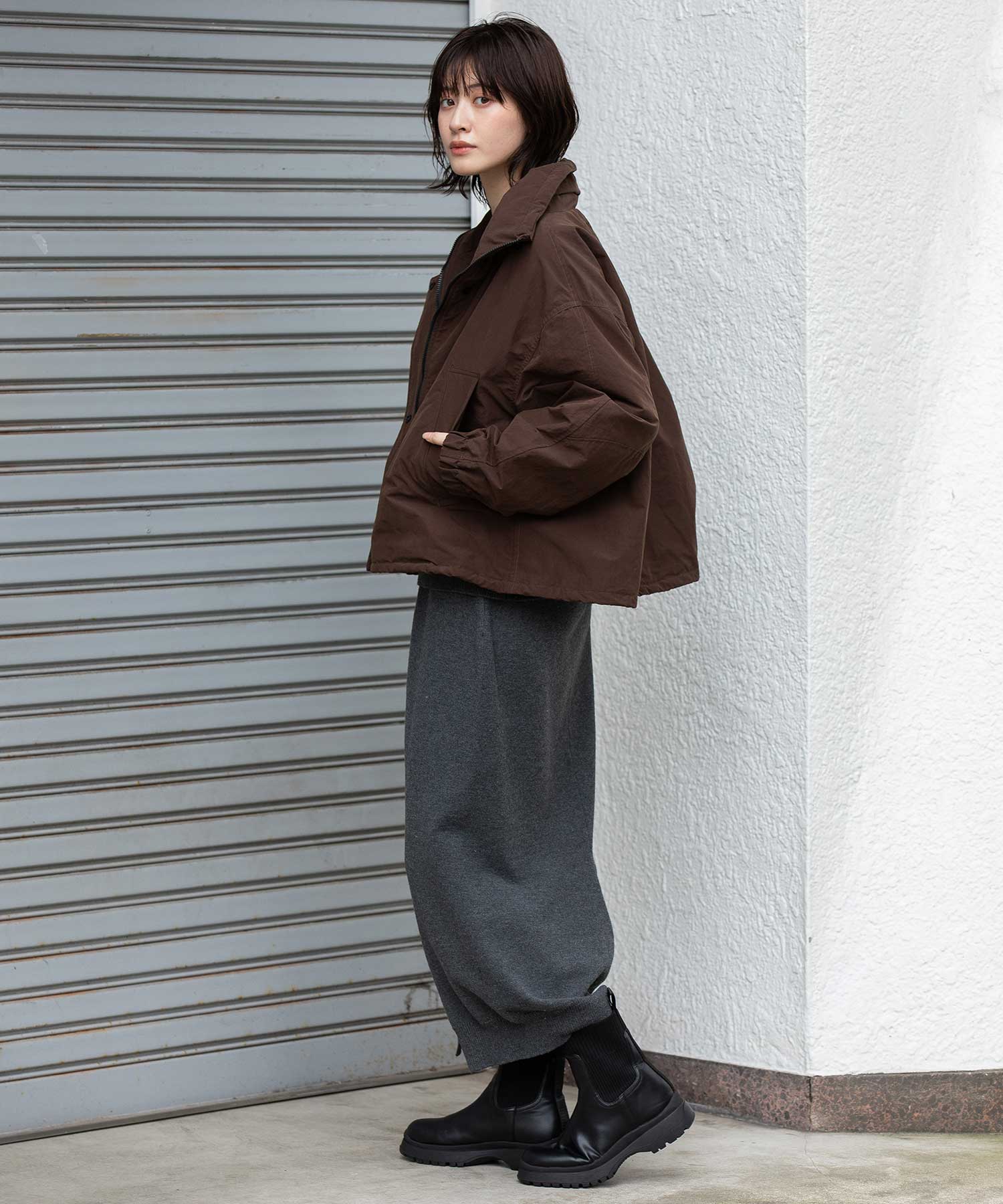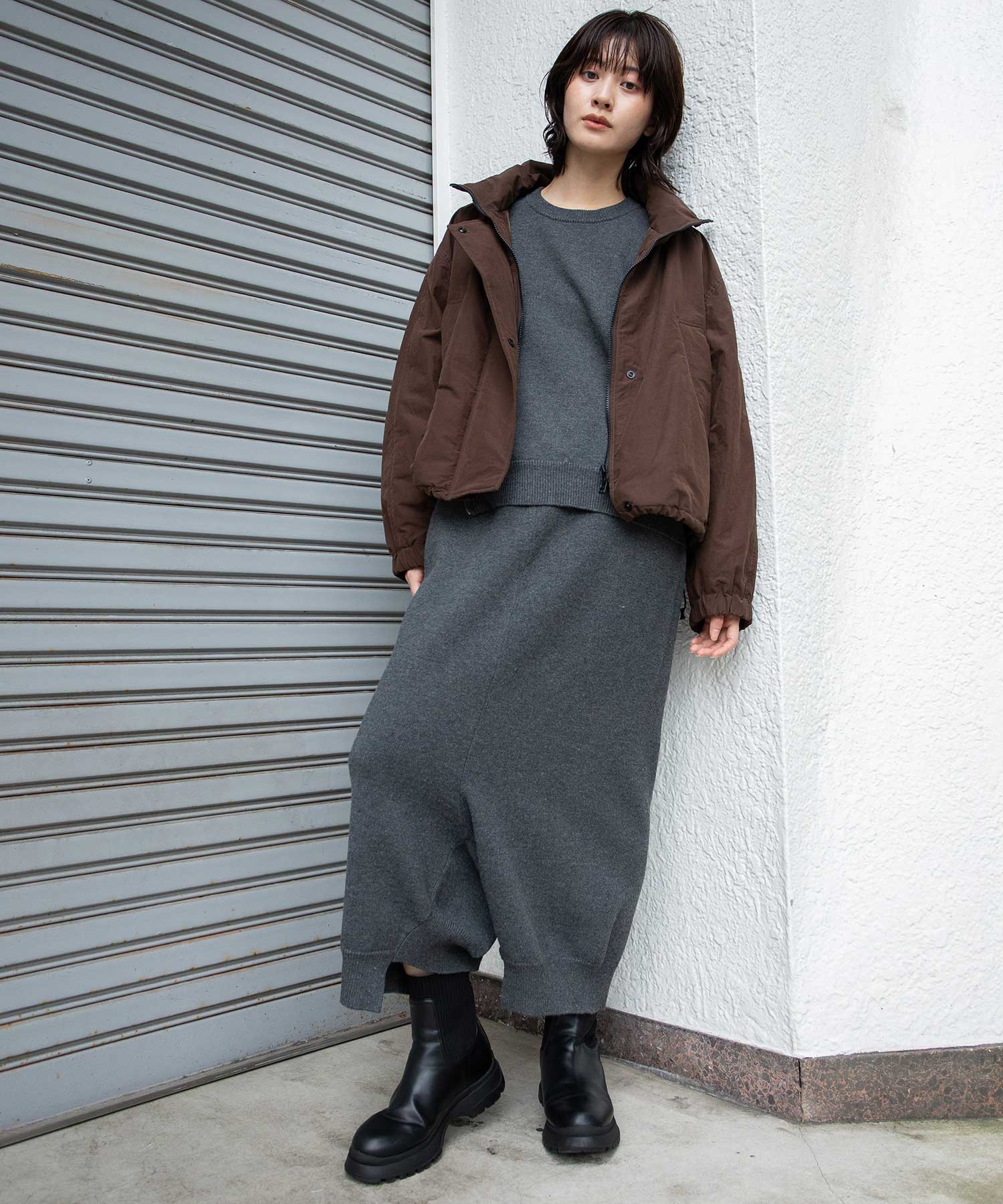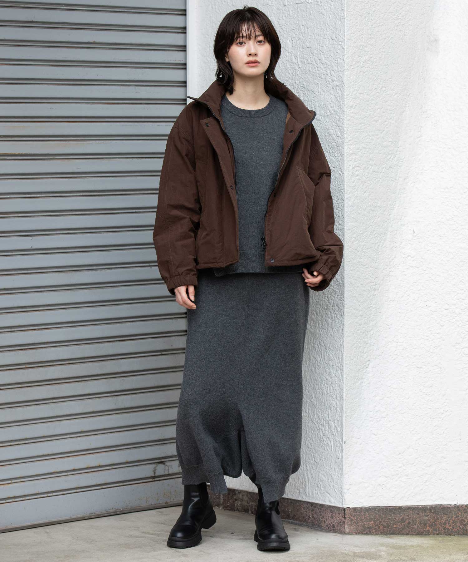ボリューム感レングスともにすごくコーデのバランスがとりやすく、パンツでもスカート合わせでもレングス/シルエットを選ばずいいかんじにまとまります。