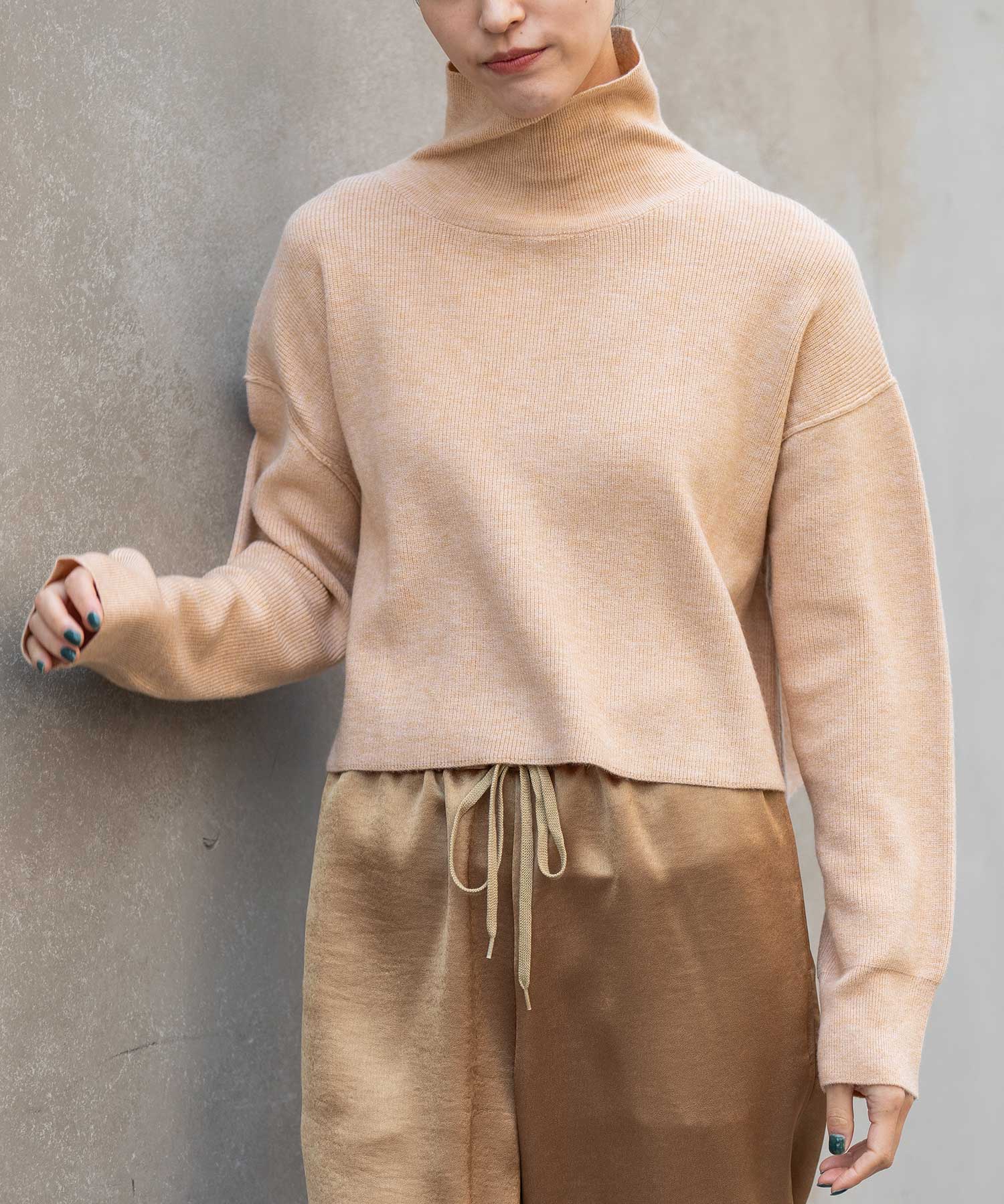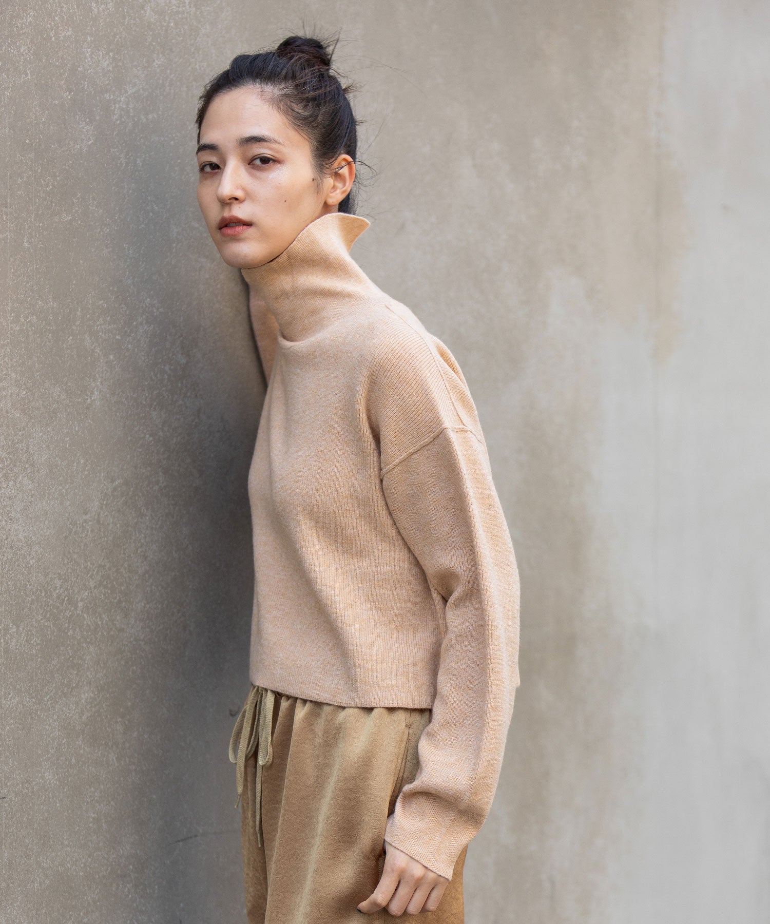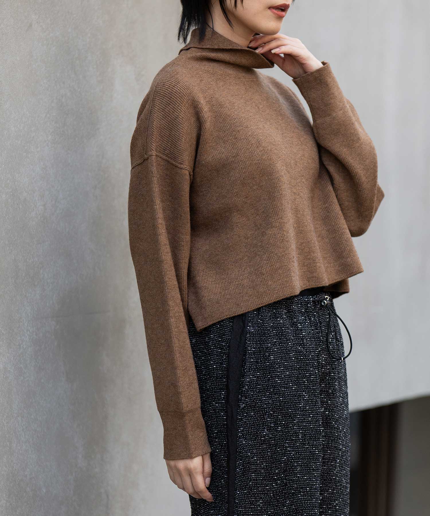 12GG片畦編みニットタートルネックワイドプルオーバー