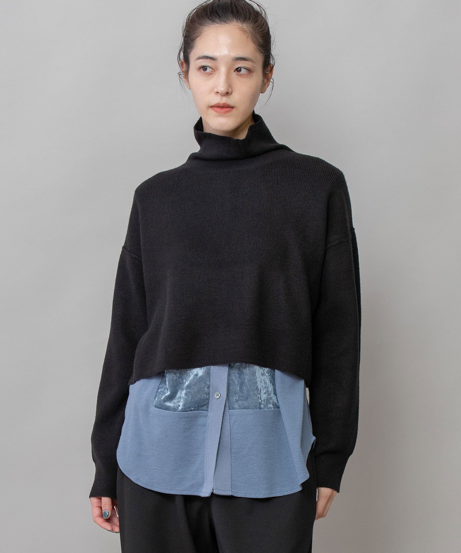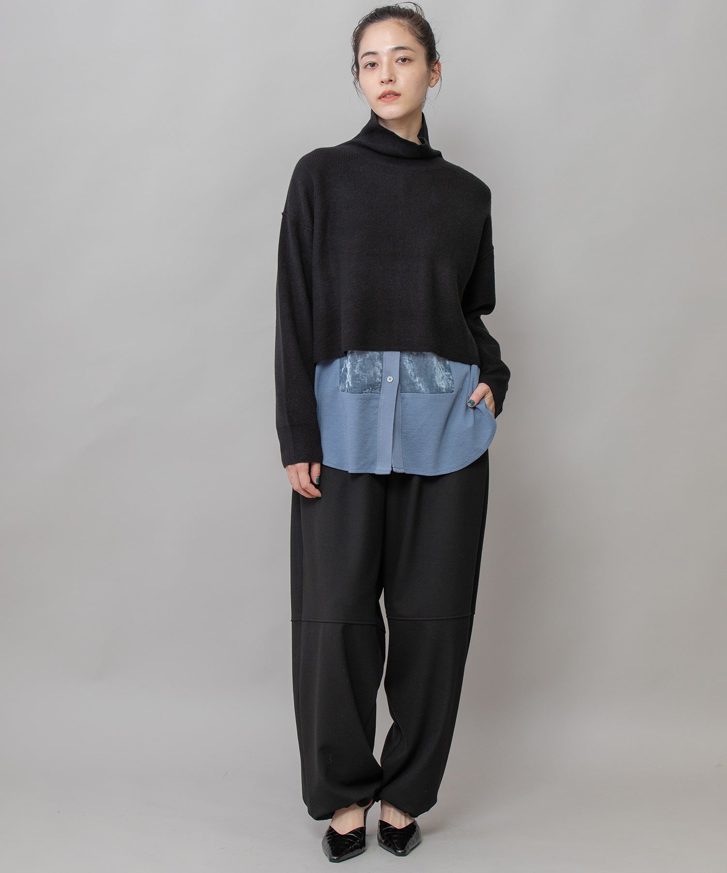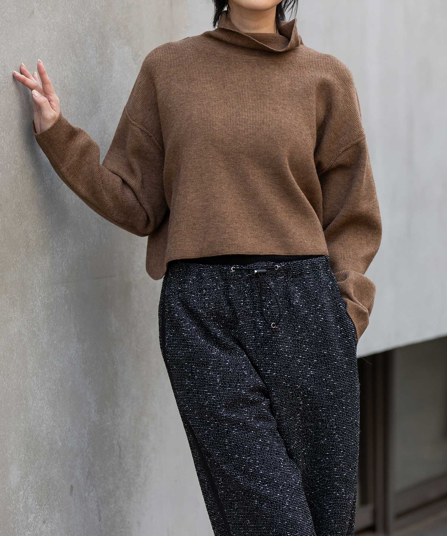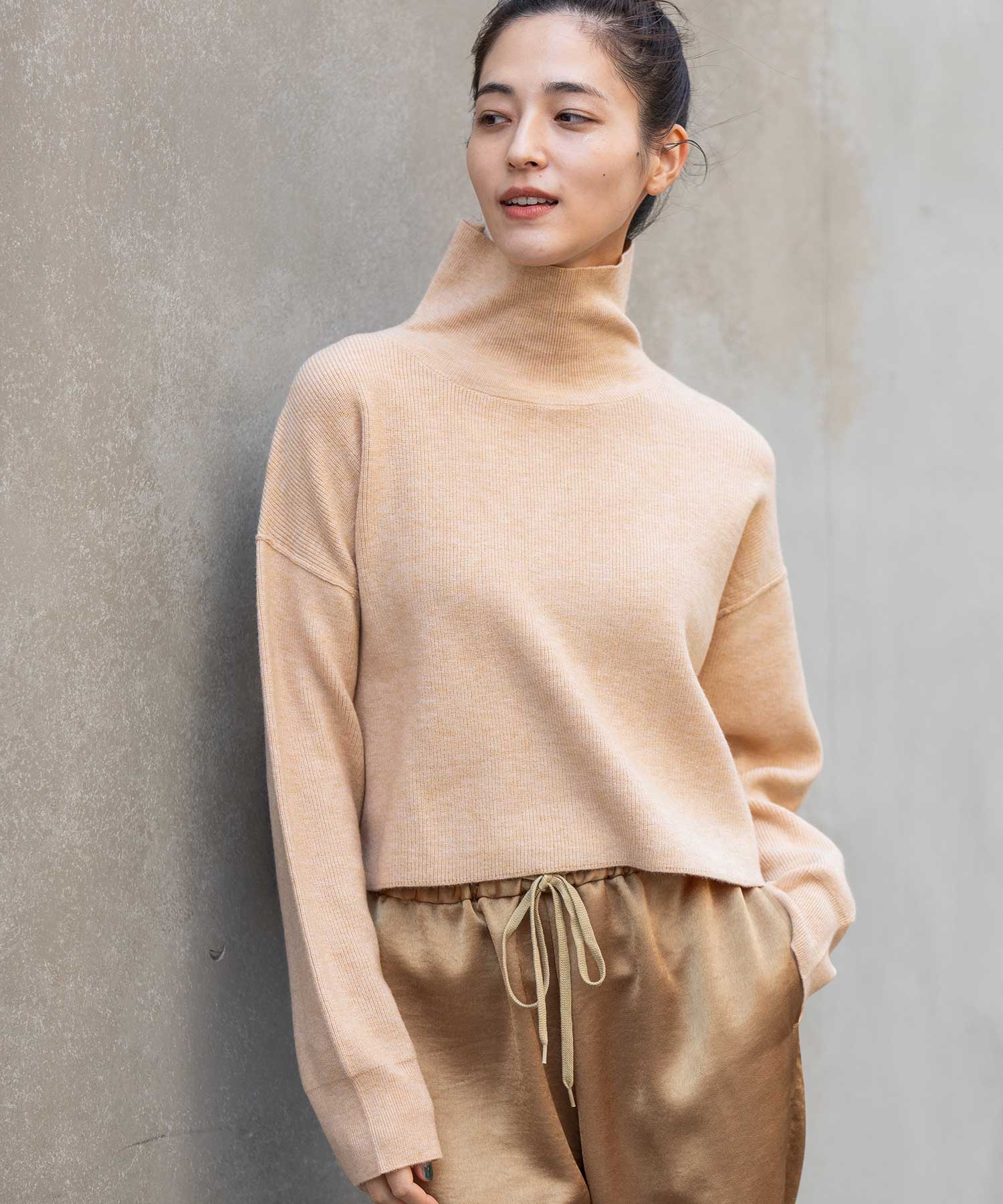 12GG片畦編みニットタートルネックワイドプルオーバー