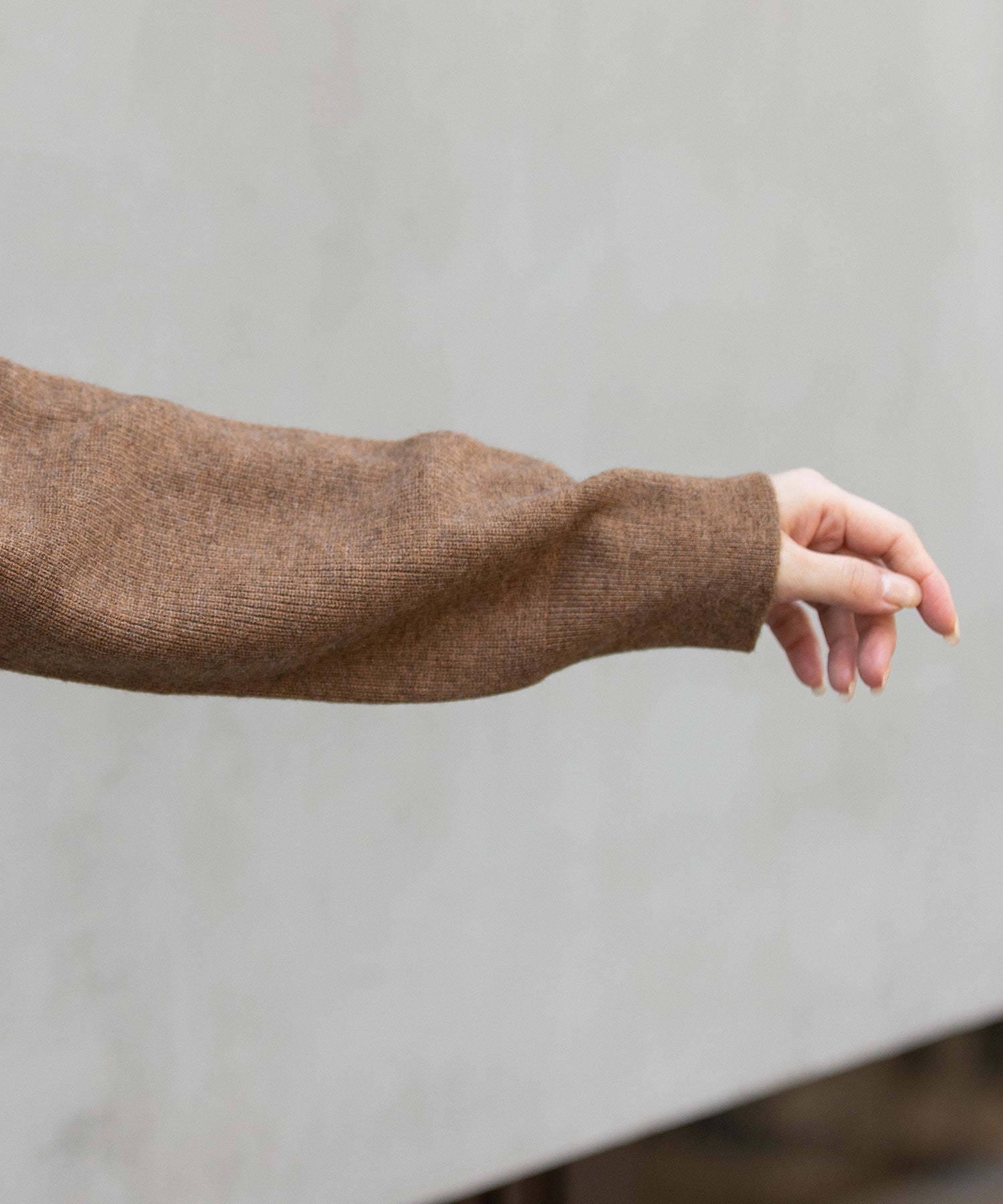 暖かみ、適度な重みもあり、毛羽も少なく秋の立ち上がりから長く着られる素材感で、肌触りはソフトなタッチでチクチクしないストレスフリーな着心地です。