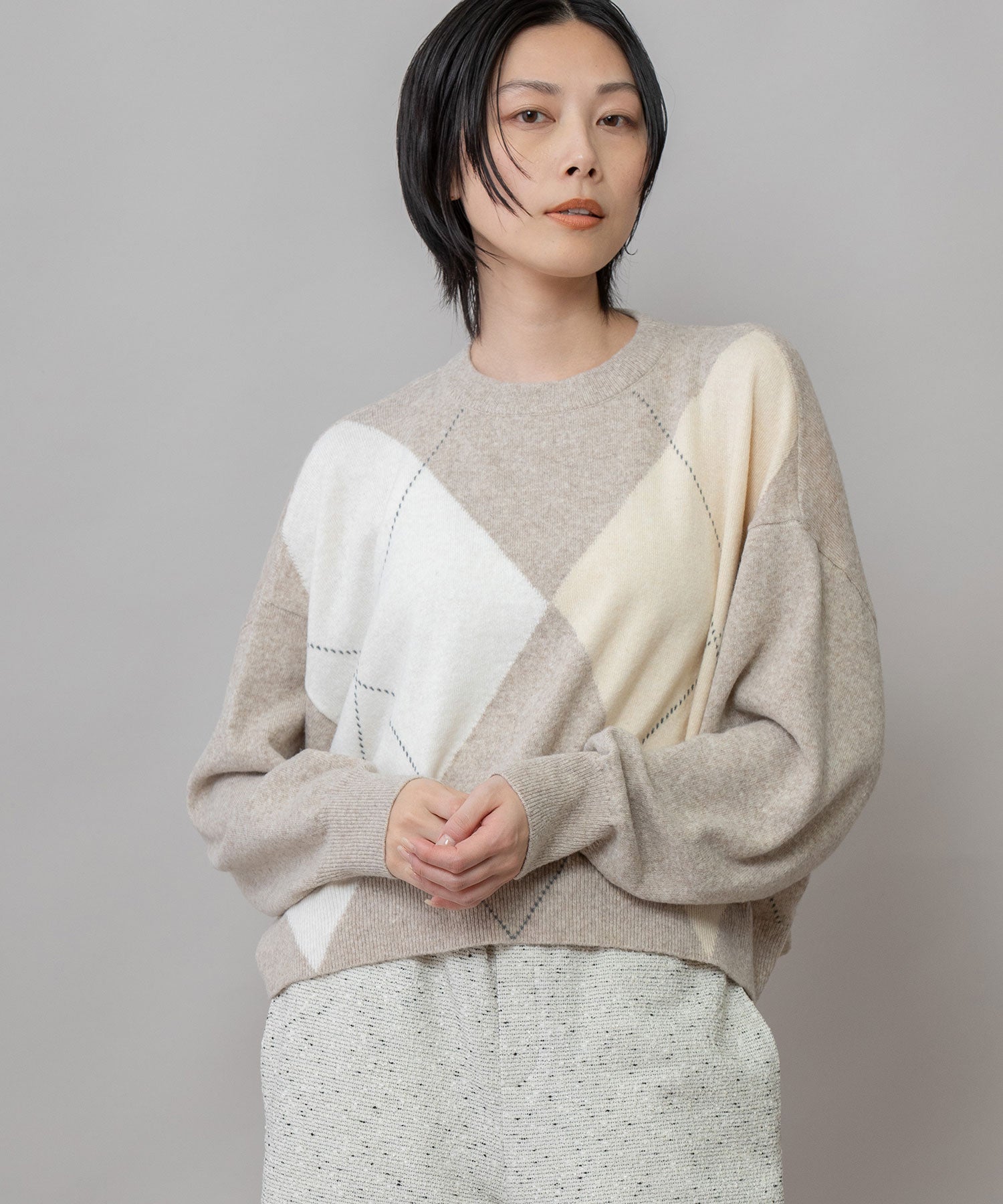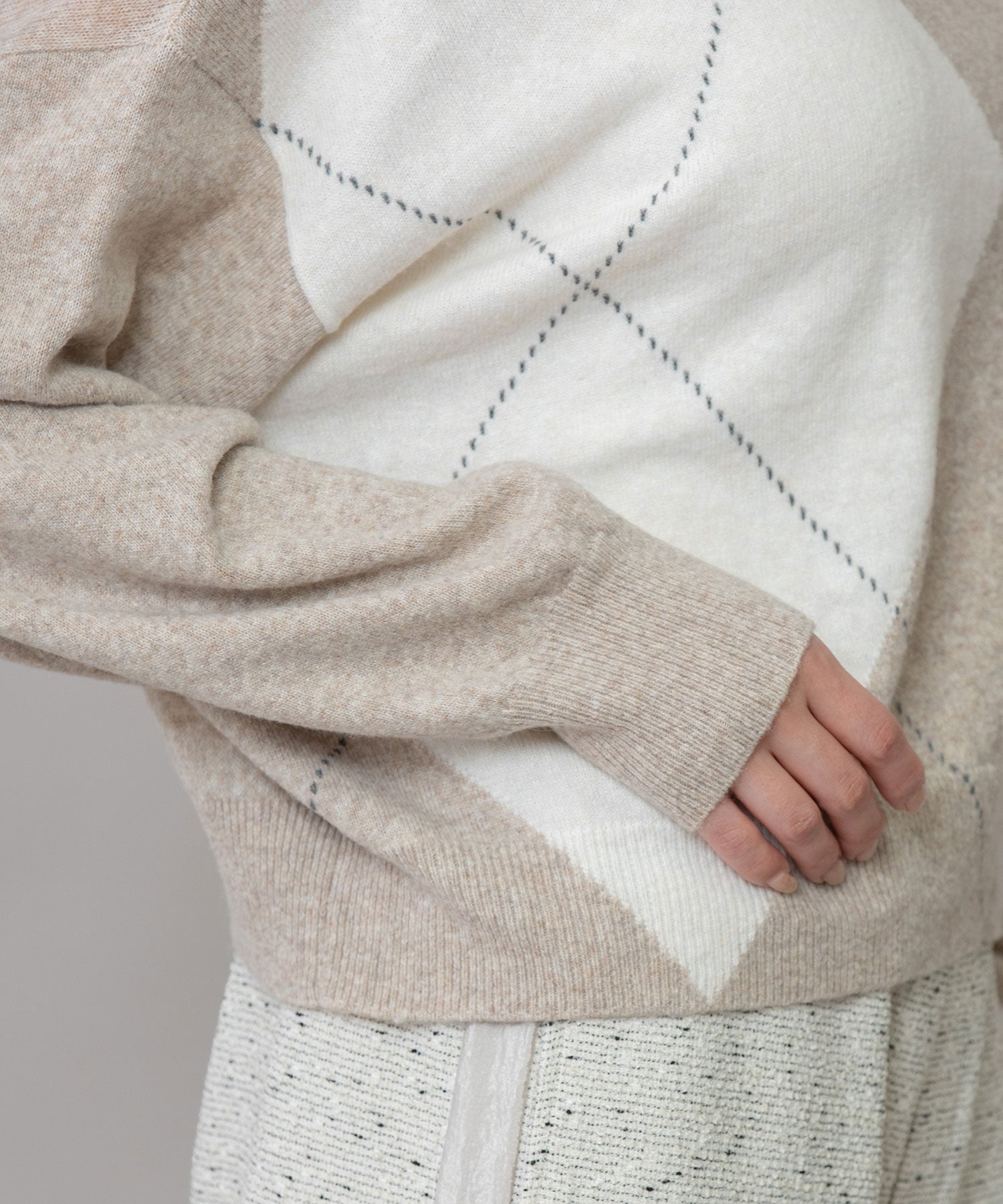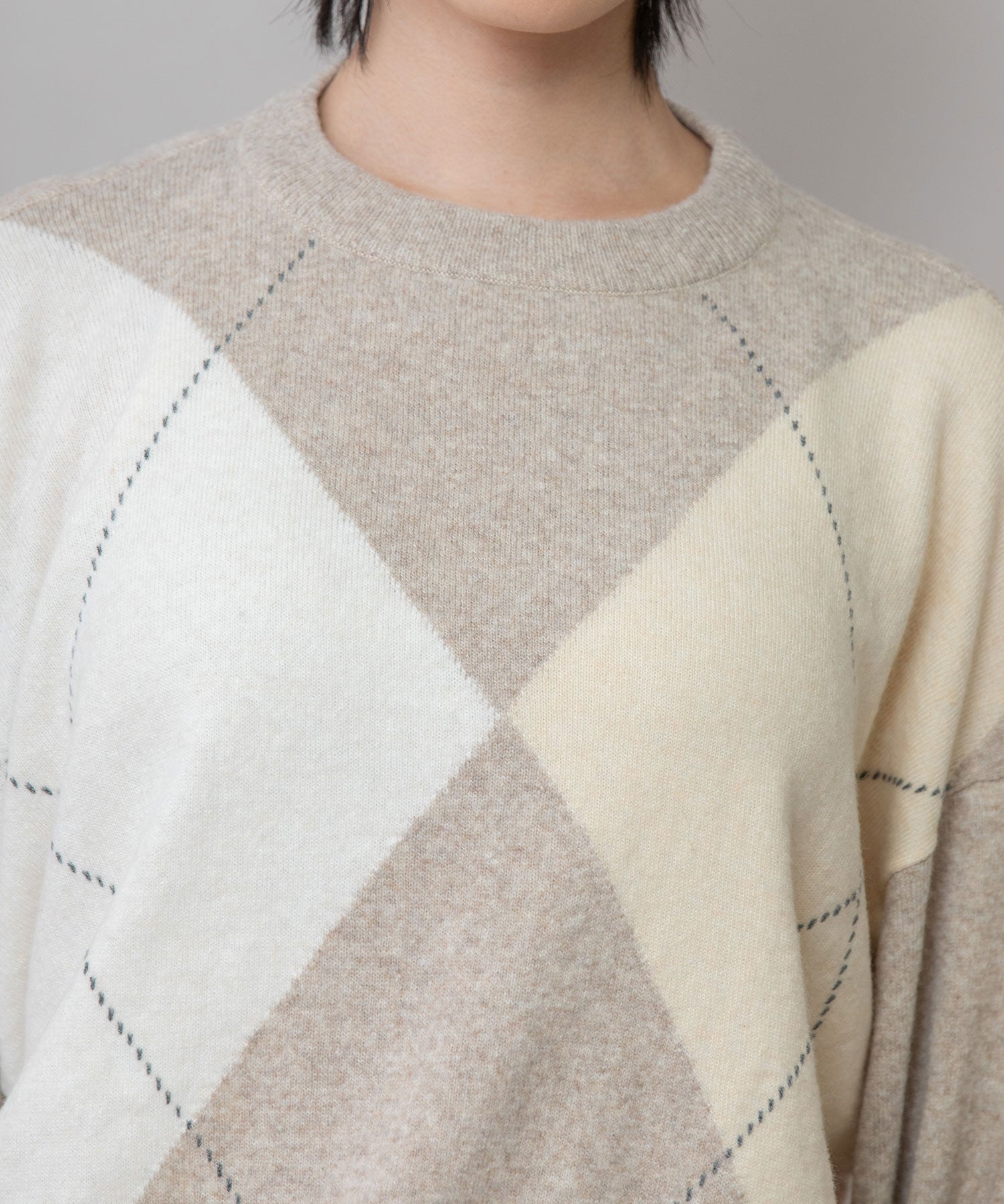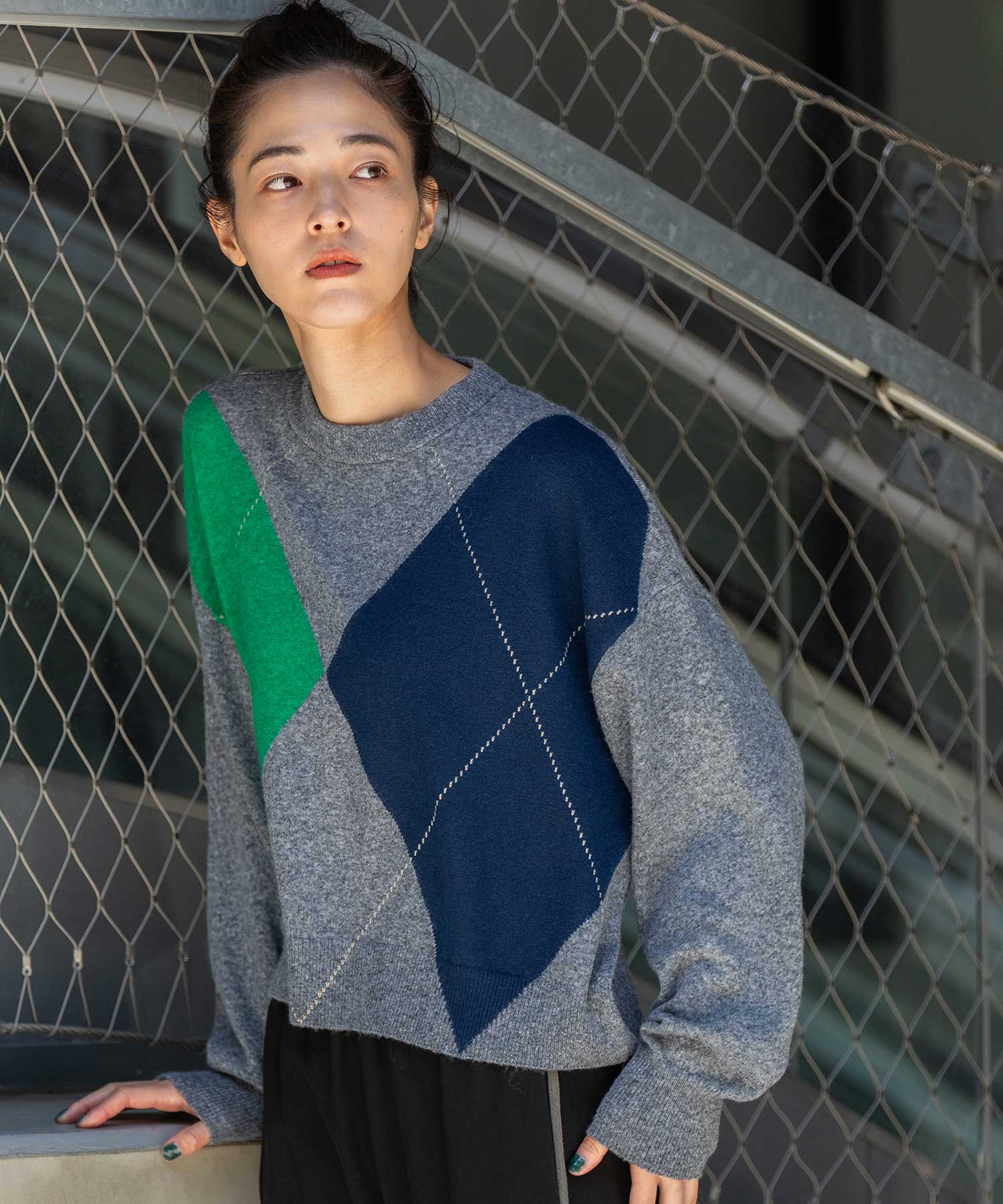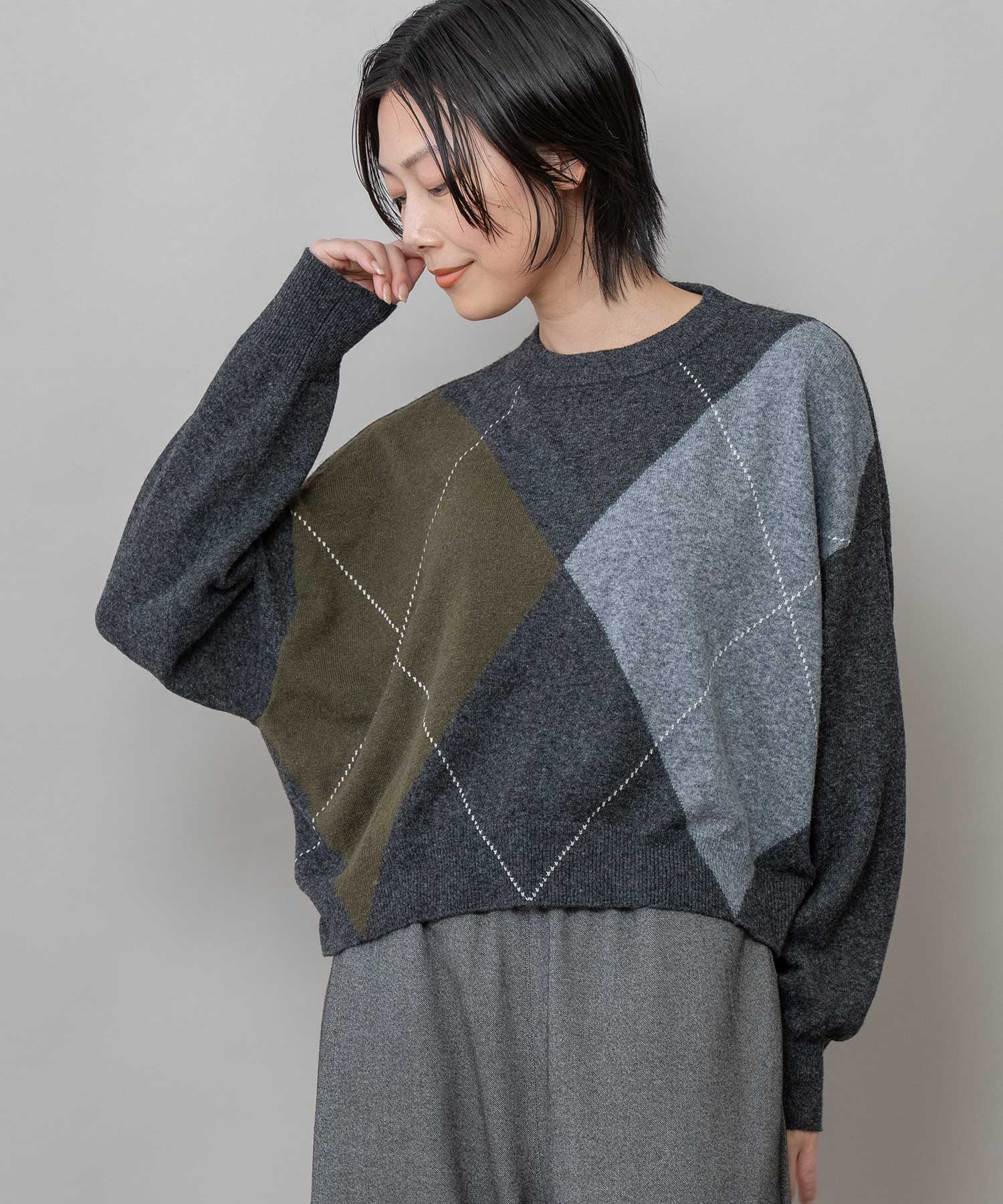 ◆トラッドなアーガイル柄を女性らしく大人っぽく仕上げた横広シルエットのニットトップス◆