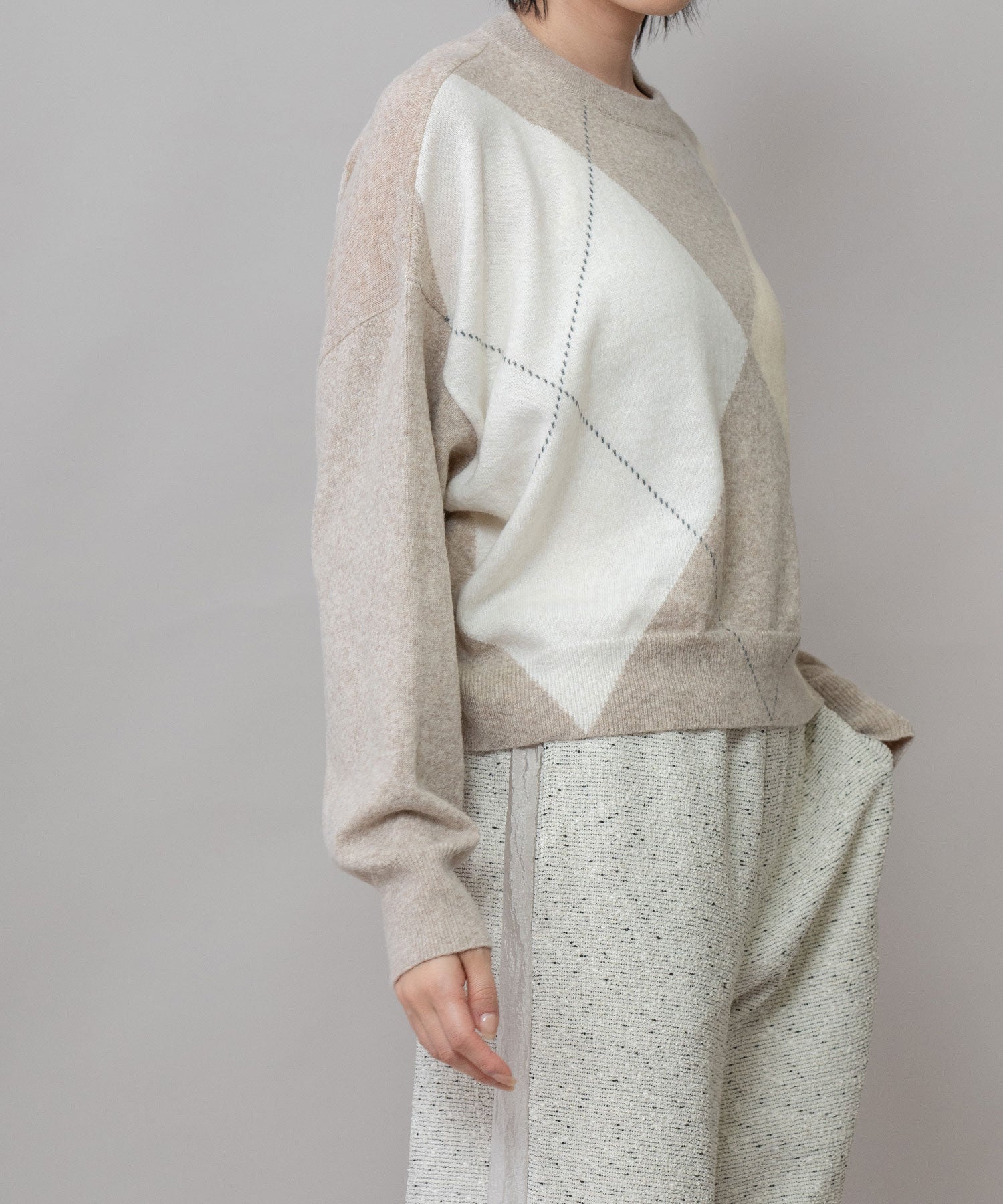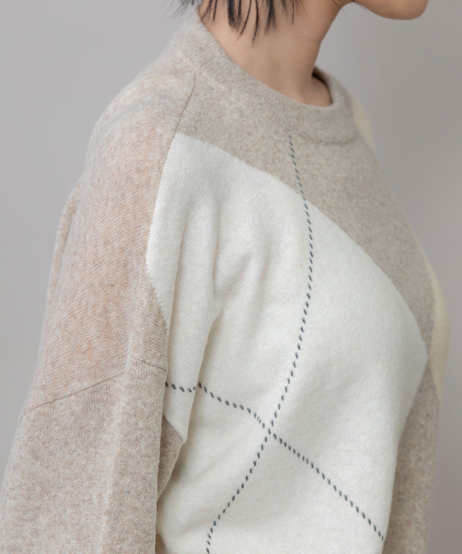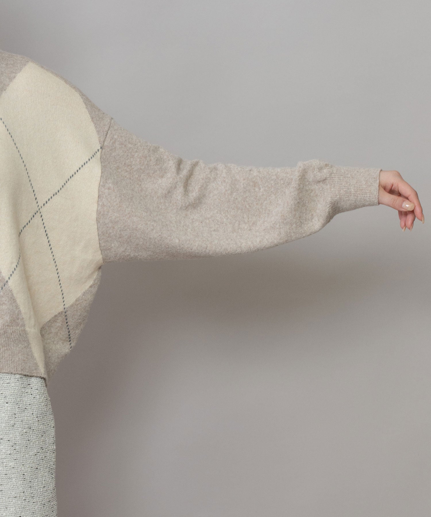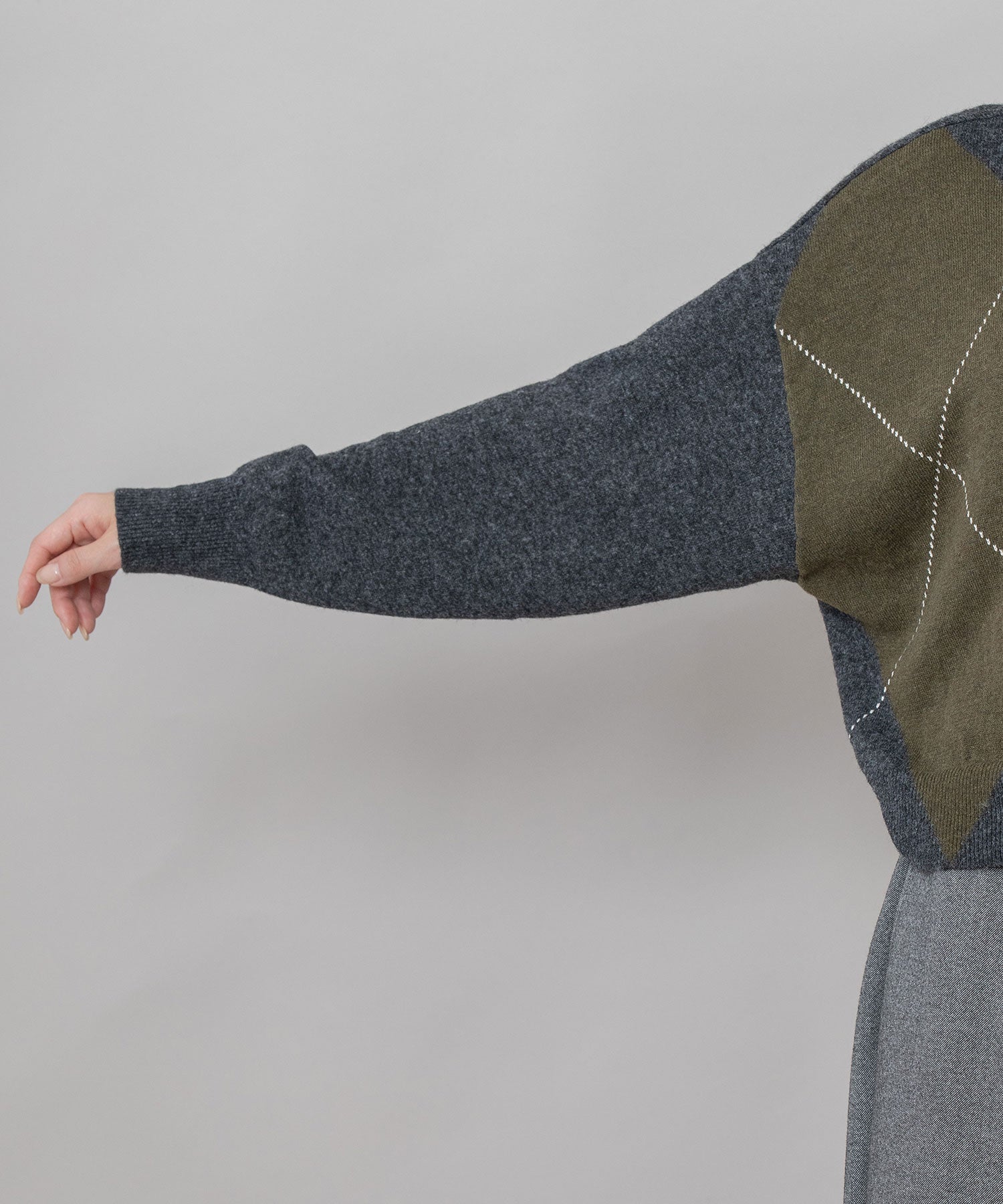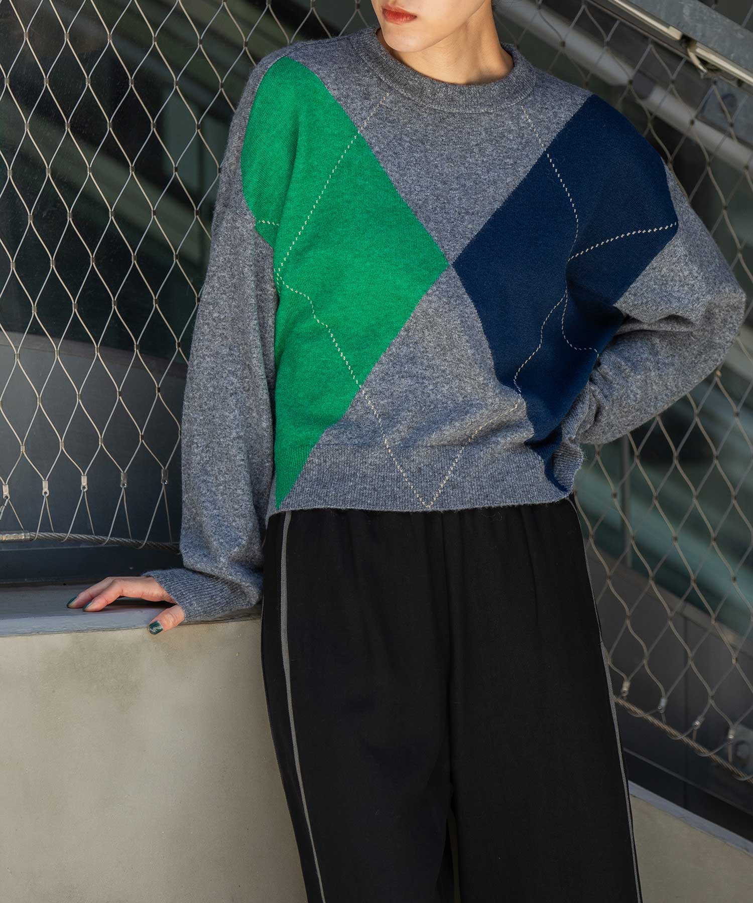 ◆トラッドなアーガイル柄を女性らしく大人っぽく仕上げた横広シルエットのニットトップス◆