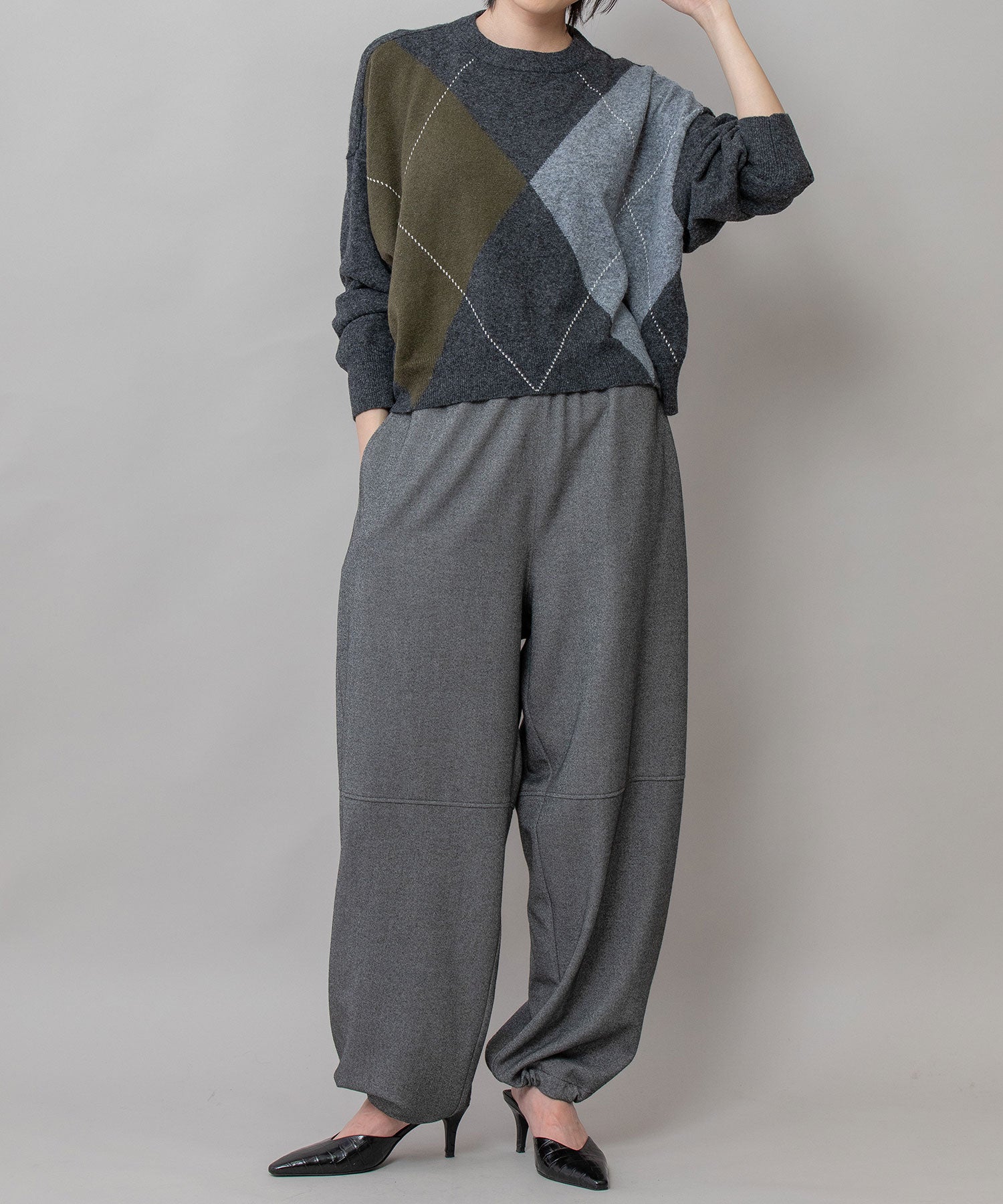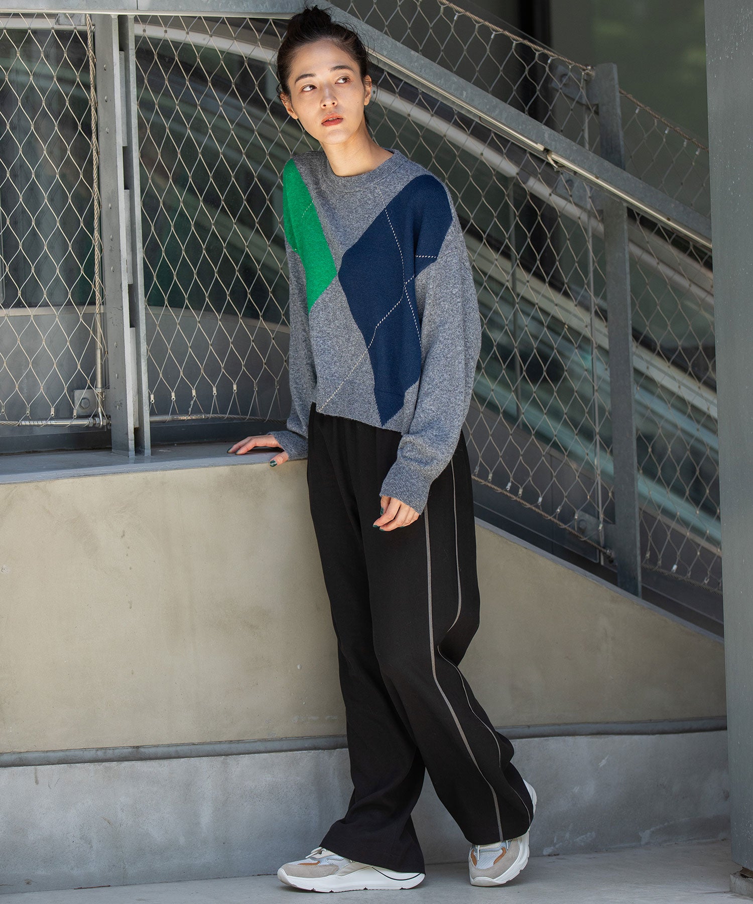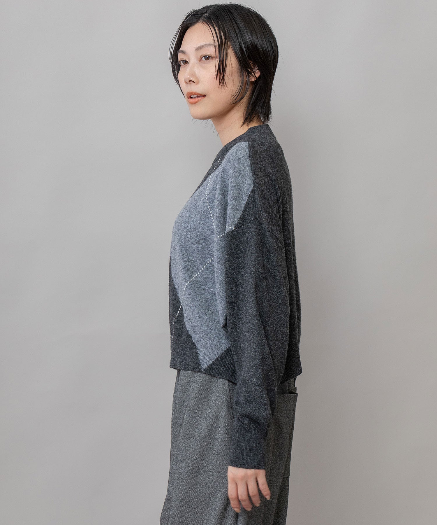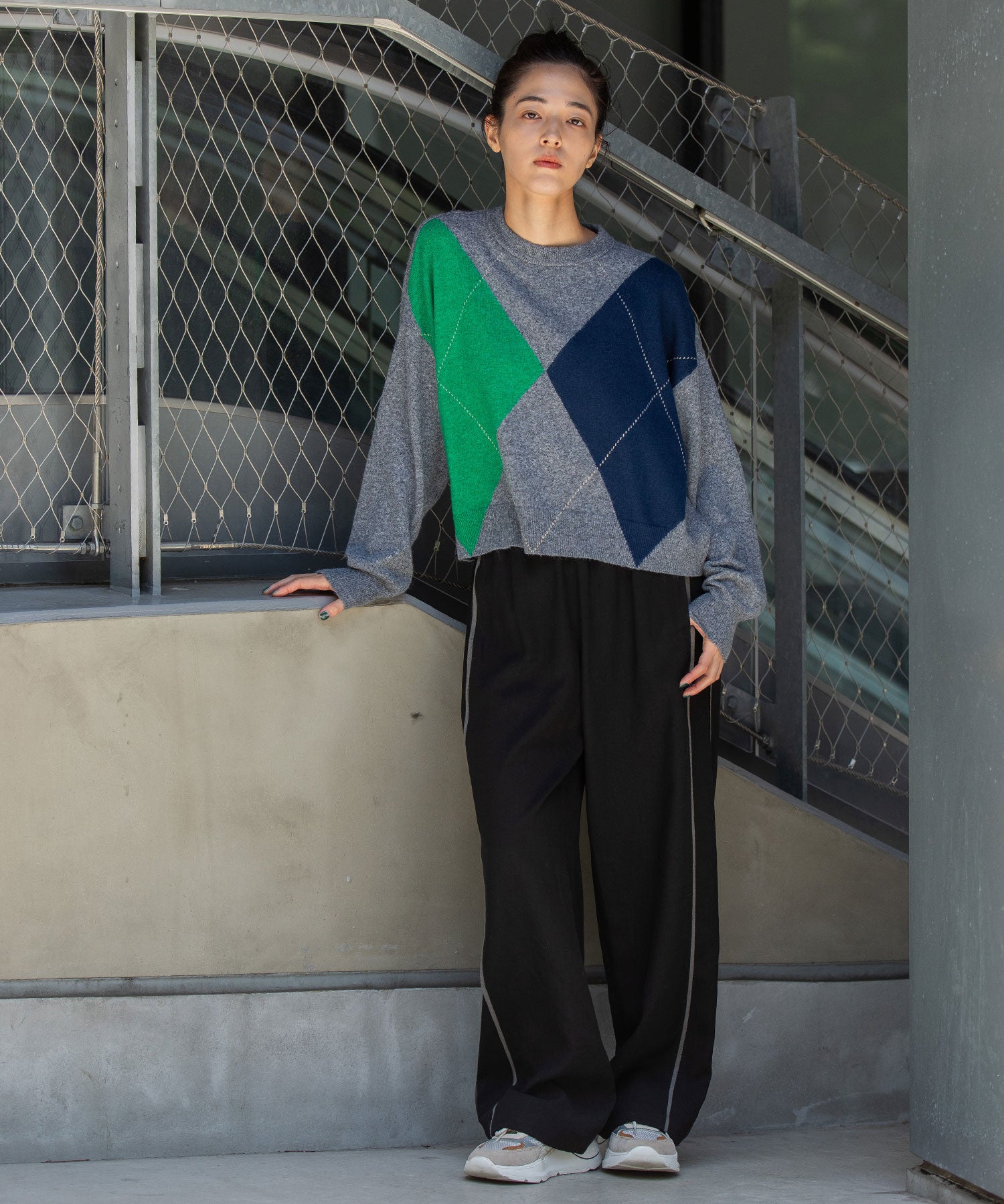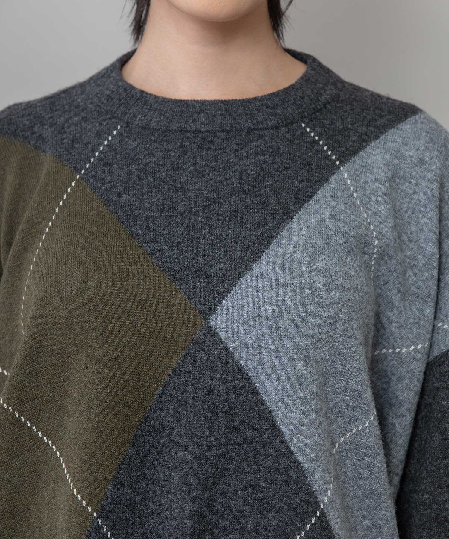 ◆トラッドなアーガイル柄を女性らしく大人っぽく仕上げた横広シルエットのニットトップス◆