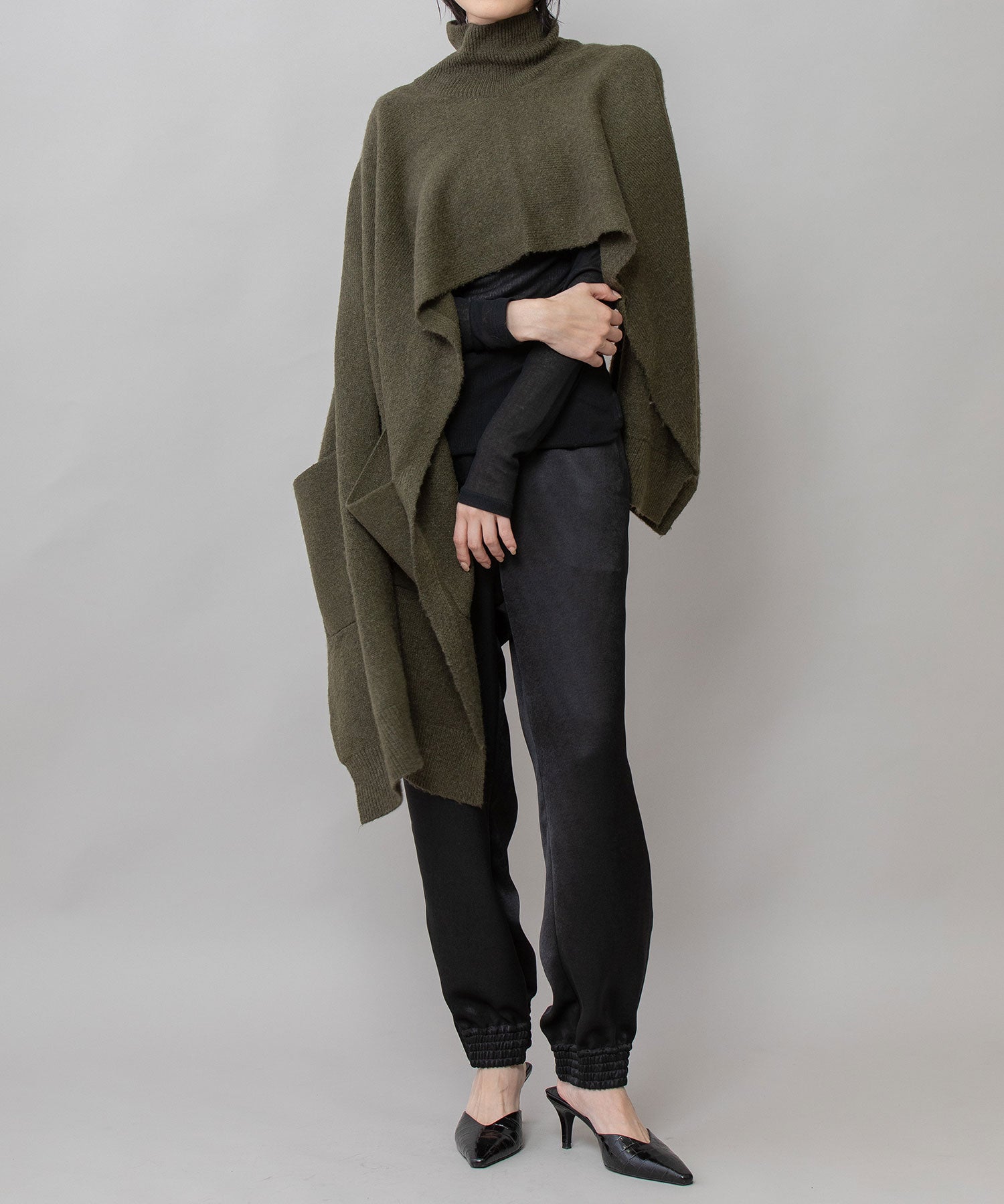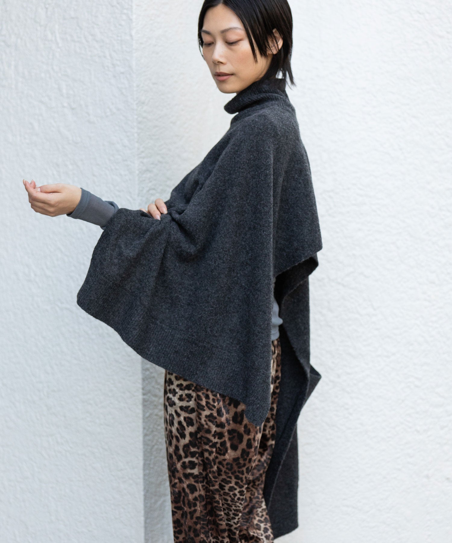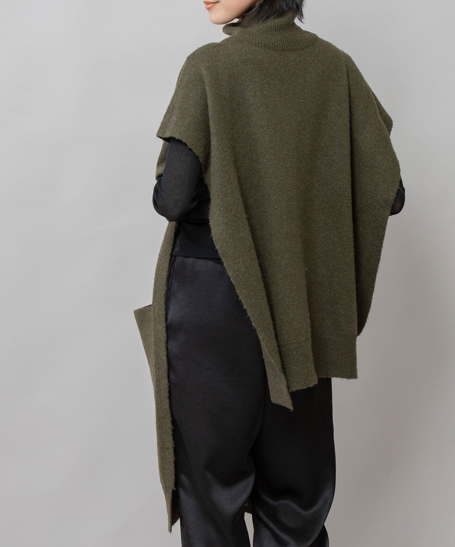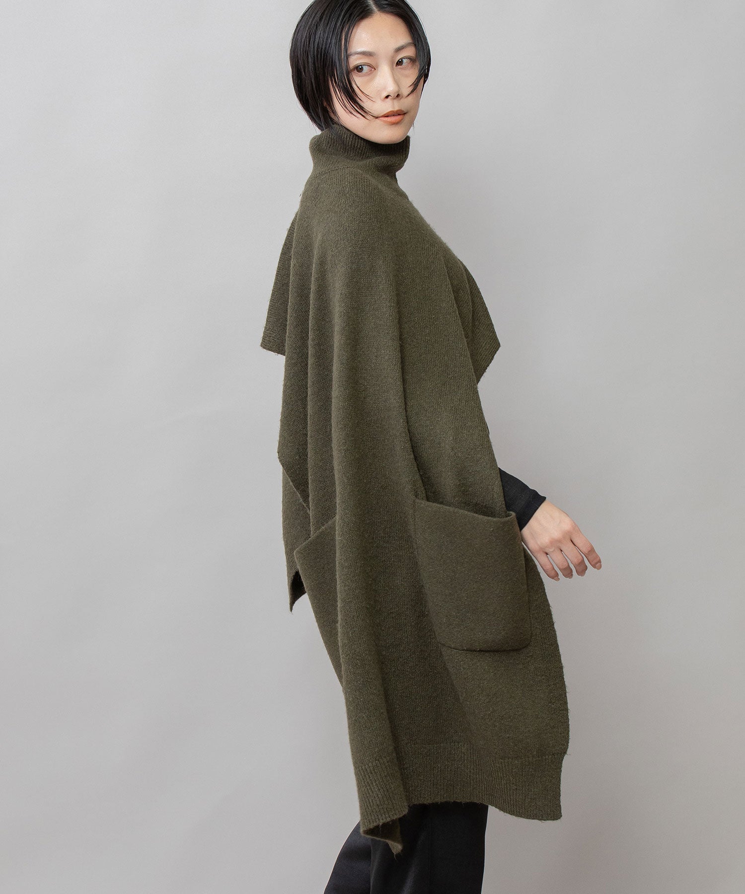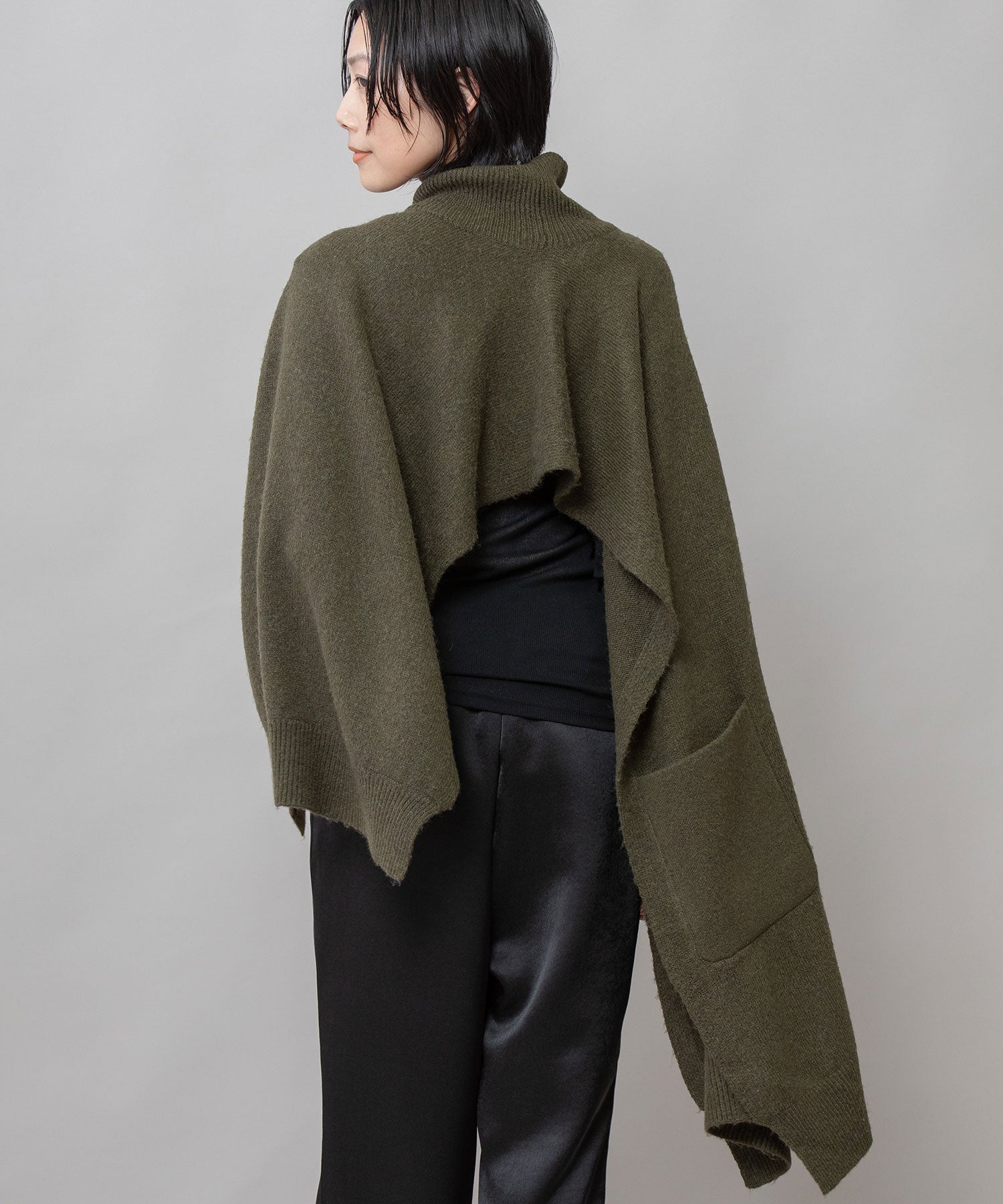 前後で着丈に大きく差をつけたタートルネックショールです。