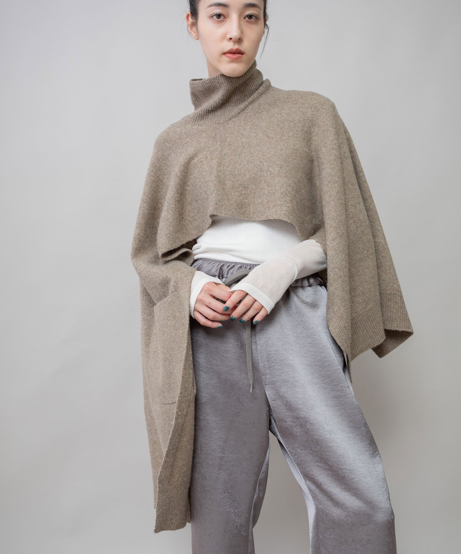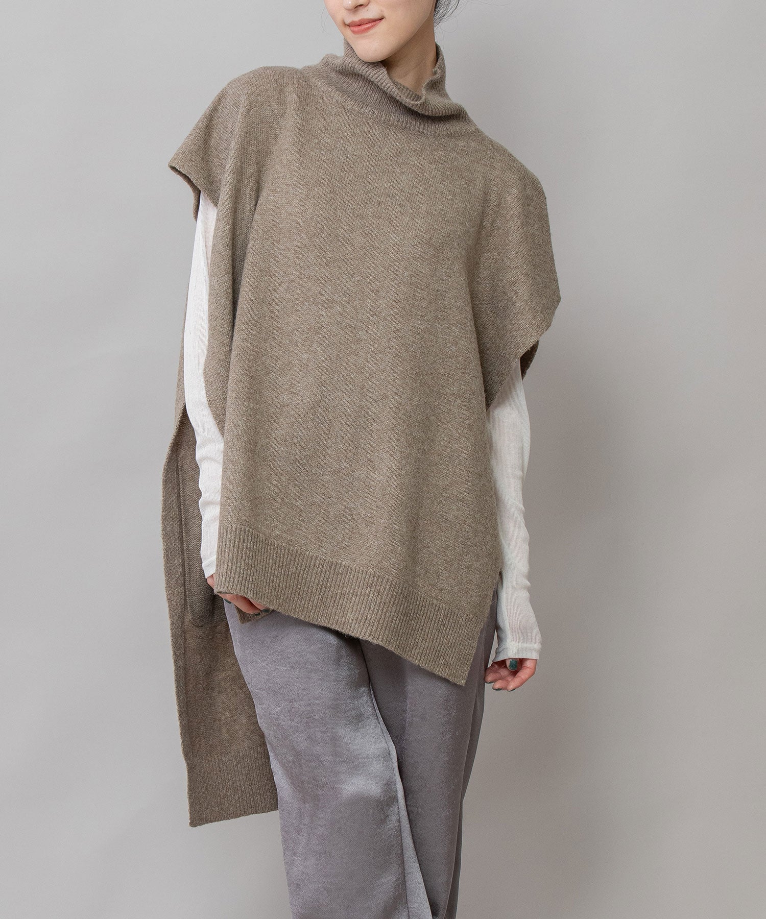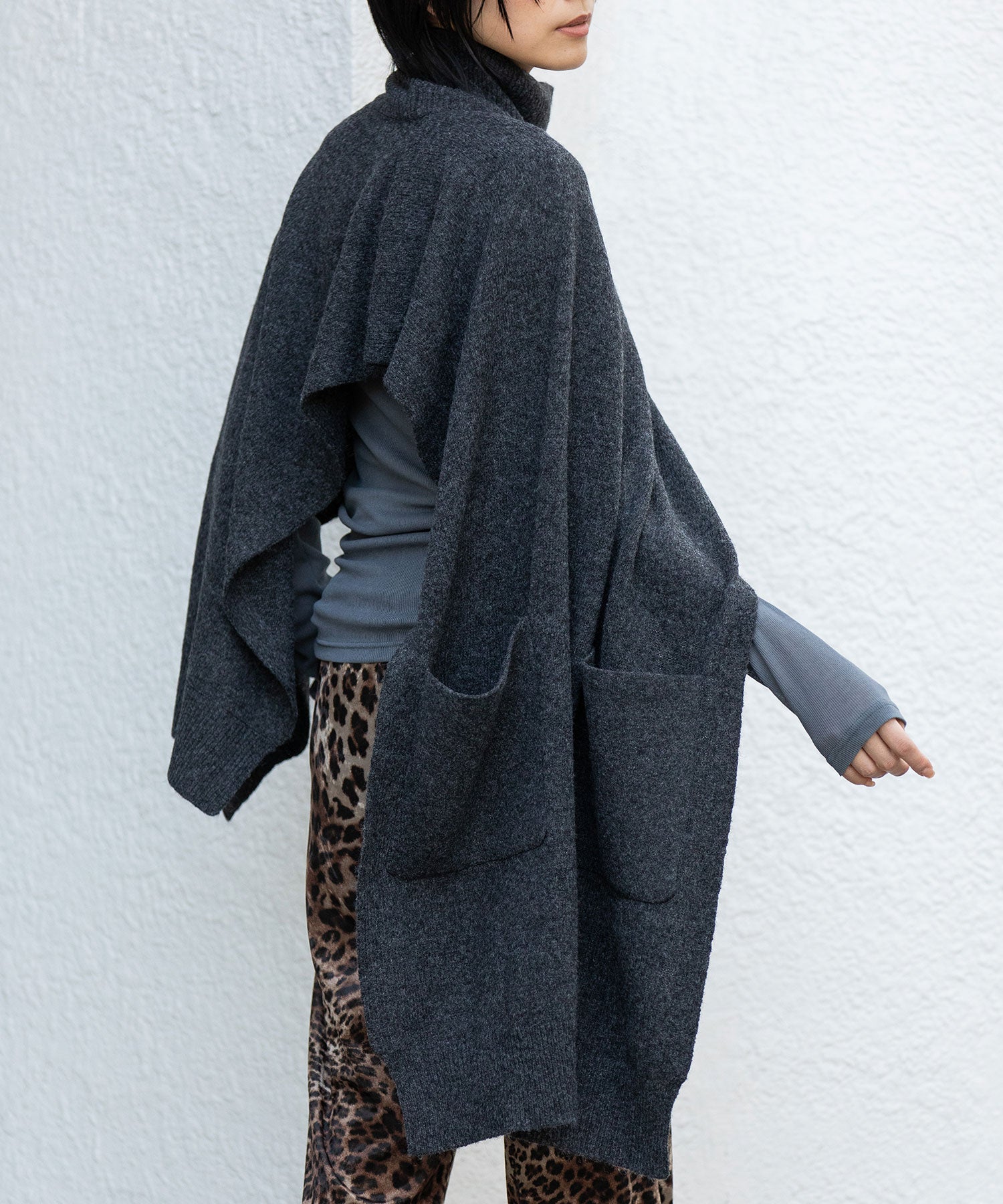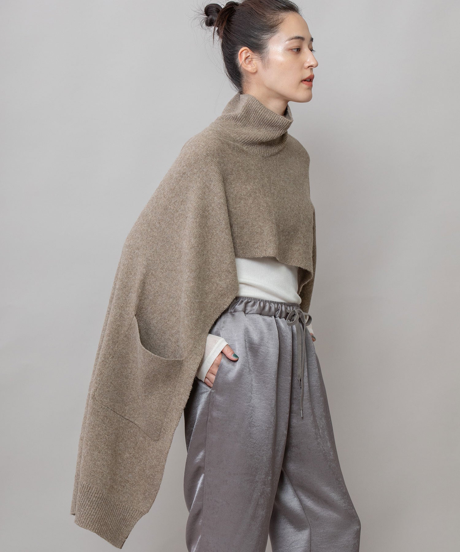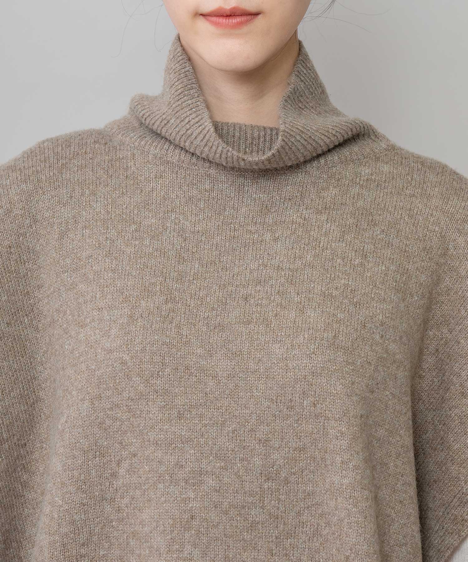 前後で着丈に大きく差をつけたタートルネックショールです。