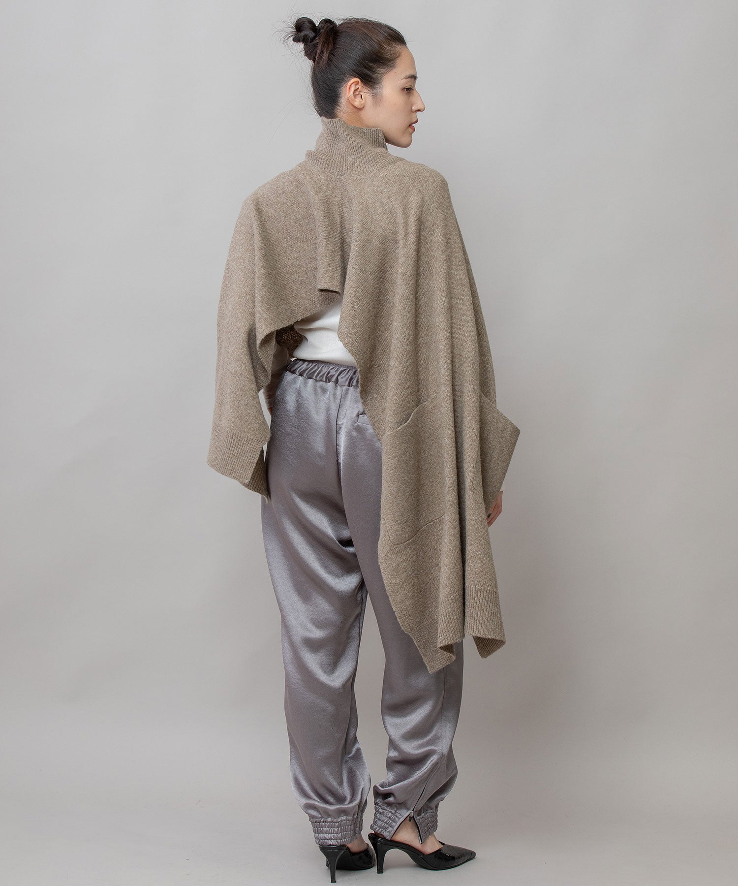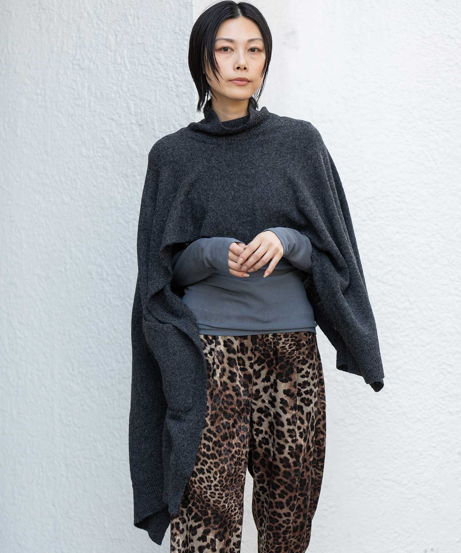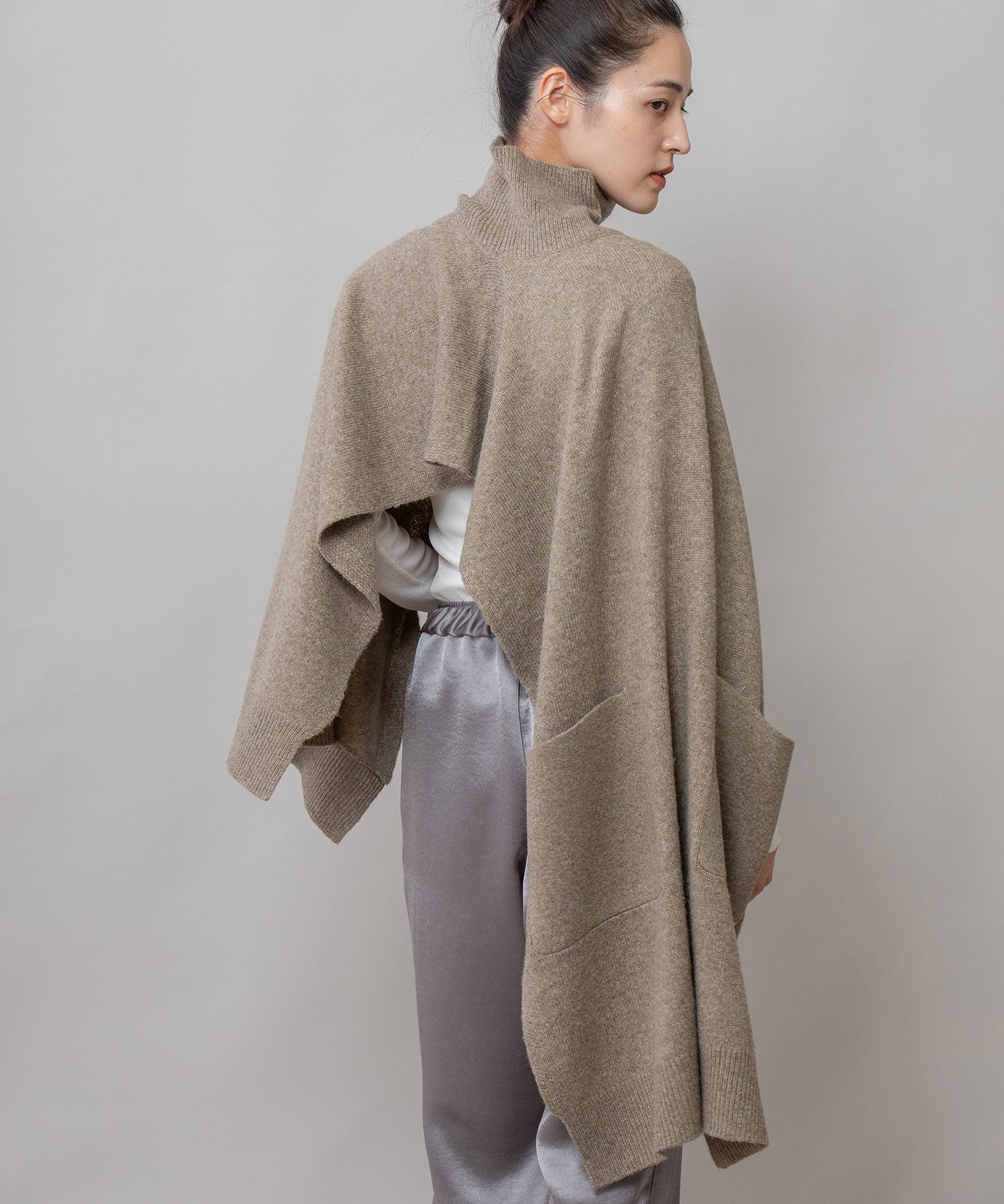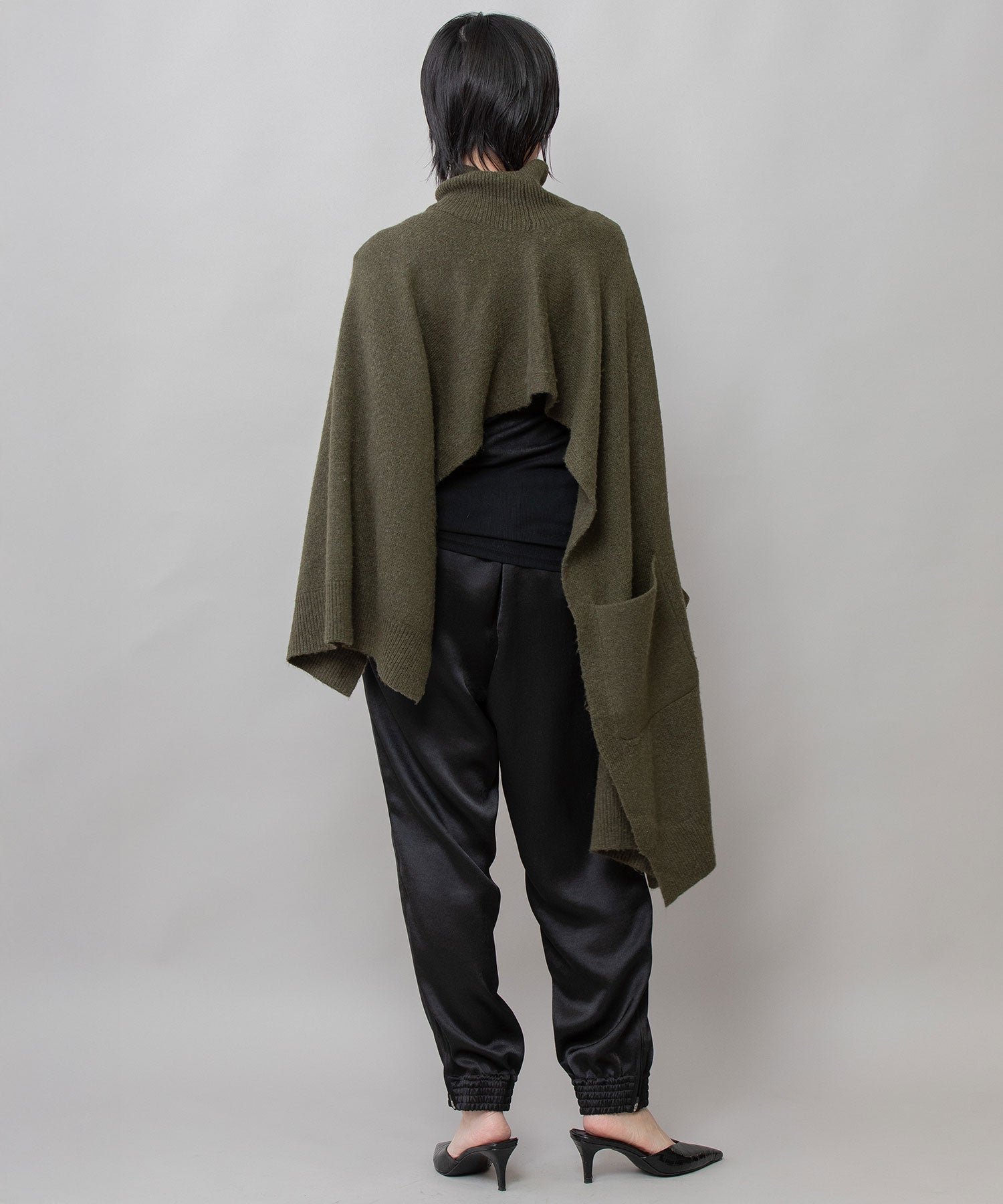 前後で着丈に大きく差をつけたタートルネックショールです。