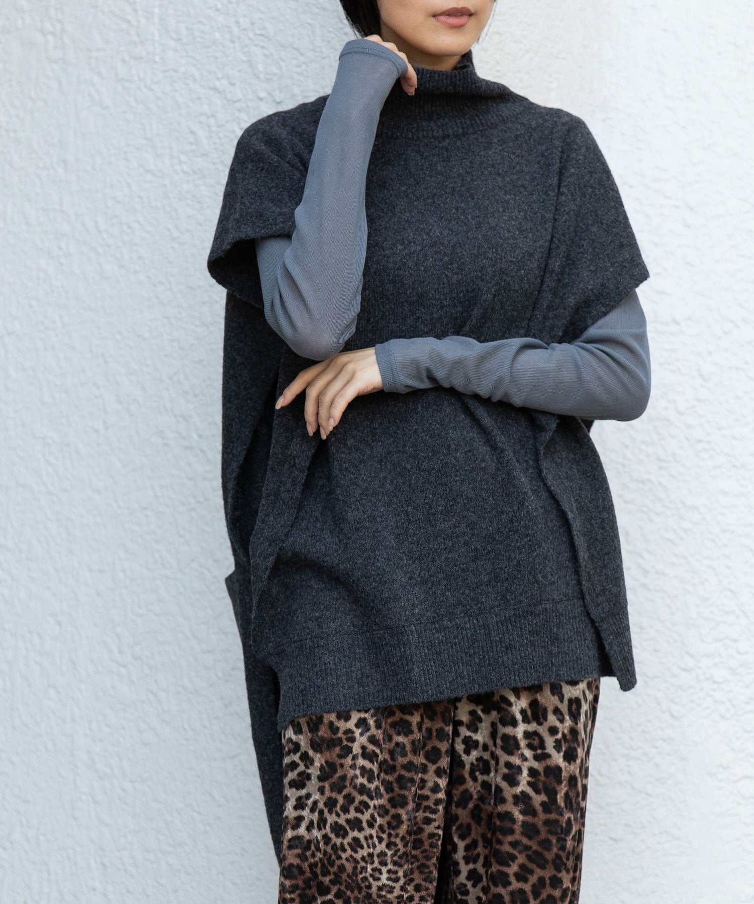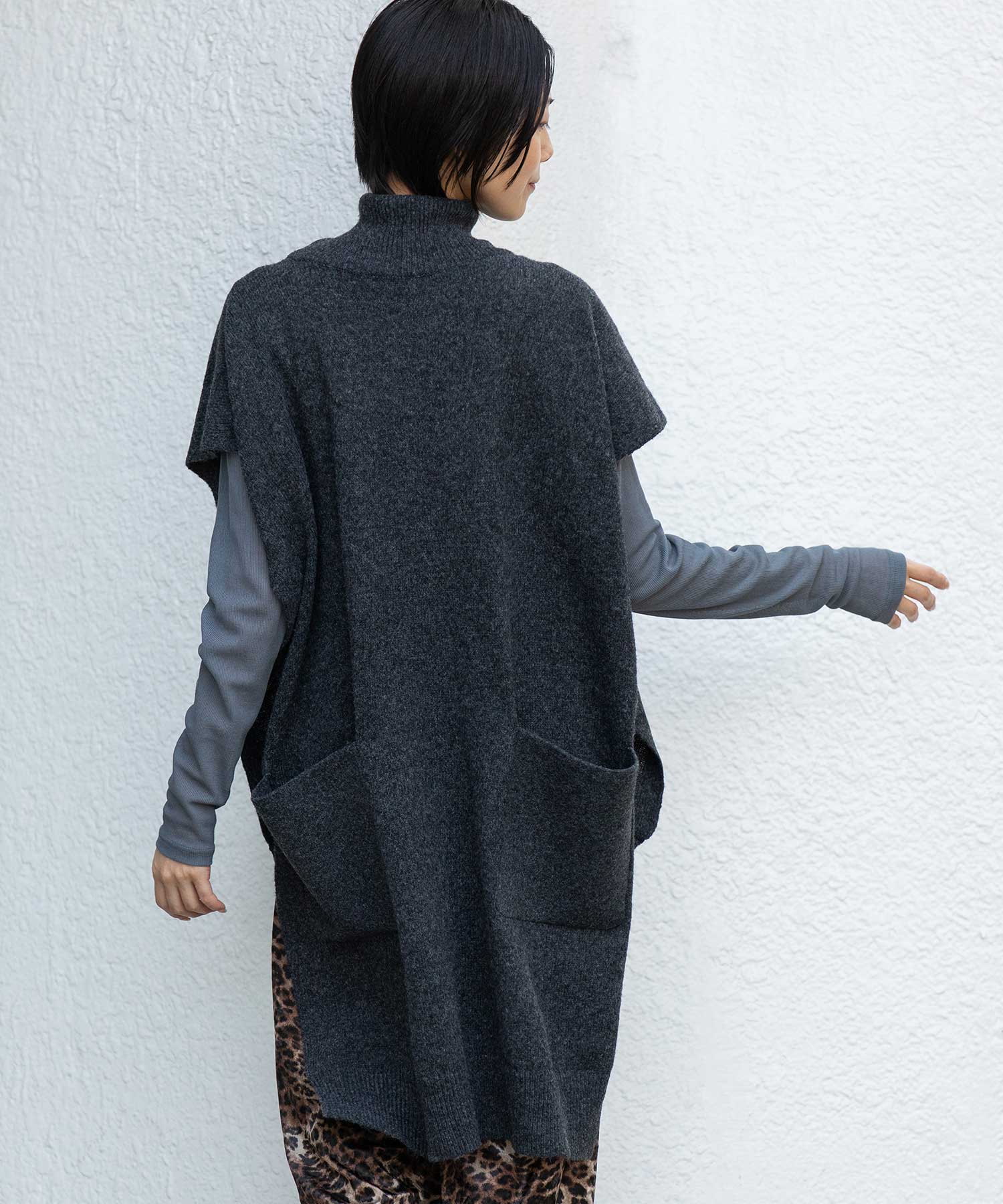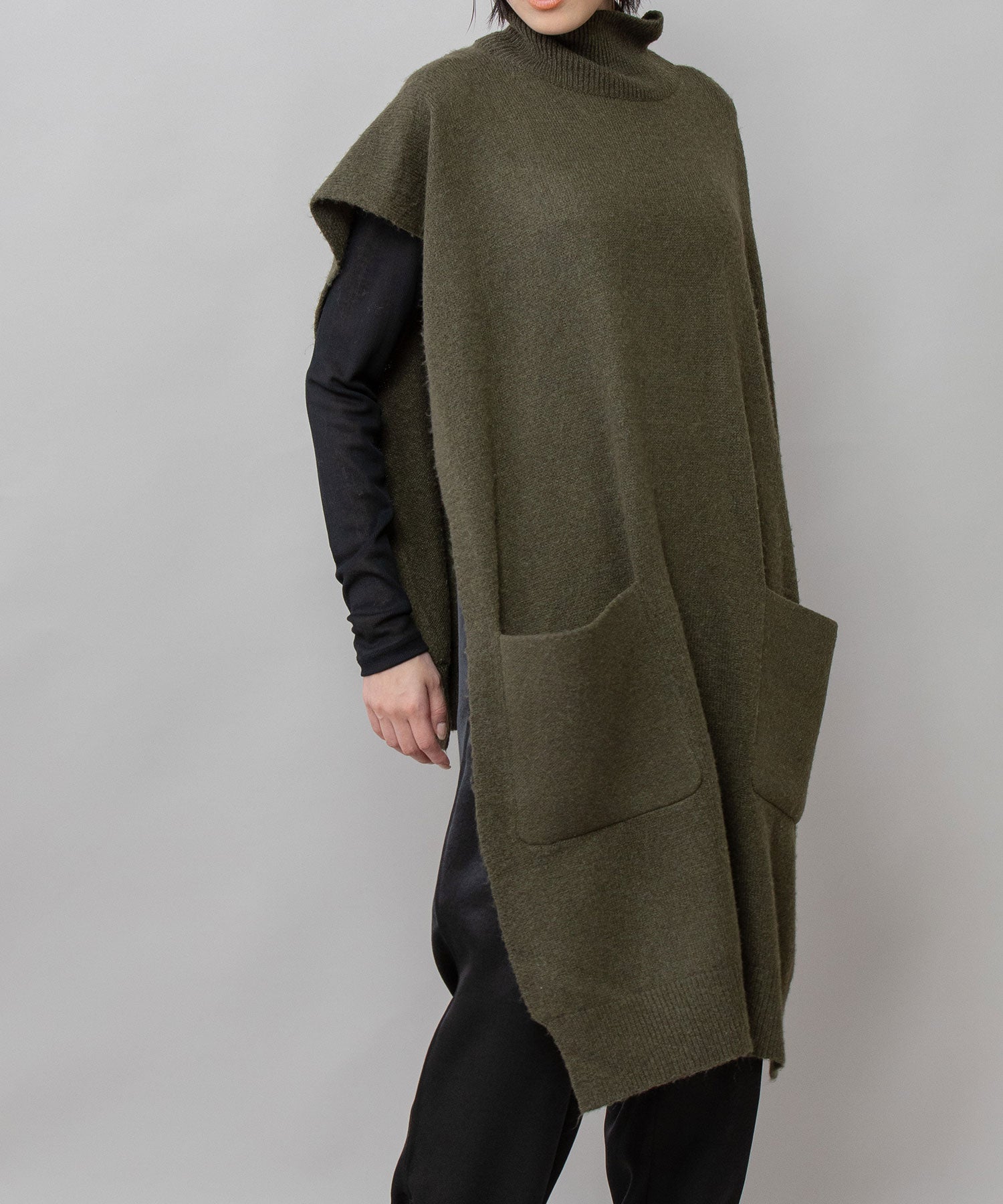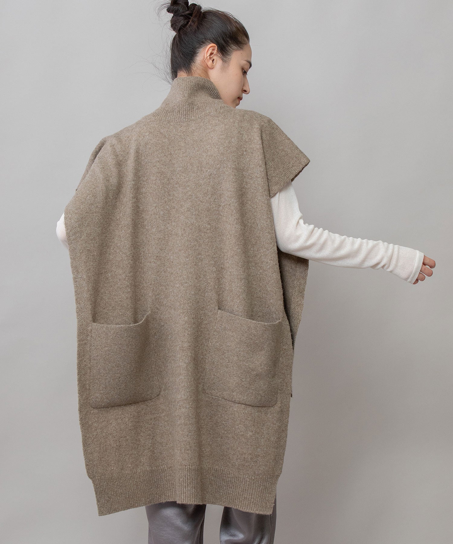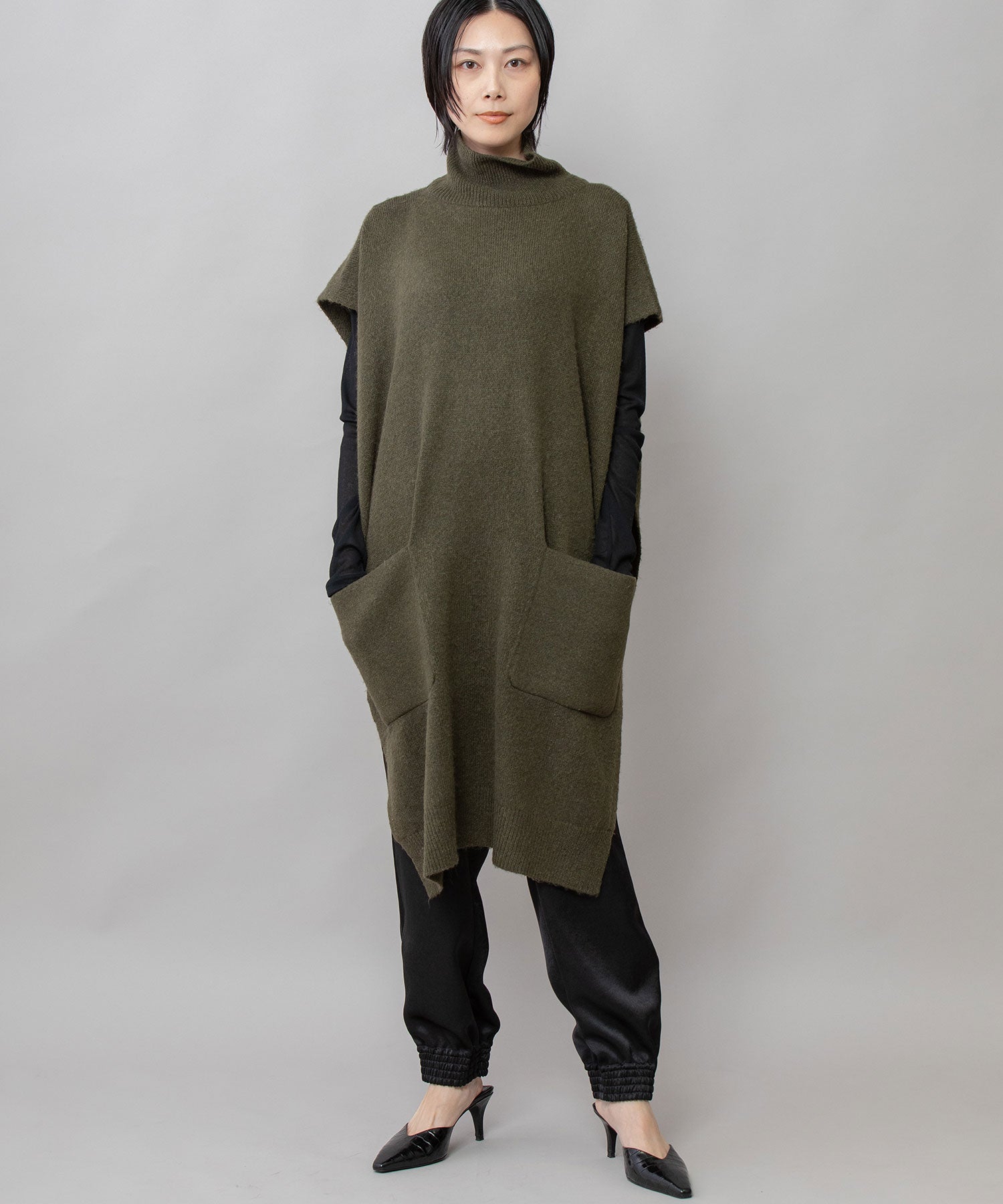 前後で着丈に大きく差をつけたタートルネックショールです。