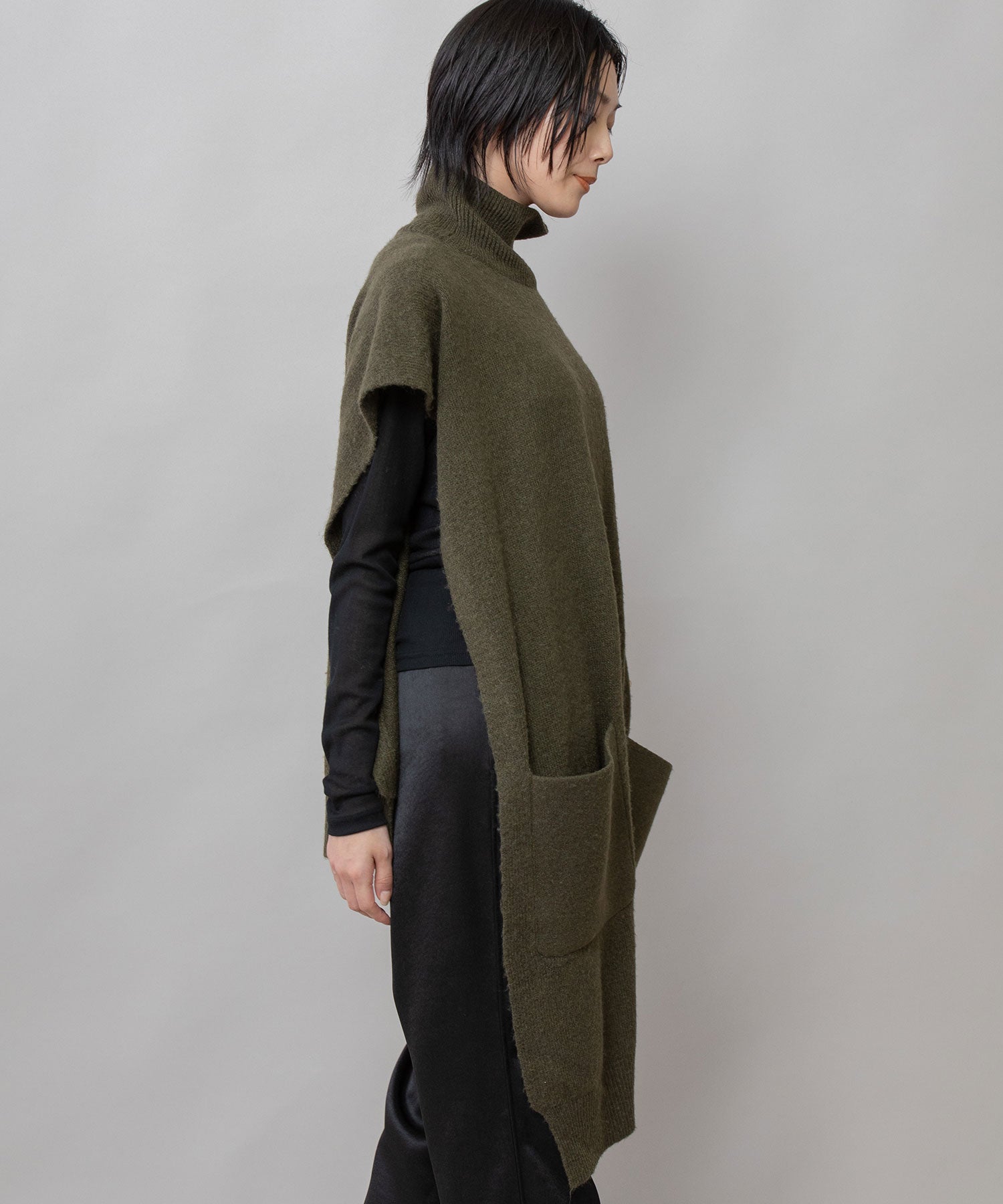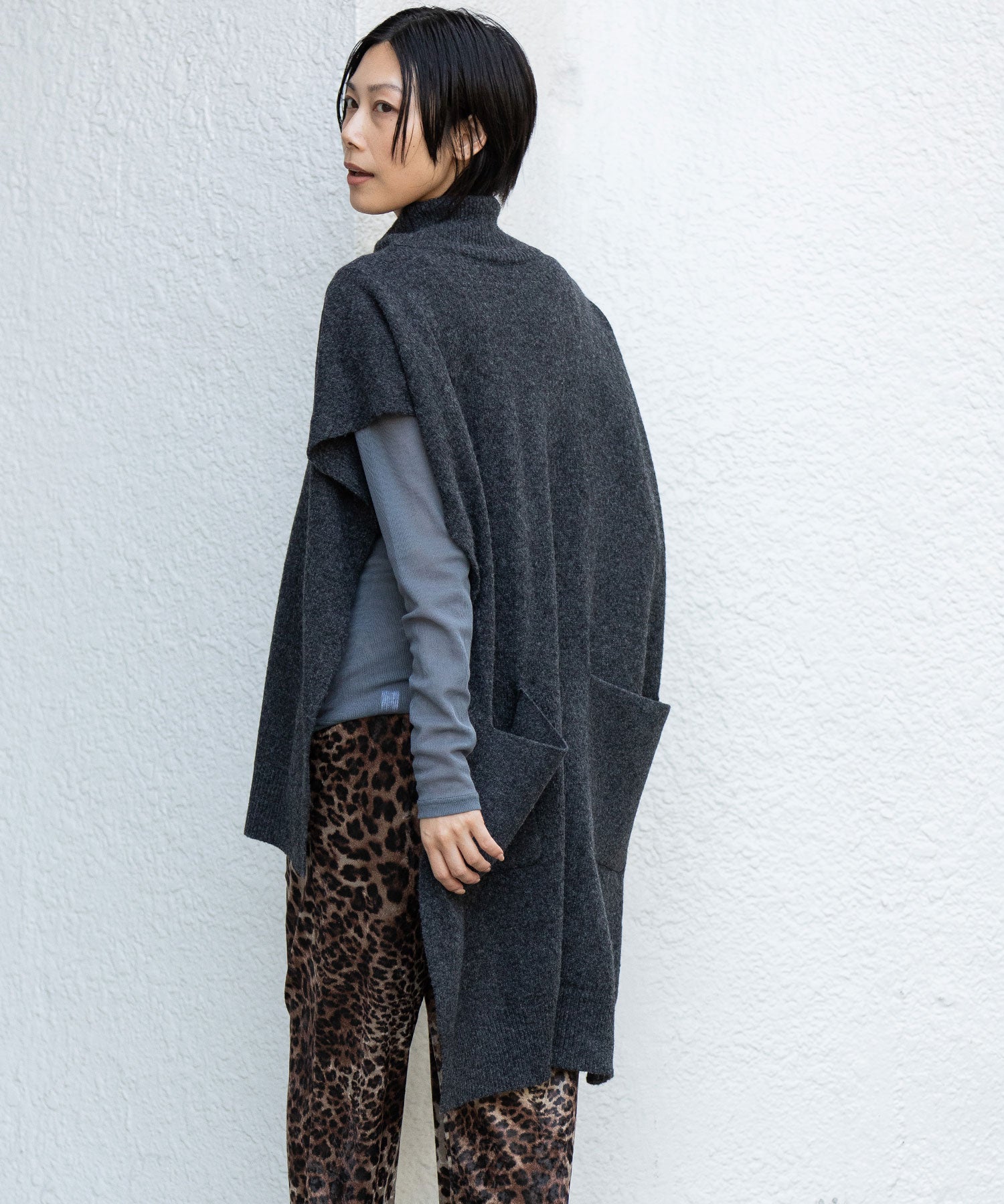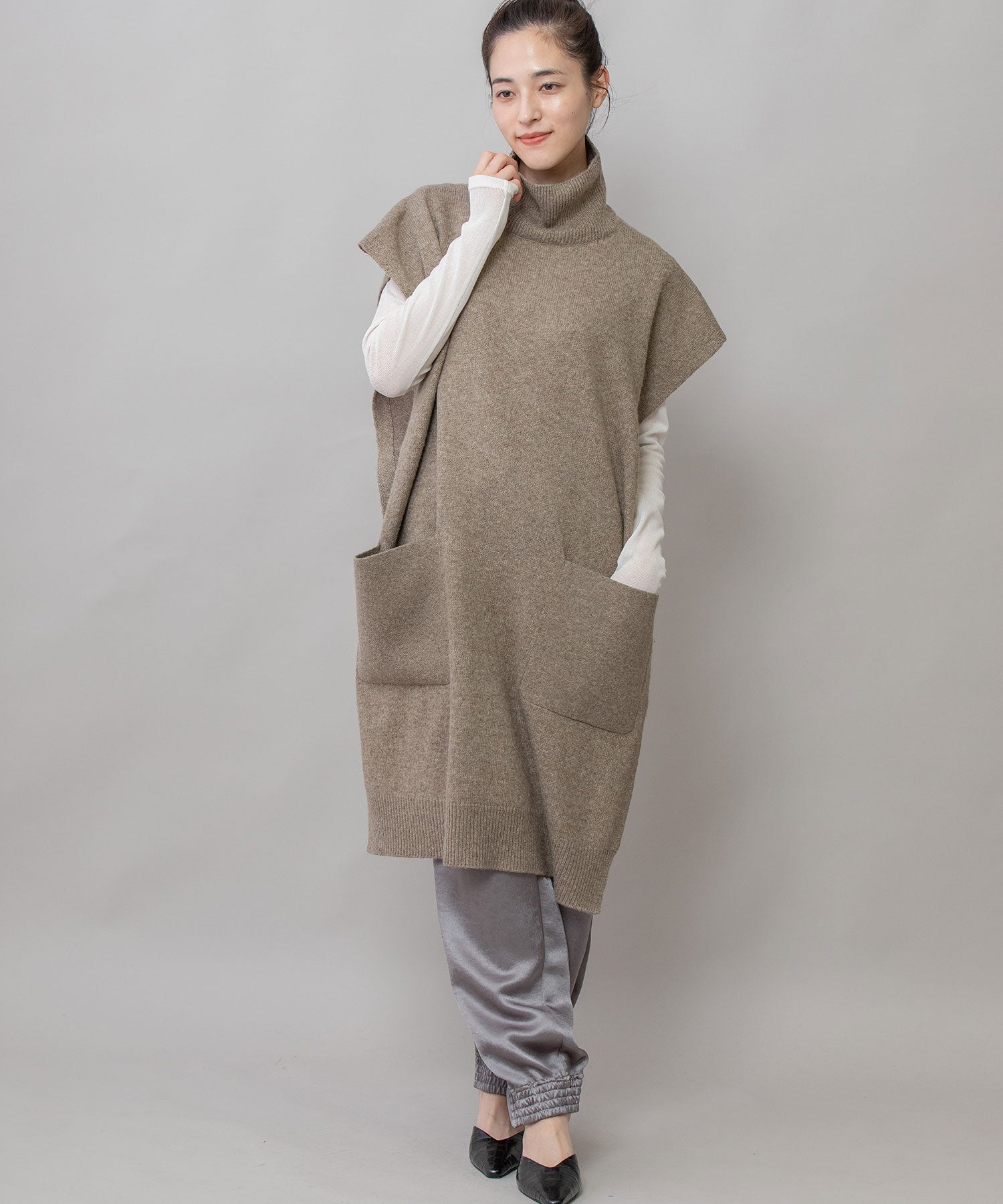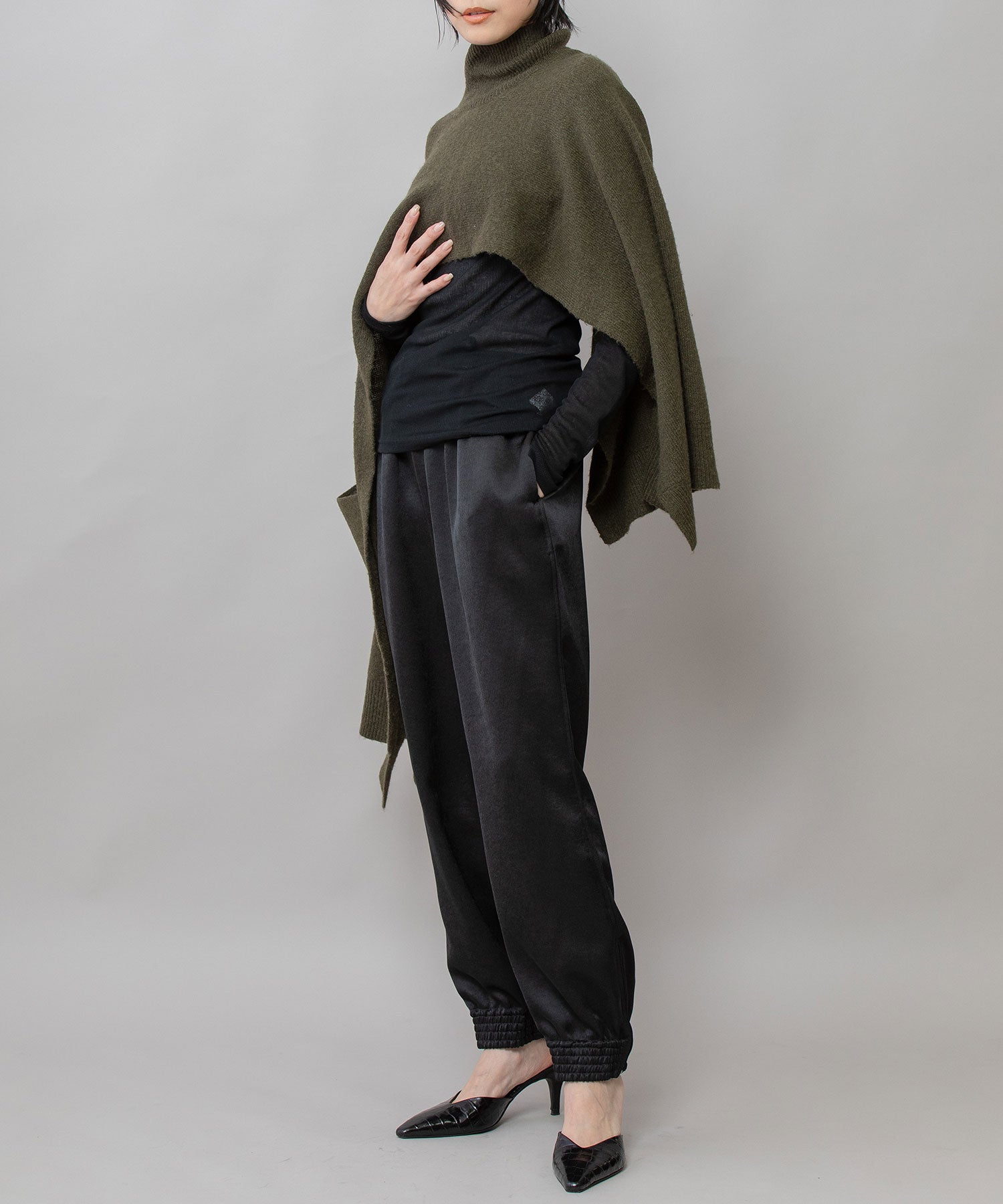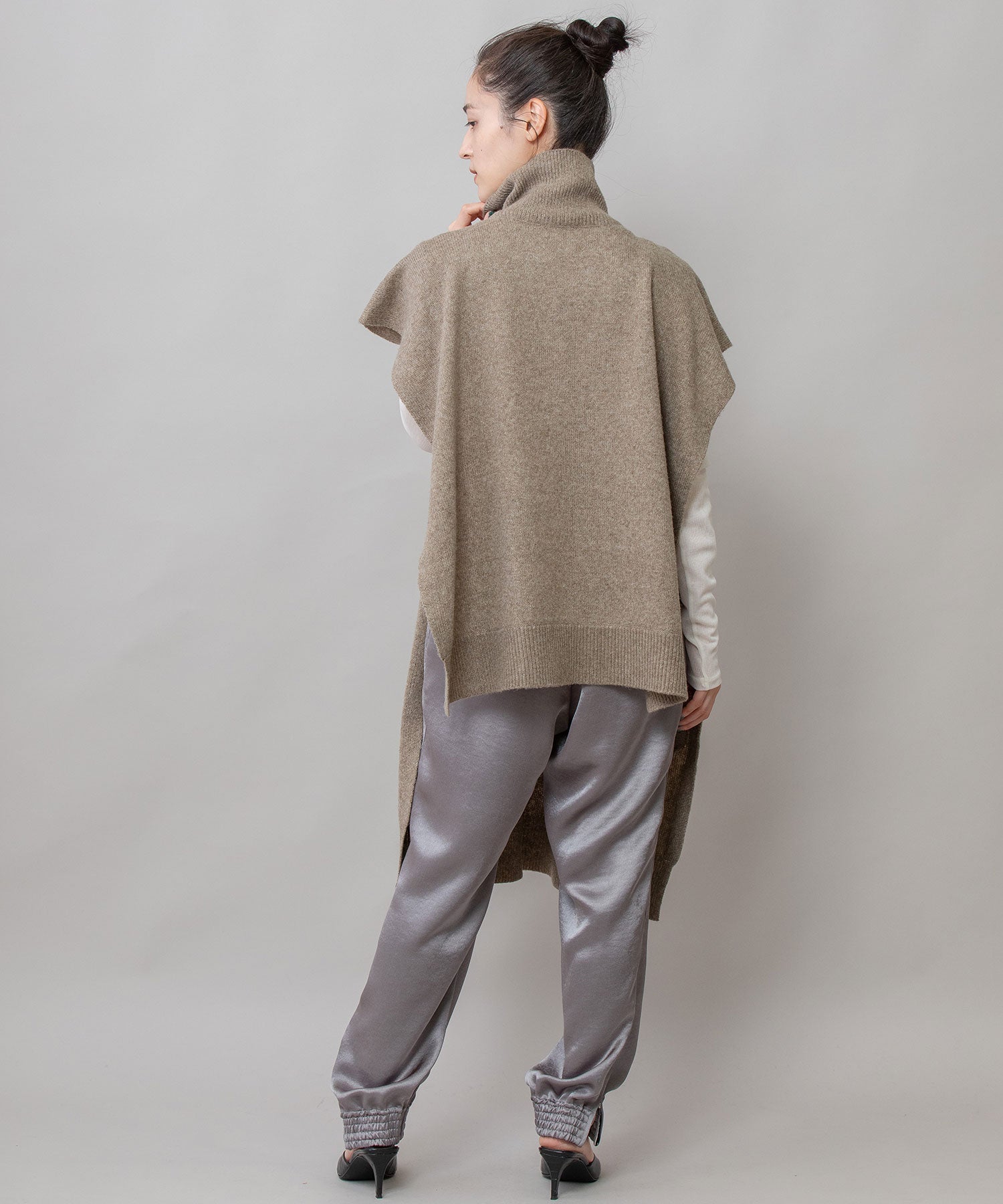 前後で着丈に大きく差をつけたタートルネックショールです。