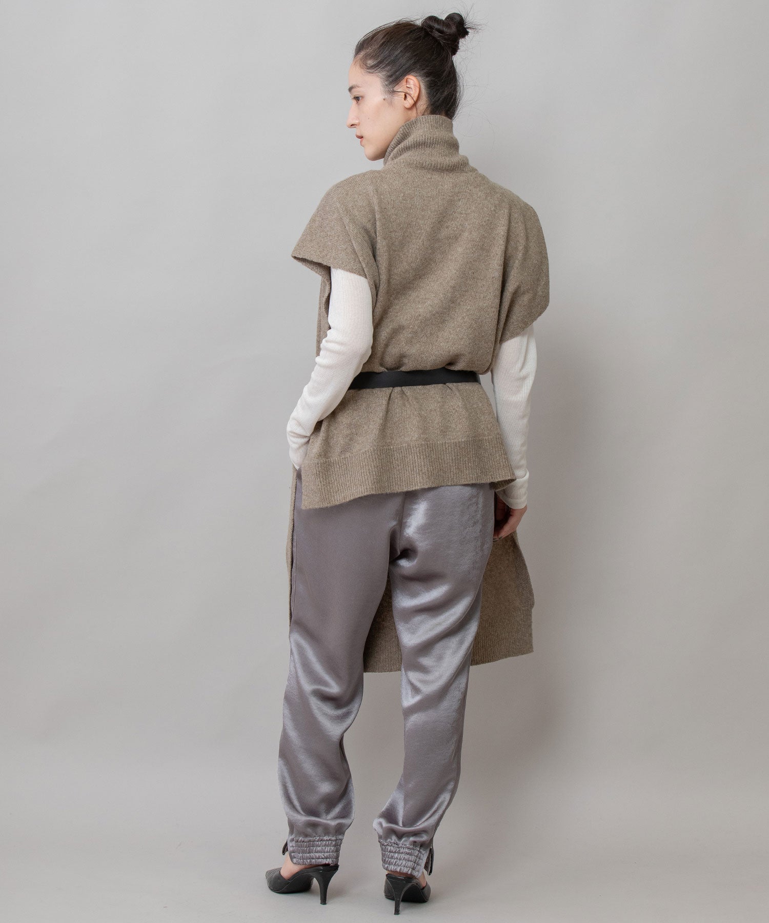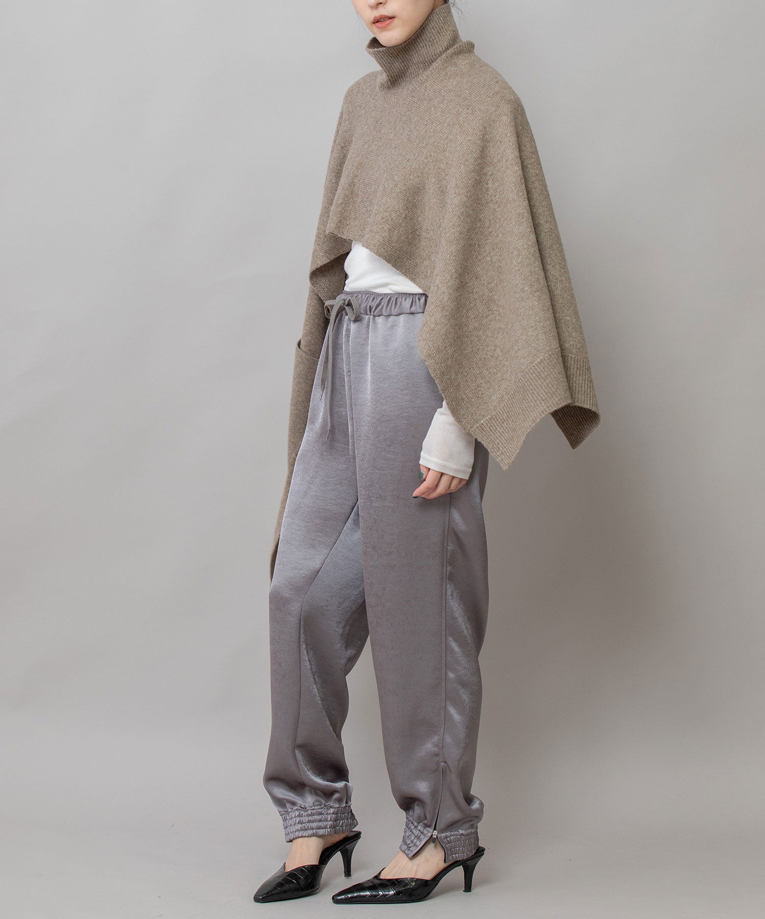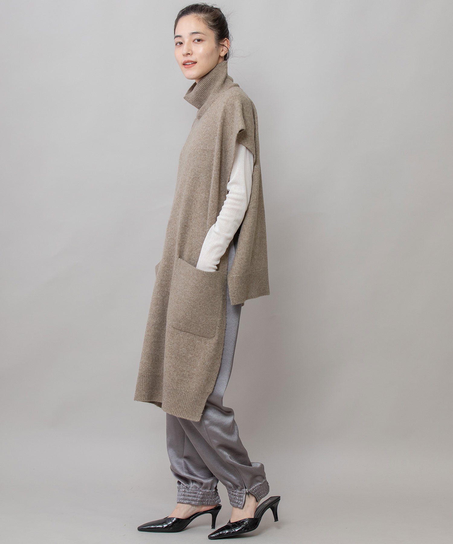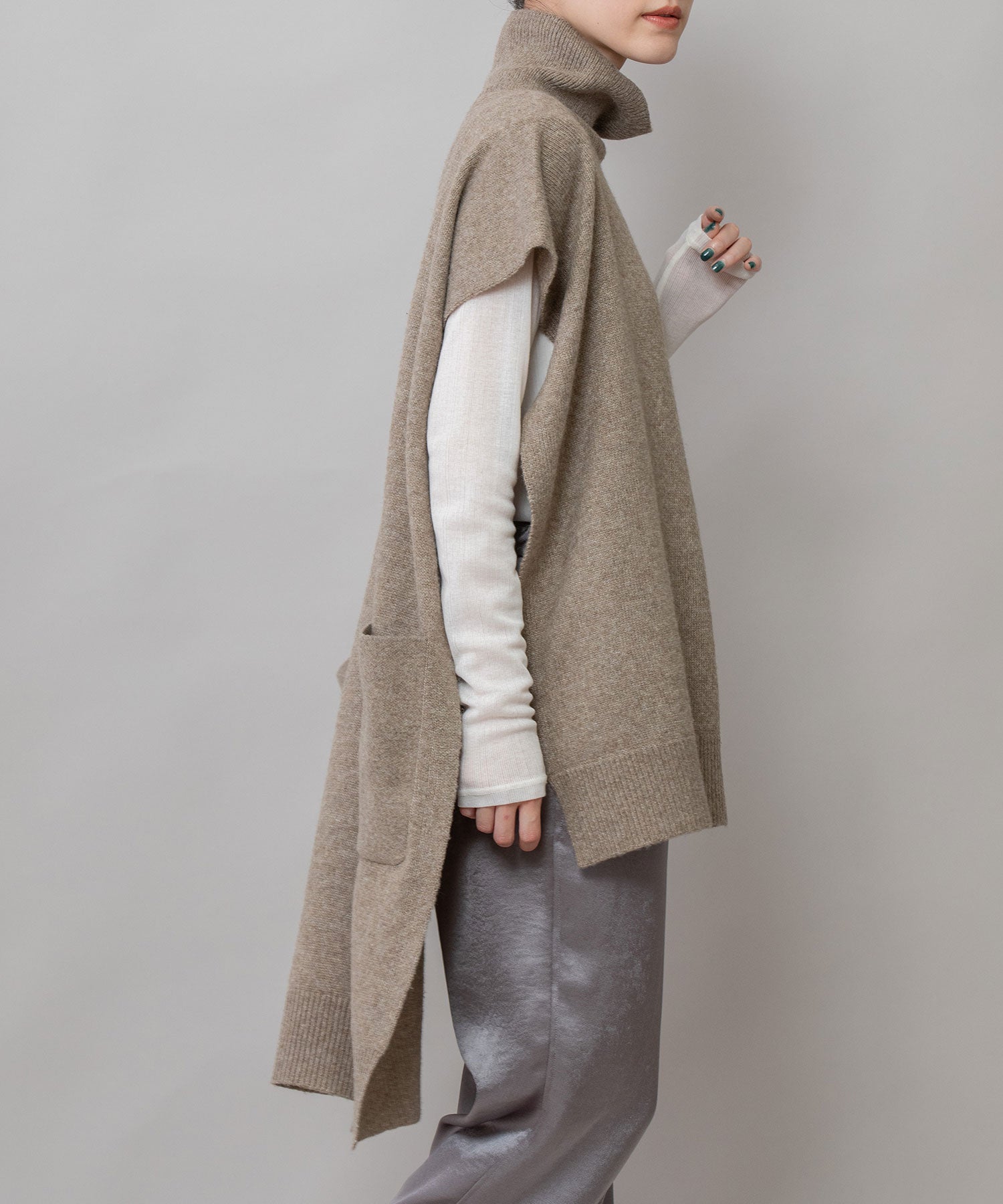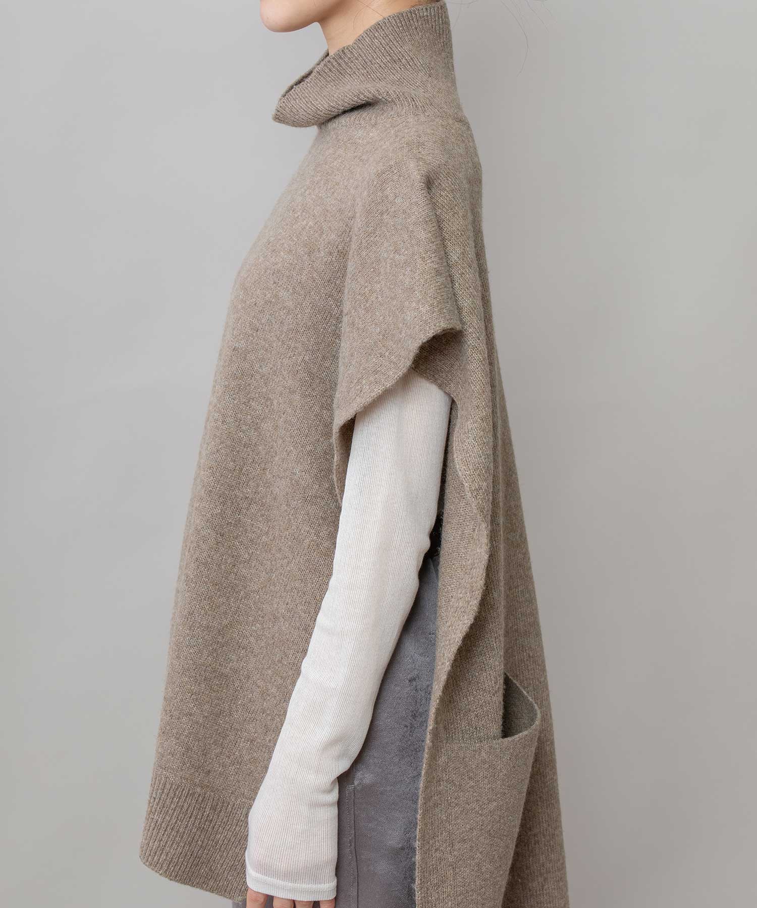 前後で着丈に大きく差をつけたタートルネックショールです。