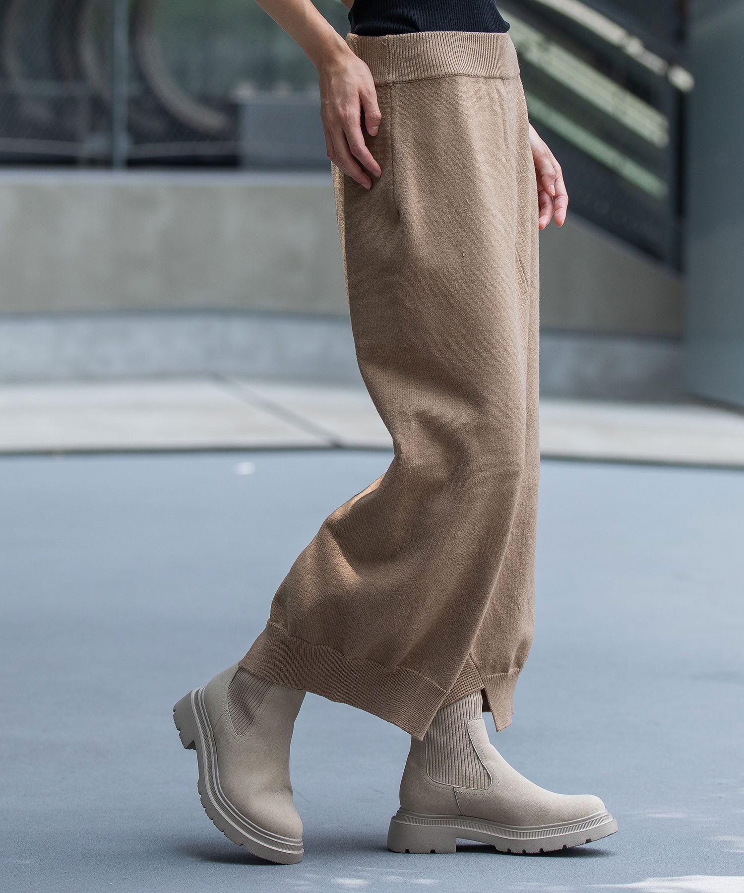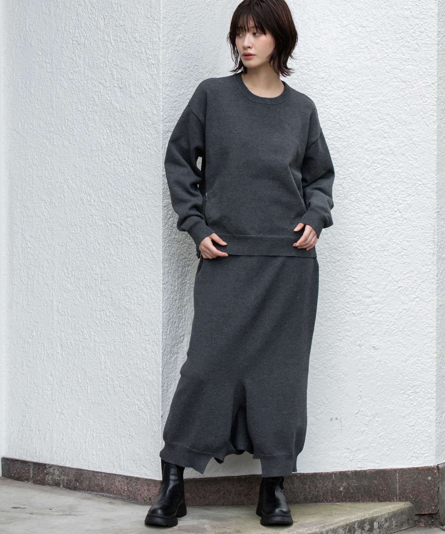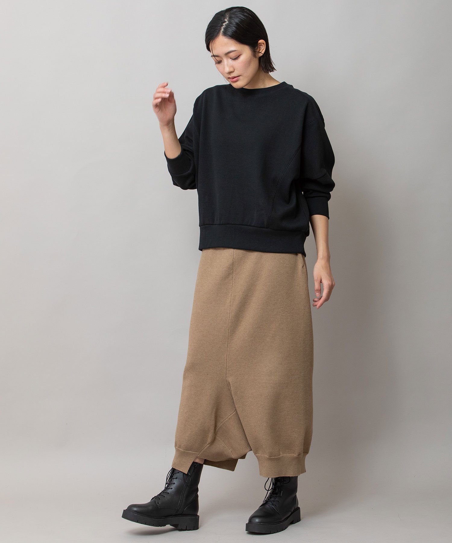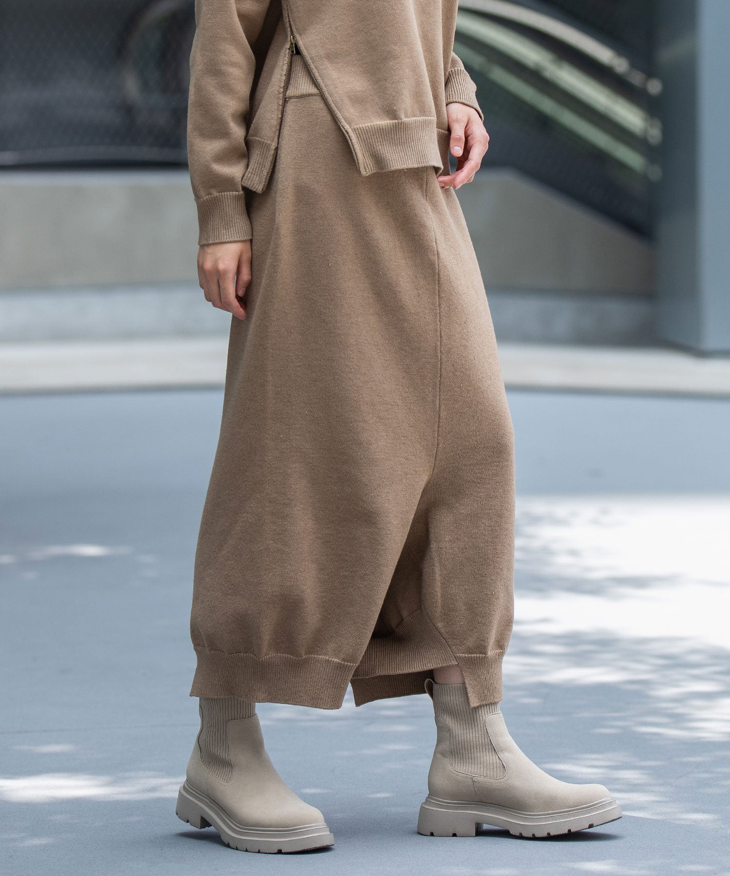 ◆非ウールながらしっかりとした肉感と肌触りの良さが魅力のスカート見えするシルエットが見た目以上に使いやすいルーズニットパンツ◆