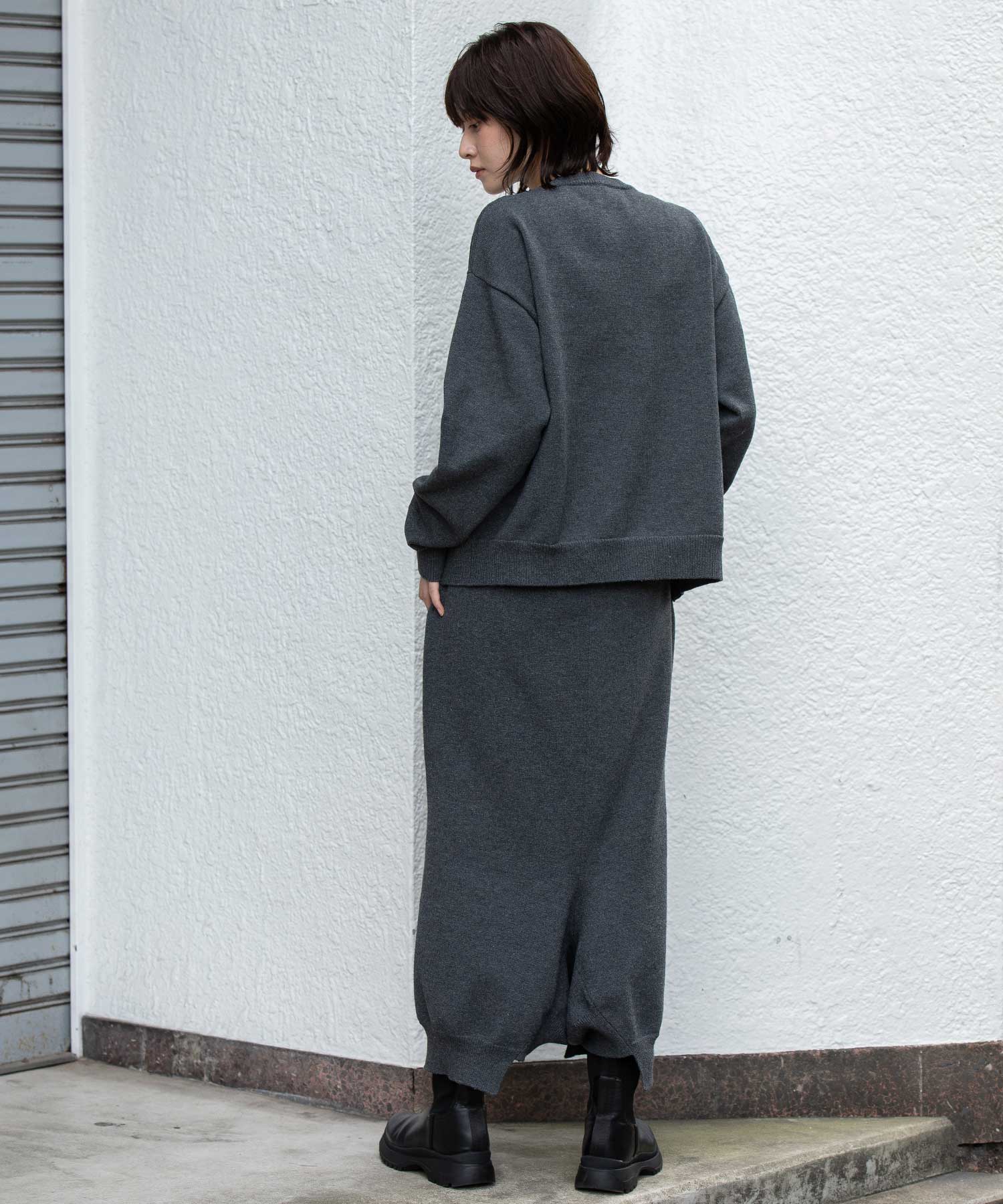 同じ編地のMN252K26のトップスとのセットアップコーデが特におすすめです。