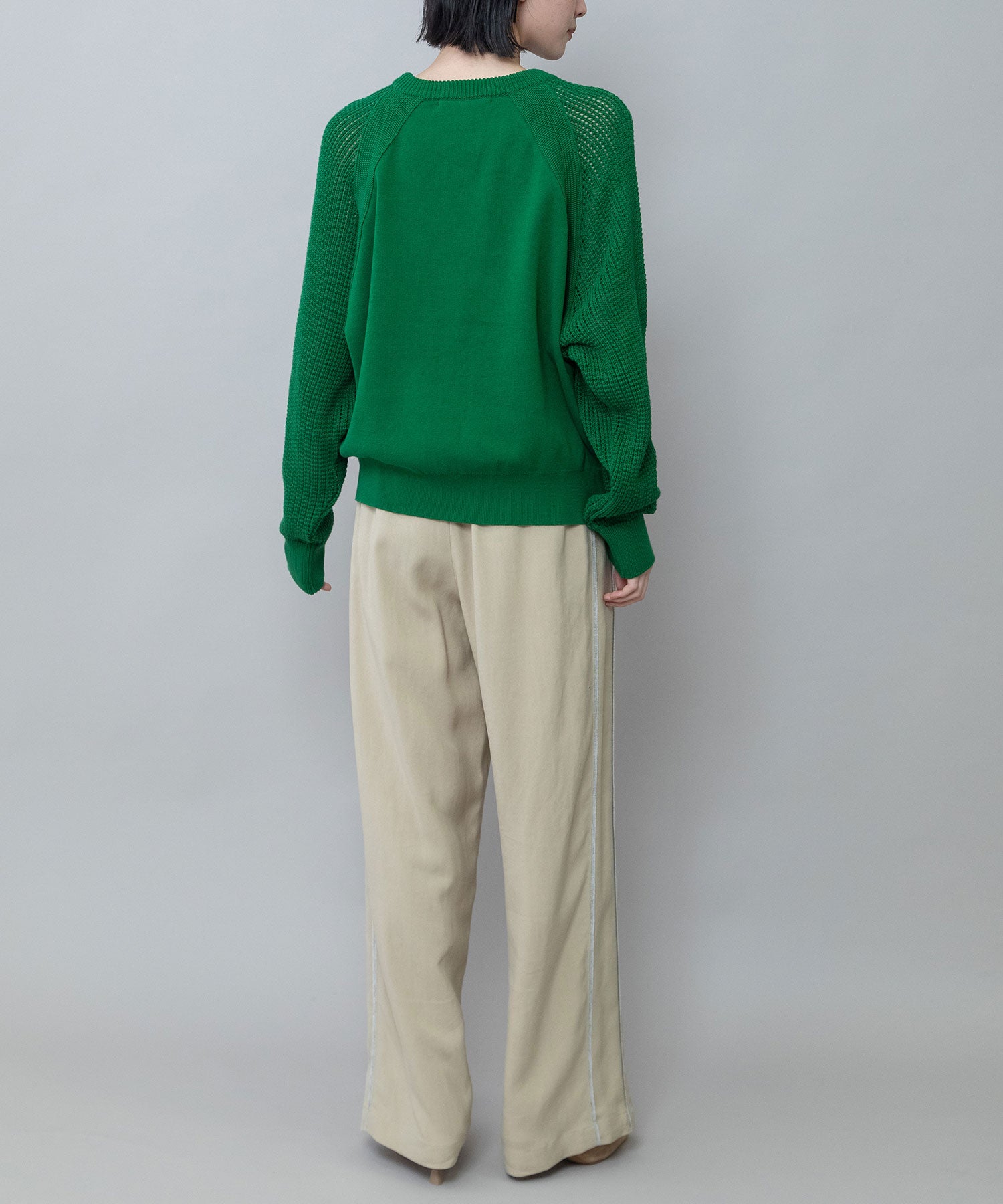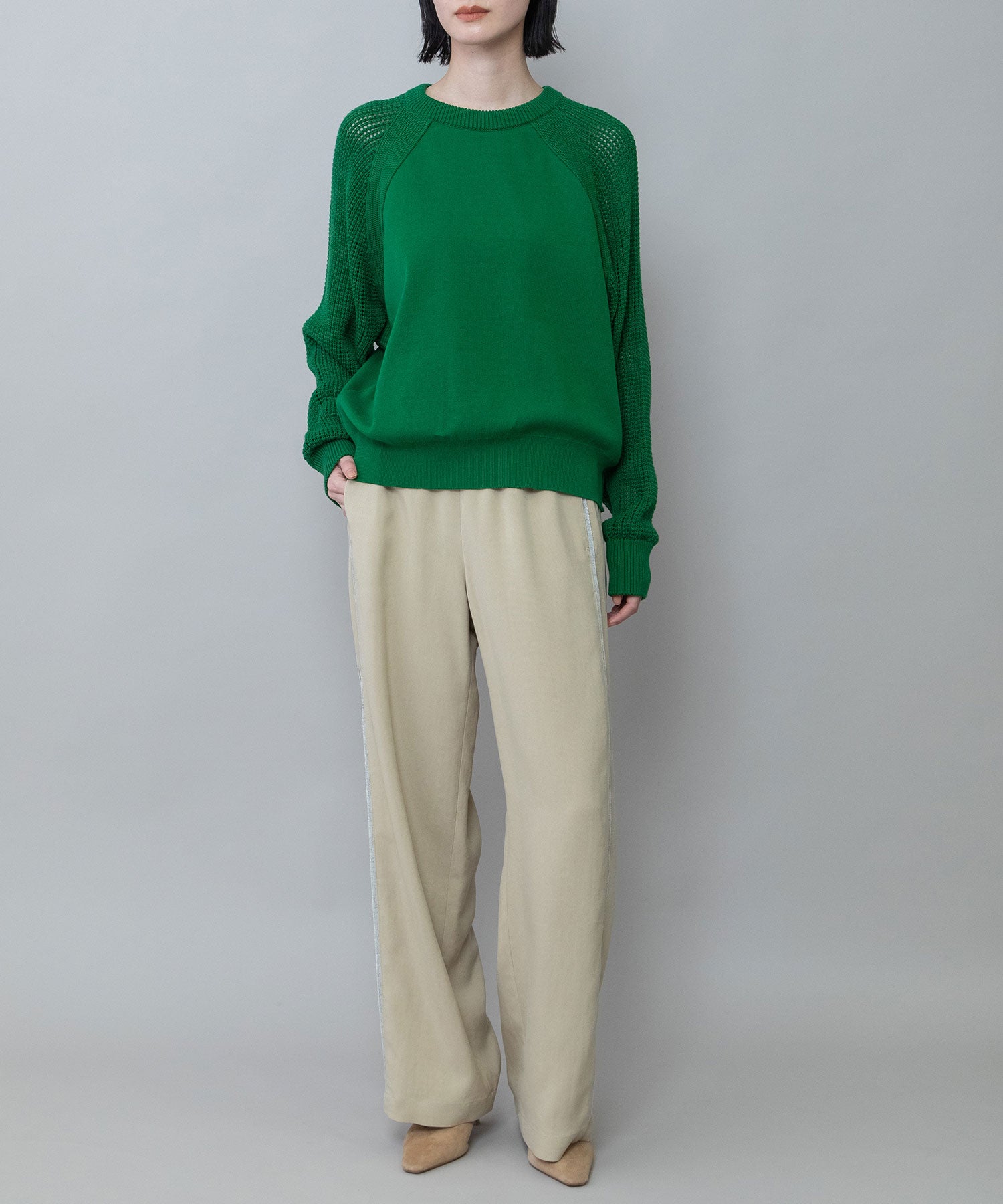 トラックパンツライクなスポーティなディテールですが、シックな素材の組み合わせによってスポーツ味をほどよく抑えた大人なアイテムに仕上げています。