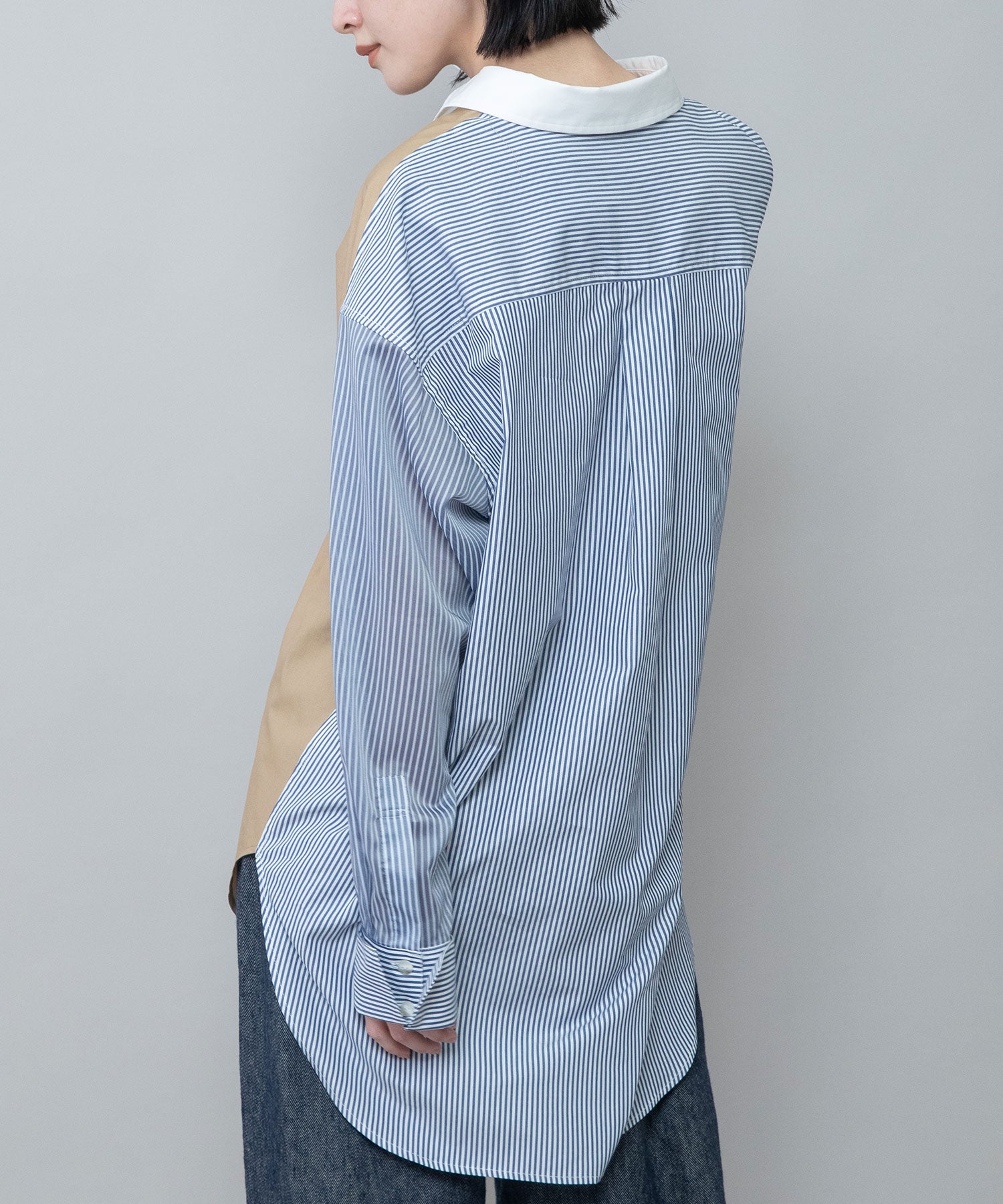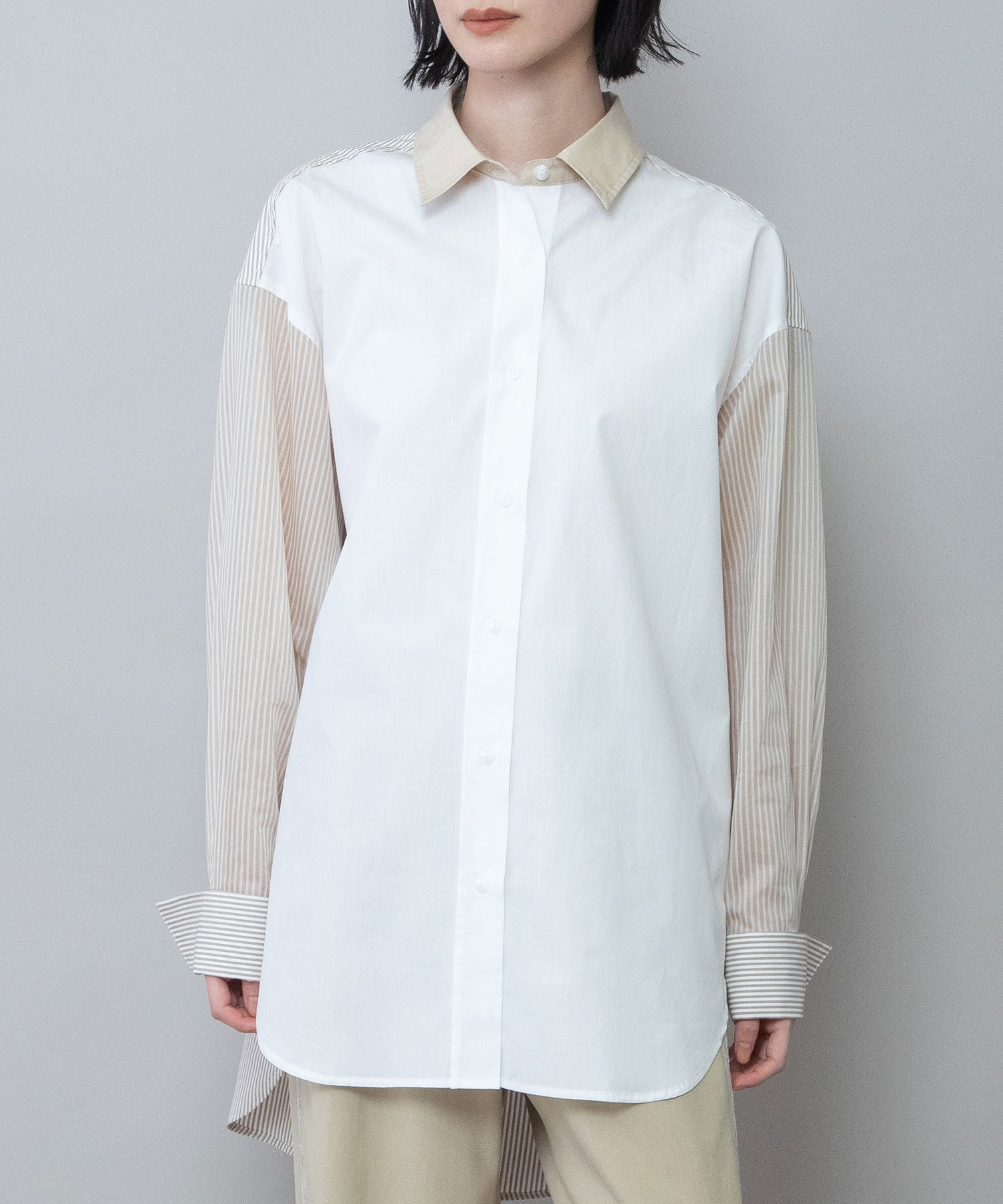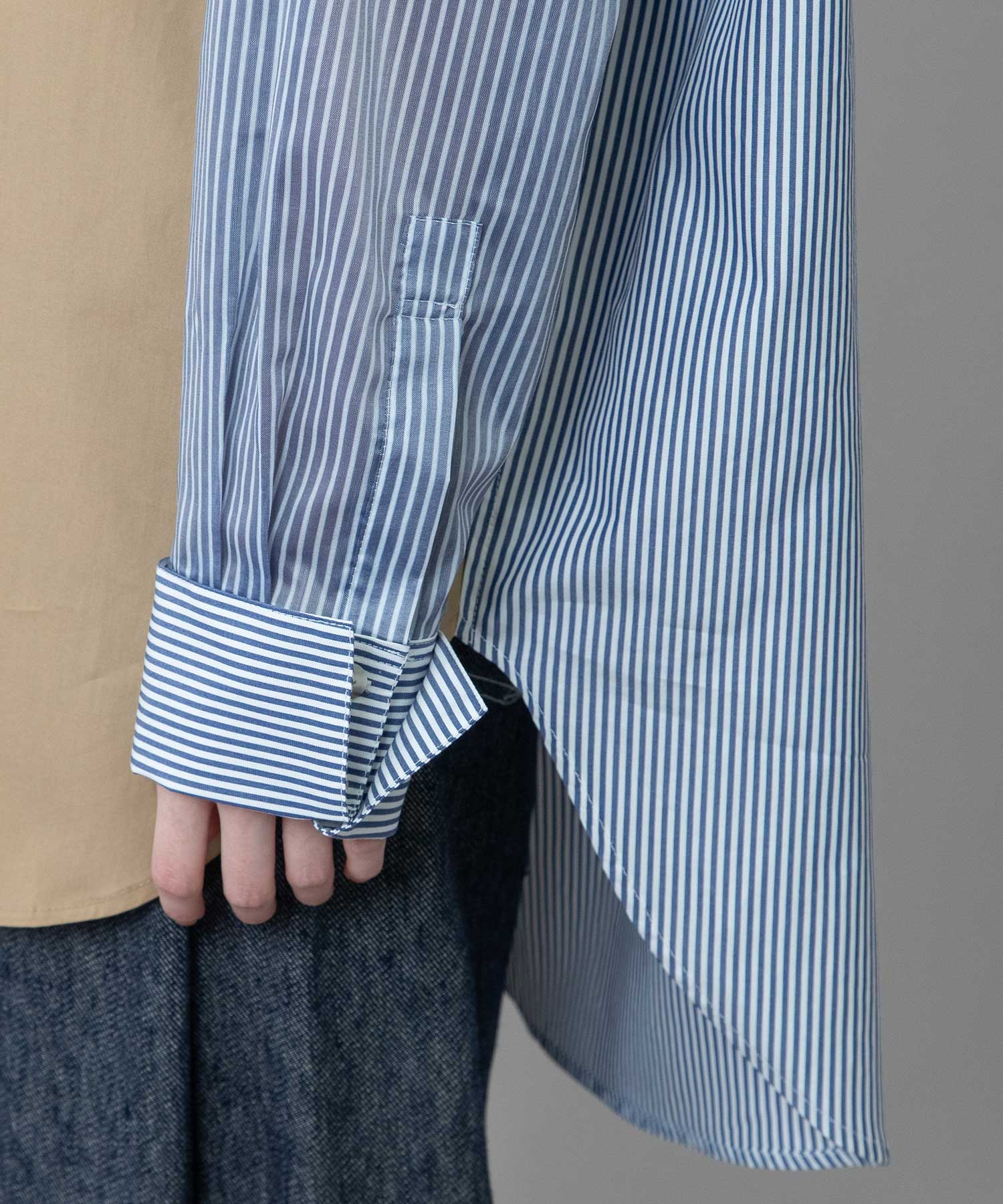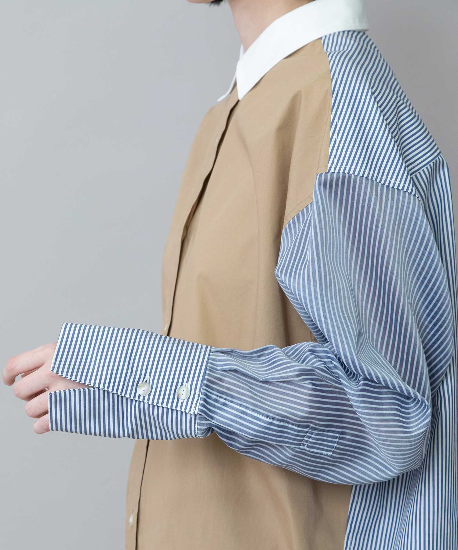 ◆3素材を組み合わせた着丈の長いレギュラーカラーシャツ◆