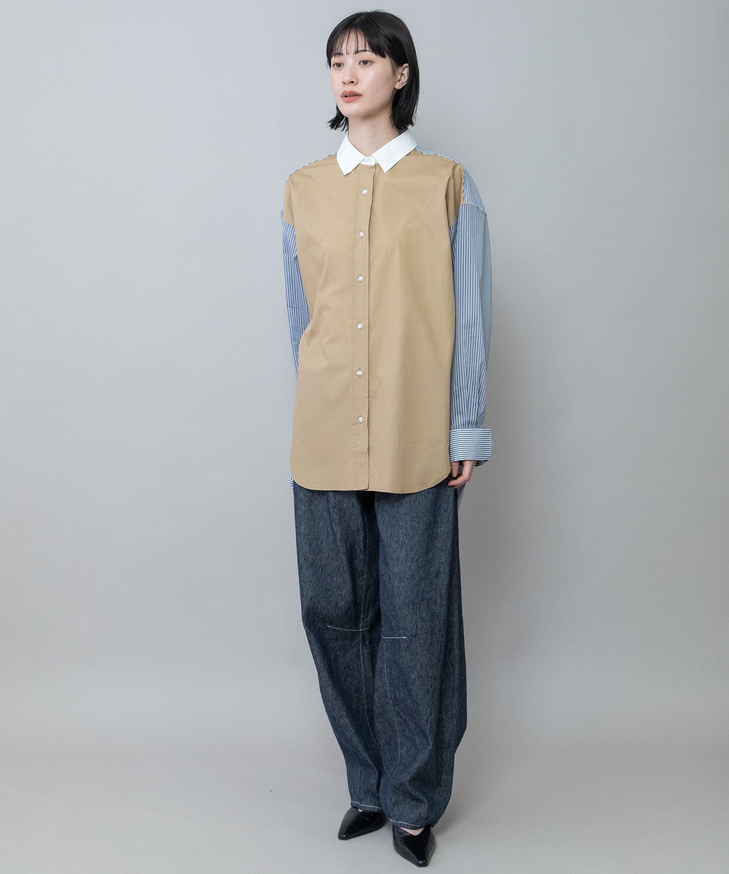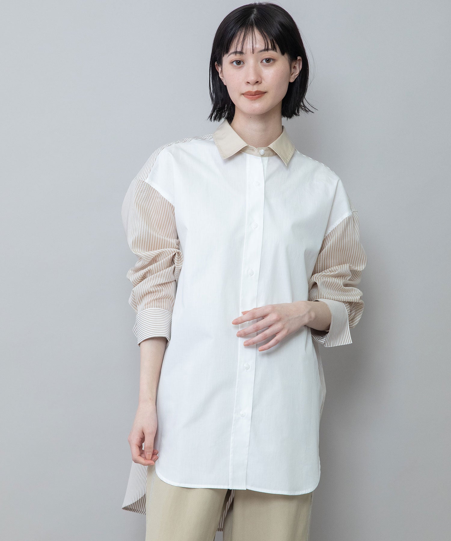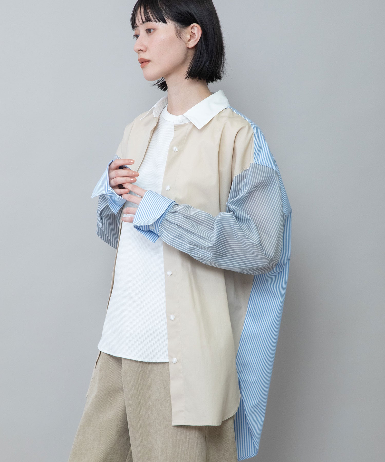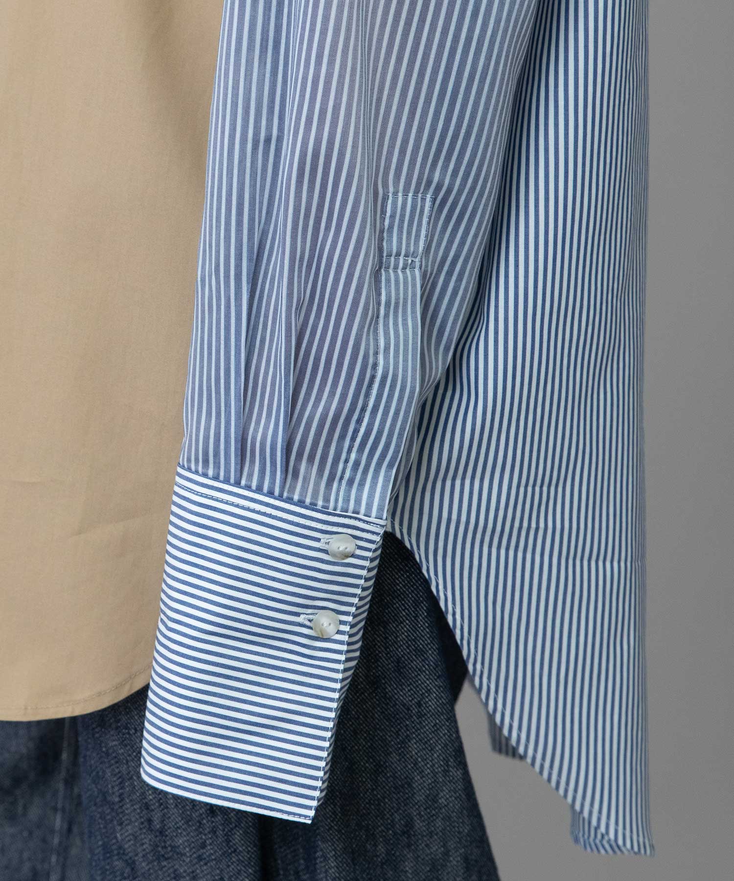 ◆3素材を組み合わせた着丈の長いレギュラーカラーシャツ◆