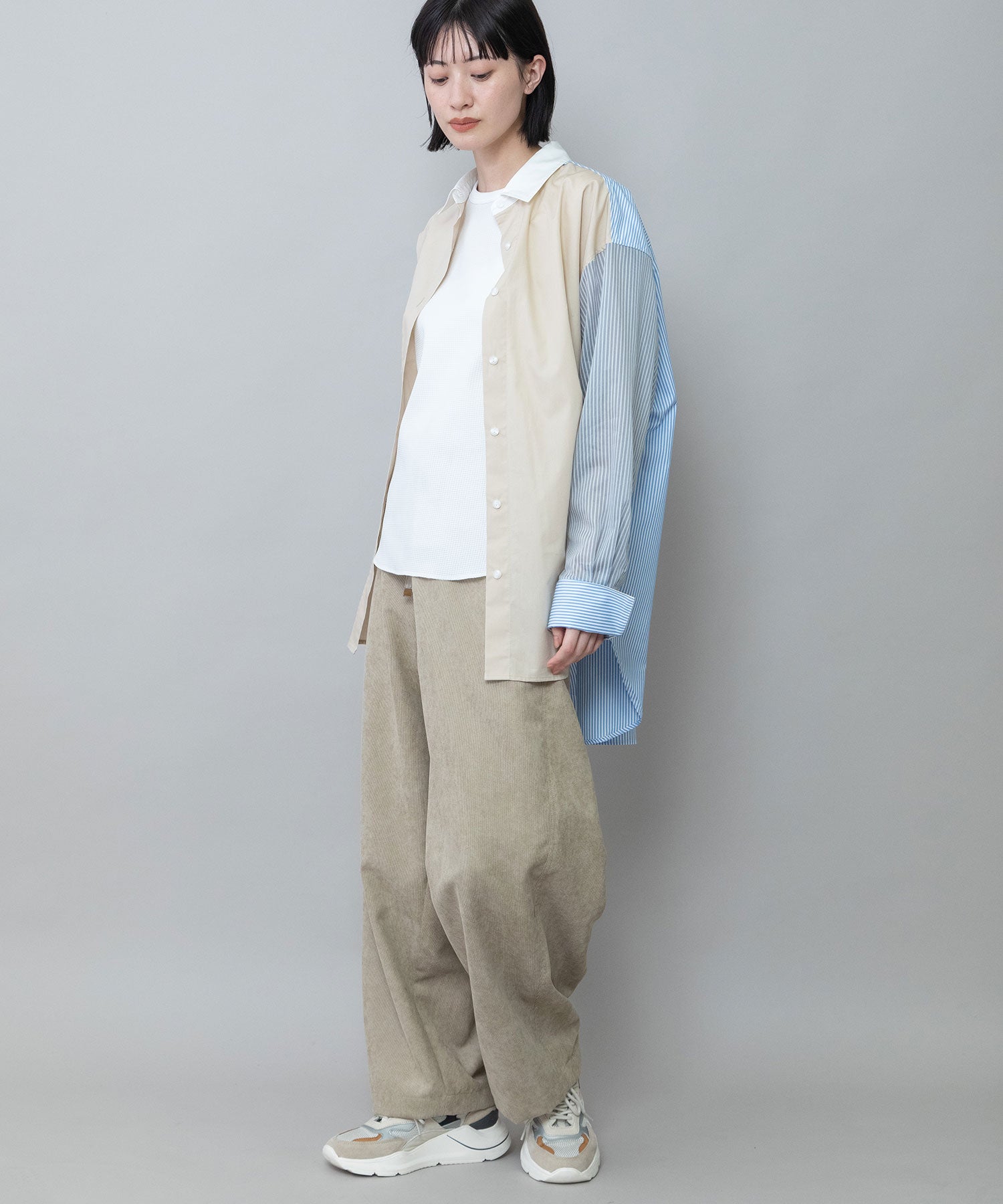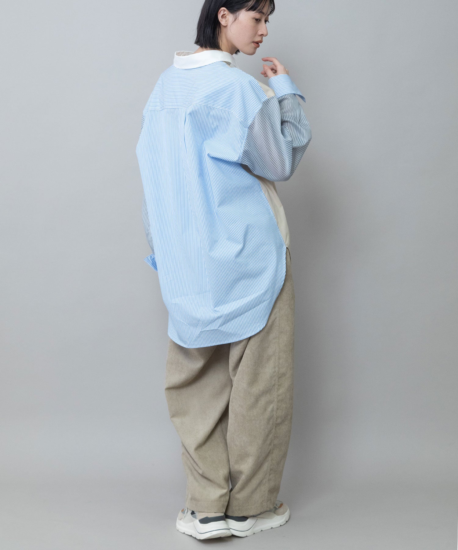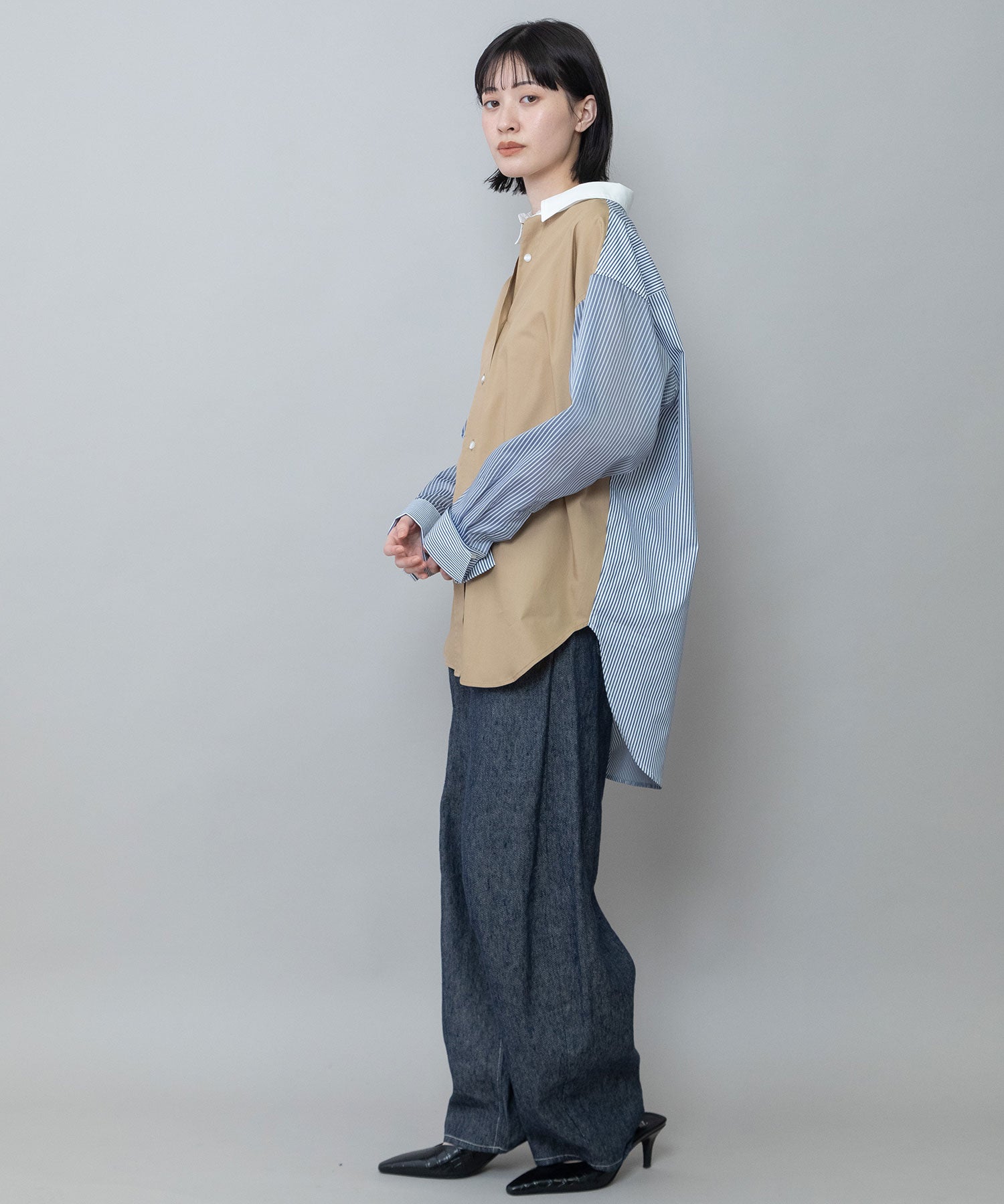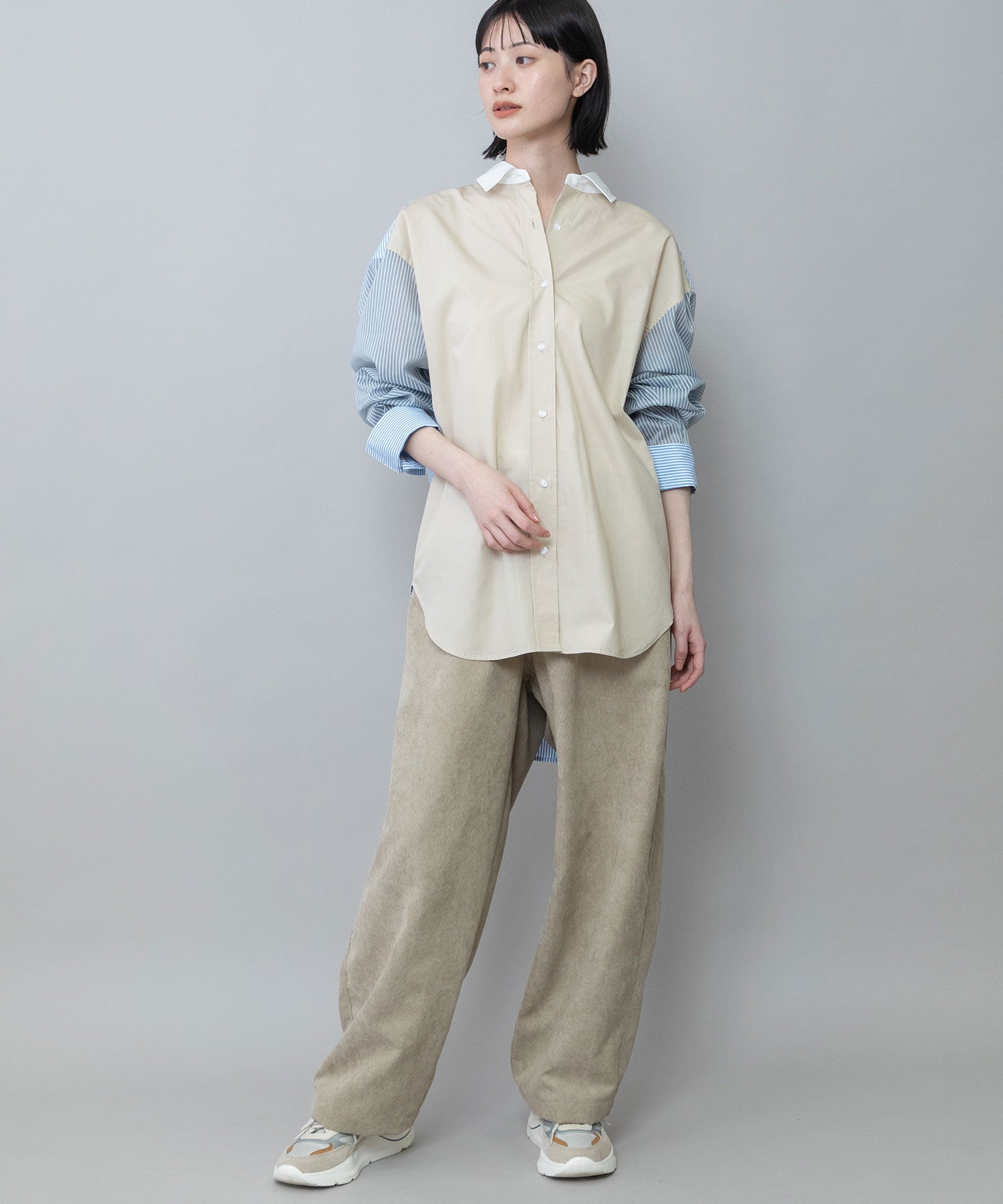 ◆3素材を組み合わせた着丈の長いレギュラーカラーシャツ◆