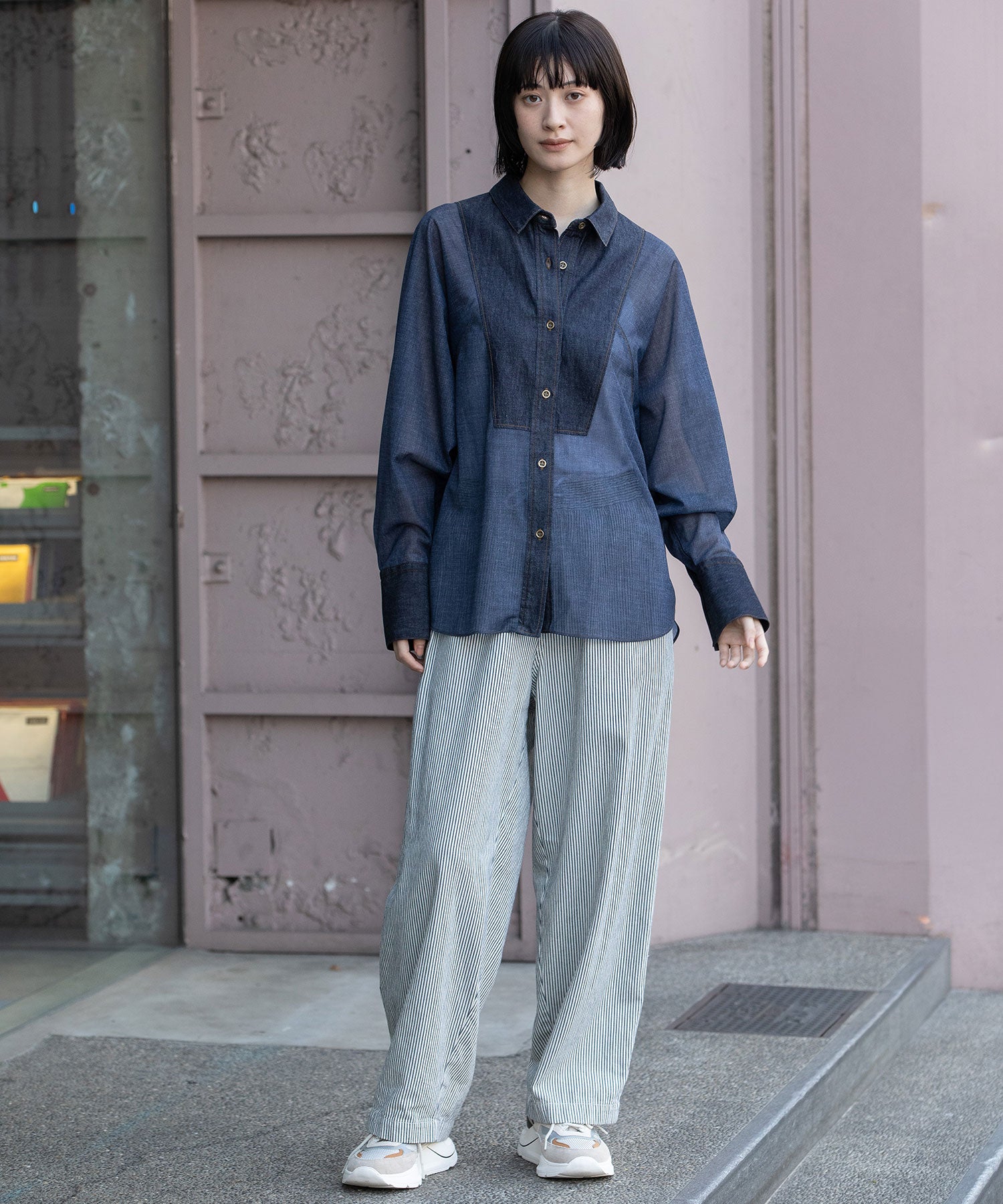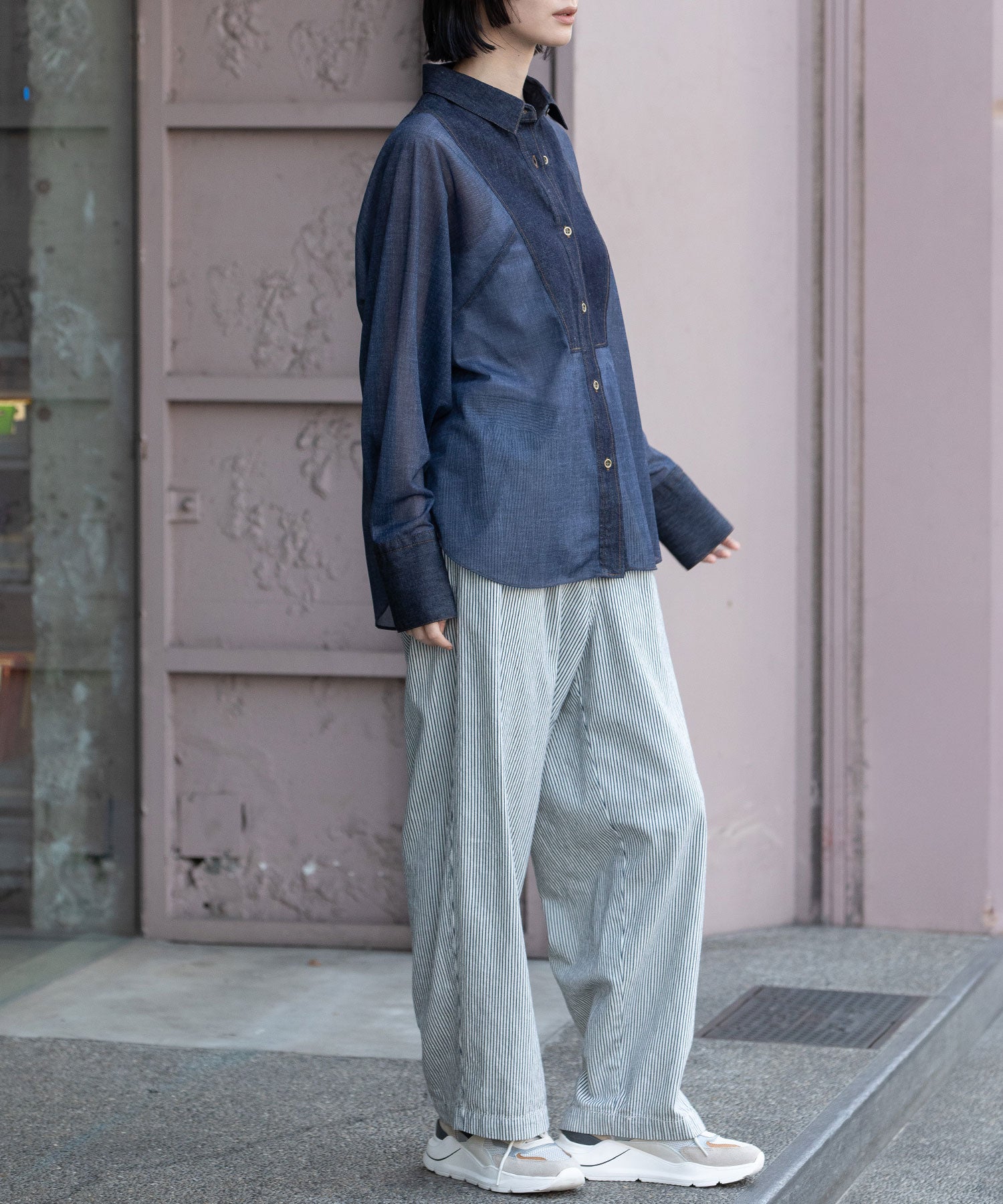 エアリーでソフトな風合いにデニムの持つカジュアルな雰囲気が絡み、デニムと異なるシルエット表現ができます。