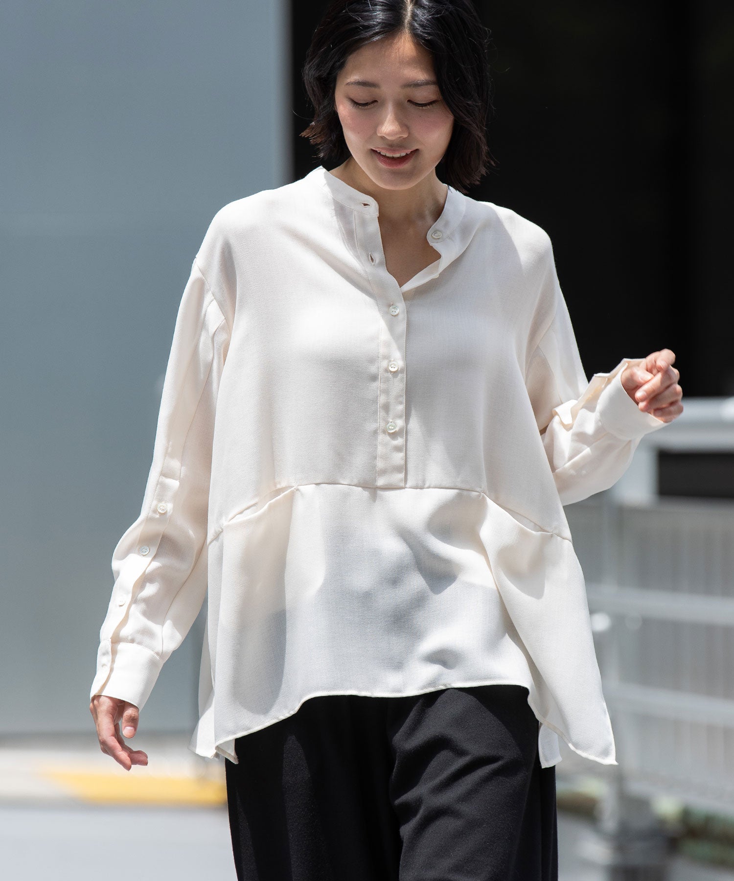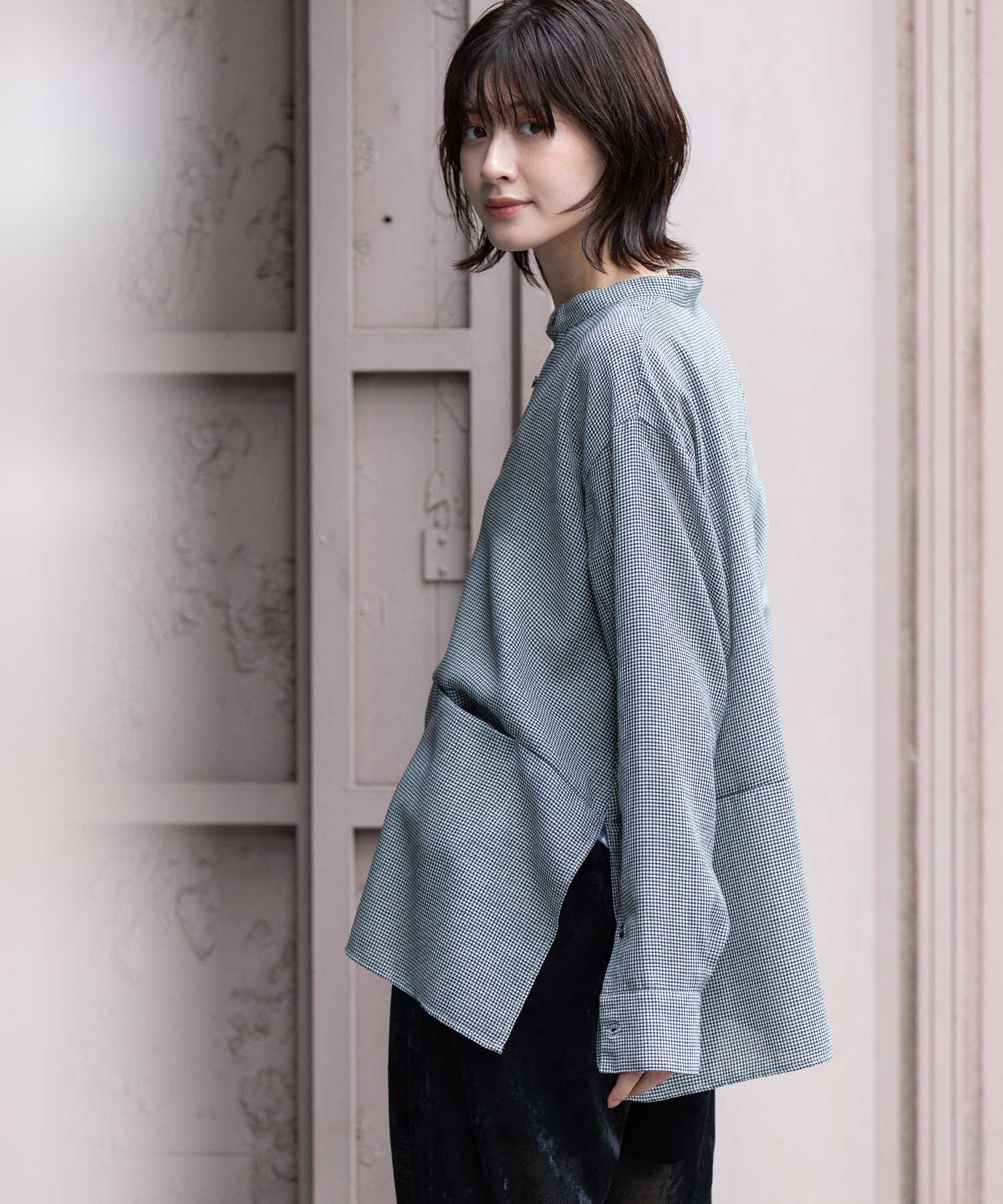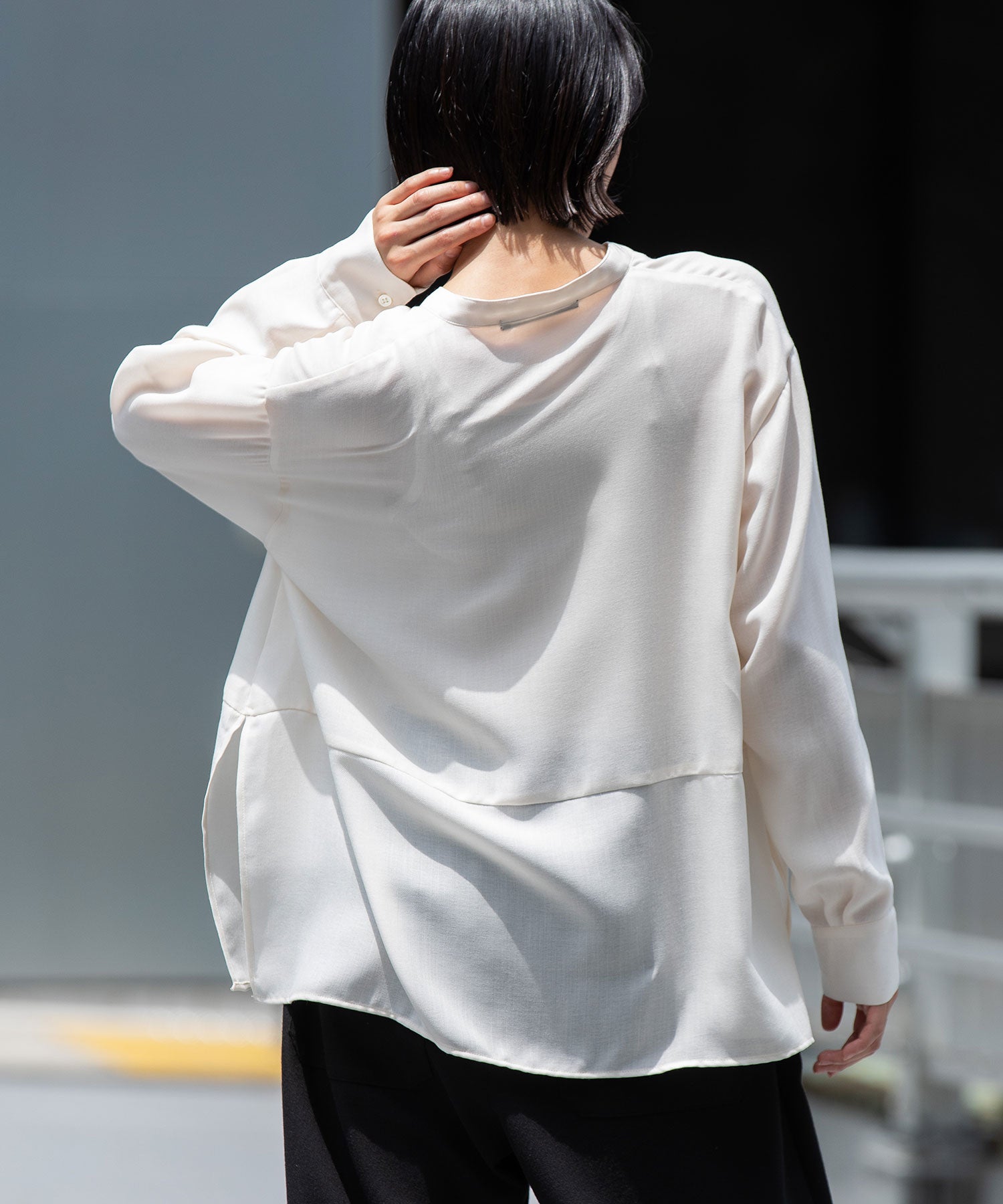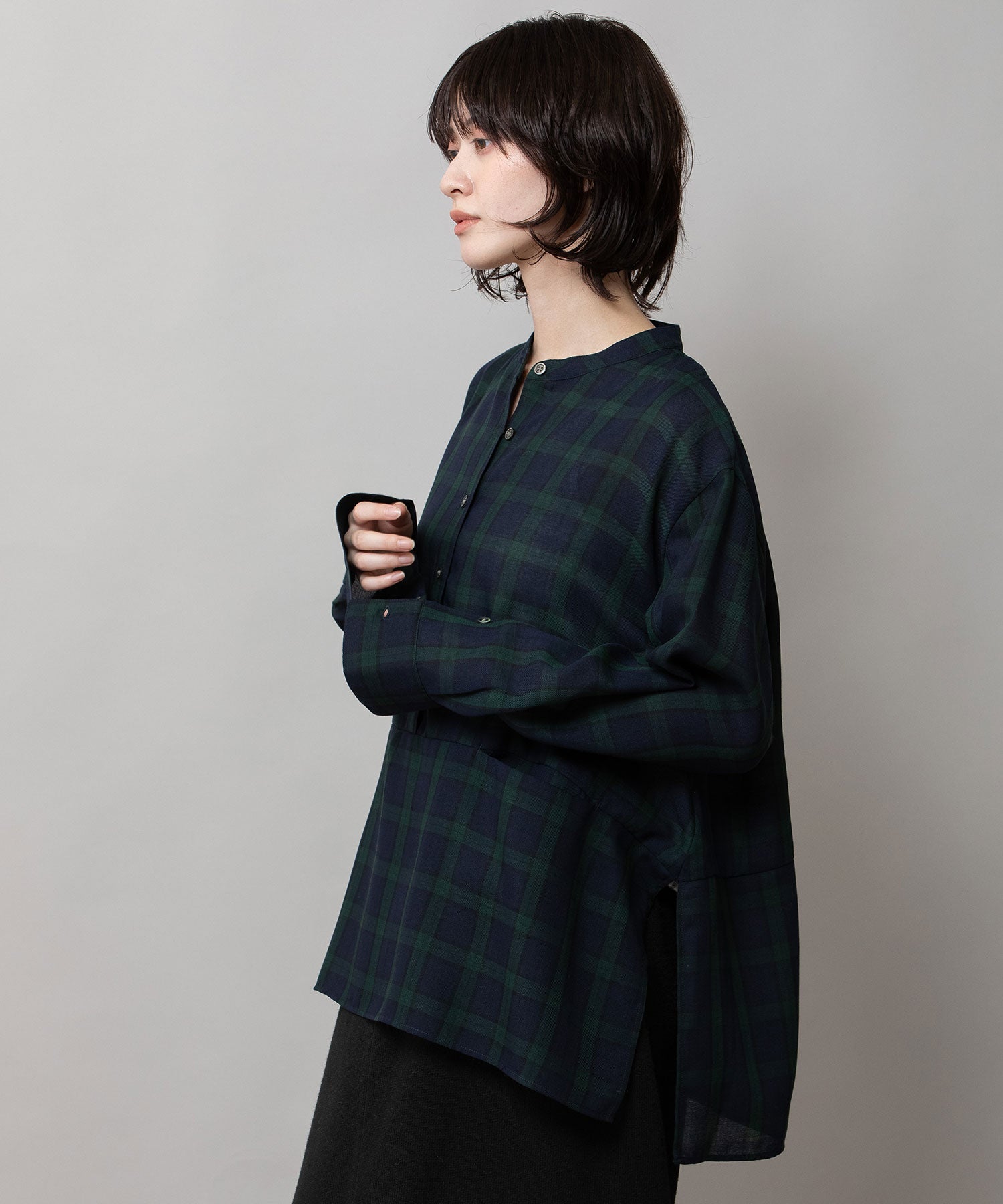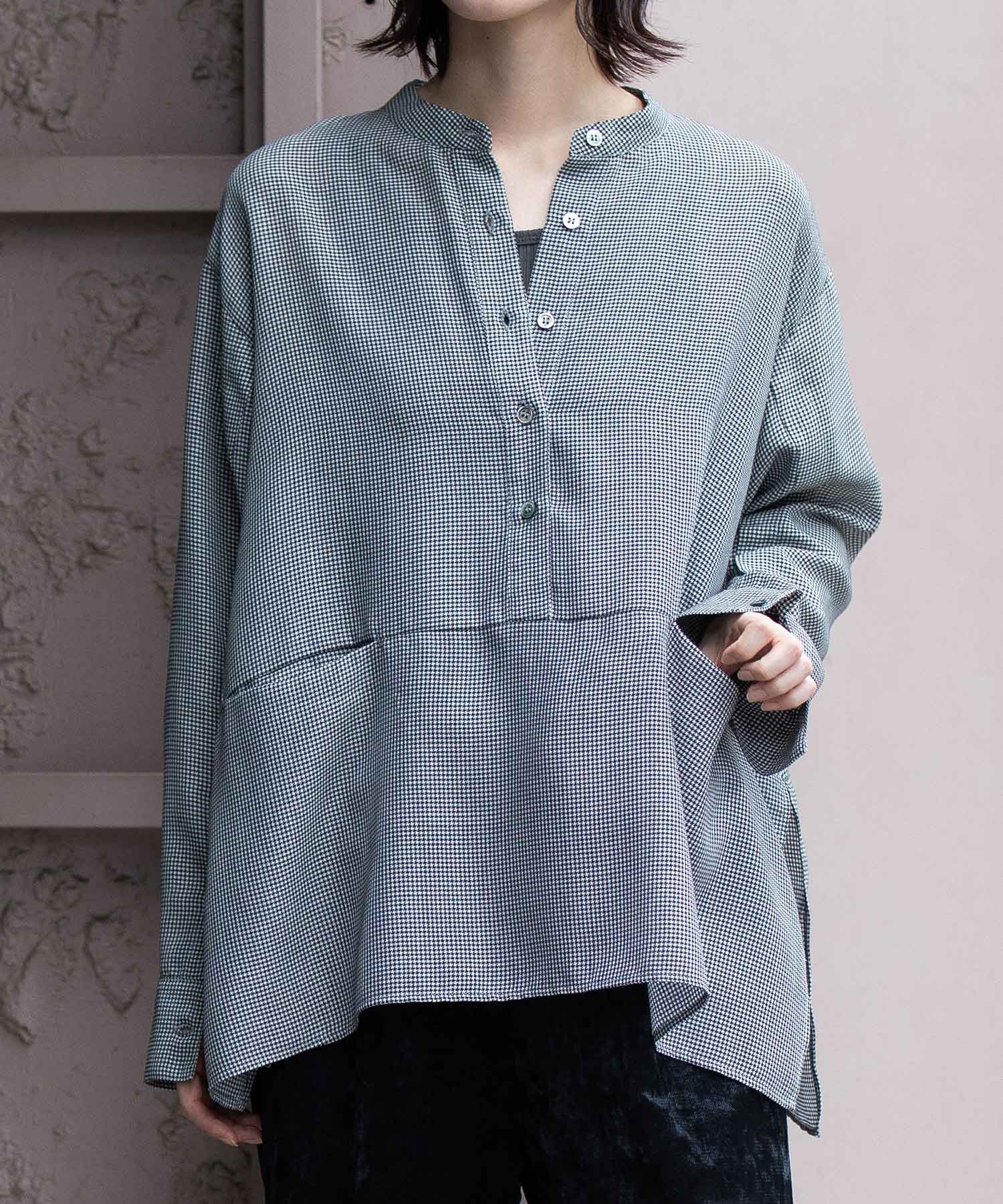 程よくオーバーサイズで着られるバンドカラーのプルオーバーです。
