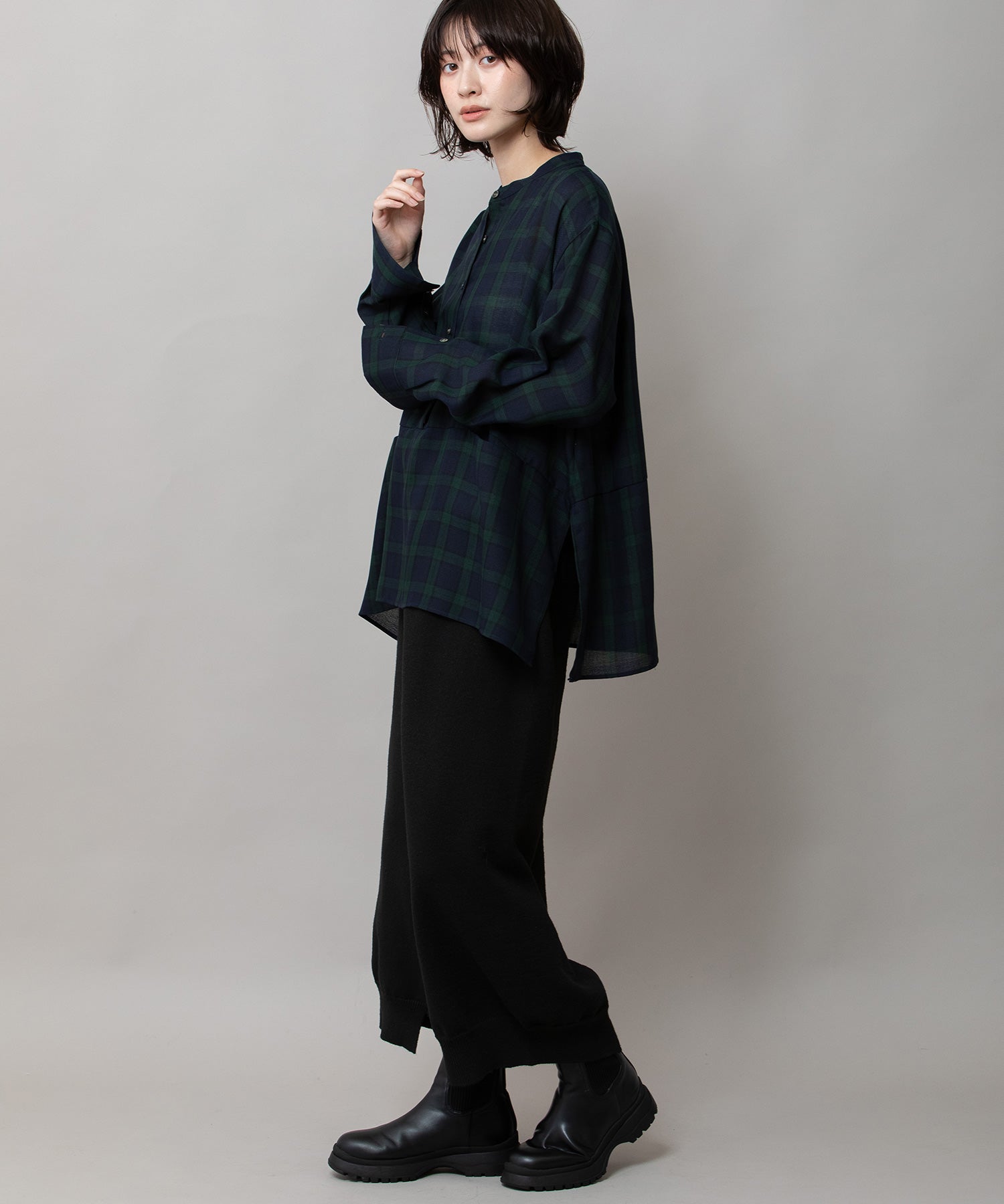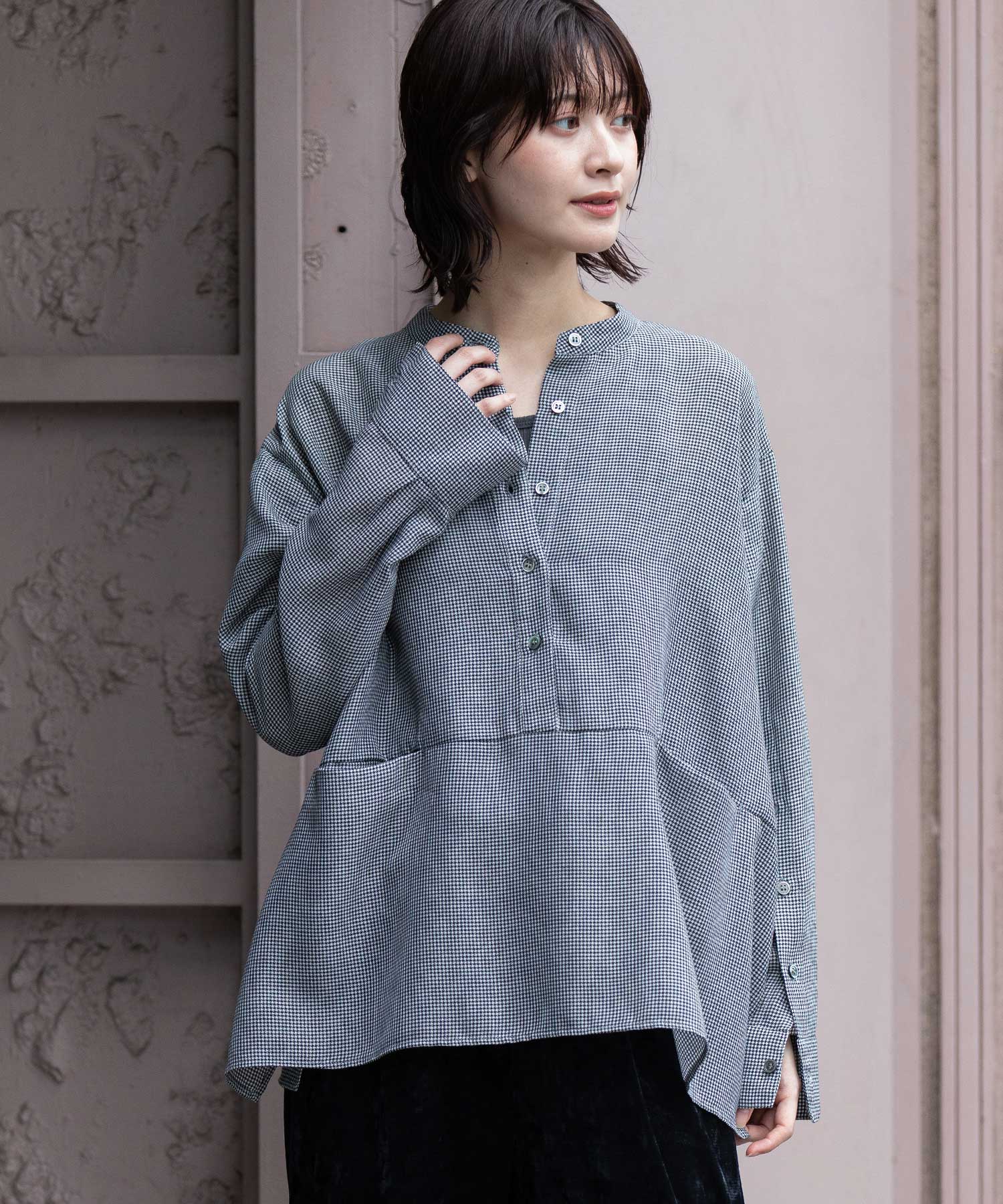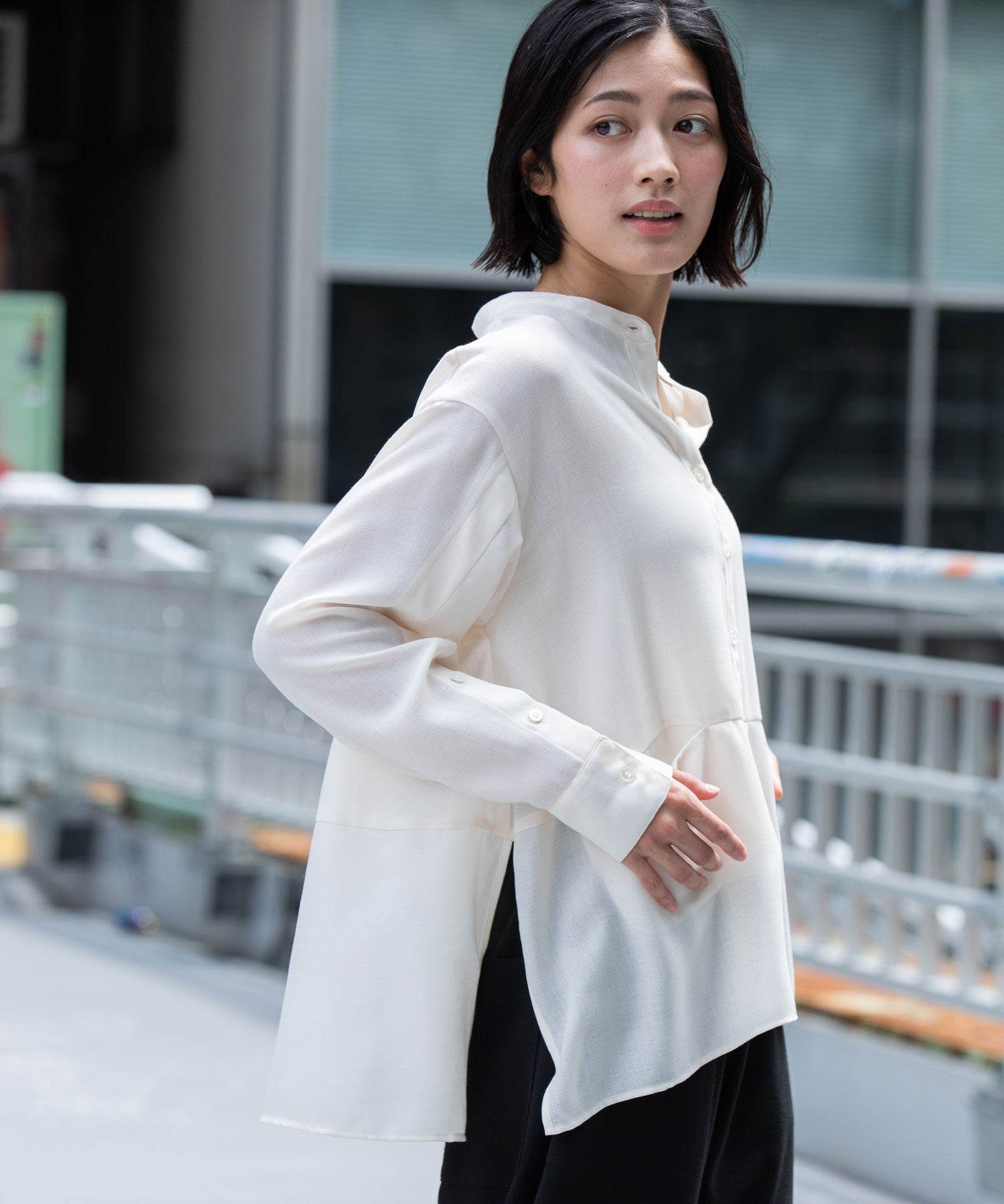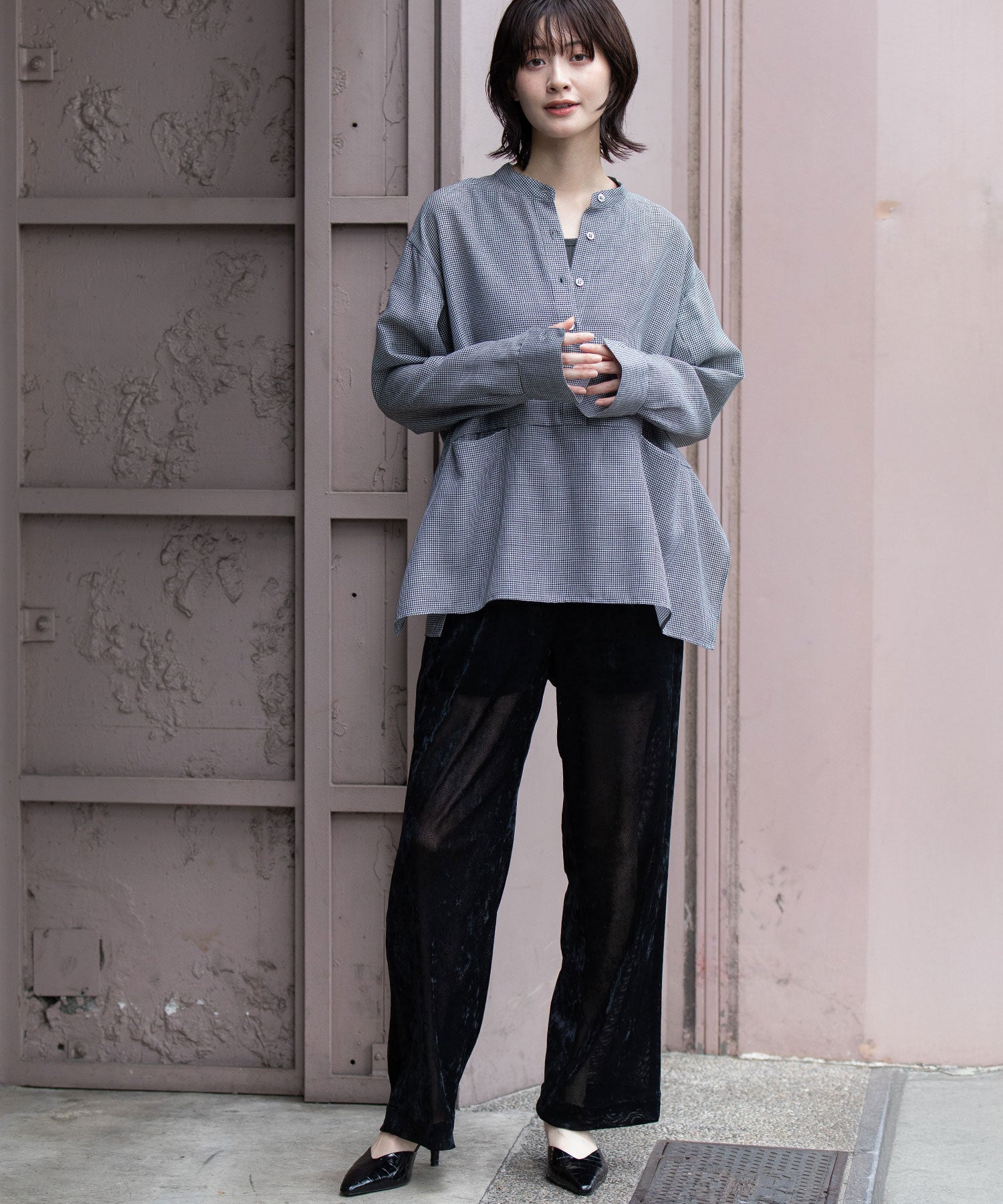 程よくオーバーサイズで着られるバンドカラーのプルオーバーです。