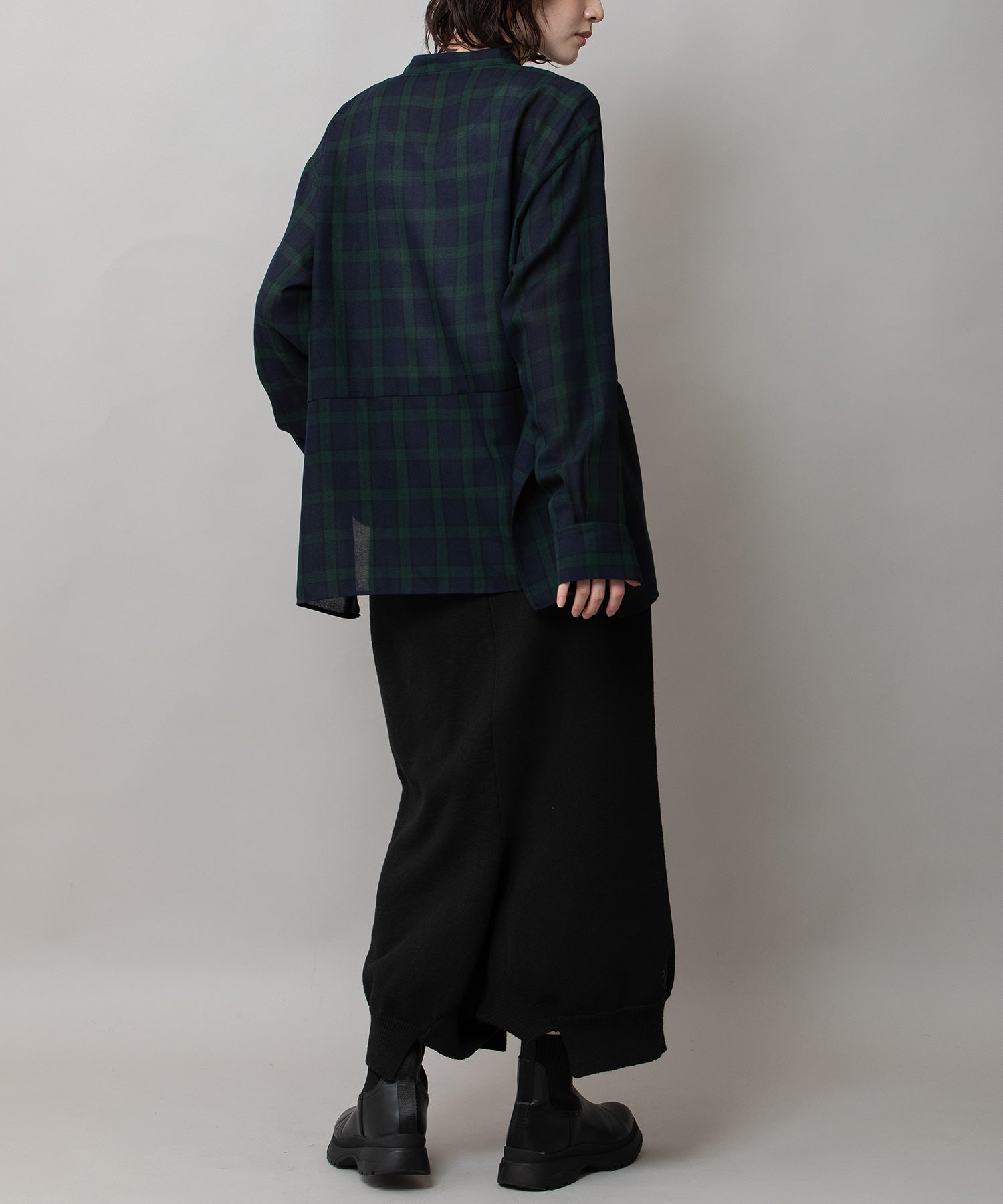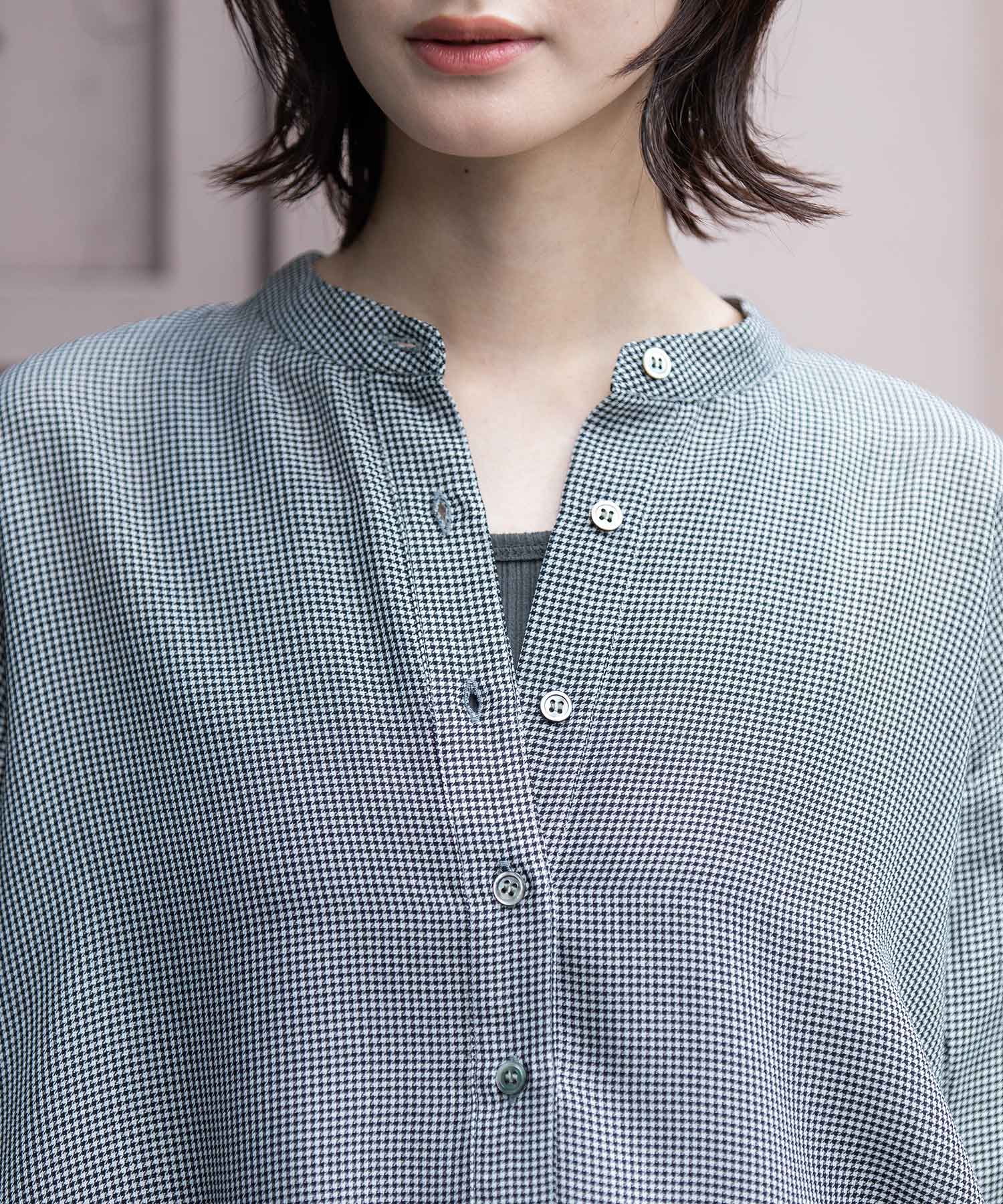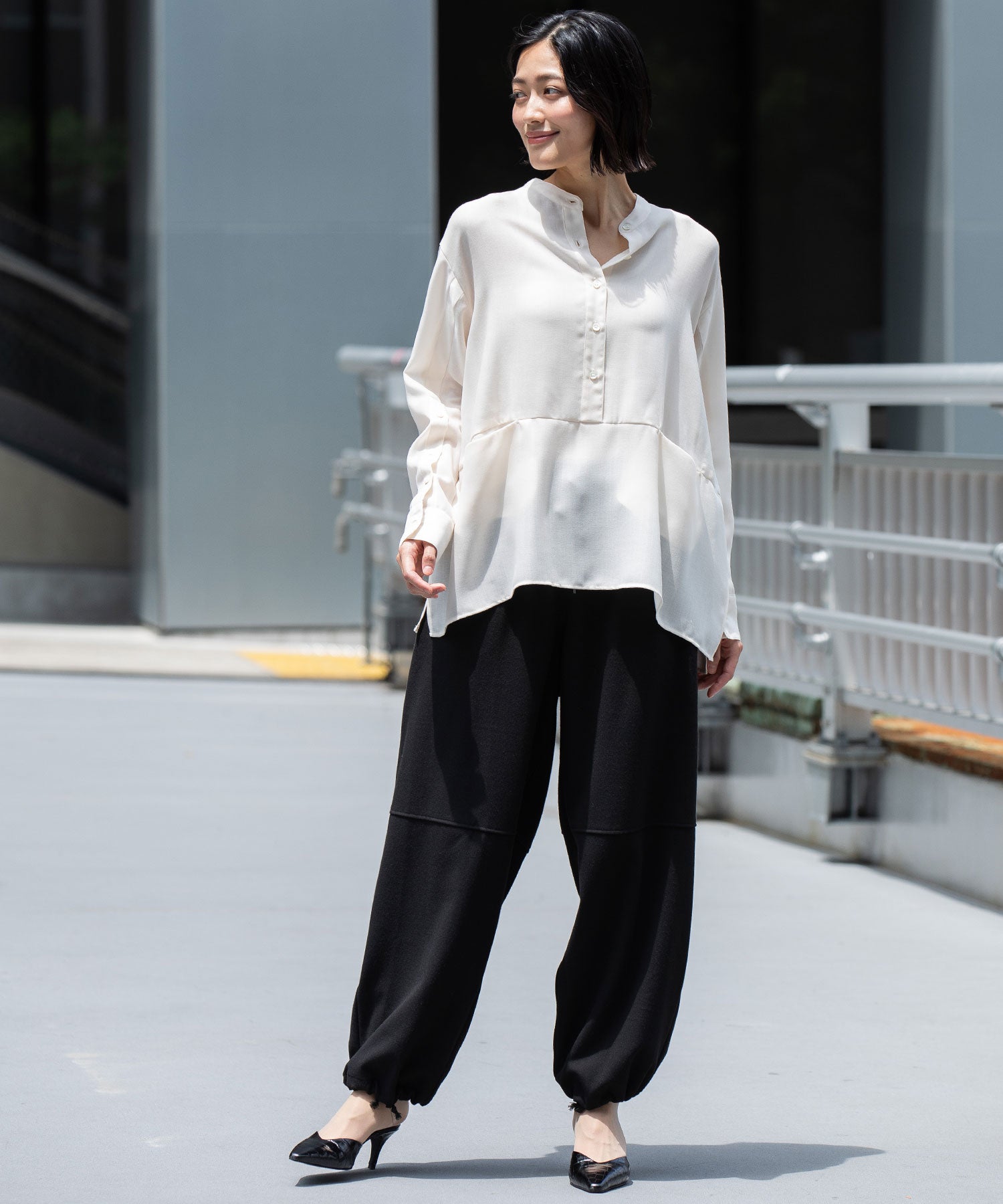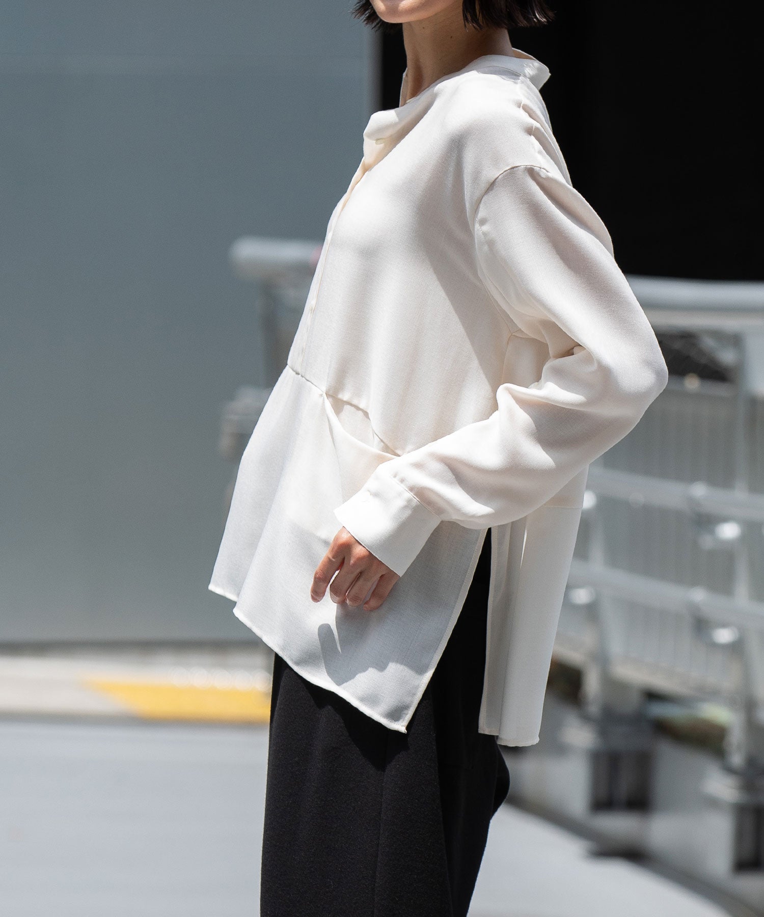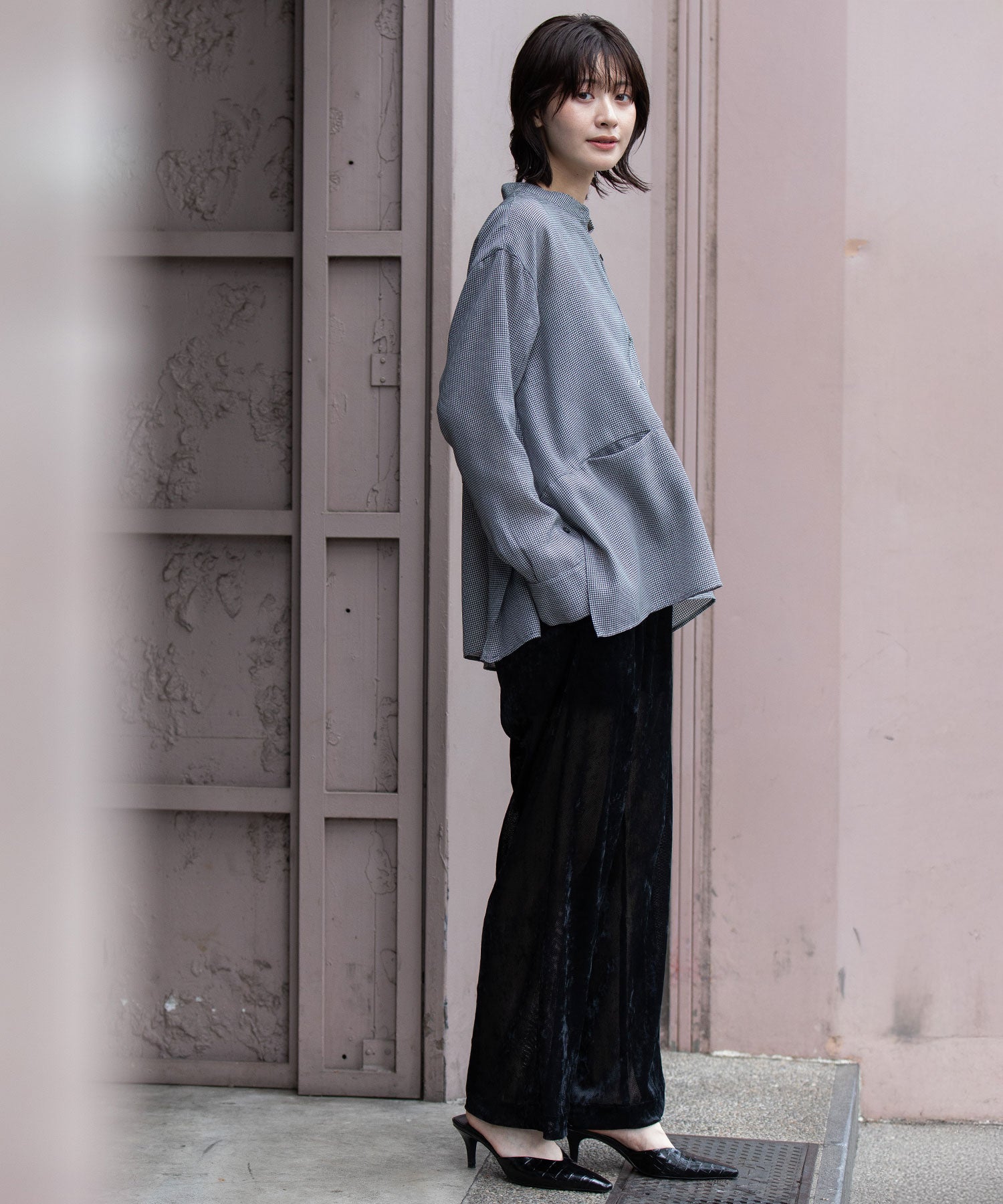 程よくオーバーサイズで着られるバンドカラーのプルオーバーです。
