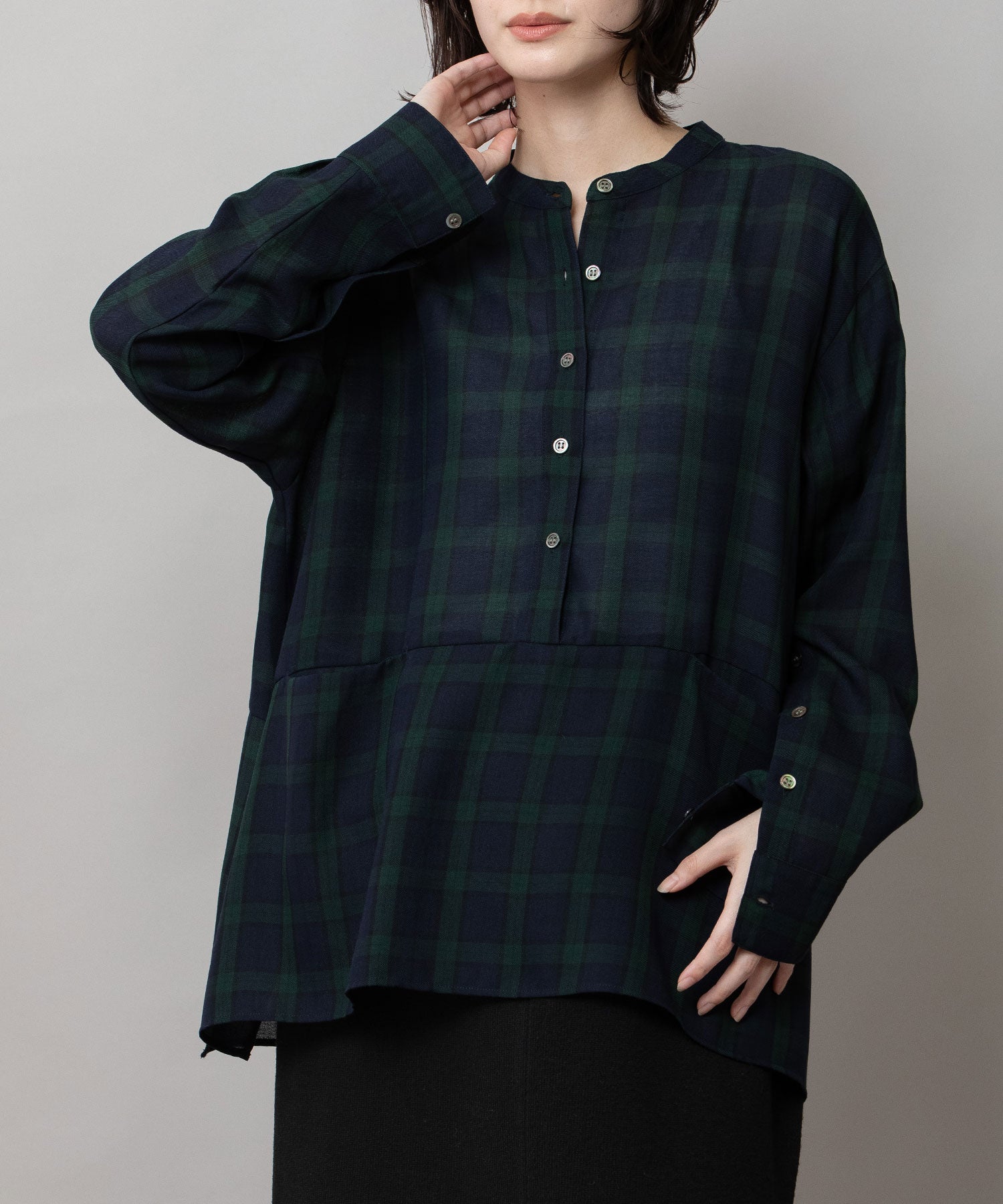 ◆梳毛ビエラで仕立てたすっきり重ね着できるプルオーバーシャツ◆