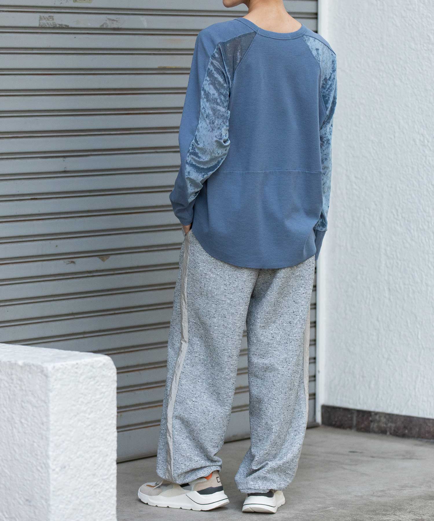 ウールミックスジャージ×メッシュベロアドッキングプルオーバー