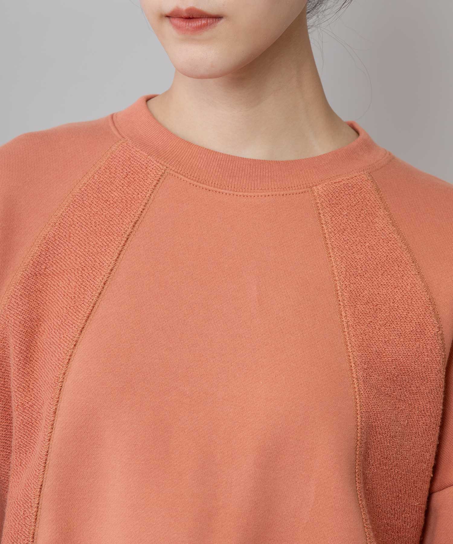 フロントスタイルにのみ、同素材の裏毛を裏使いしたパーツを施し、さりげないデザインポイントに。