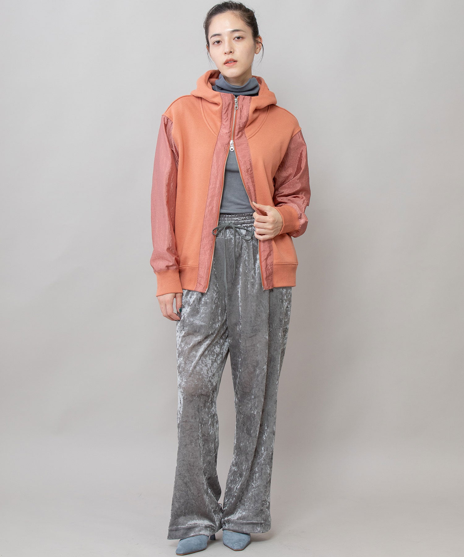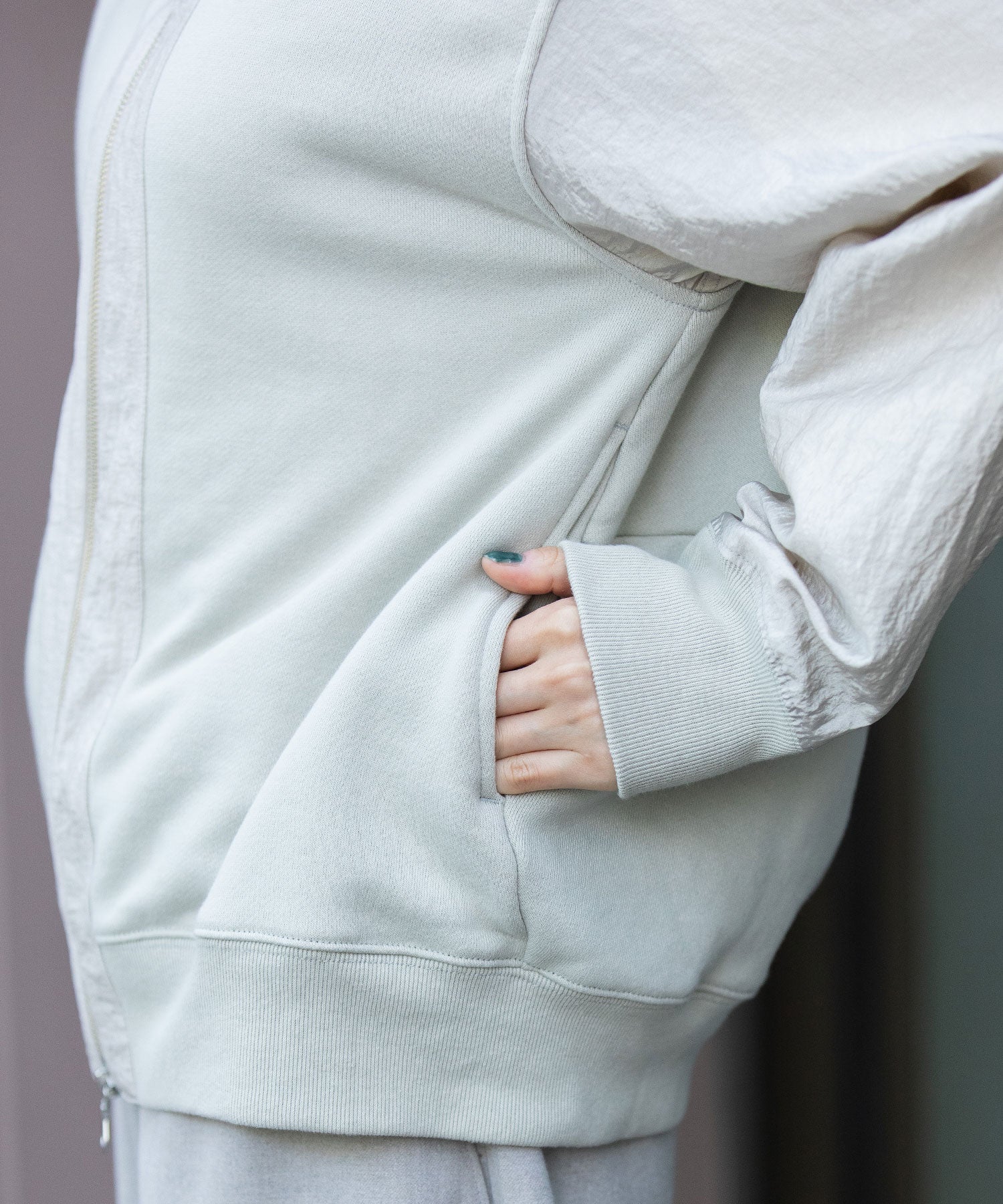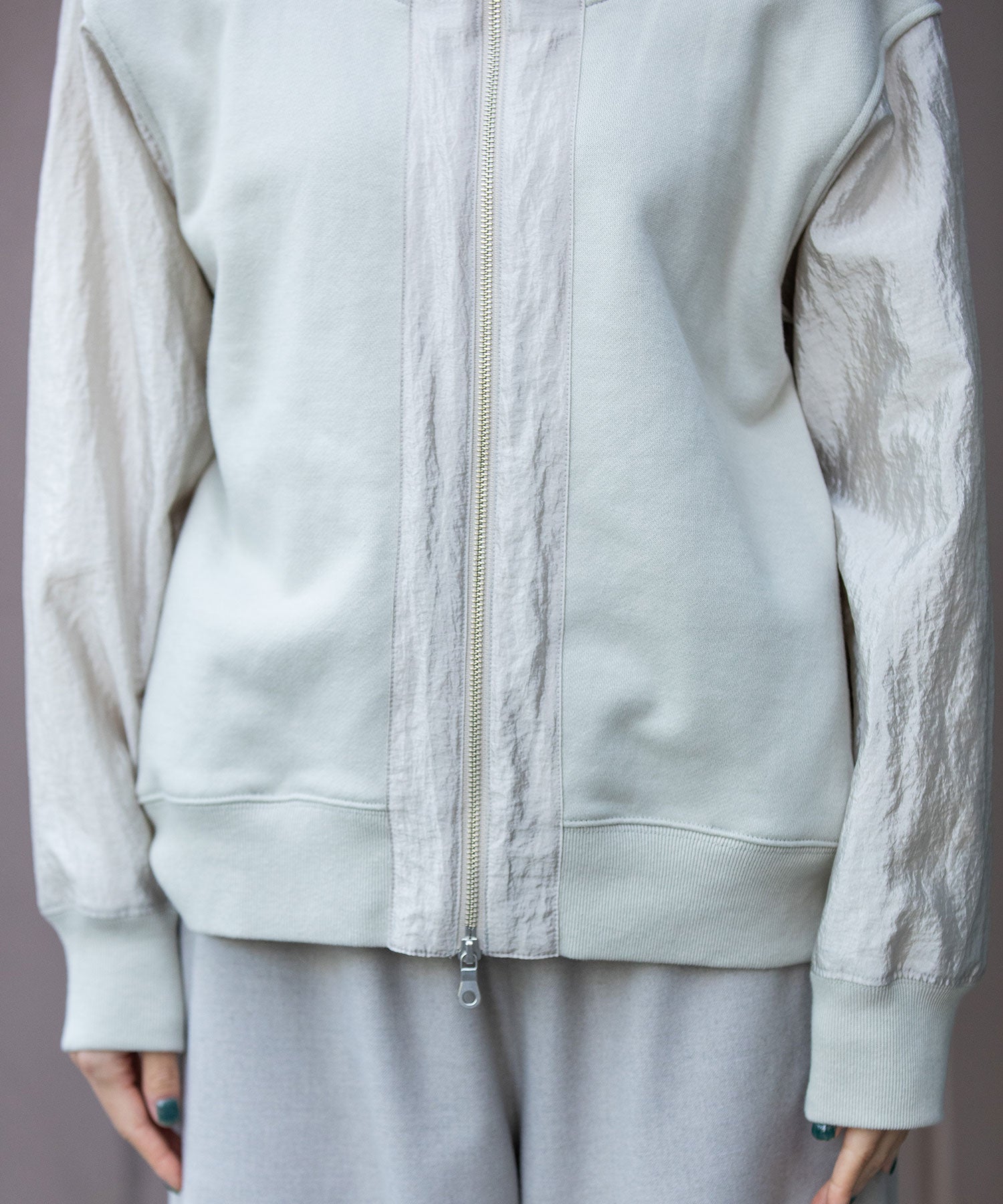 裏毛×ナイロンジップアップフーディー