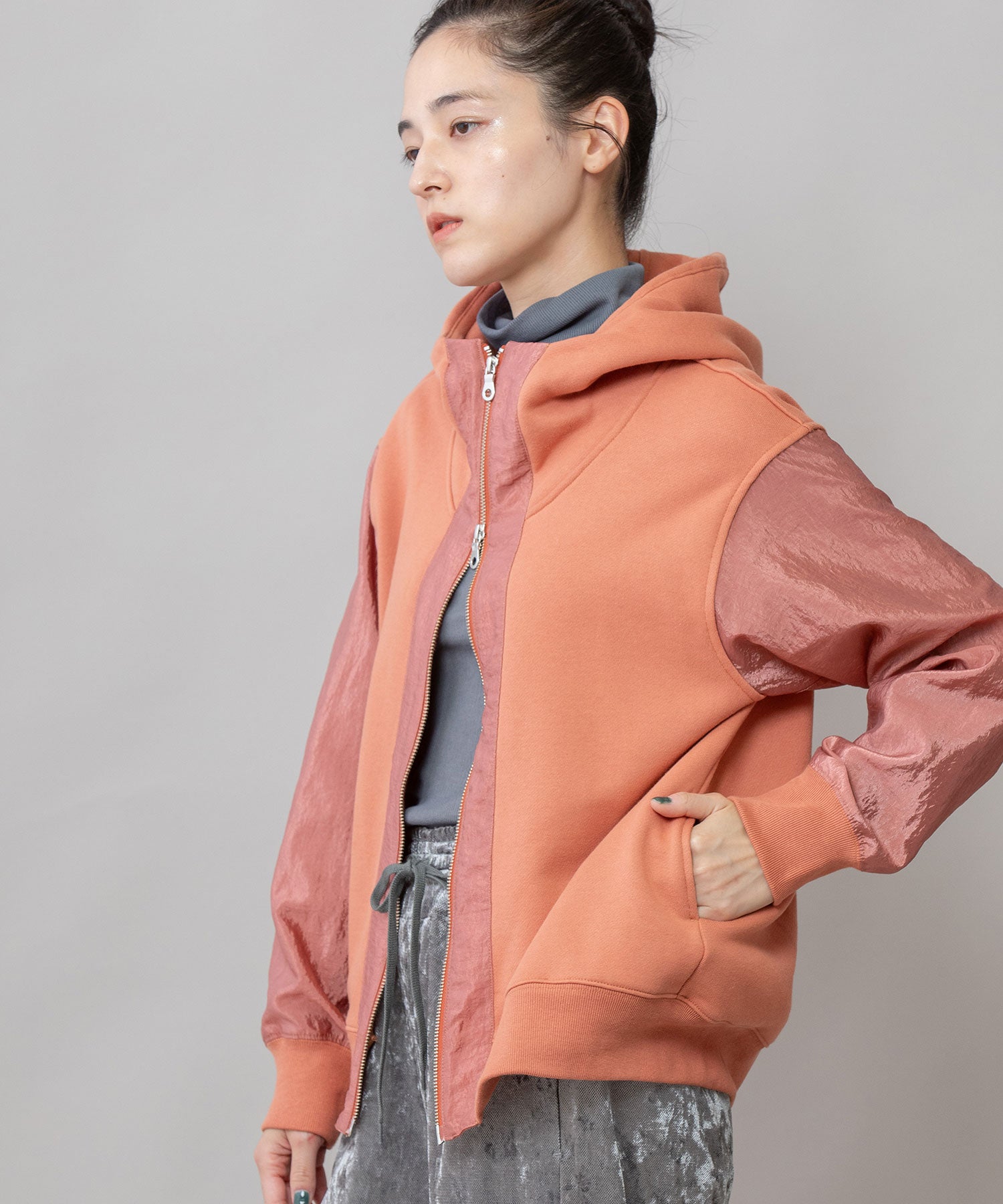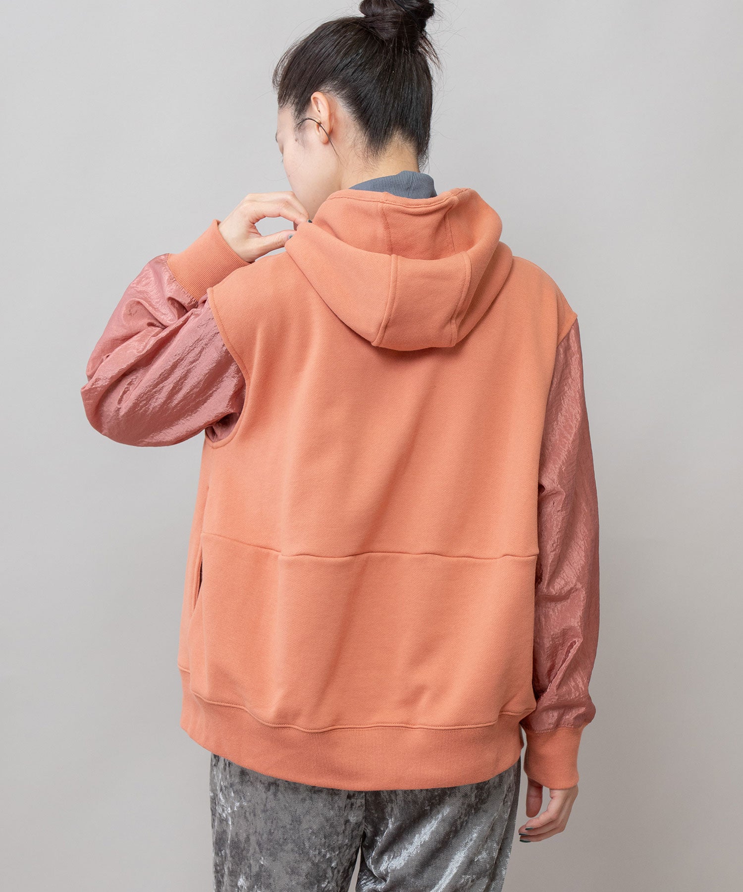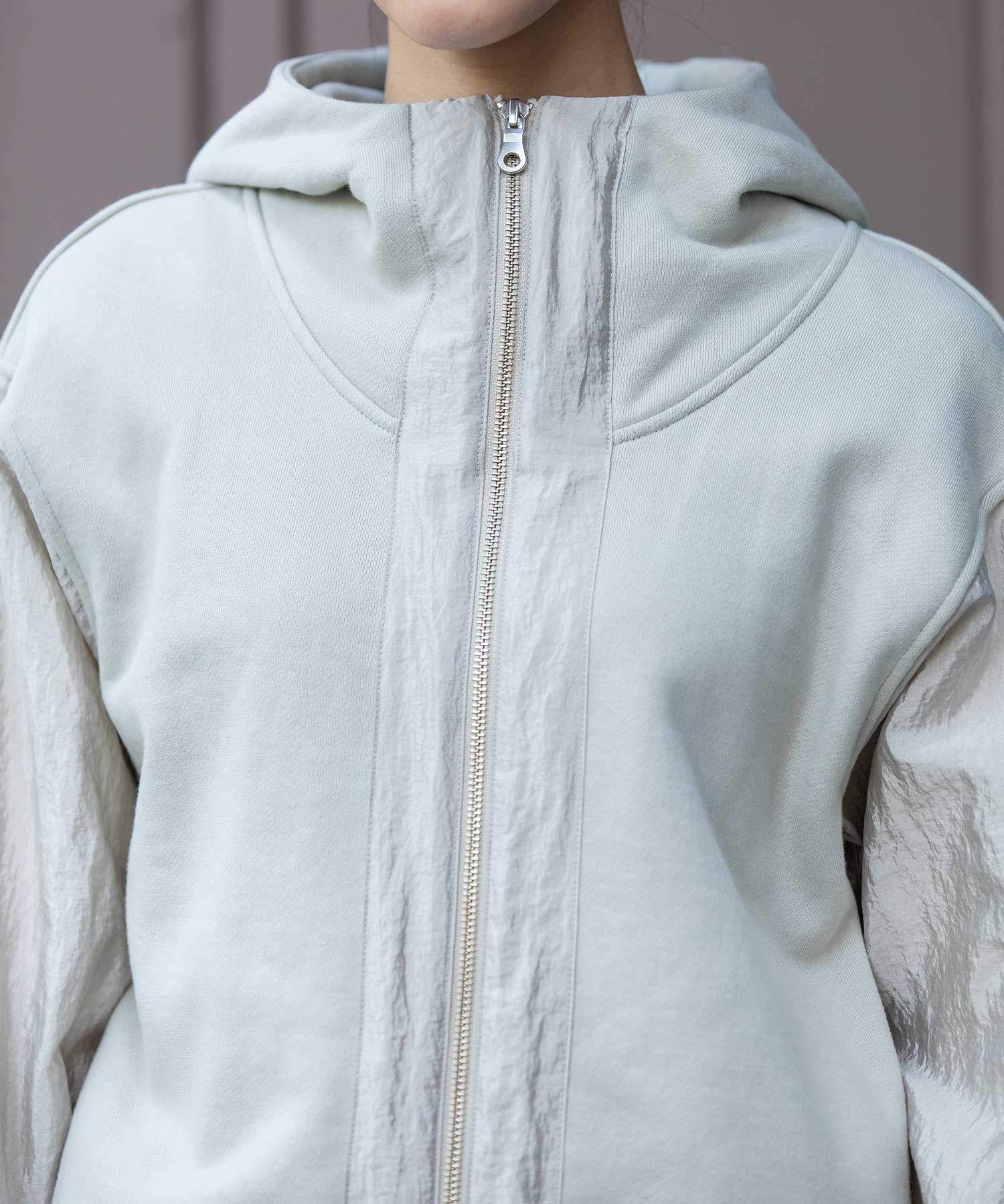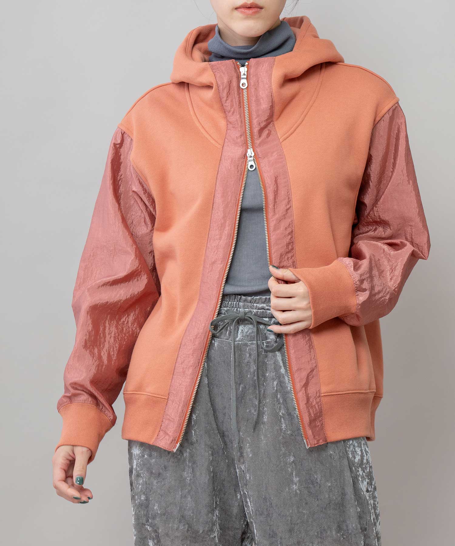 ◆カジュアルな裏毛としなやかなナイロン生地をドッキングさせたデザインパーカー◆