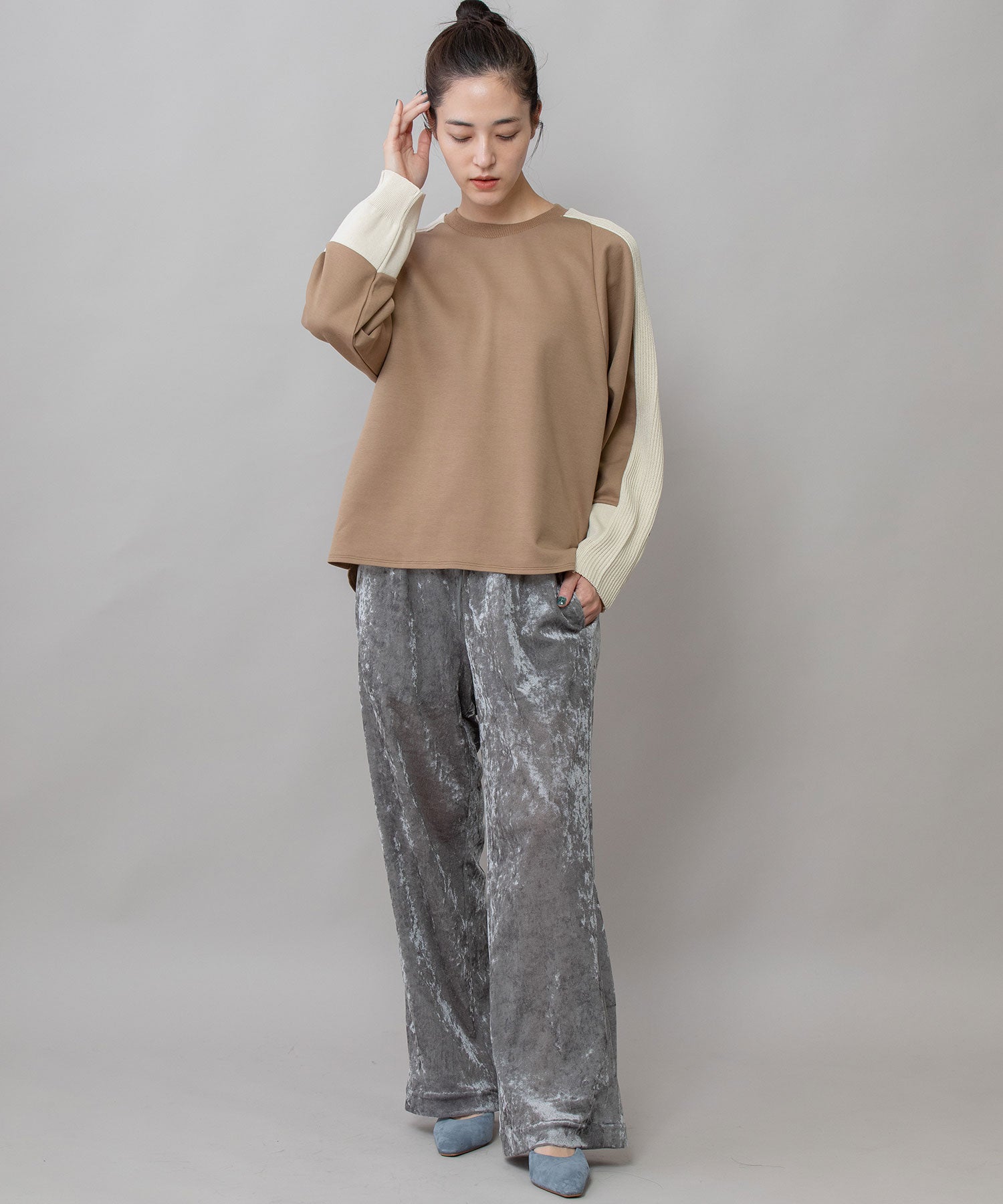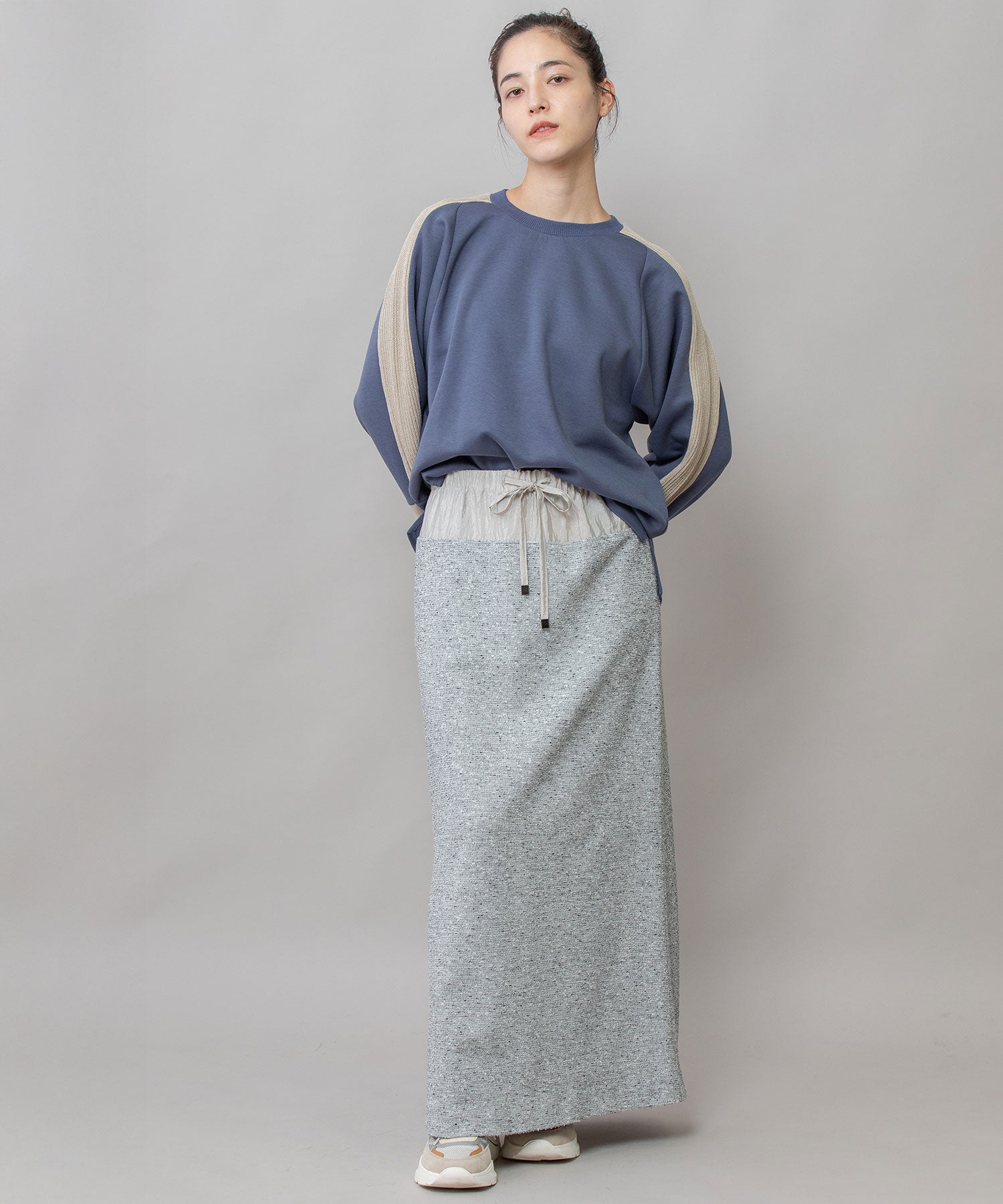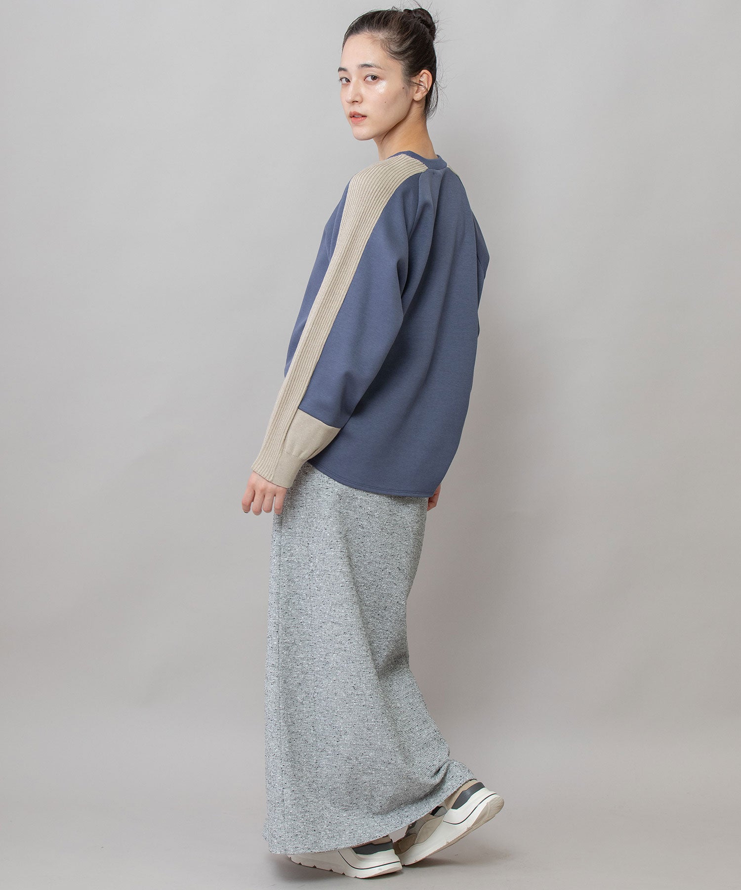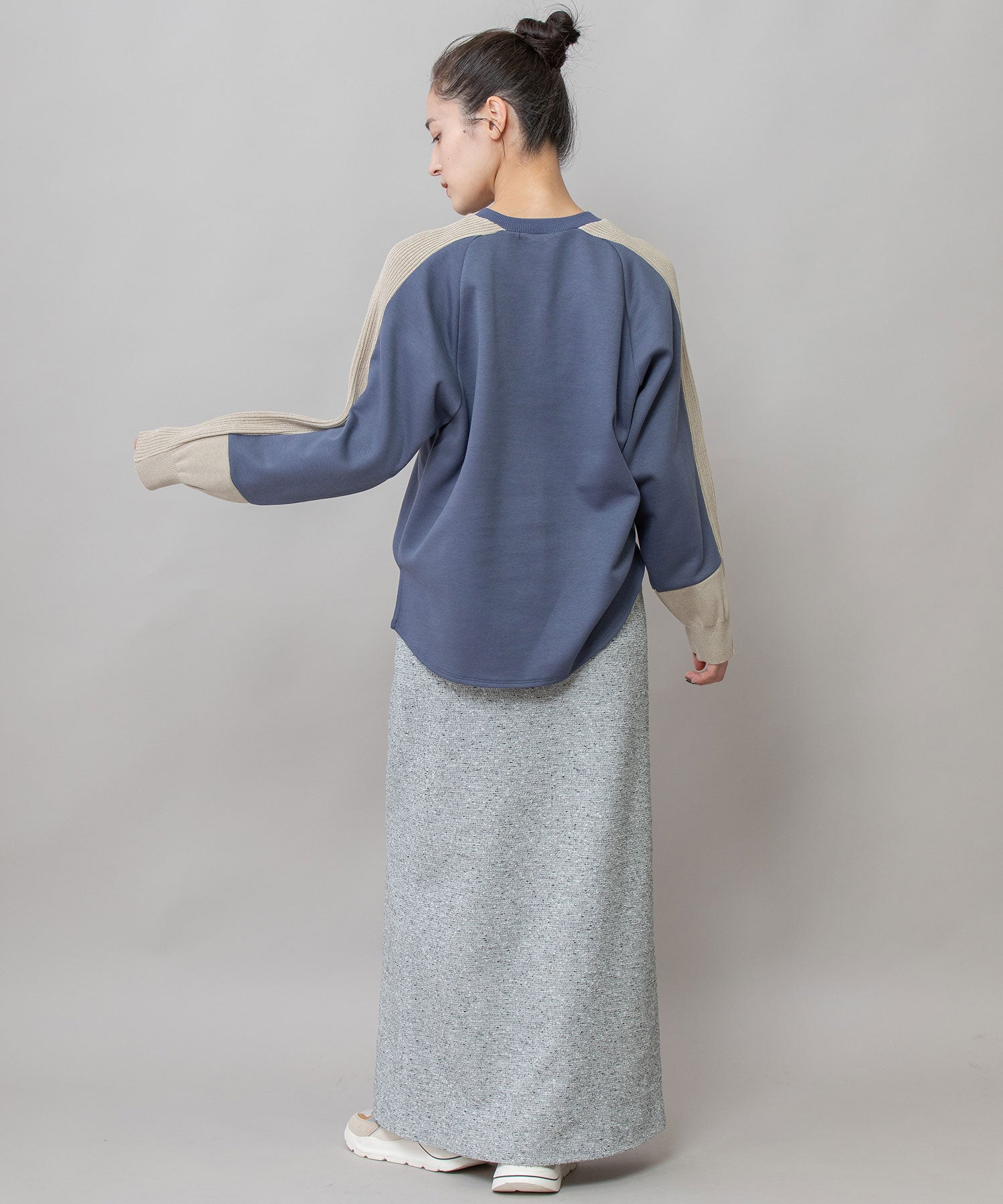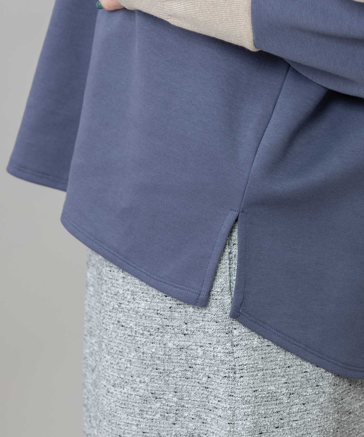 やわらかい生地感なのでボトムスにインもしやすく、パンツ・スカート問わず合わせやすい着やすいアイテムです。