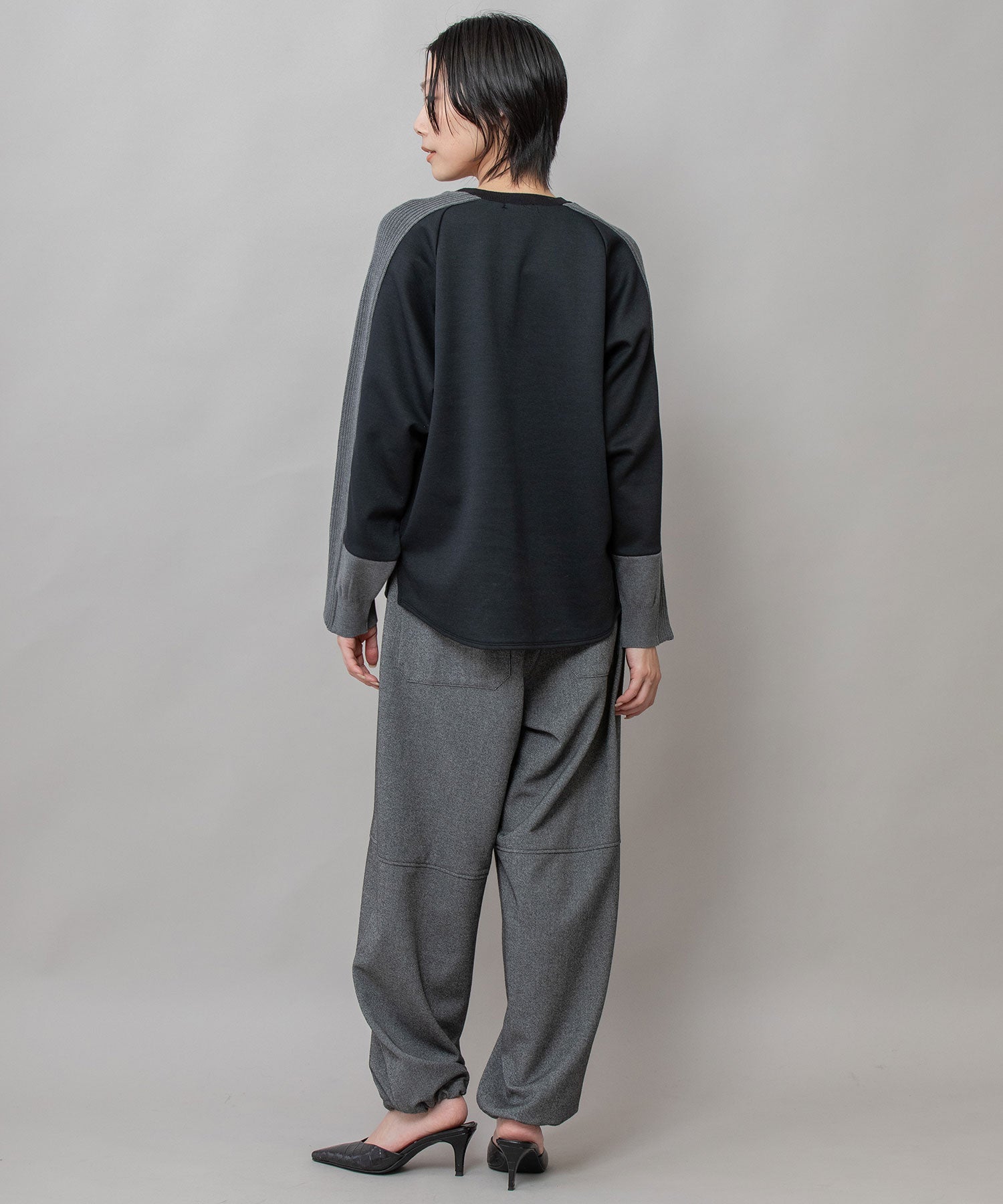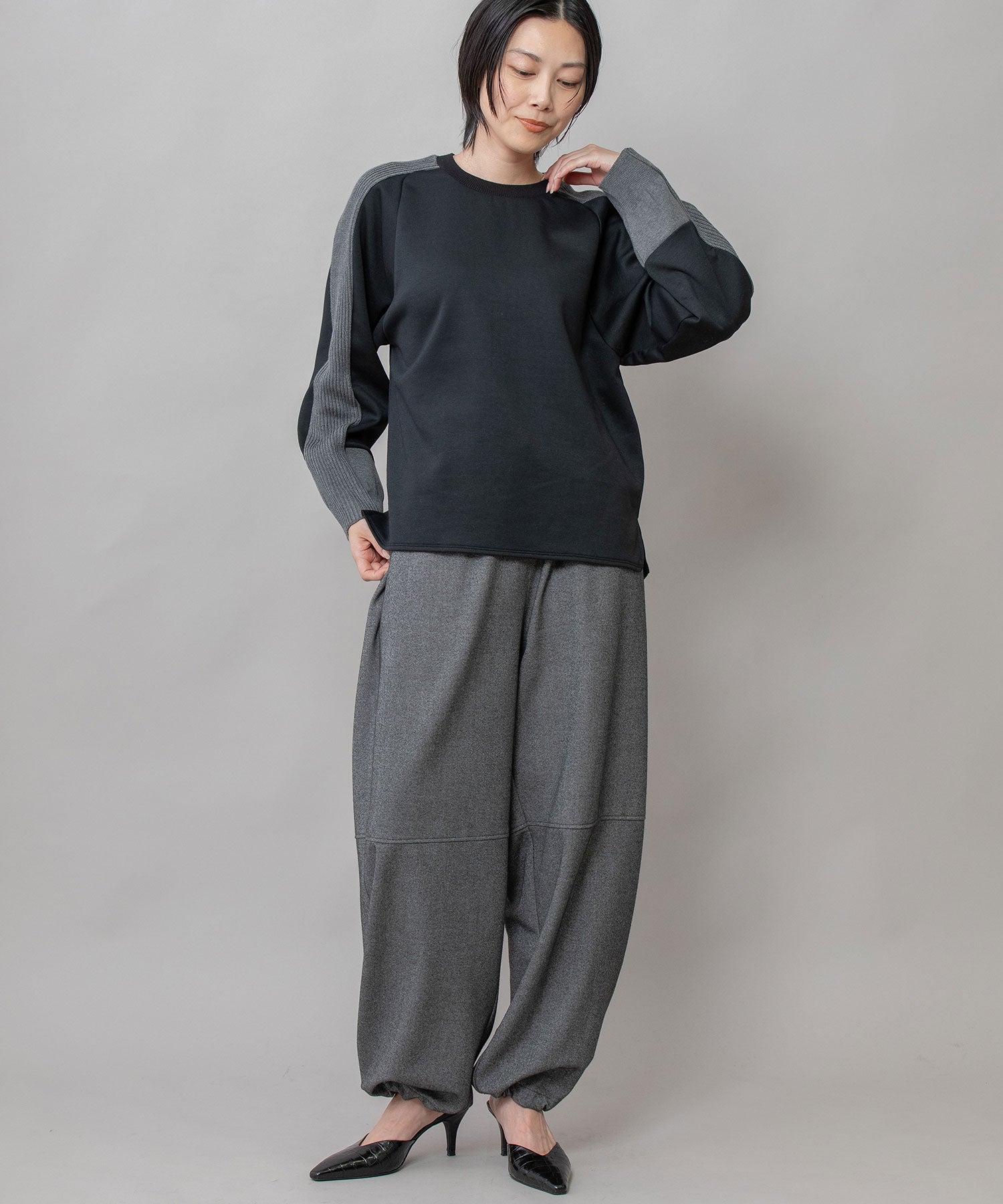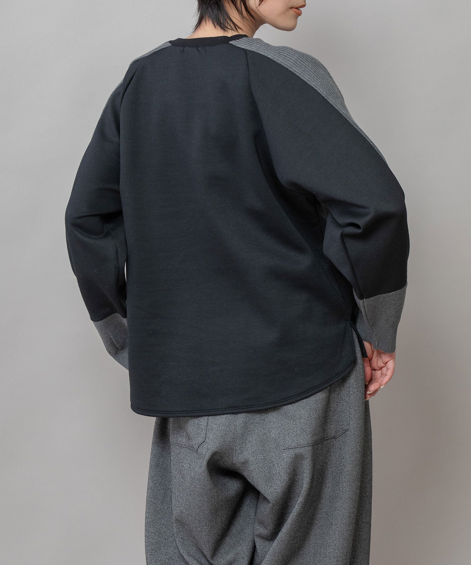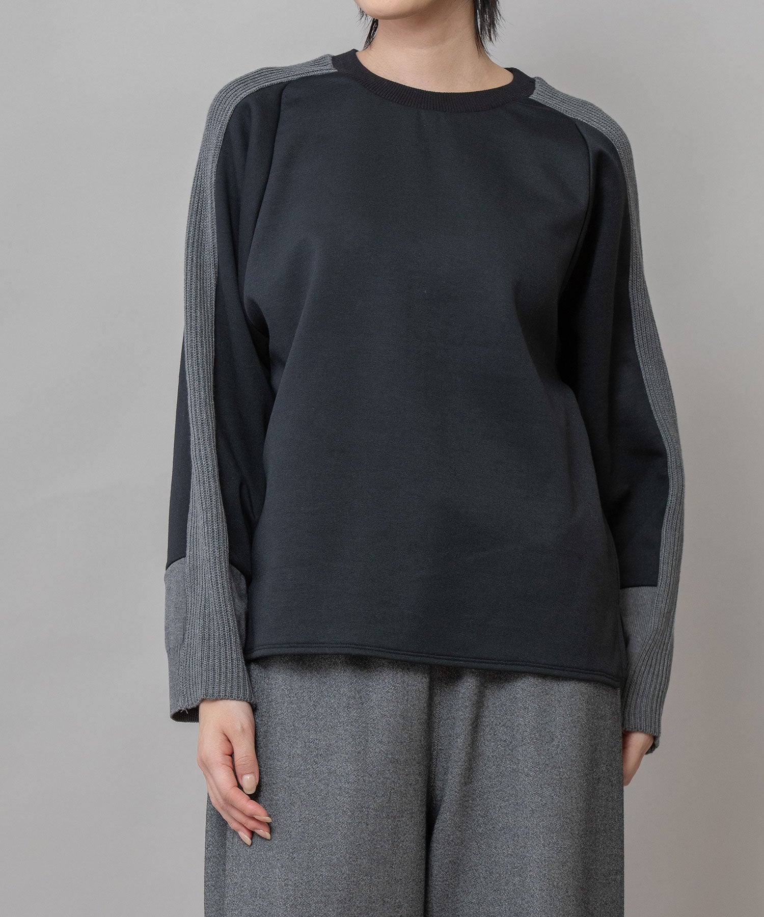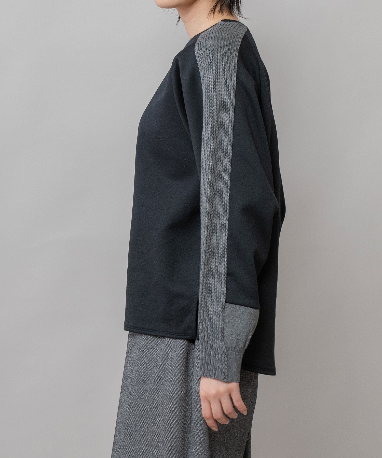 ■ブラック:シックなブラックに、やわらかなグレー袖で抜け感を演出したカラー