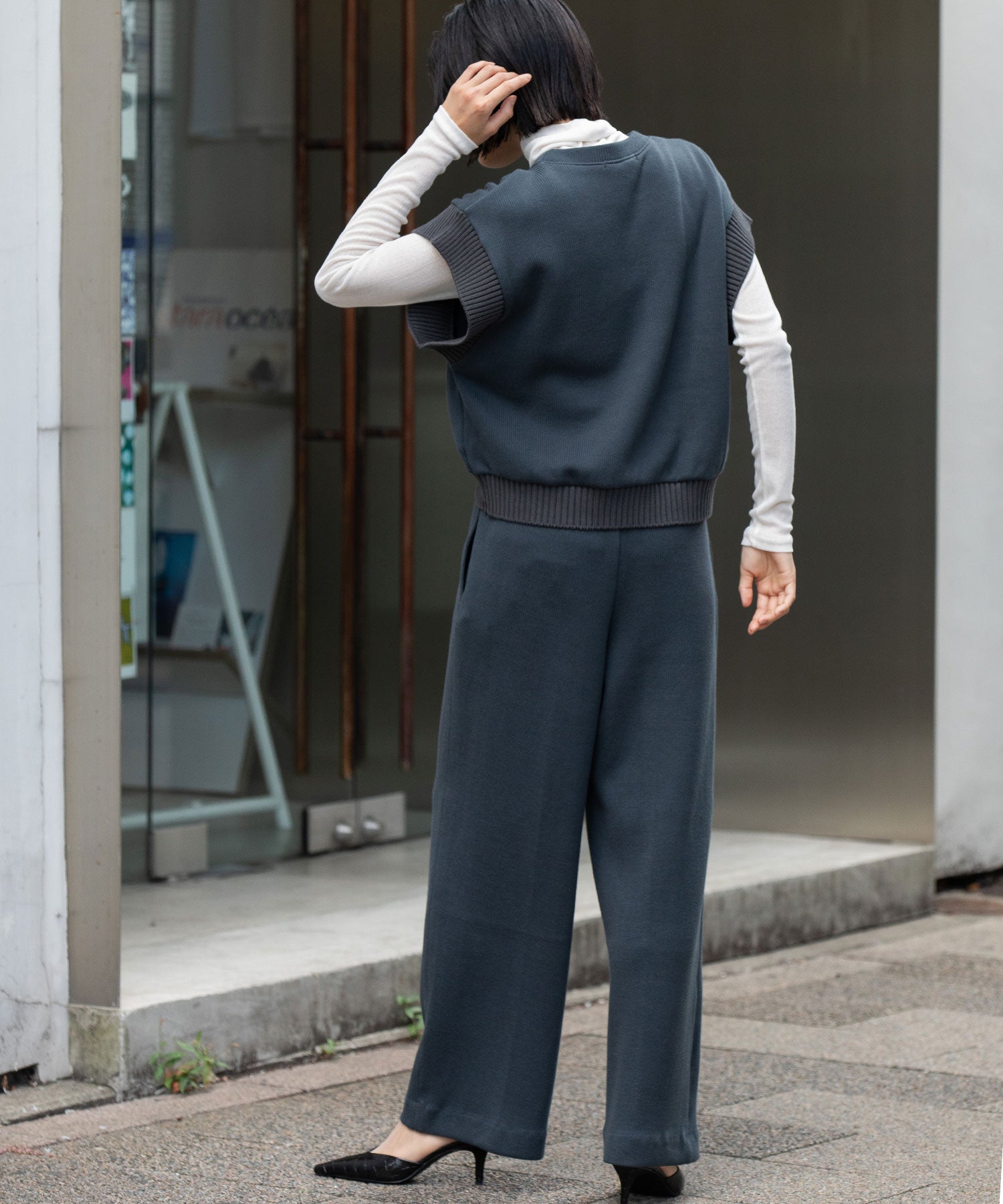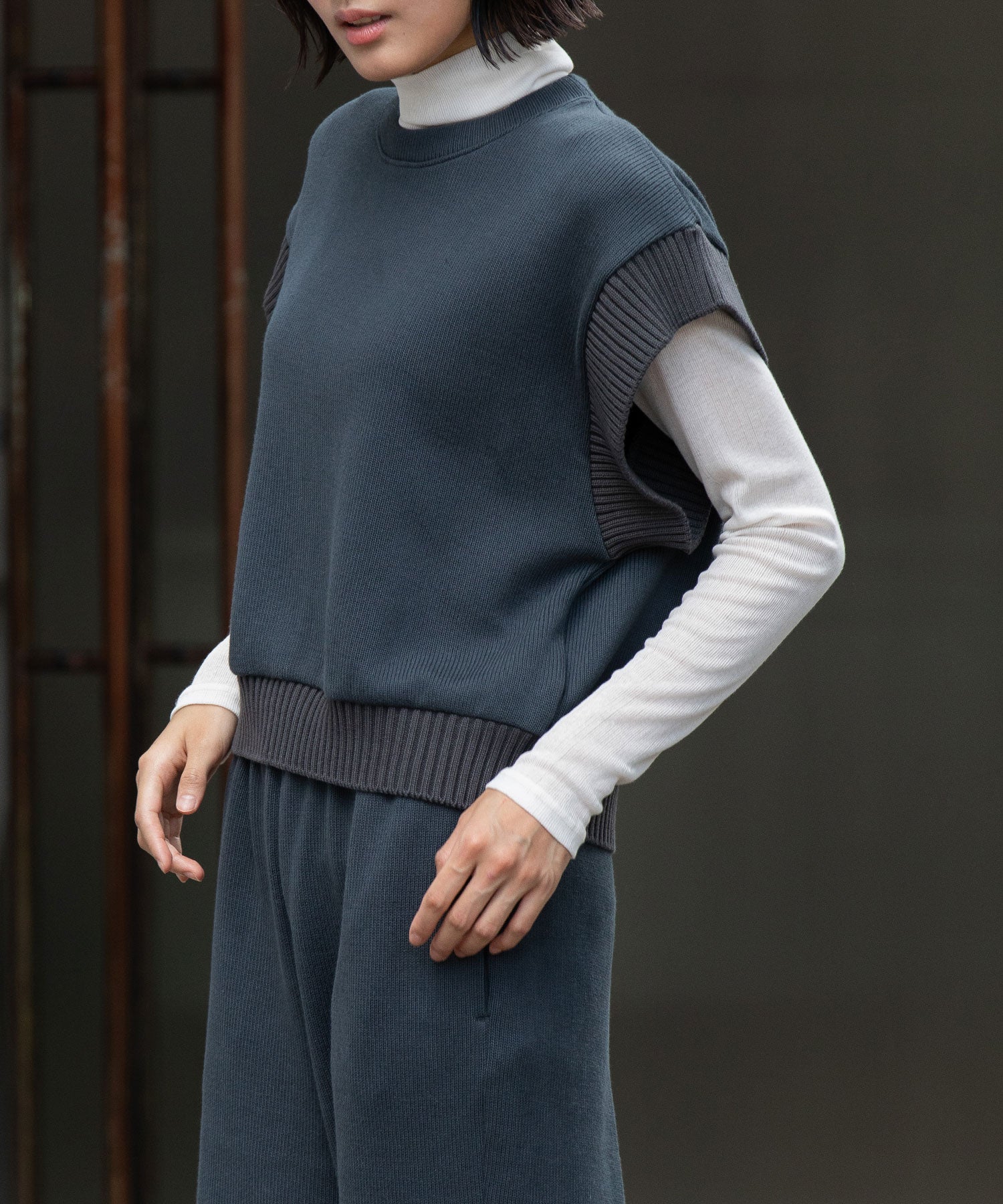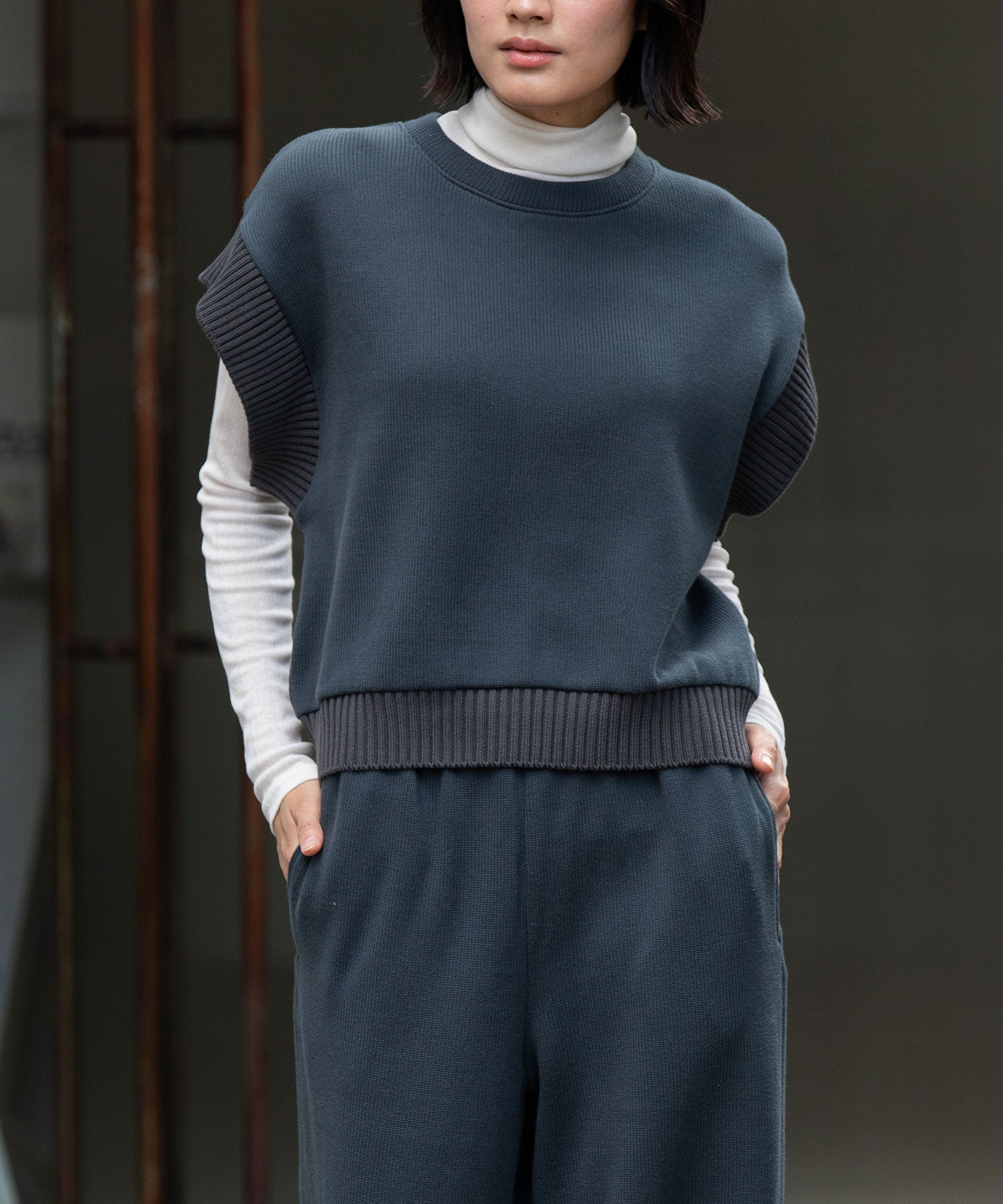 ニットライクなカットソーの素材感を生かし、袖口と裾に編み立てリブをドッキングすることで、ニットの様な雰囲気に仕上げたドッキングトップスです。