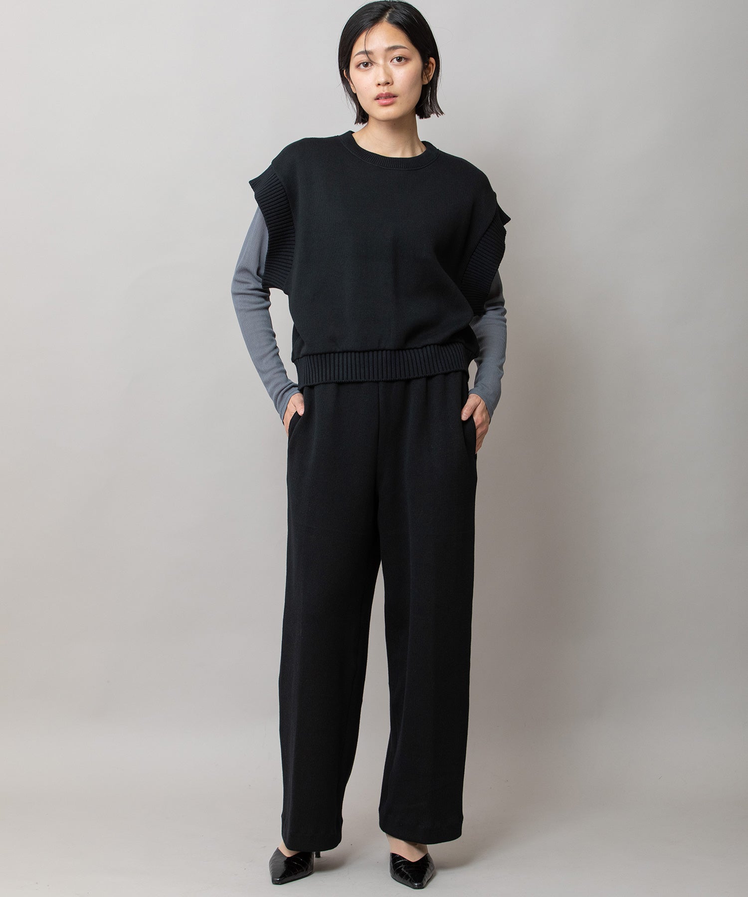 ◆シーズンレスに使えるニットライクジャージーに編み立てリブをドッキングし価値観を加えたオリジナリティーあるトップス◆
