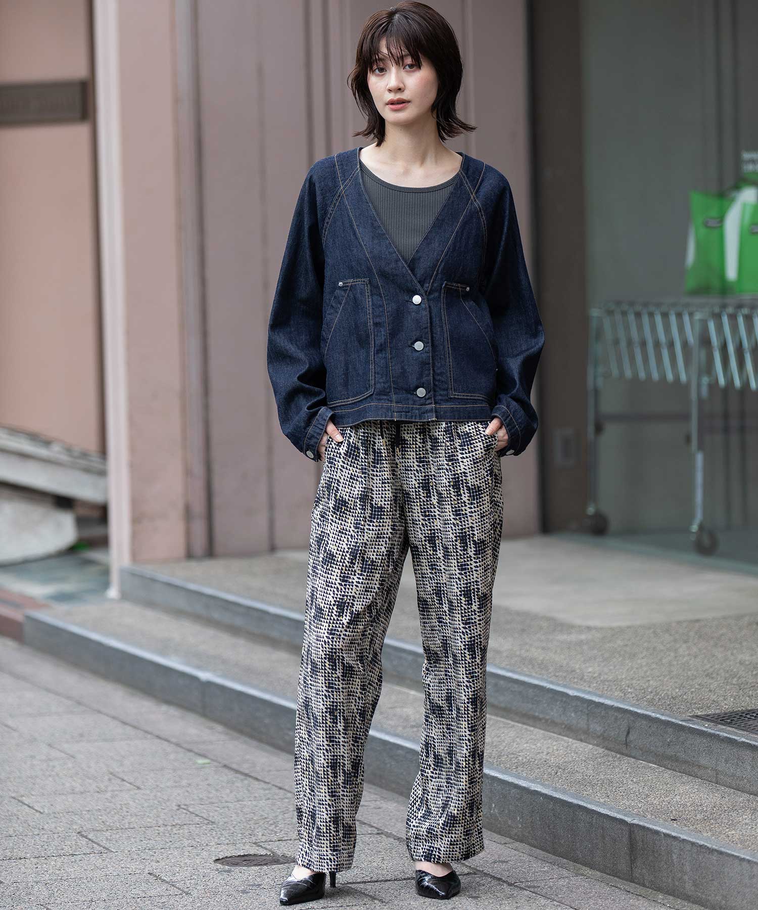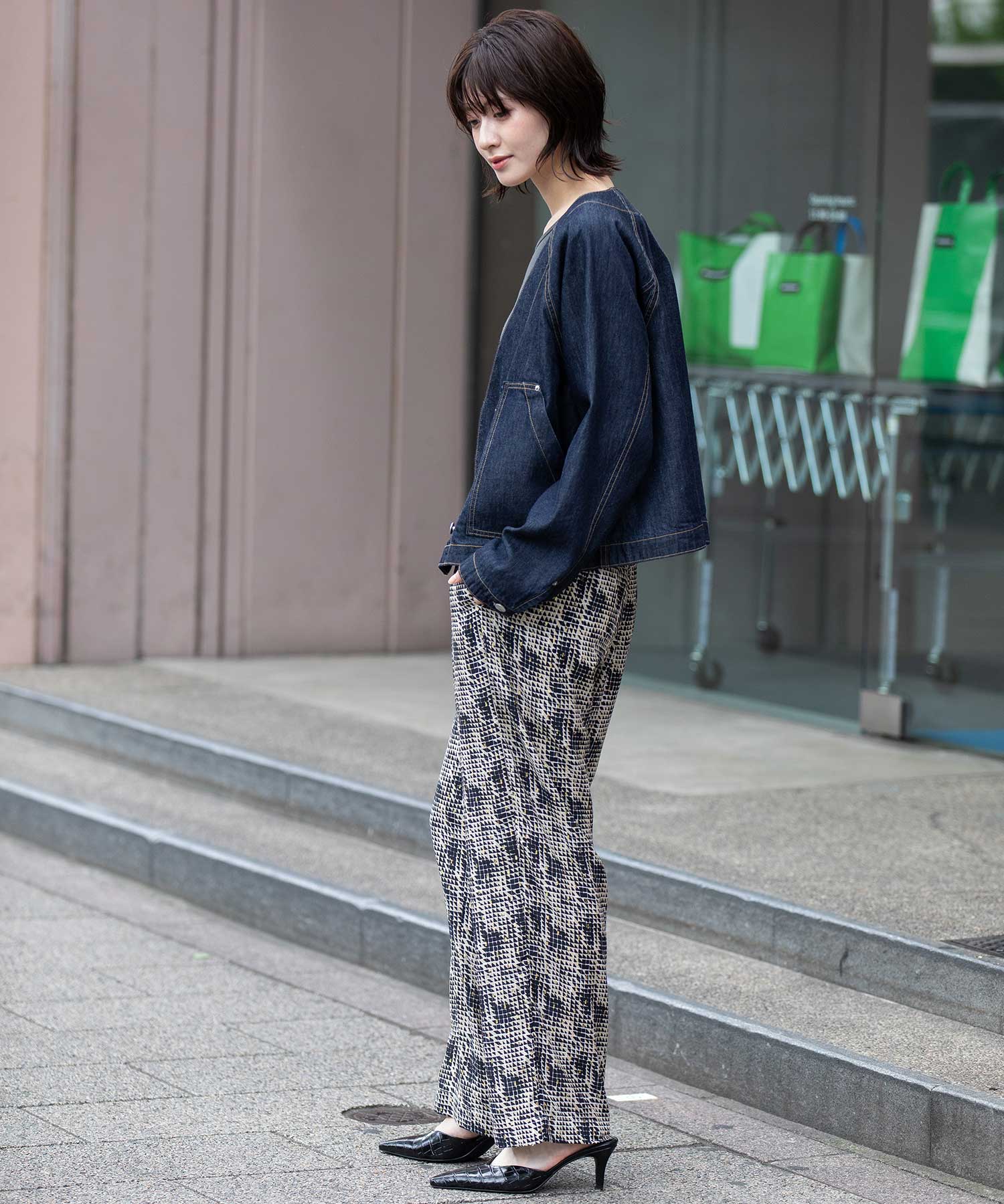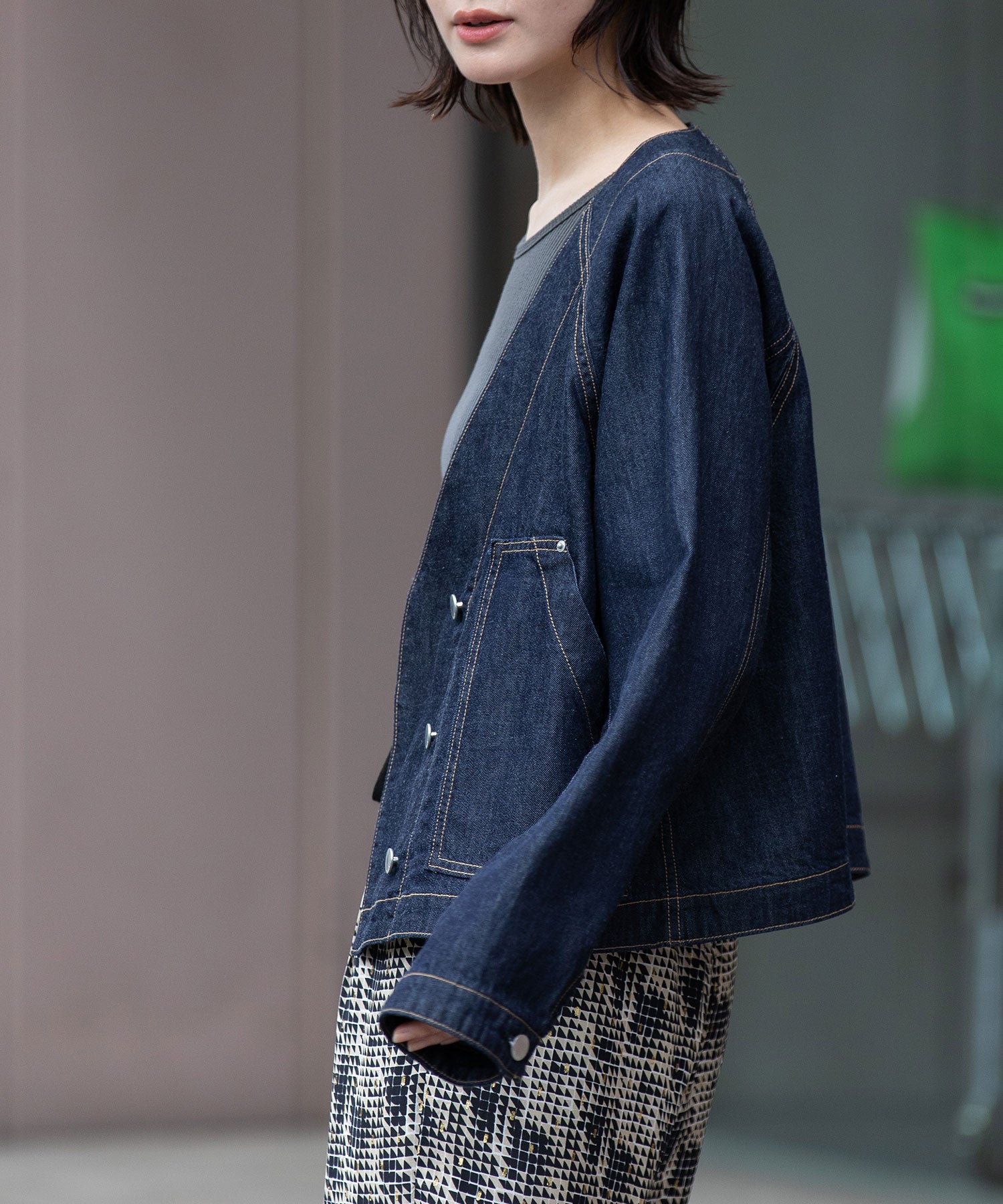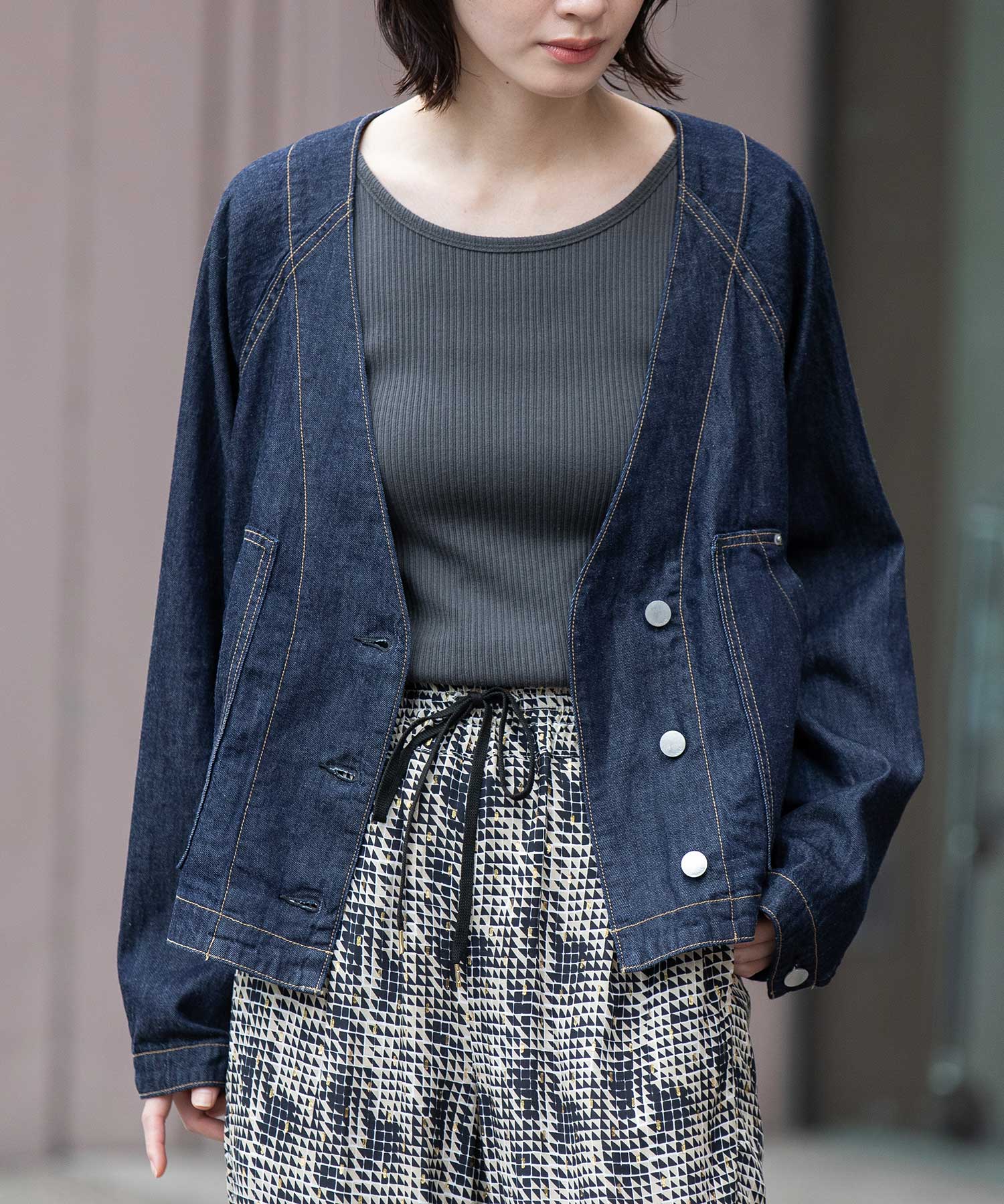 経緯とも綿/リヨセルの混紡糸を使用しているためソフトな風合いで、タテはムラ糸なので混紡糸でもきちんとデニムらしい表情になってます。
