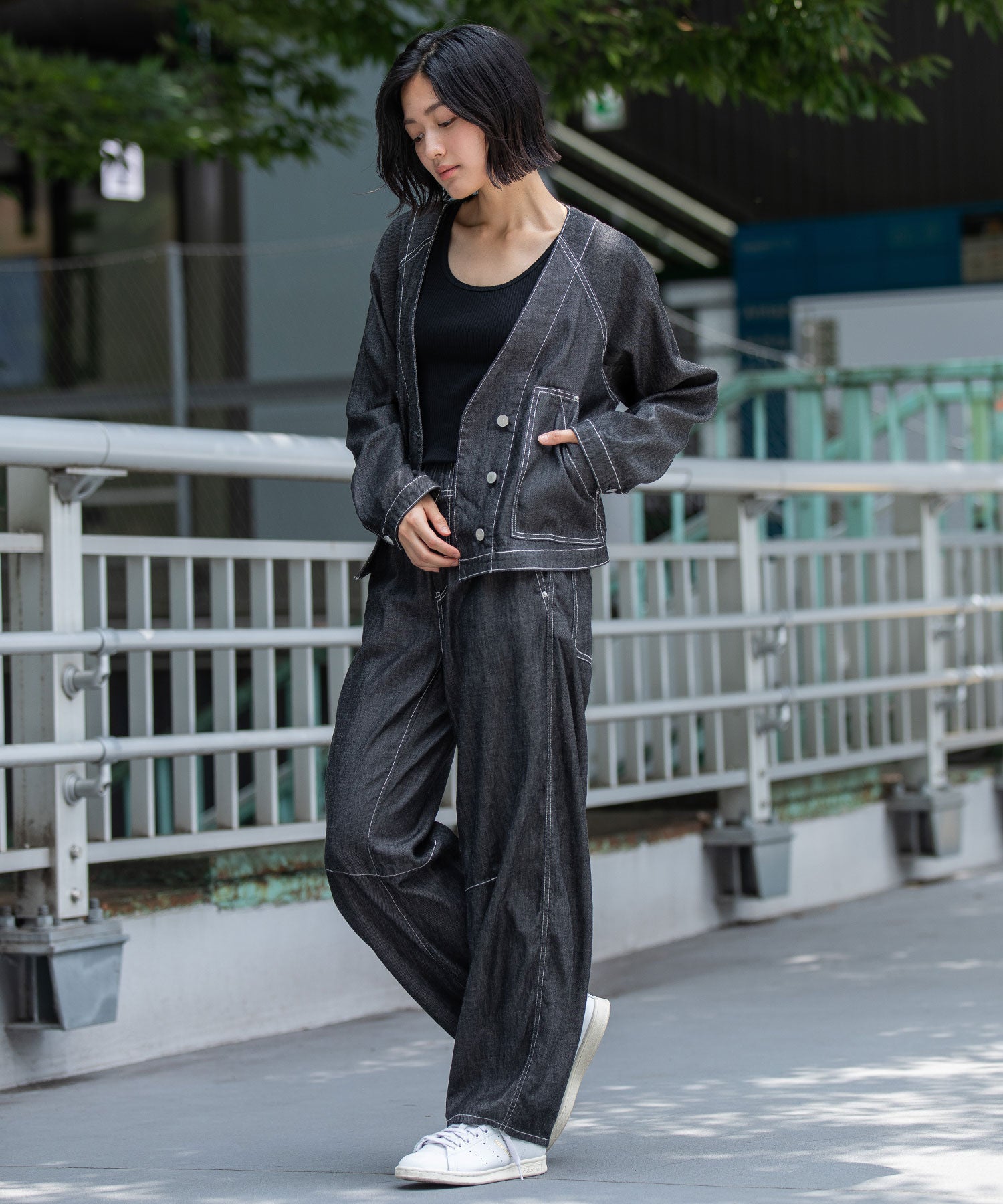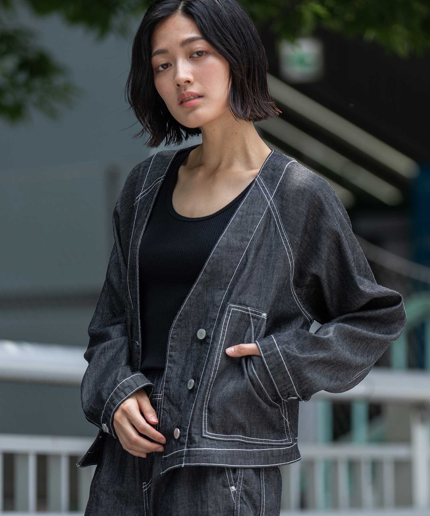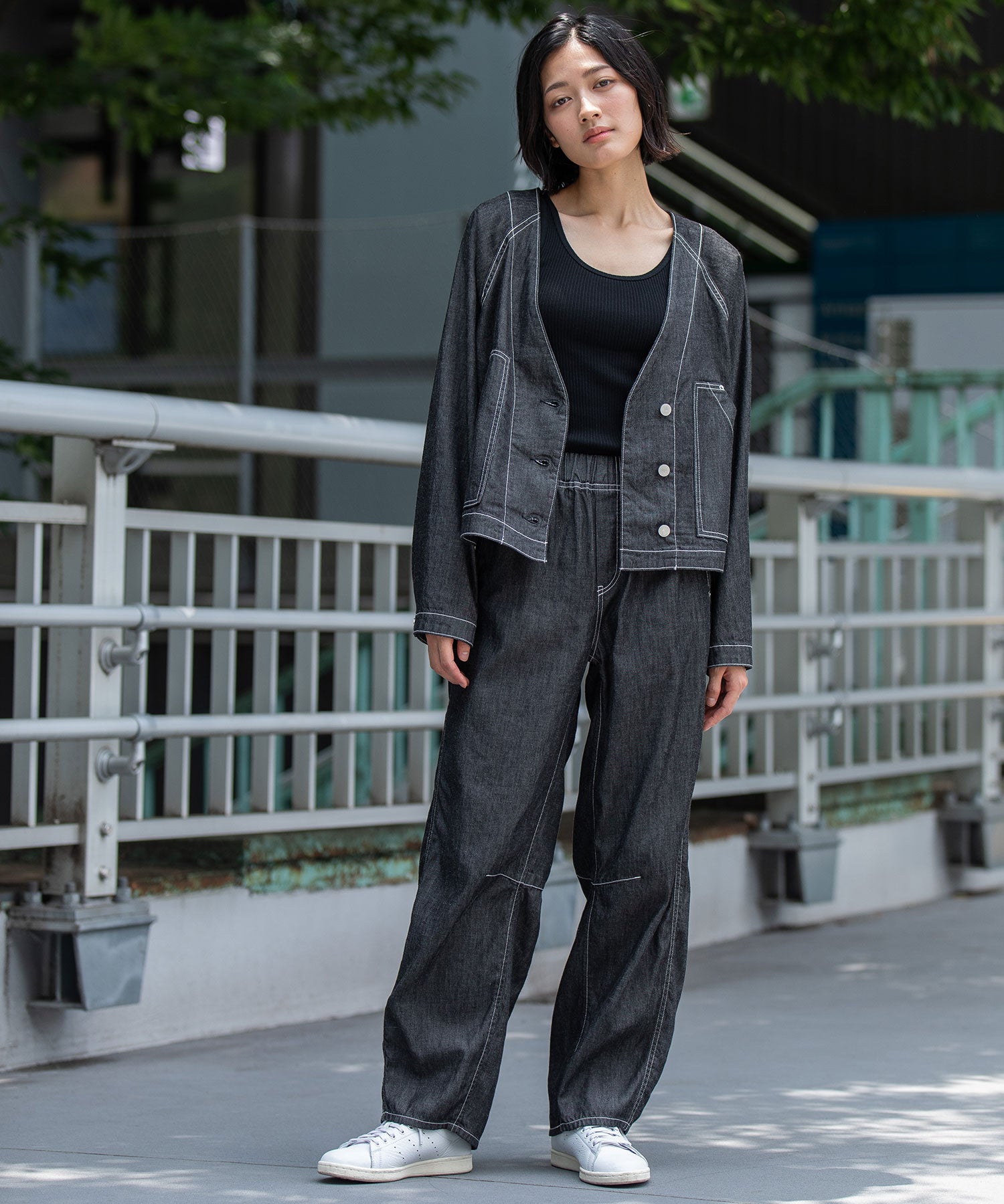 ■ブラック:深みのあるブラックデニムに、ホワイトステッチが映えるこなれ感のあるカラー