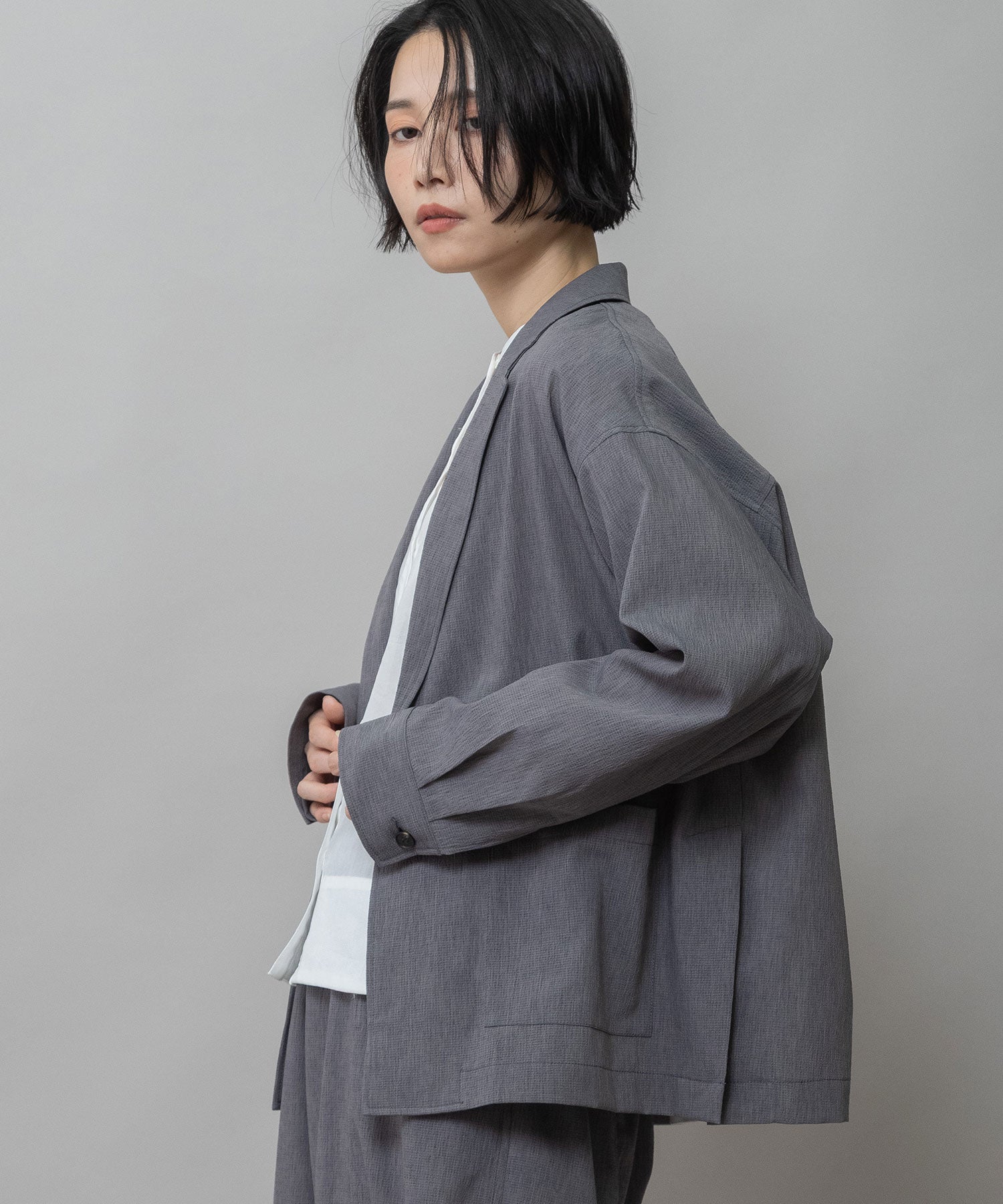 ◆夏でも快適な高機能素材のシャツディテールを組み込んだ横広スクエアシルエットのカジュアルテーラードジャケット◆