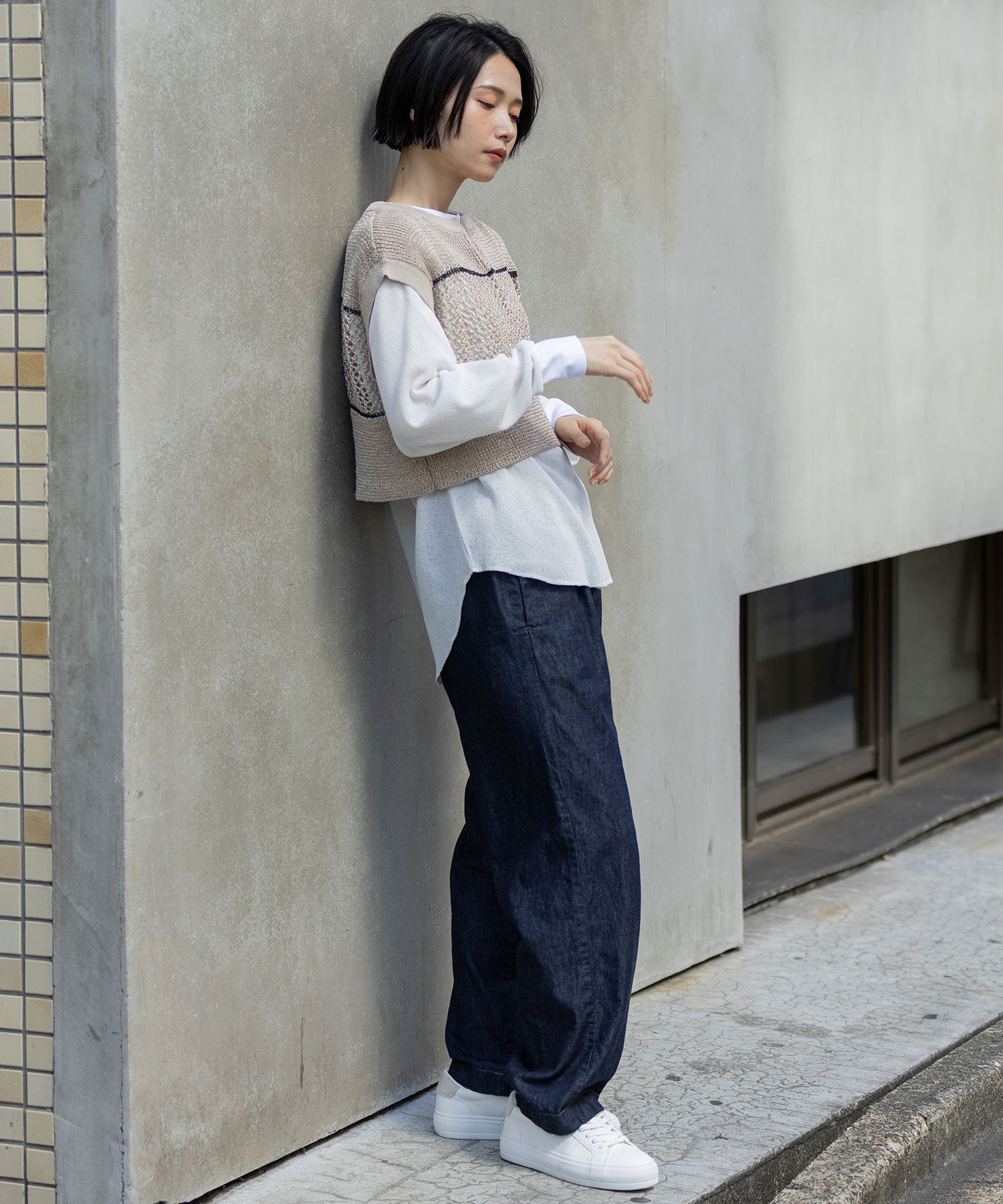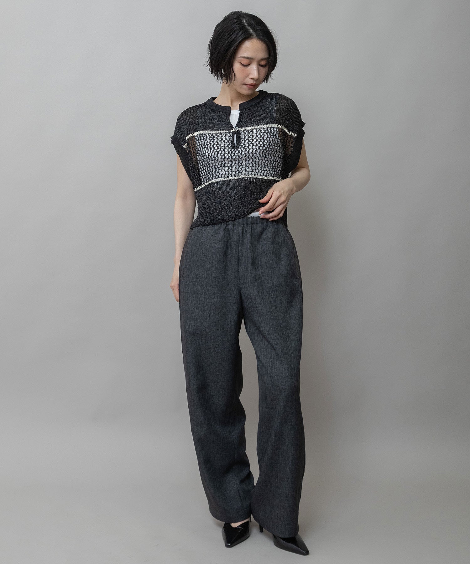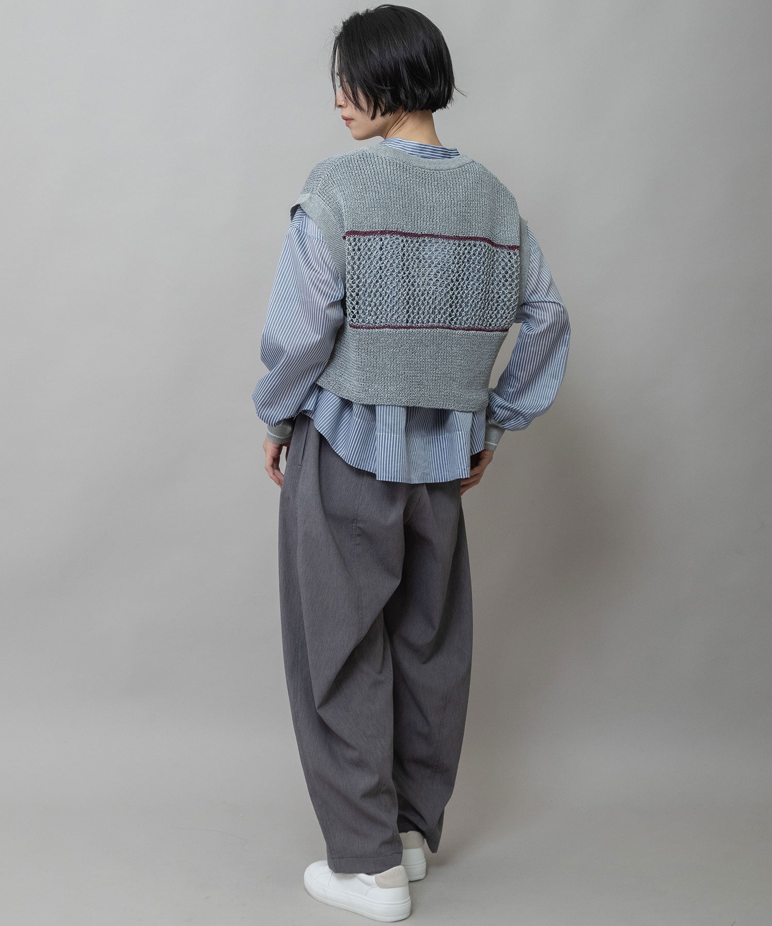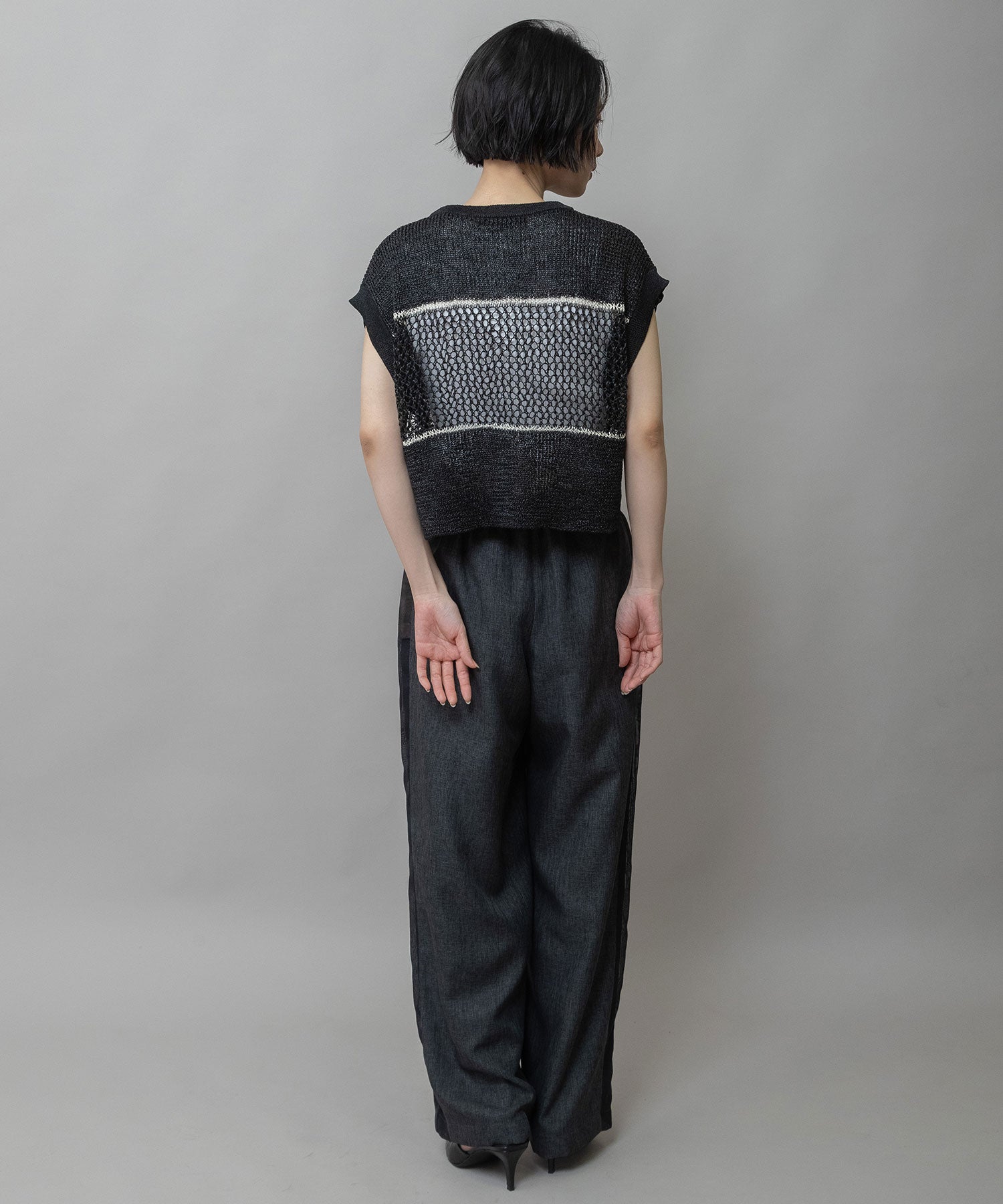 リブ編み×スカシ編みニットジレ