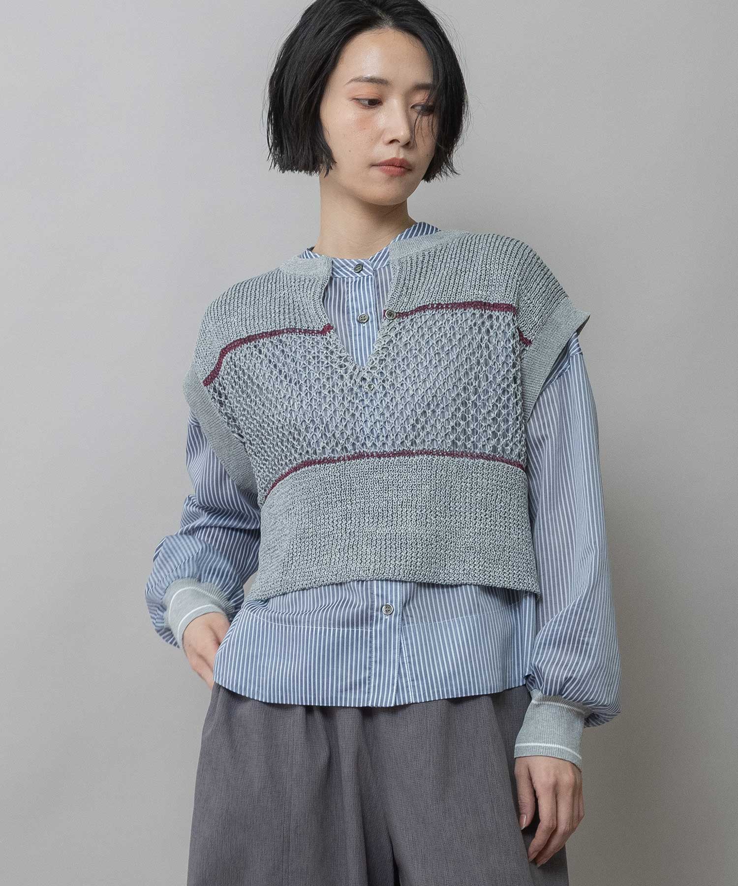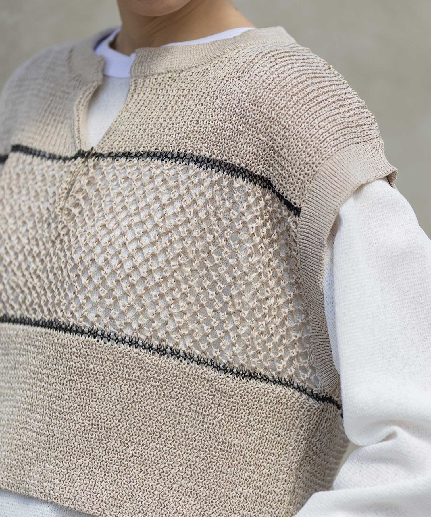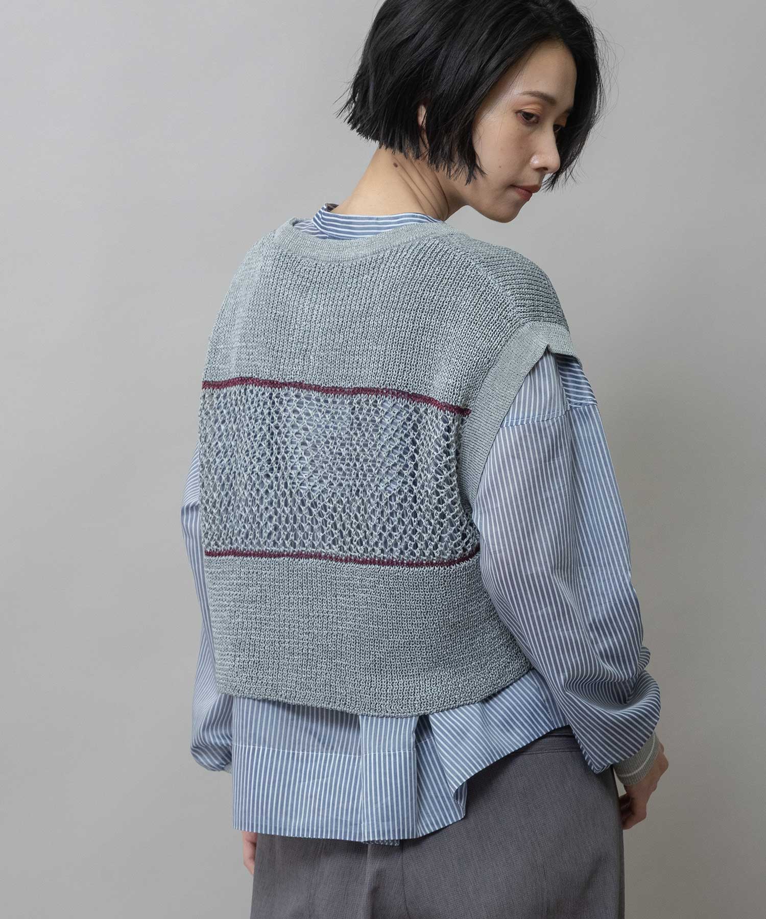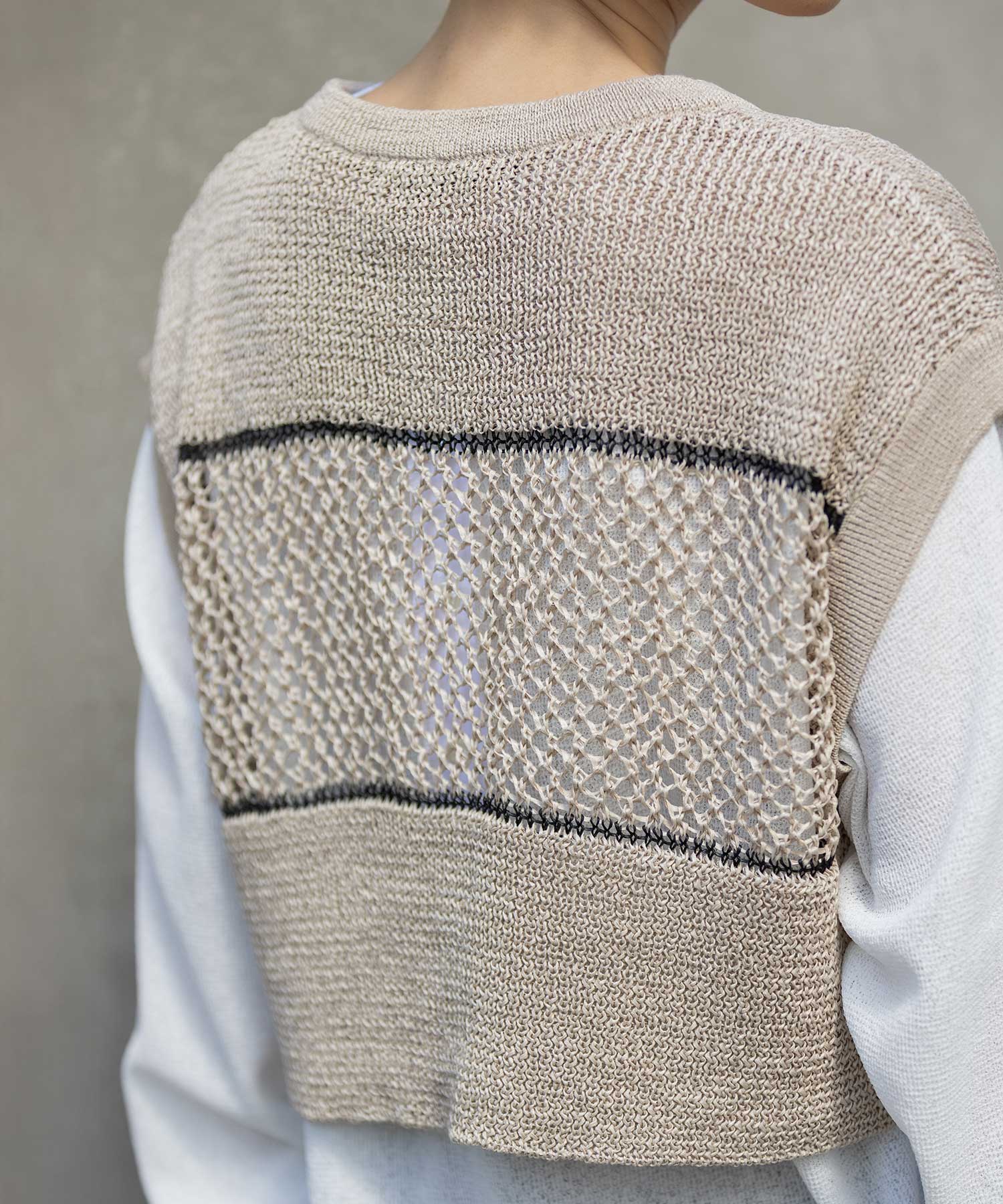 ◆配色ラインがアクセントになった清涼感のあるスカシ編みニットジレ◆