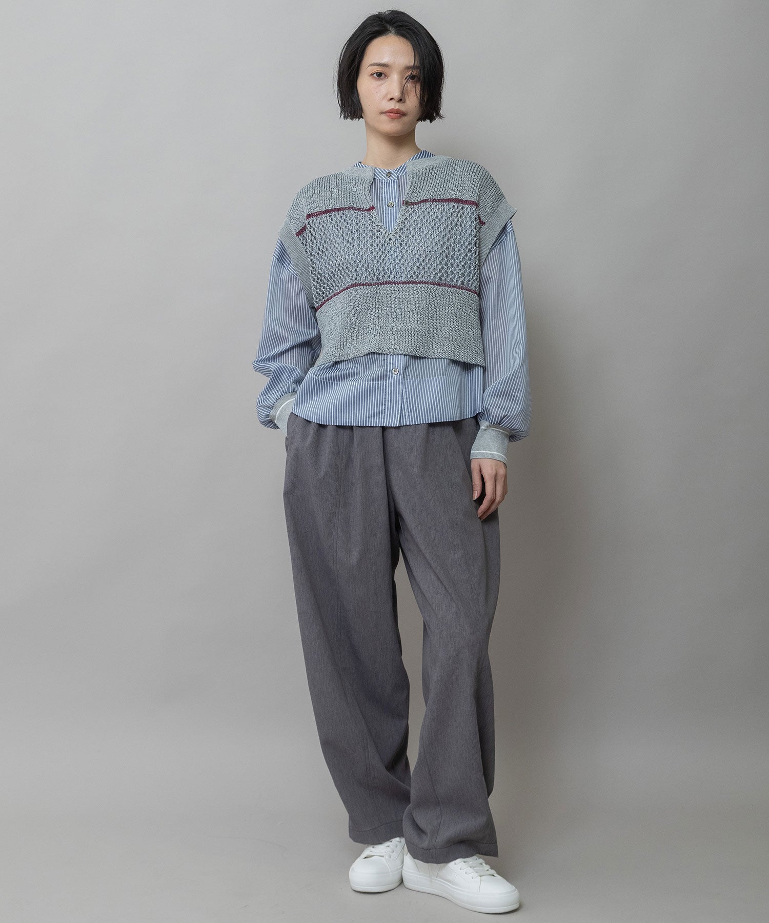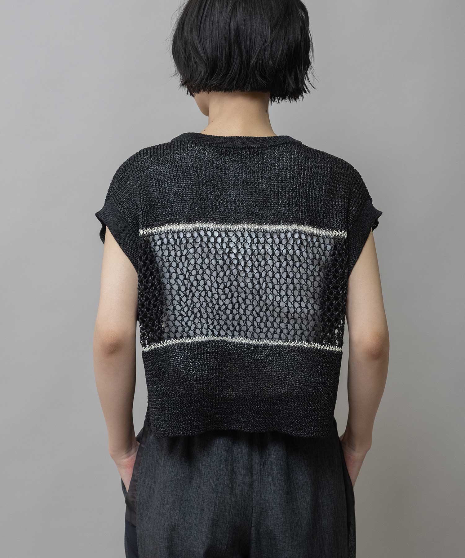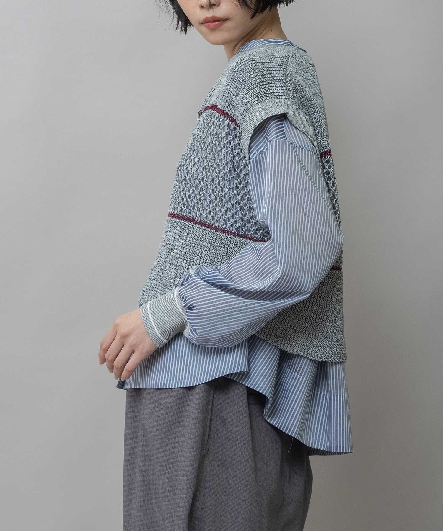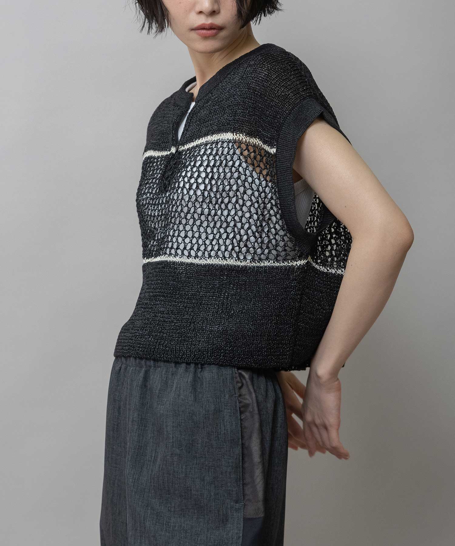 ◆配色ラインがアクセントになった清涼感のあるスカシ編みニットジレ◆