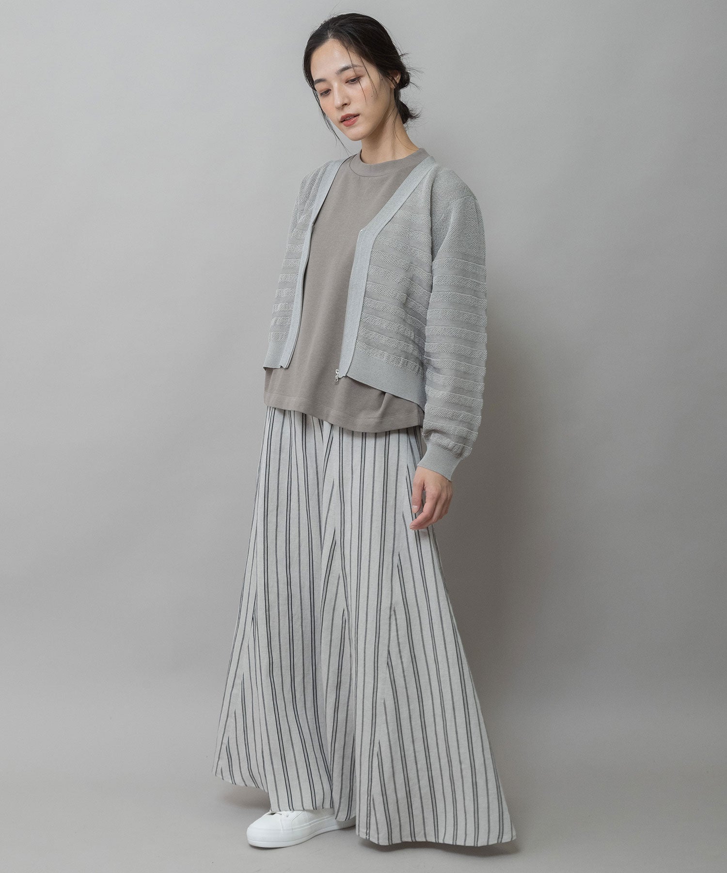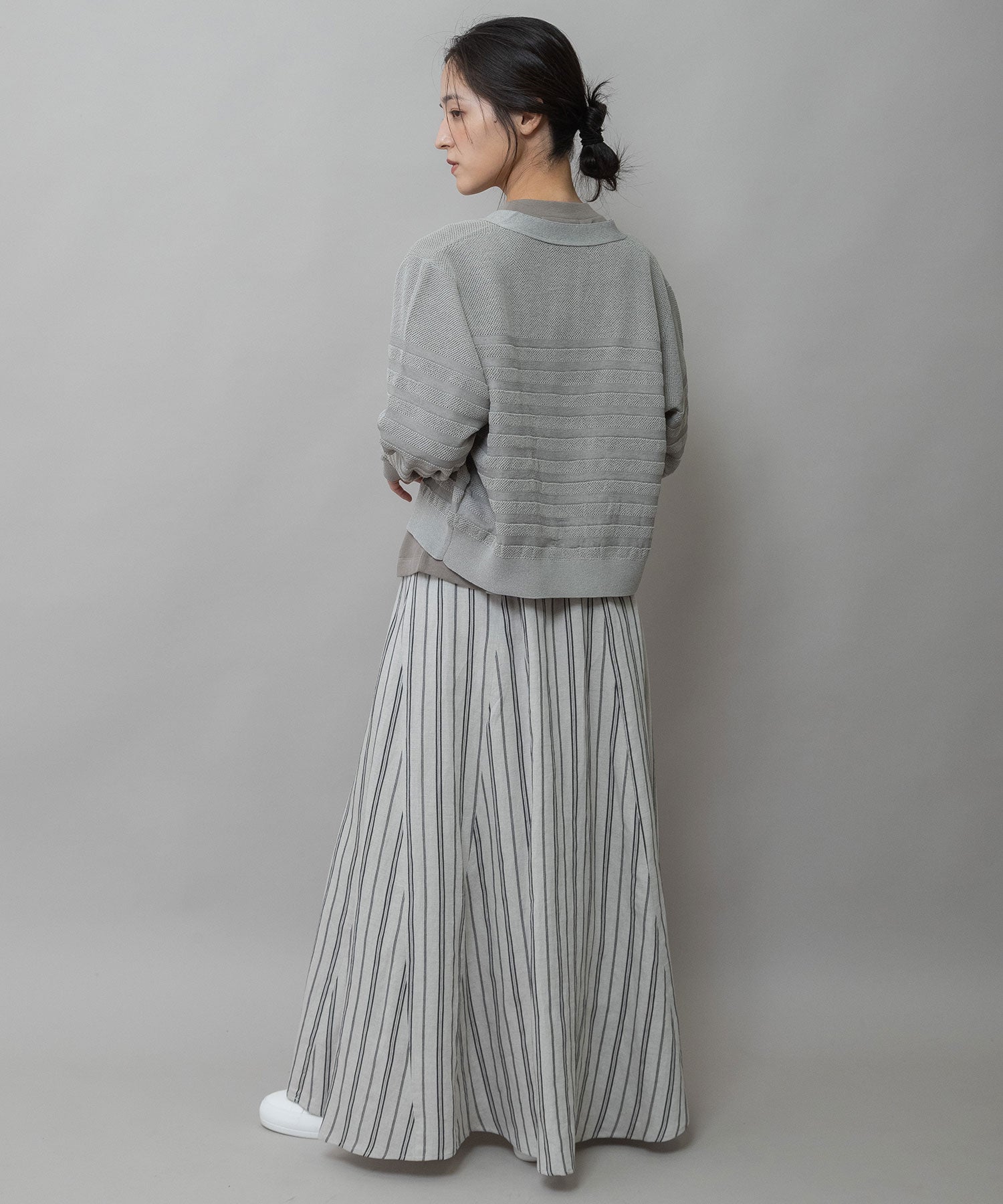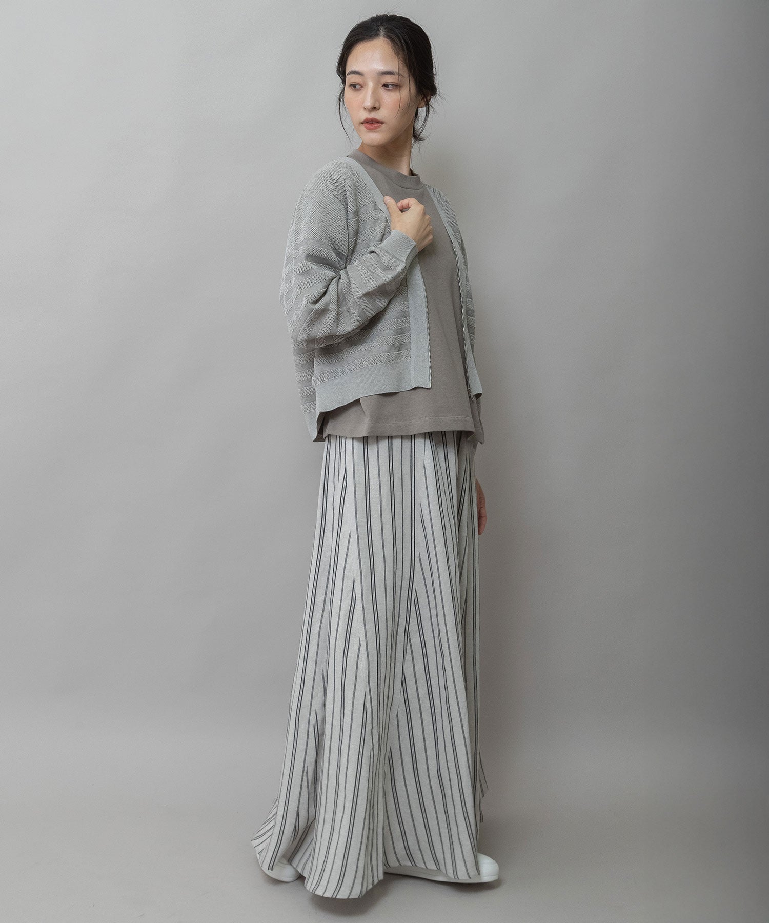 ほどよいサイズ感と、ほんのりコンパクトな着丈でパンツ、スカート問わずに合わせやすいバランスになっています。