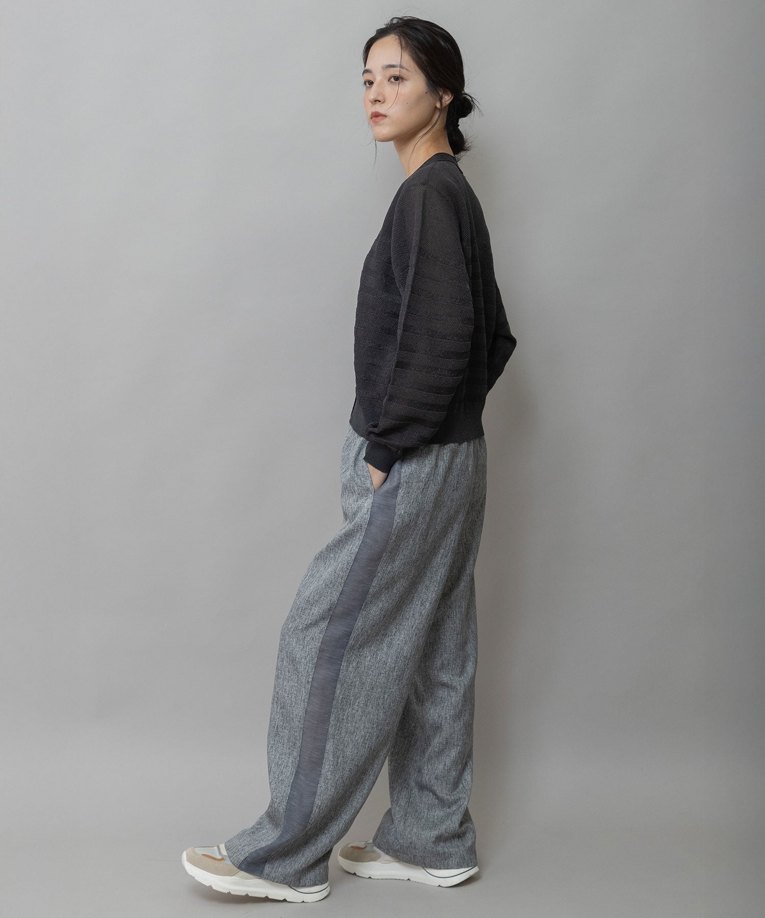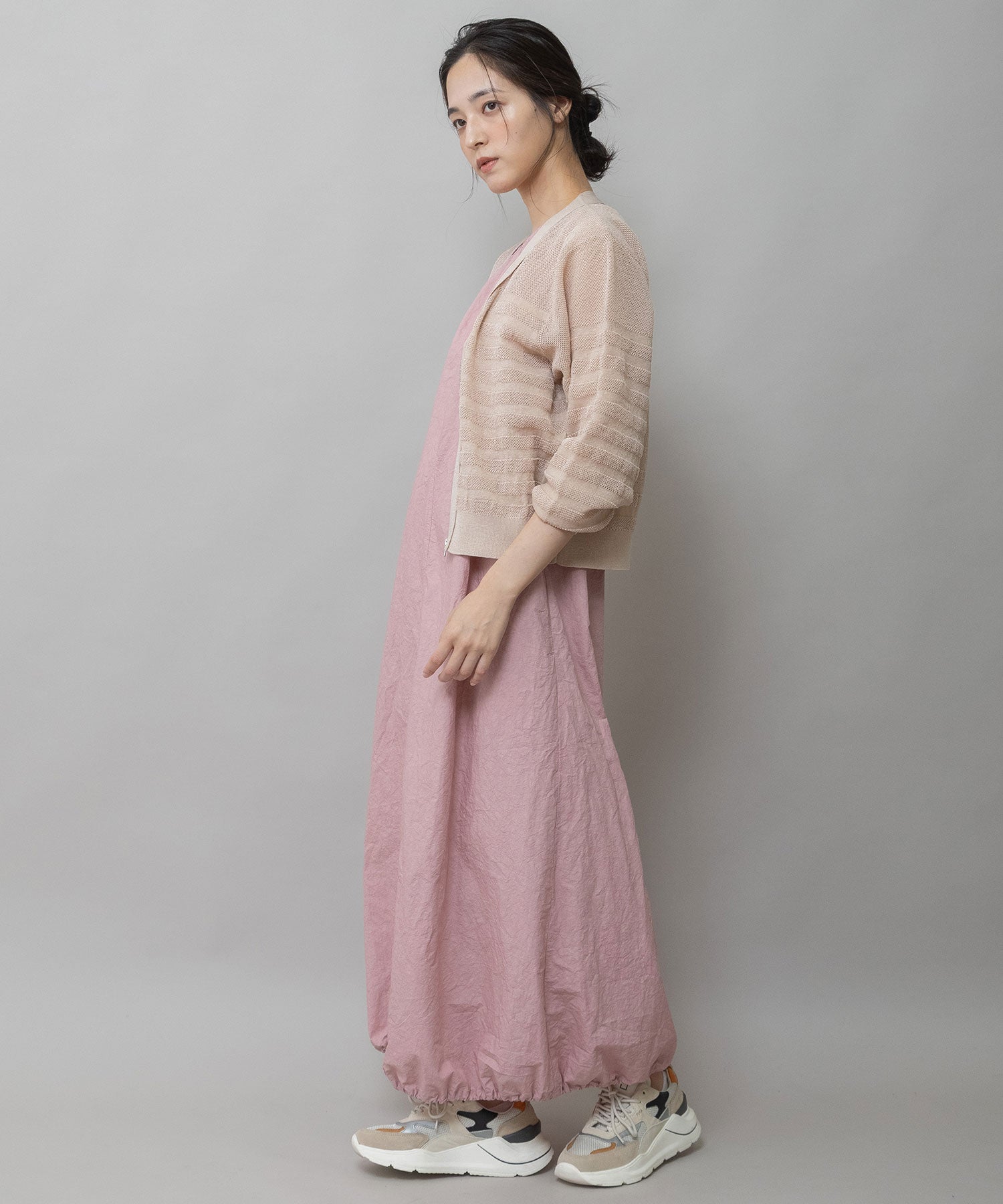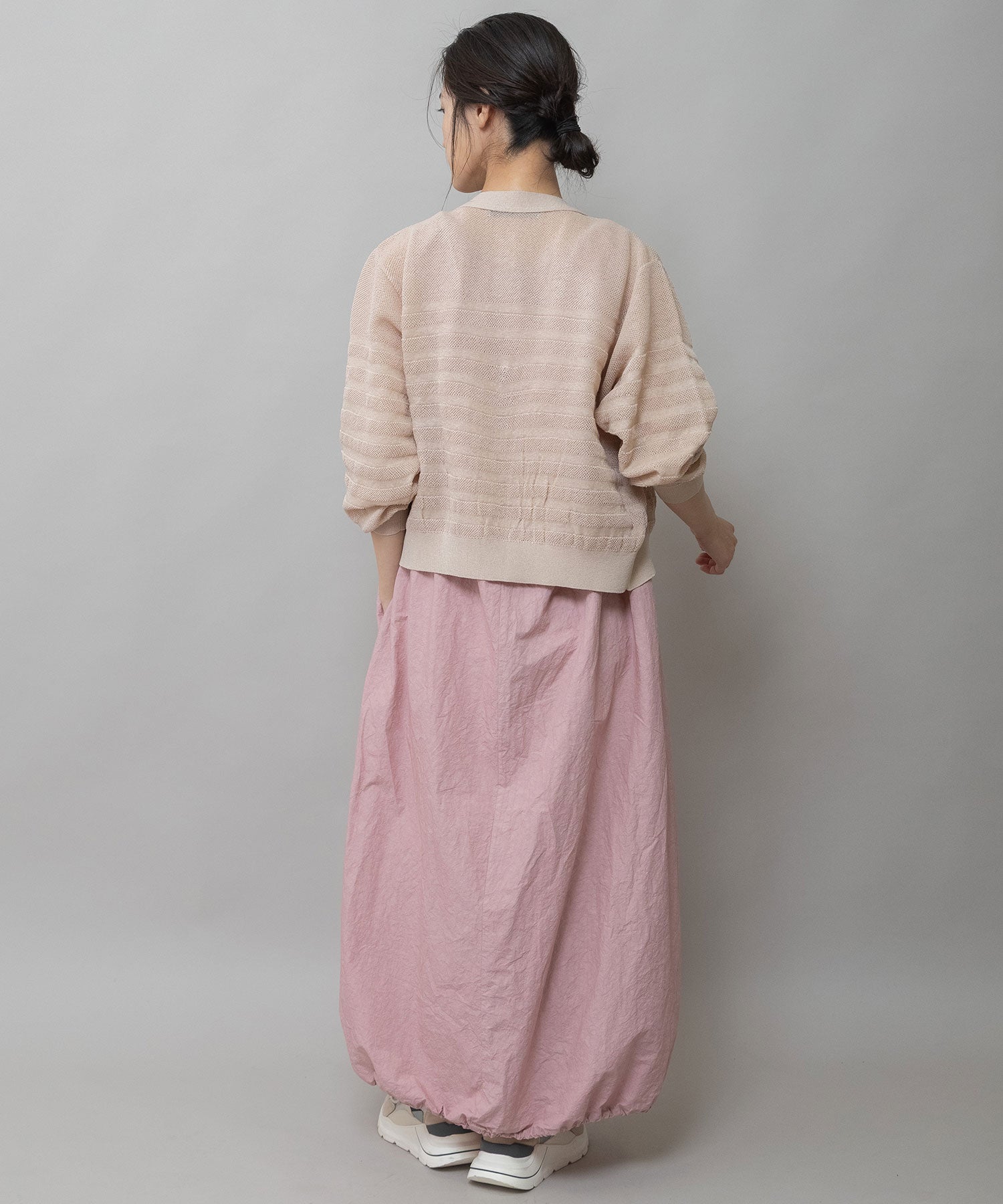 ほどよいサイズ感と、ほんのりコンパクトな着丈でパンツ、スカート問わずに合わせやすいバランスになっています。