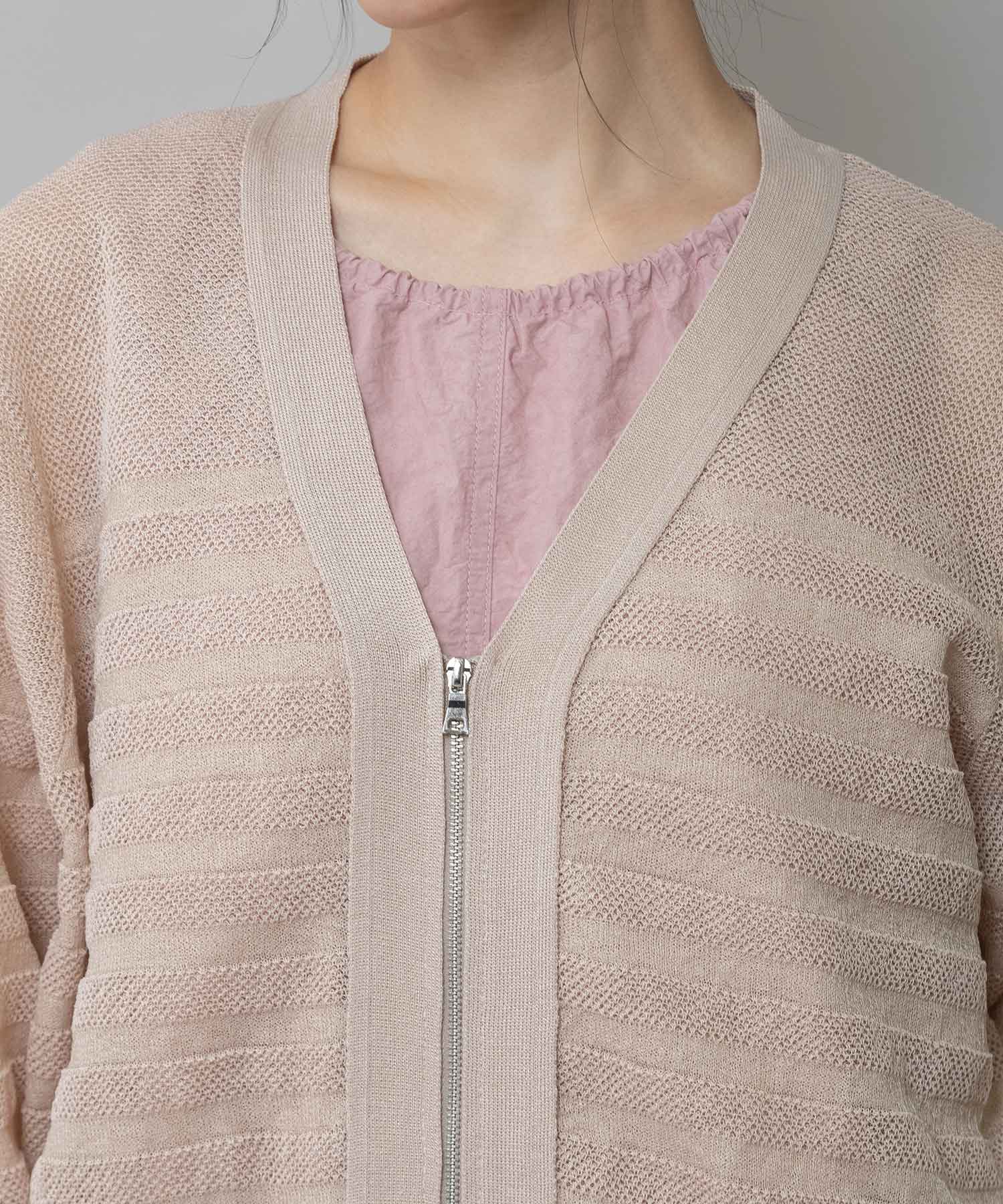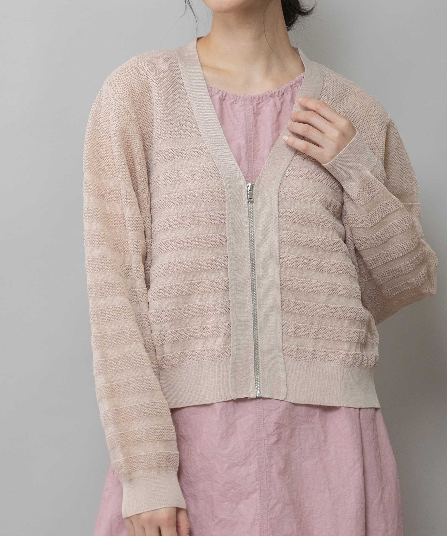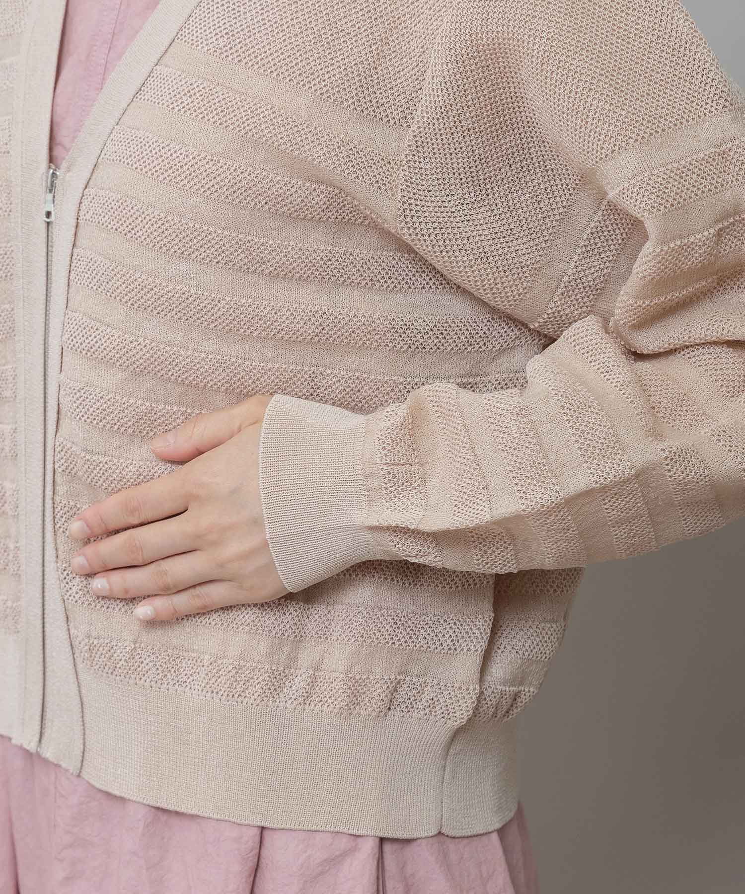 メッシュジャガードボーダーニットジップカーディガン